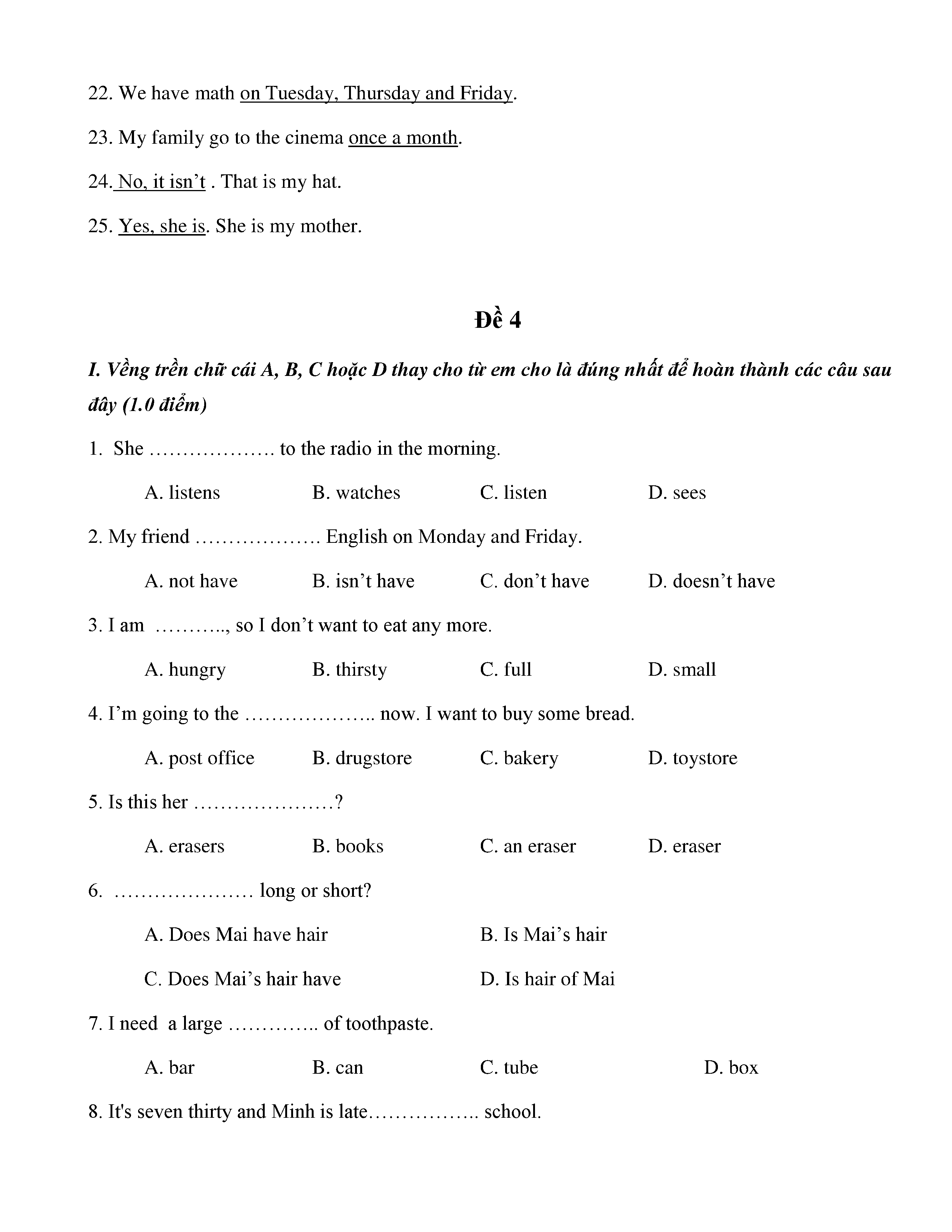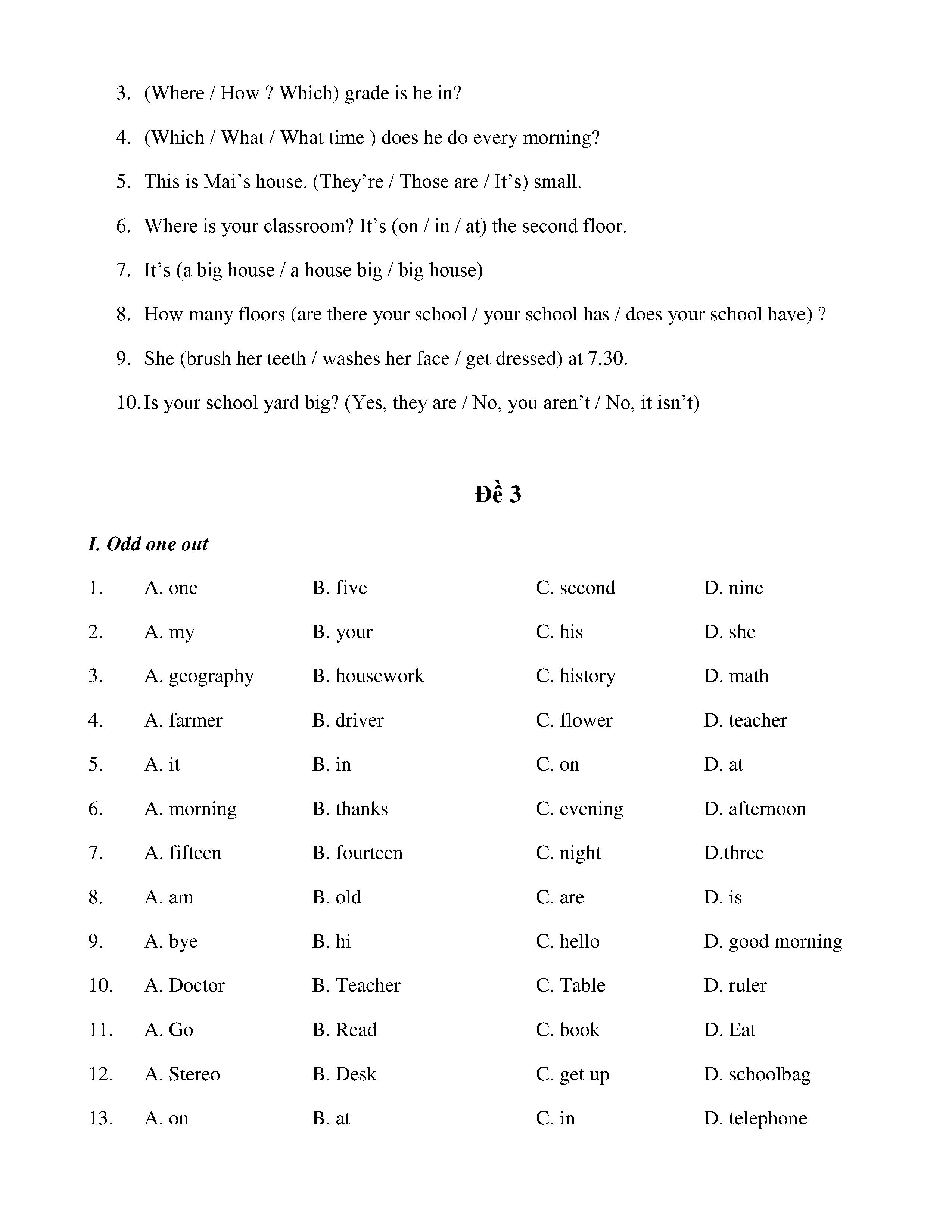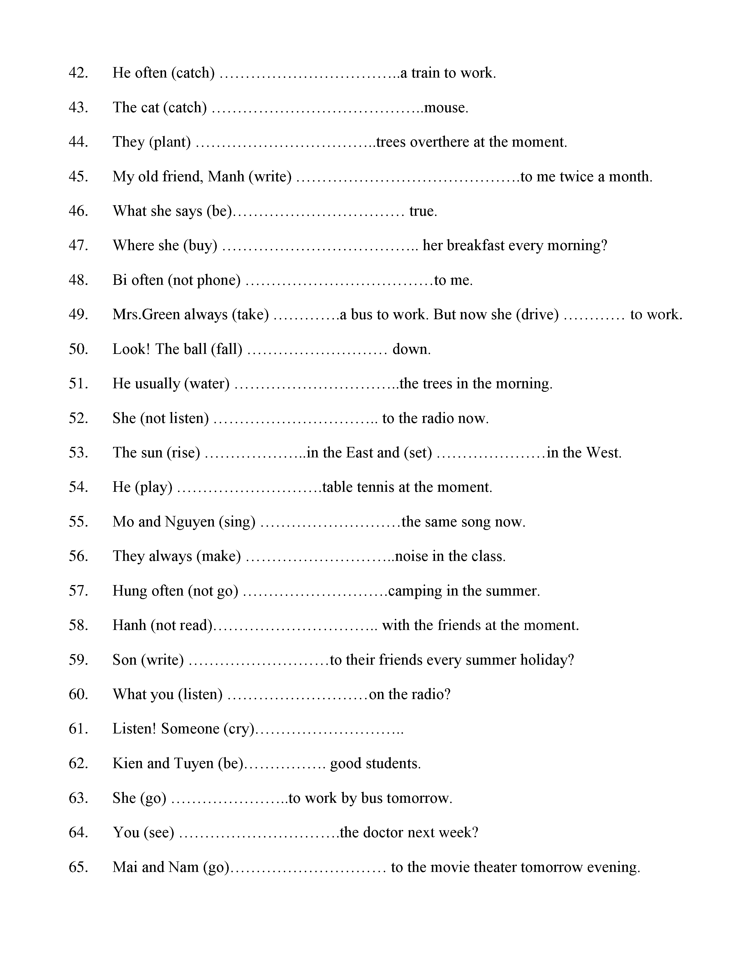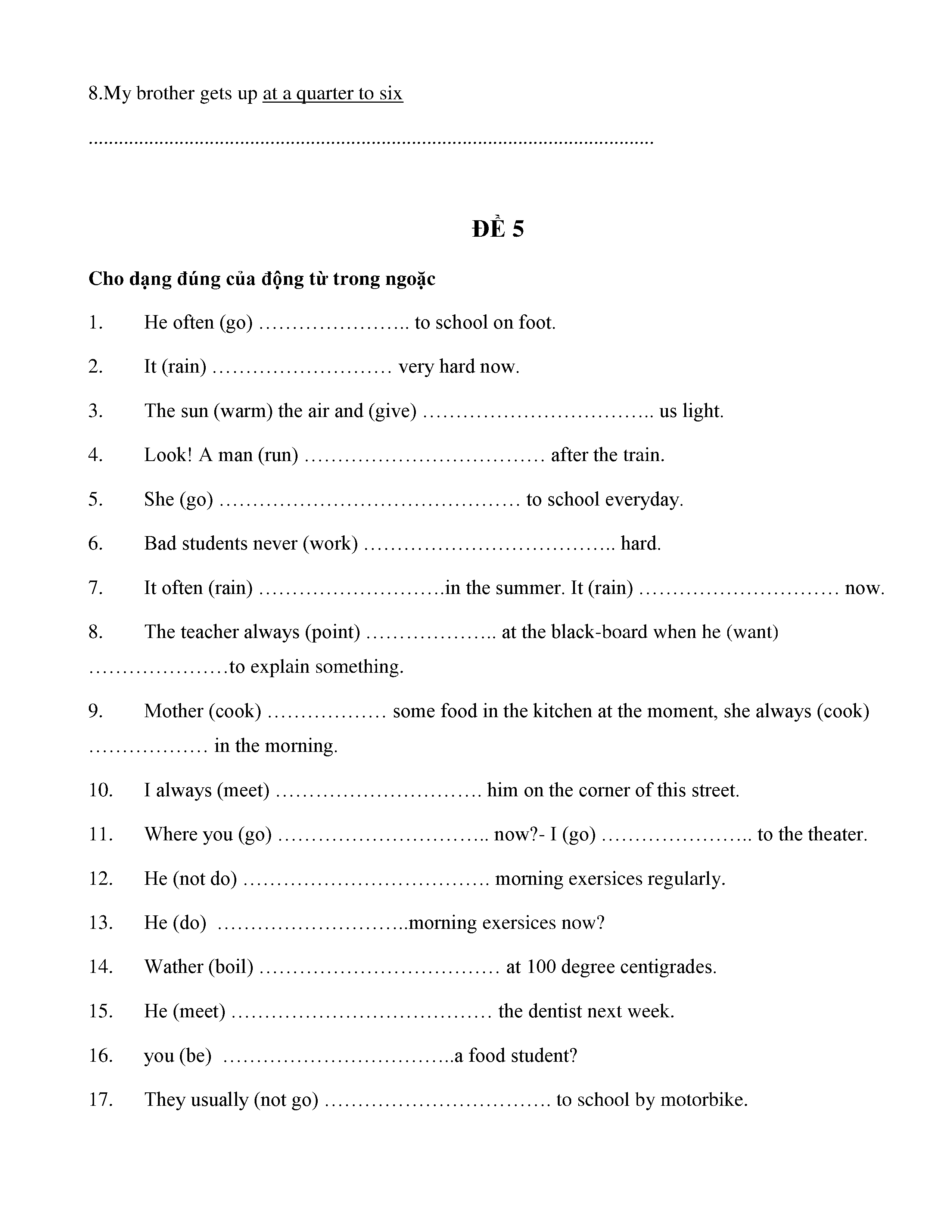 BÀI TẬP ÔN HÈ TIẾNG ANH CHO HỌC SINH TỪ LỚP 5 LÊN LỚP 6