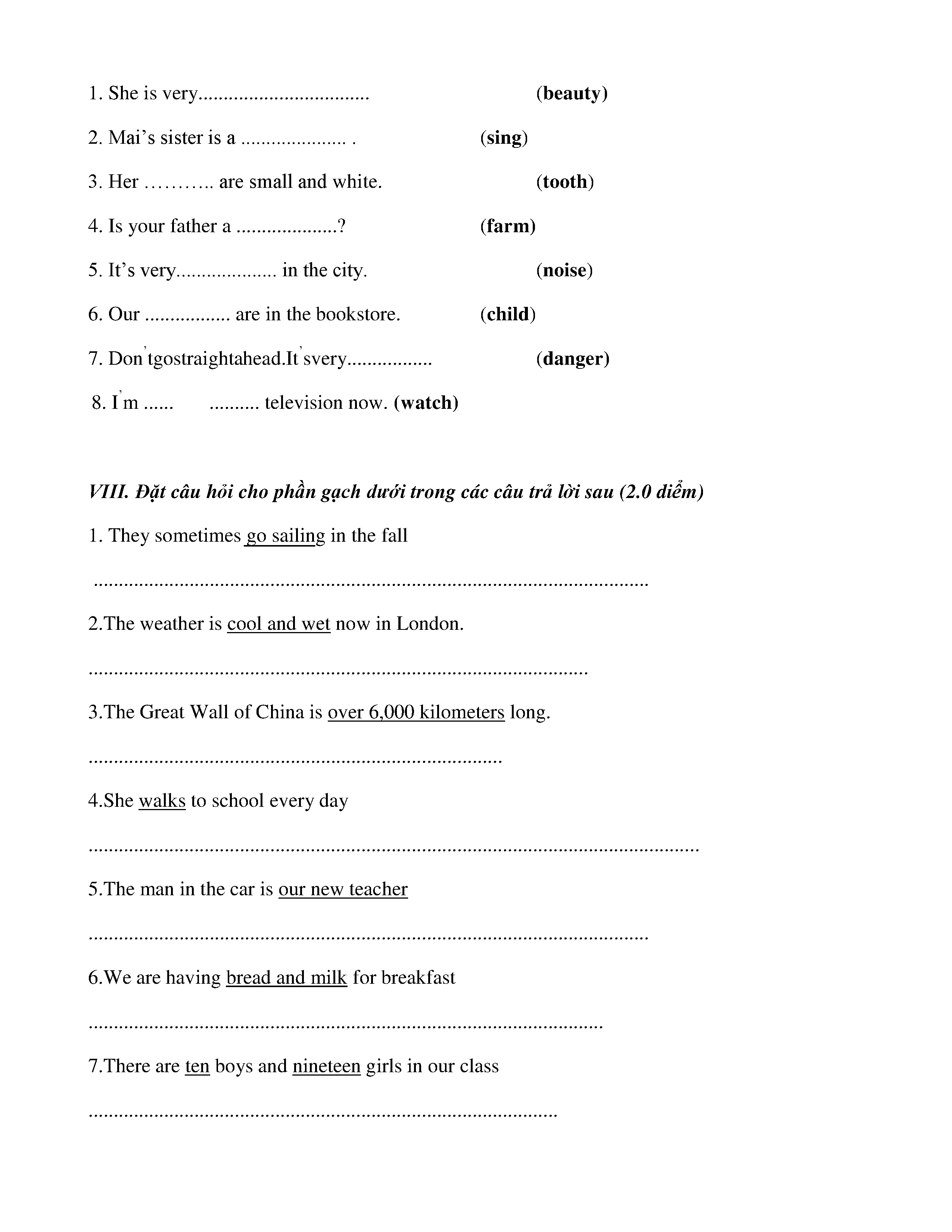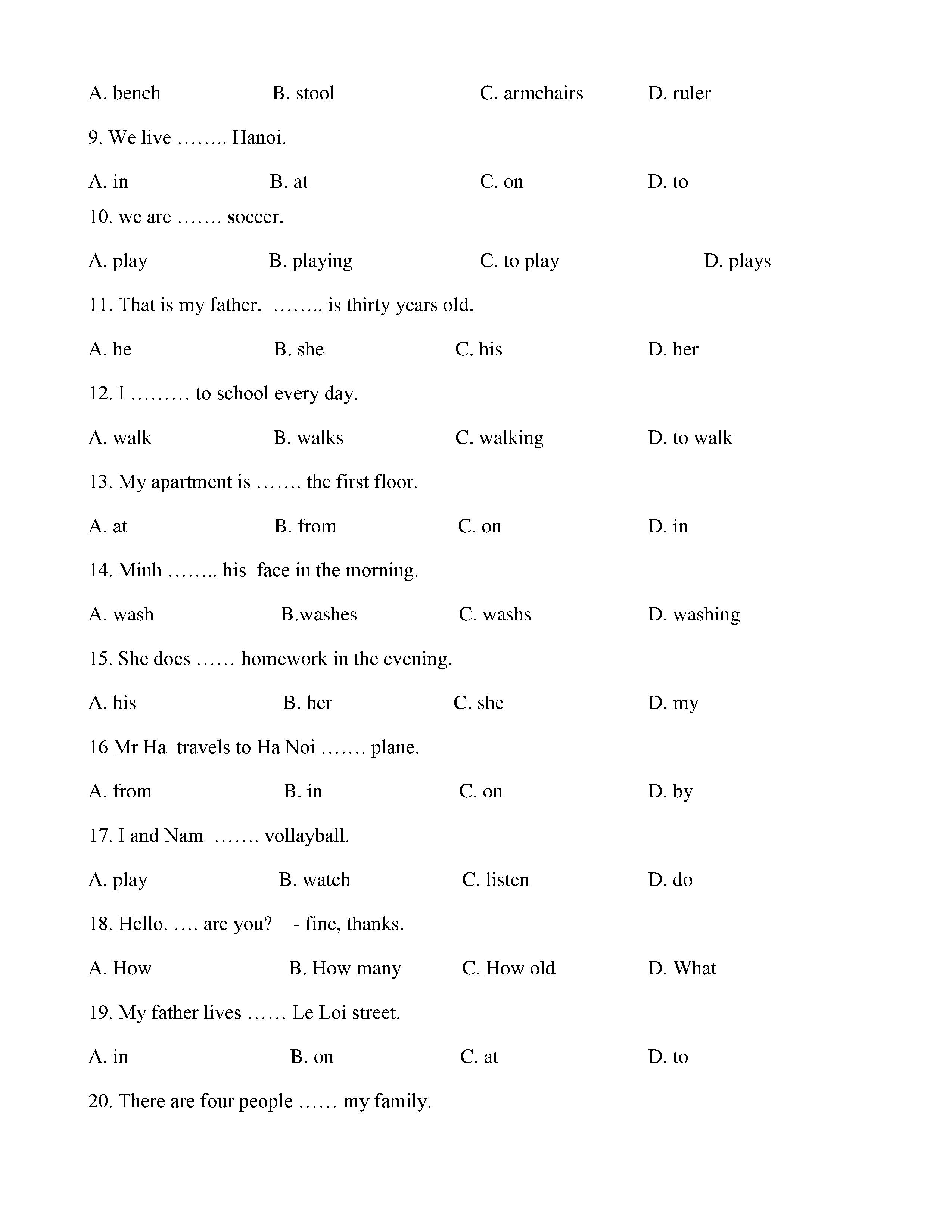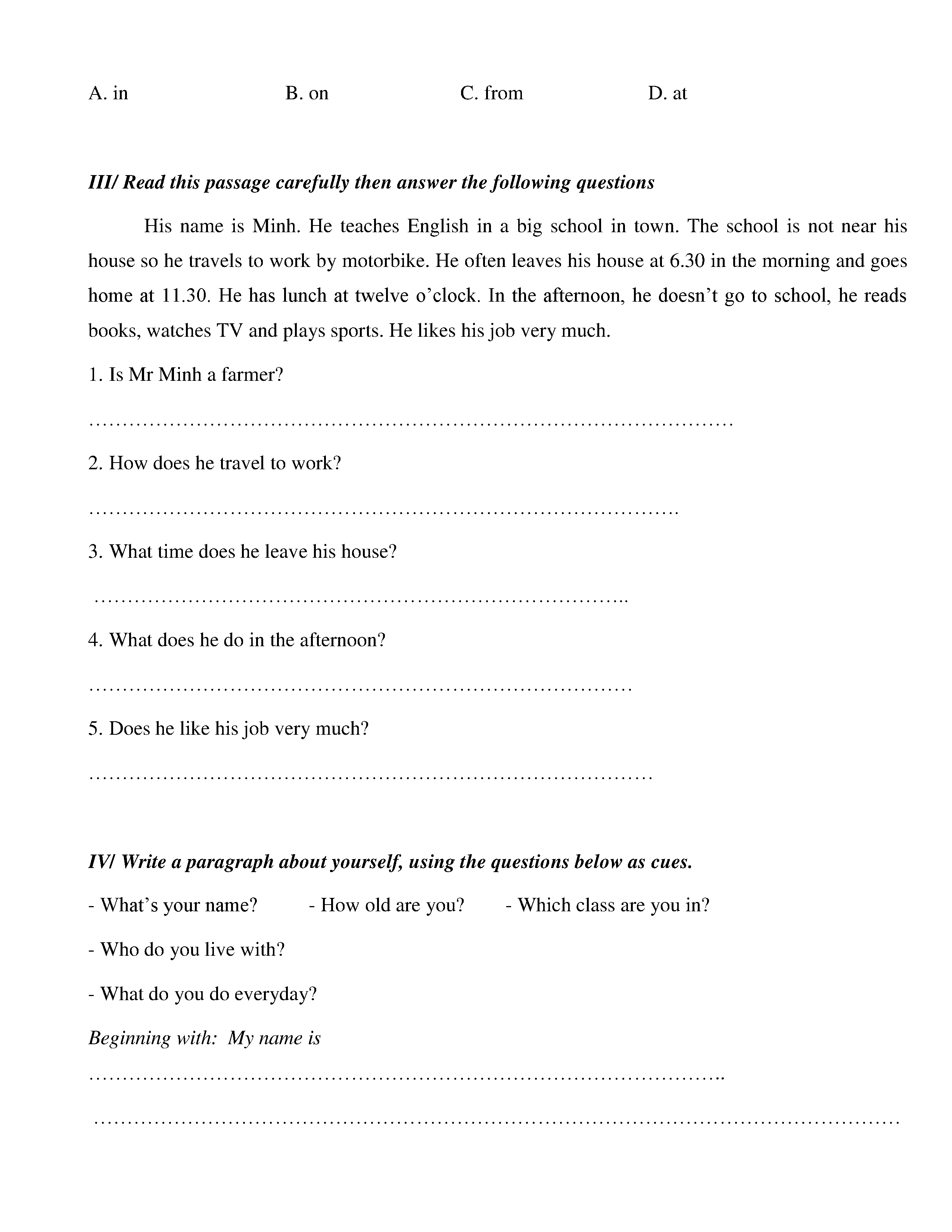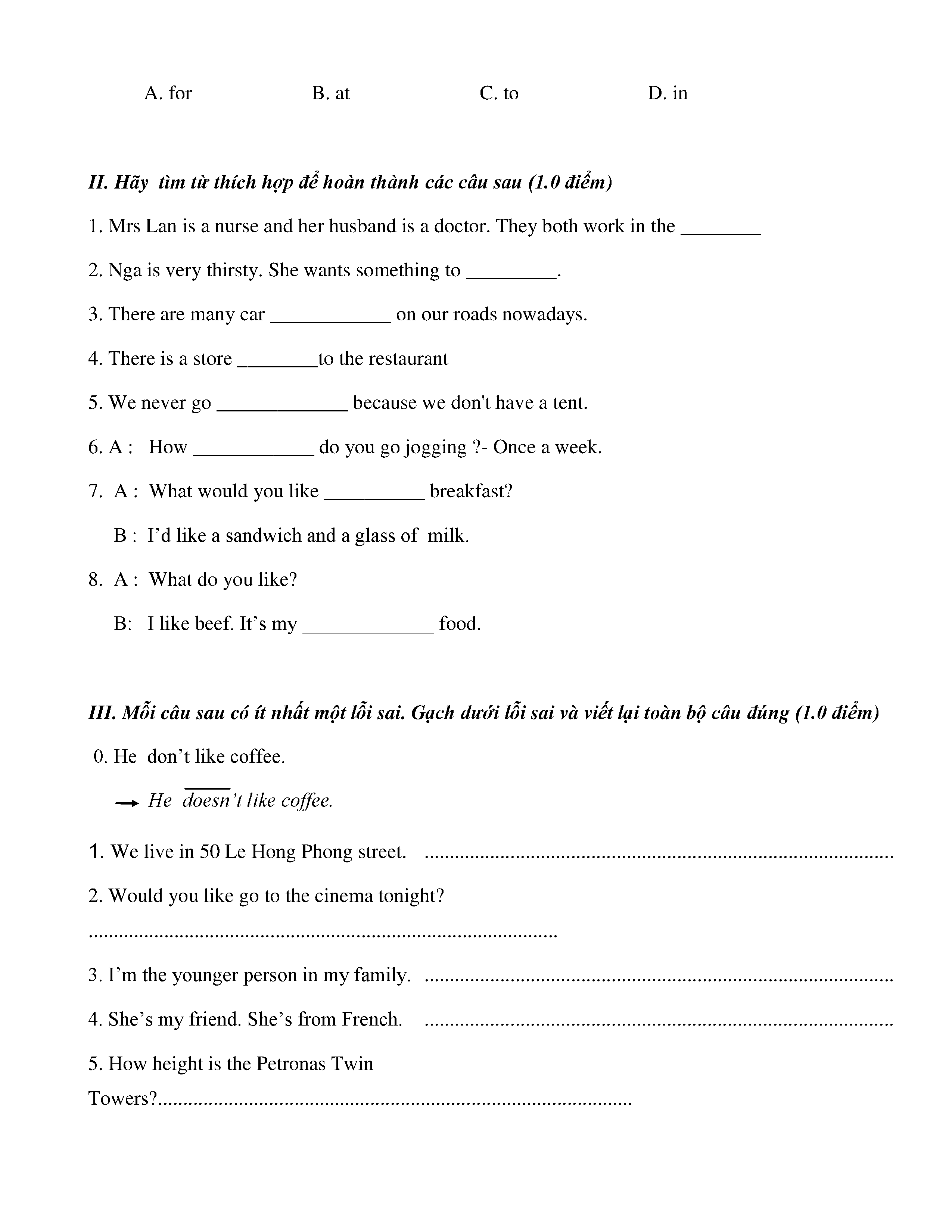 BÀI TẬP ÔN HÈ TIẾNG ANH CHO HỌC SINH TỪ LỚP 5 LÊN LỚP 6