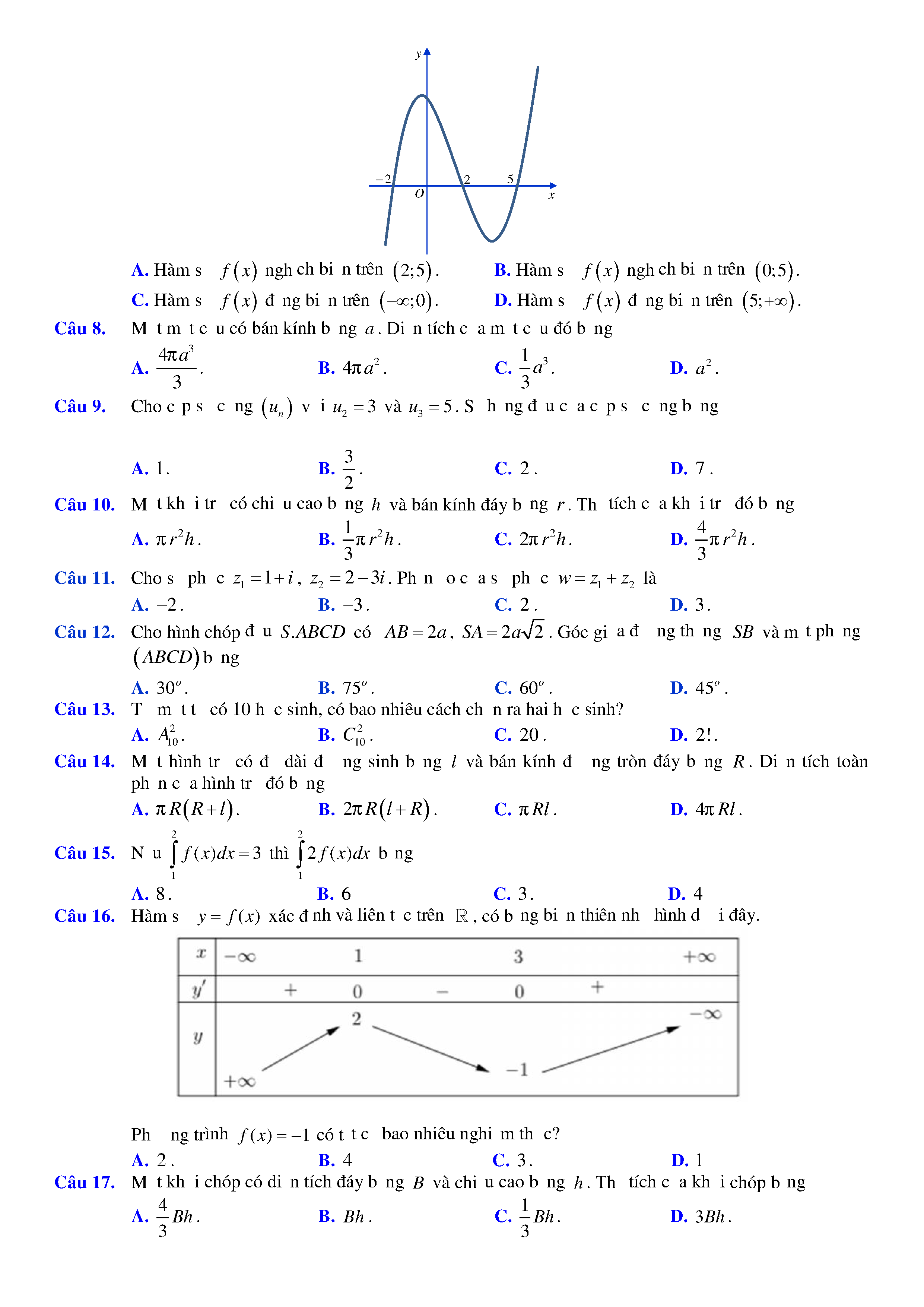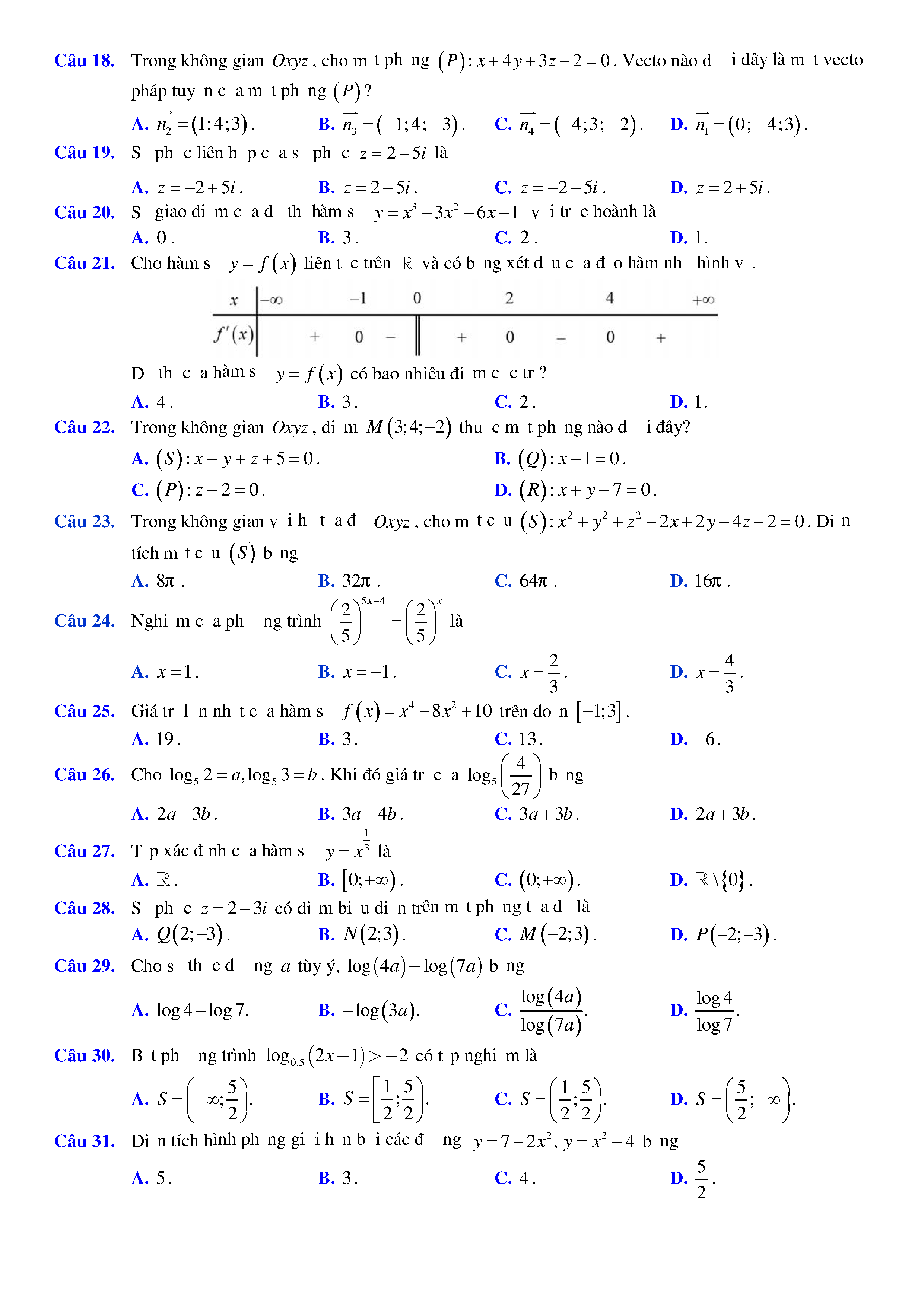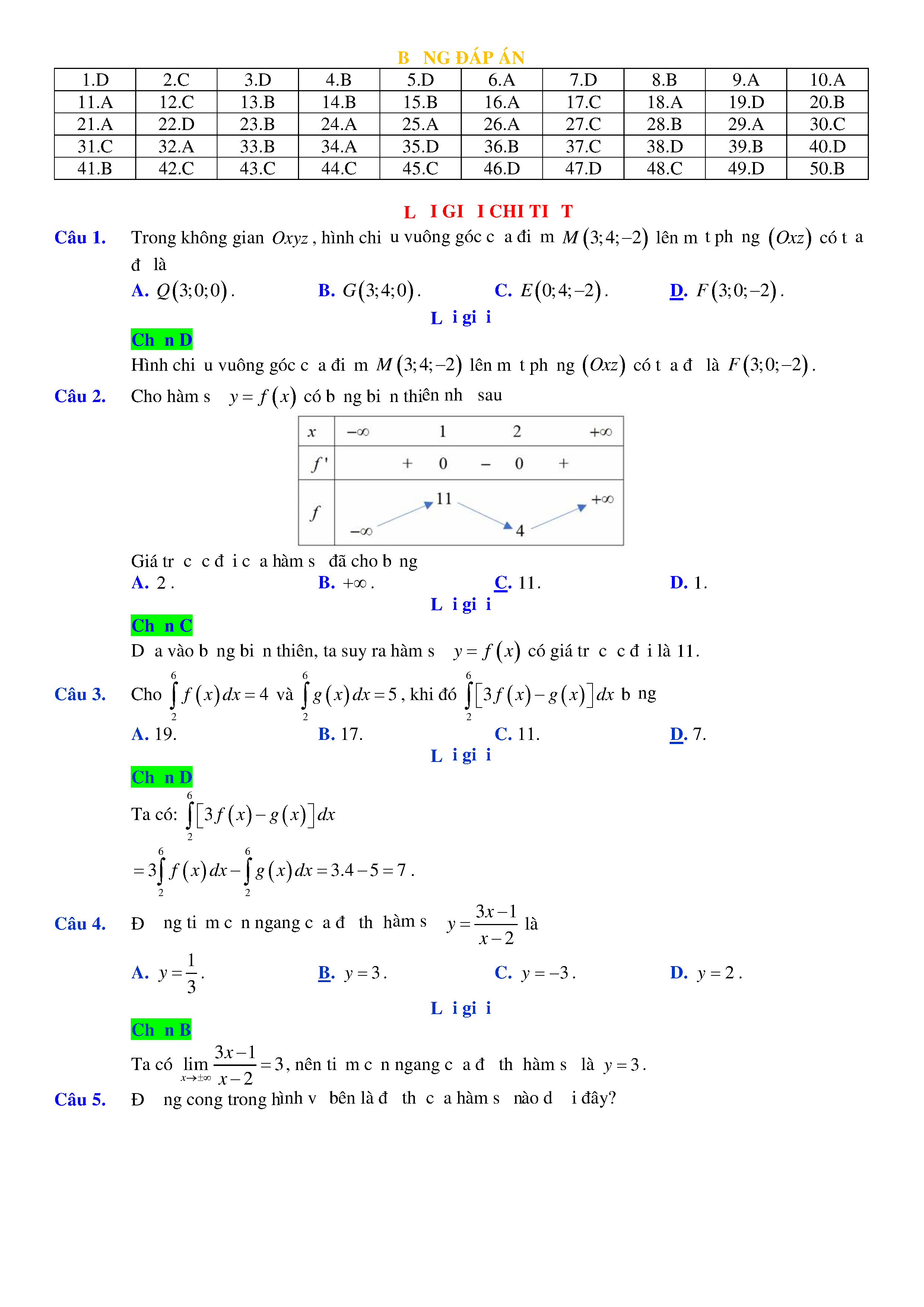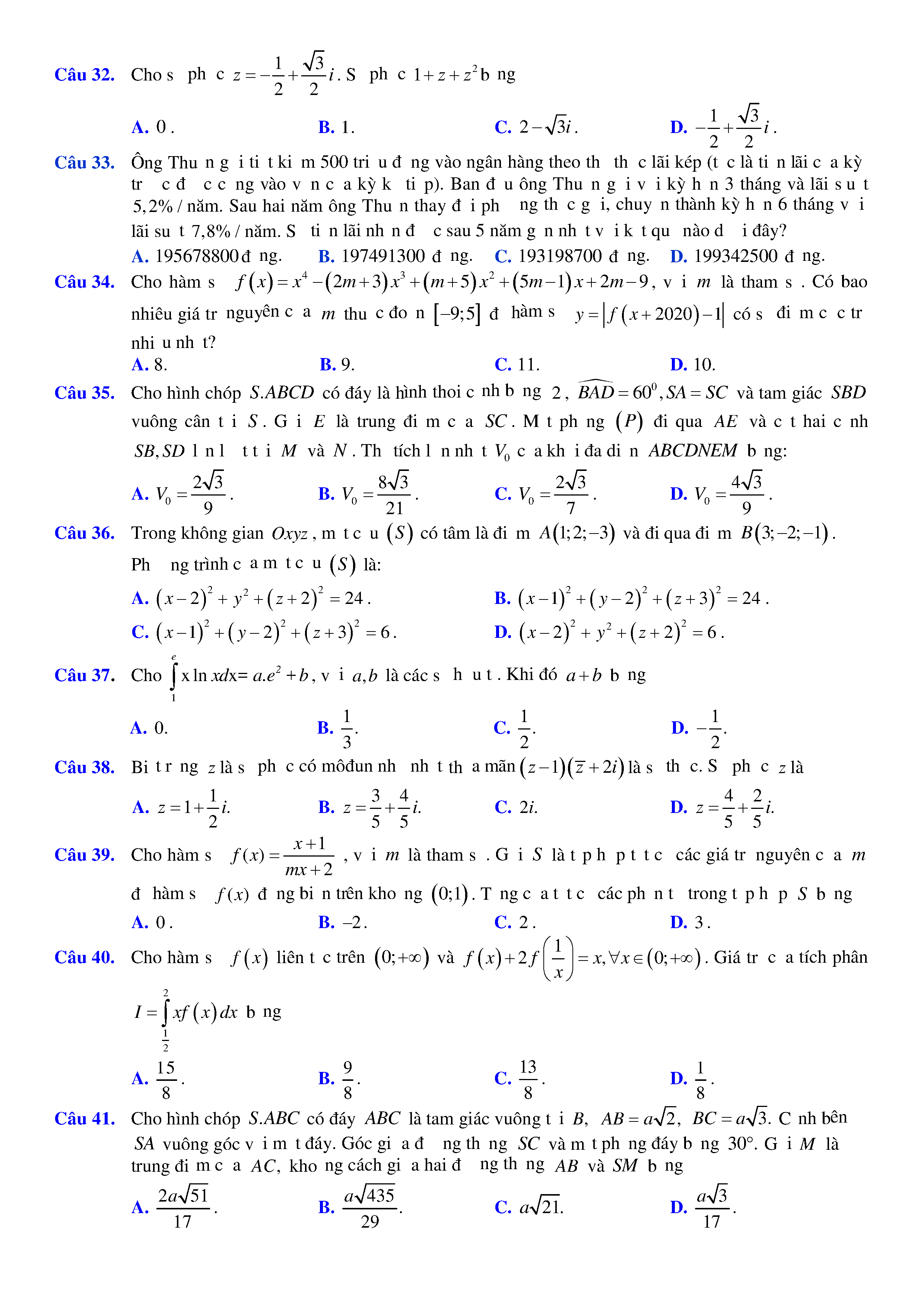 Đề thi thử THPT Năm 2020 môn Toán Sở GD - ĐT Bắc Giang - lần 1