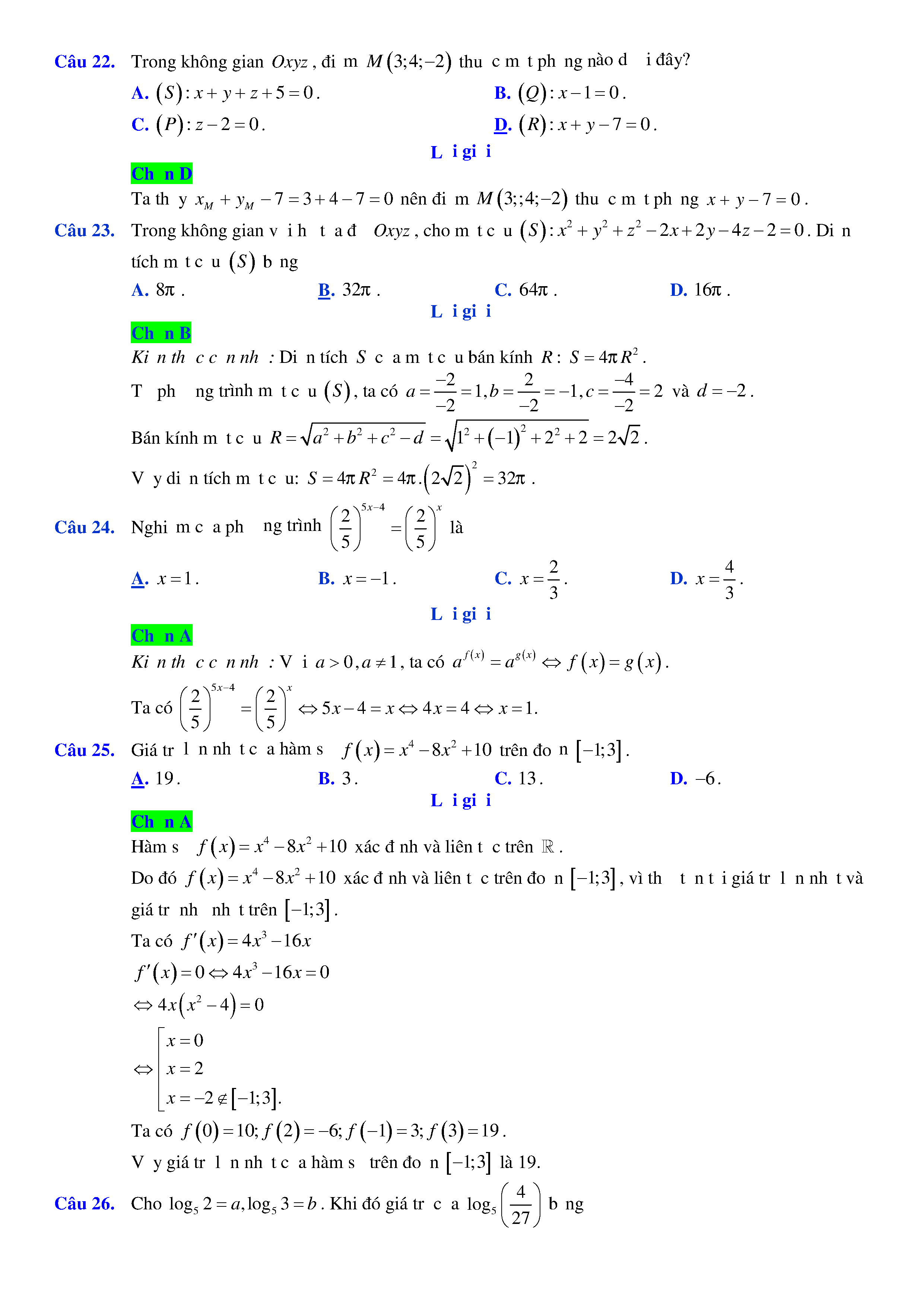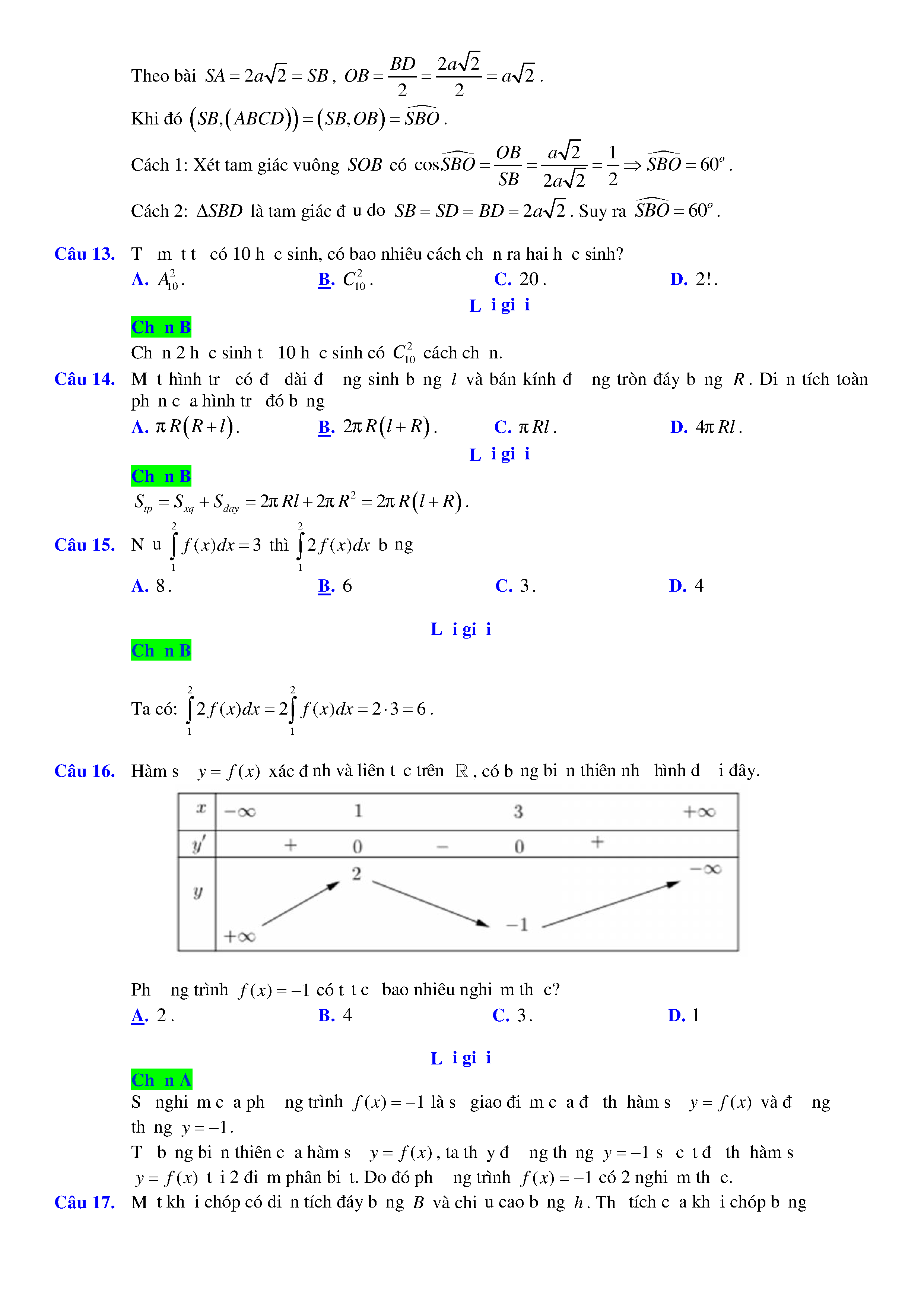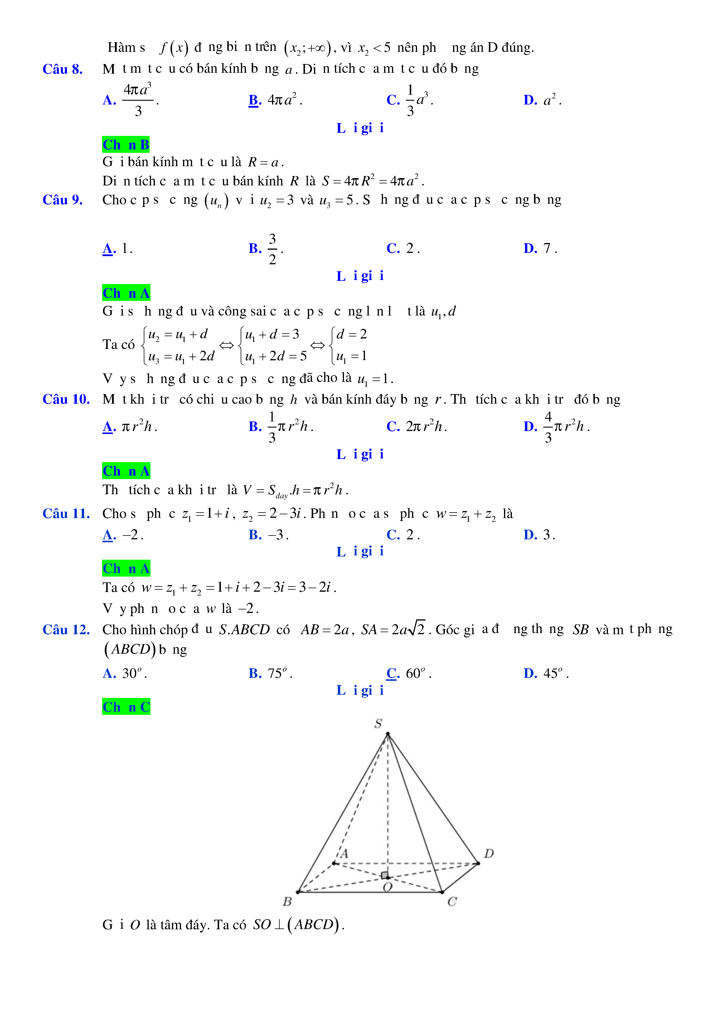 Đề thi thử THPT Năm 2020 môn Toán Sở GD - ĐT Bắc Giang - lần 1