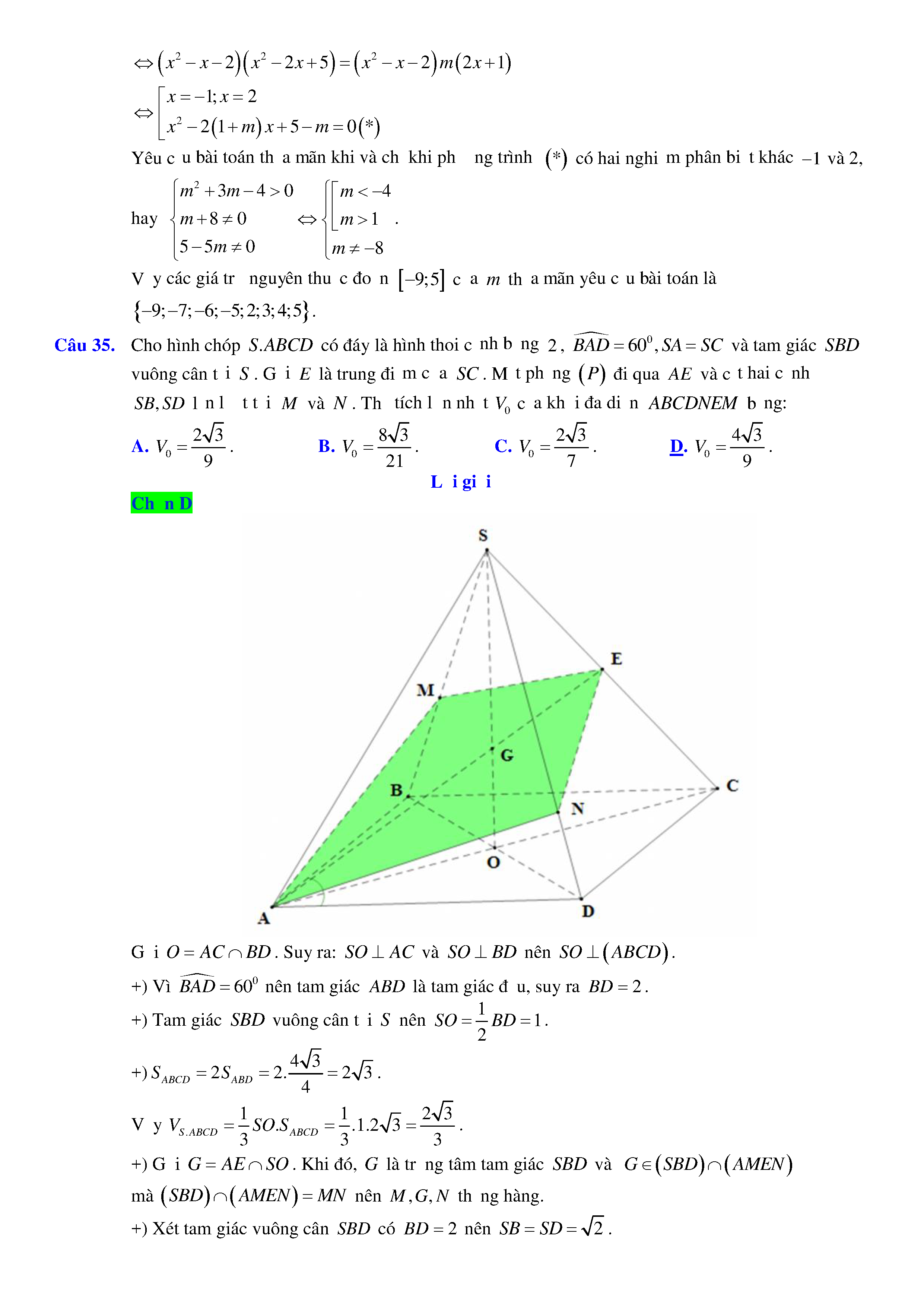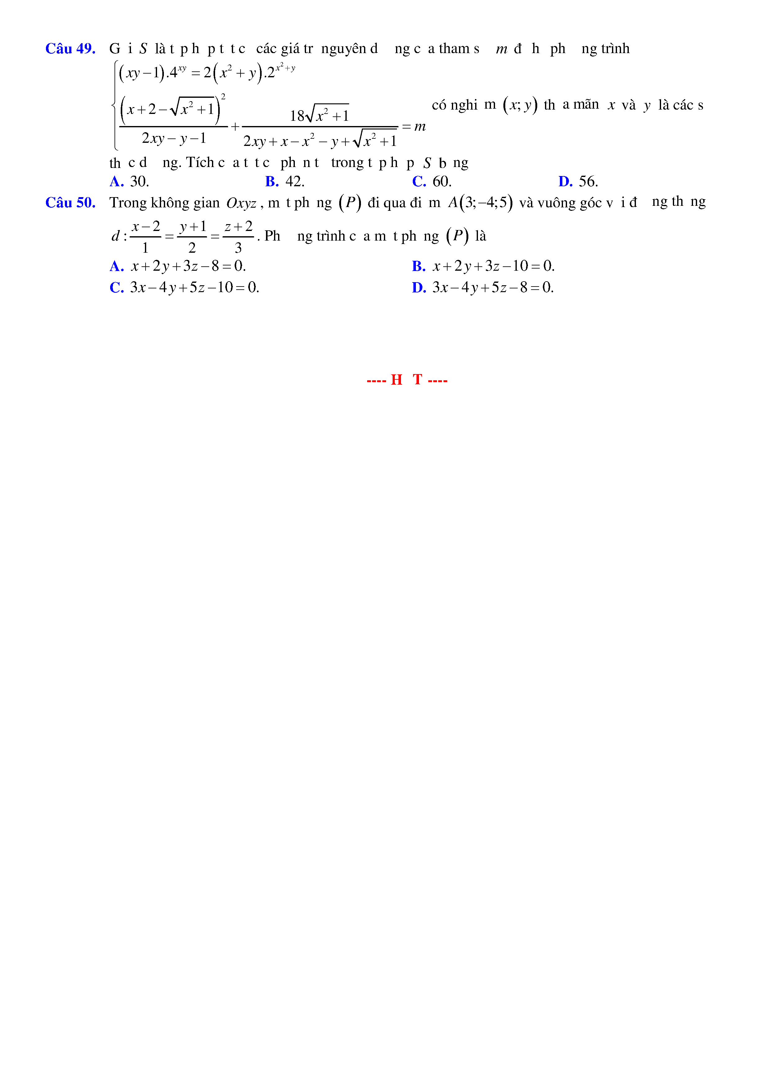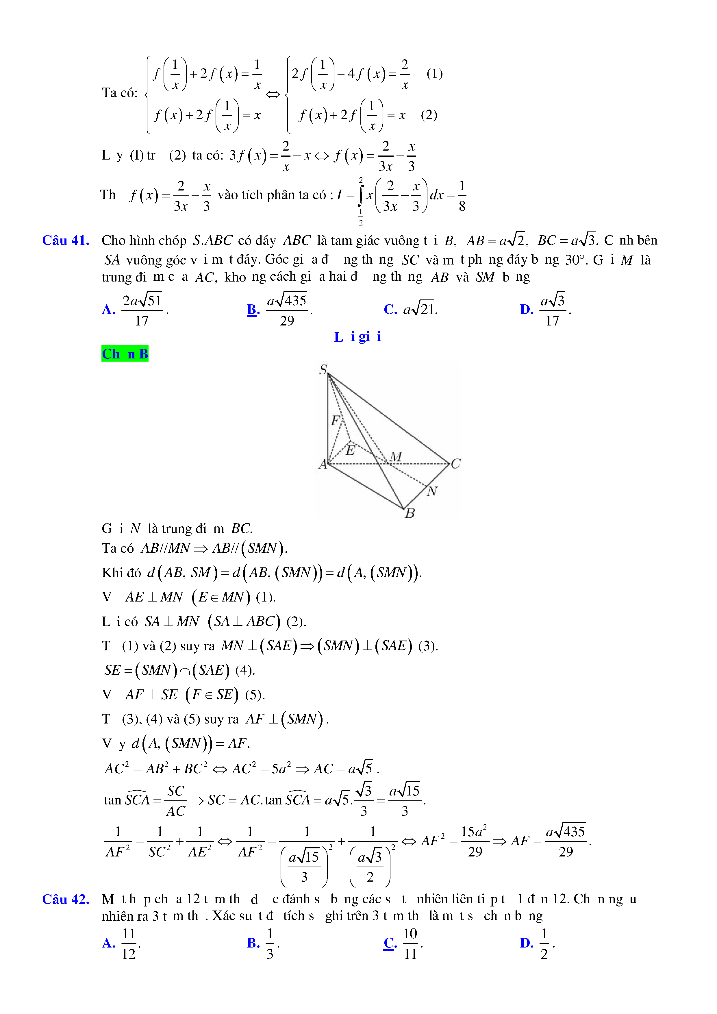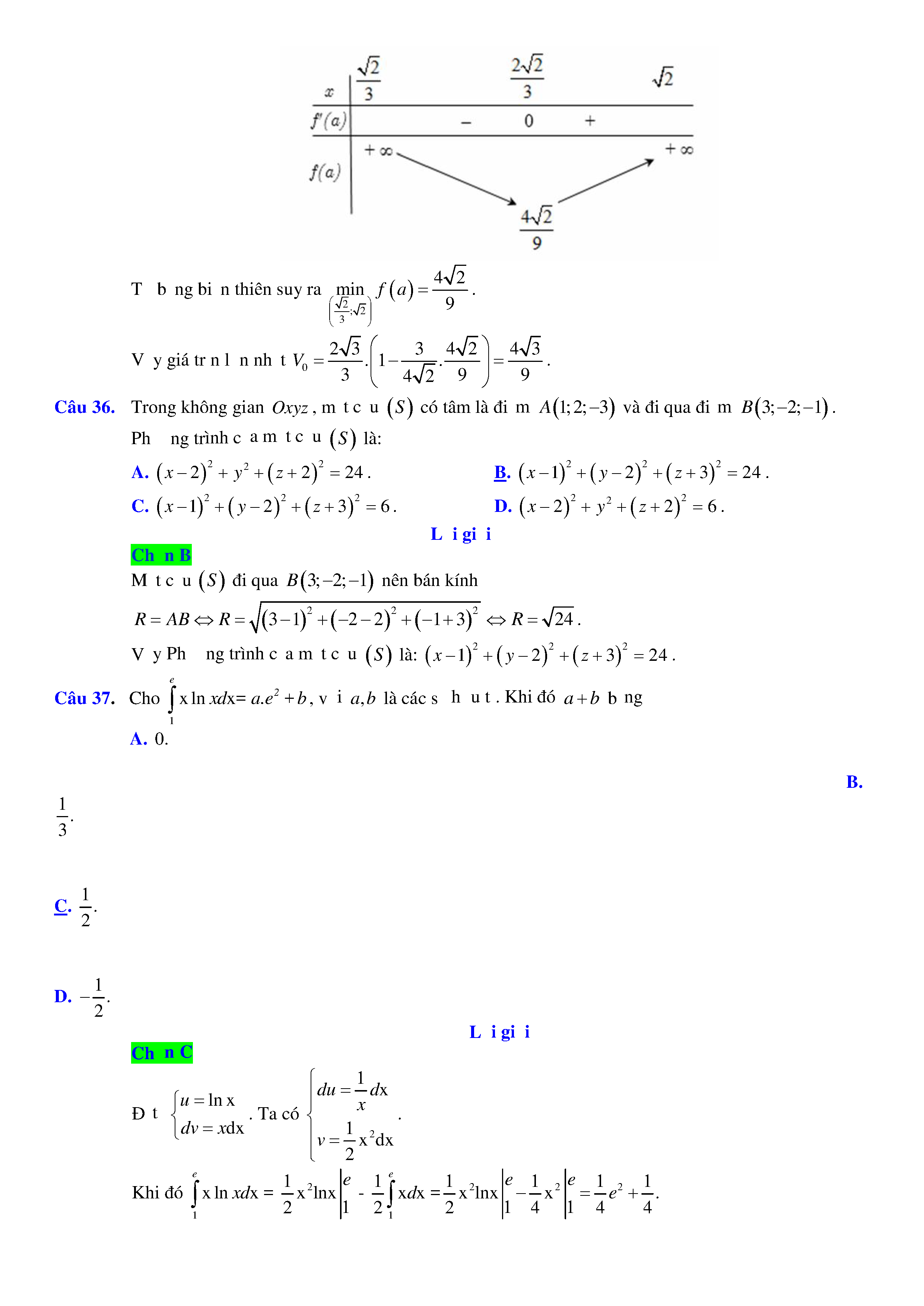 Đề thi thử THPT Năm 2020 môn Toán Sở GD - ĐT Bắc Giang - lần 1