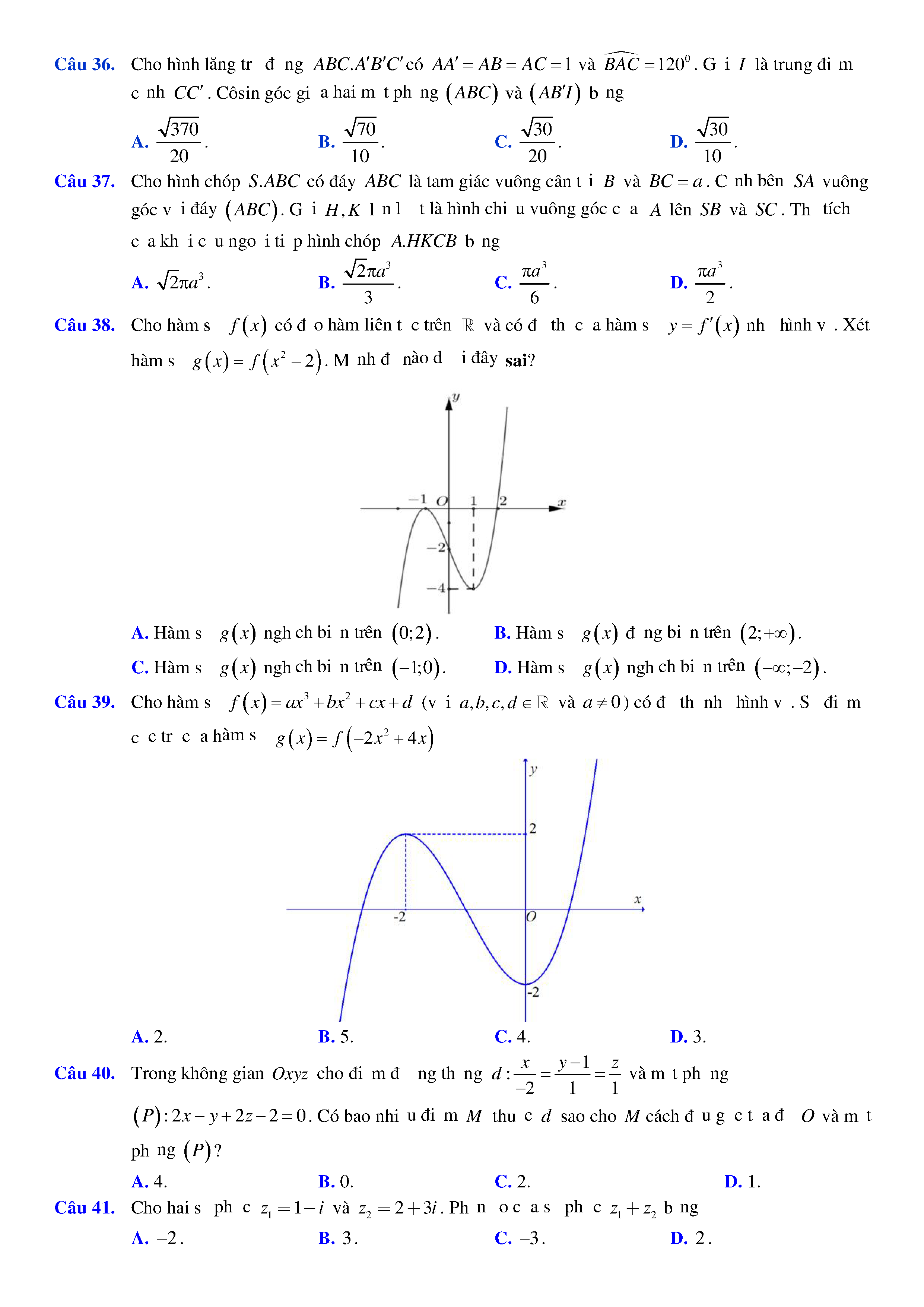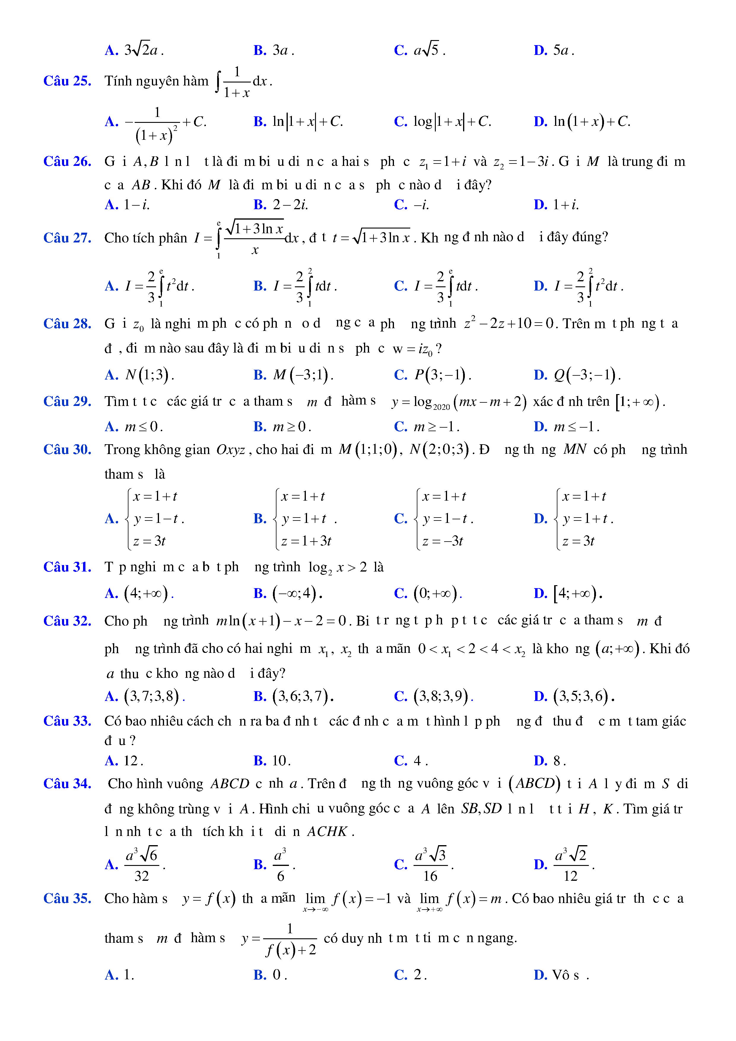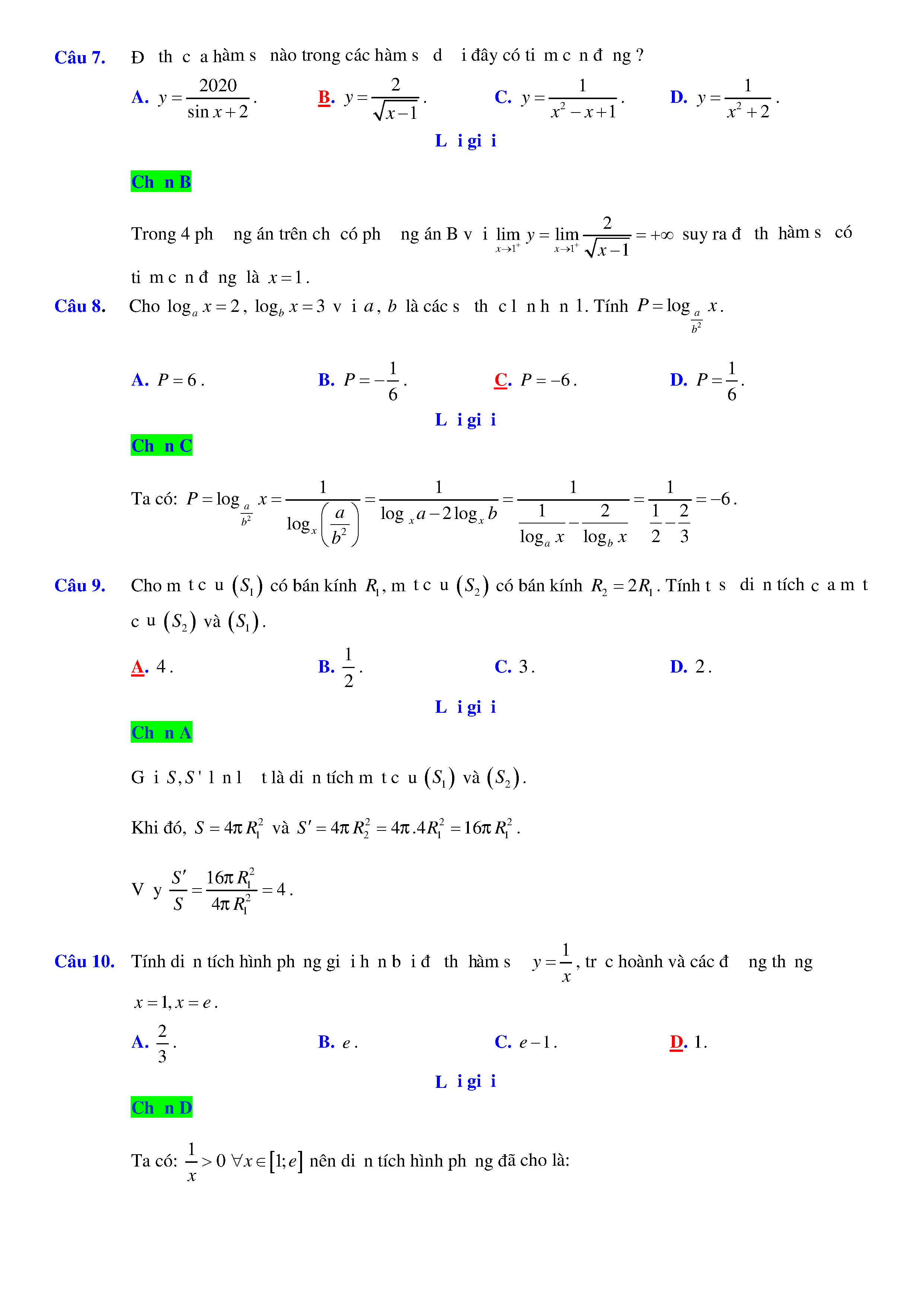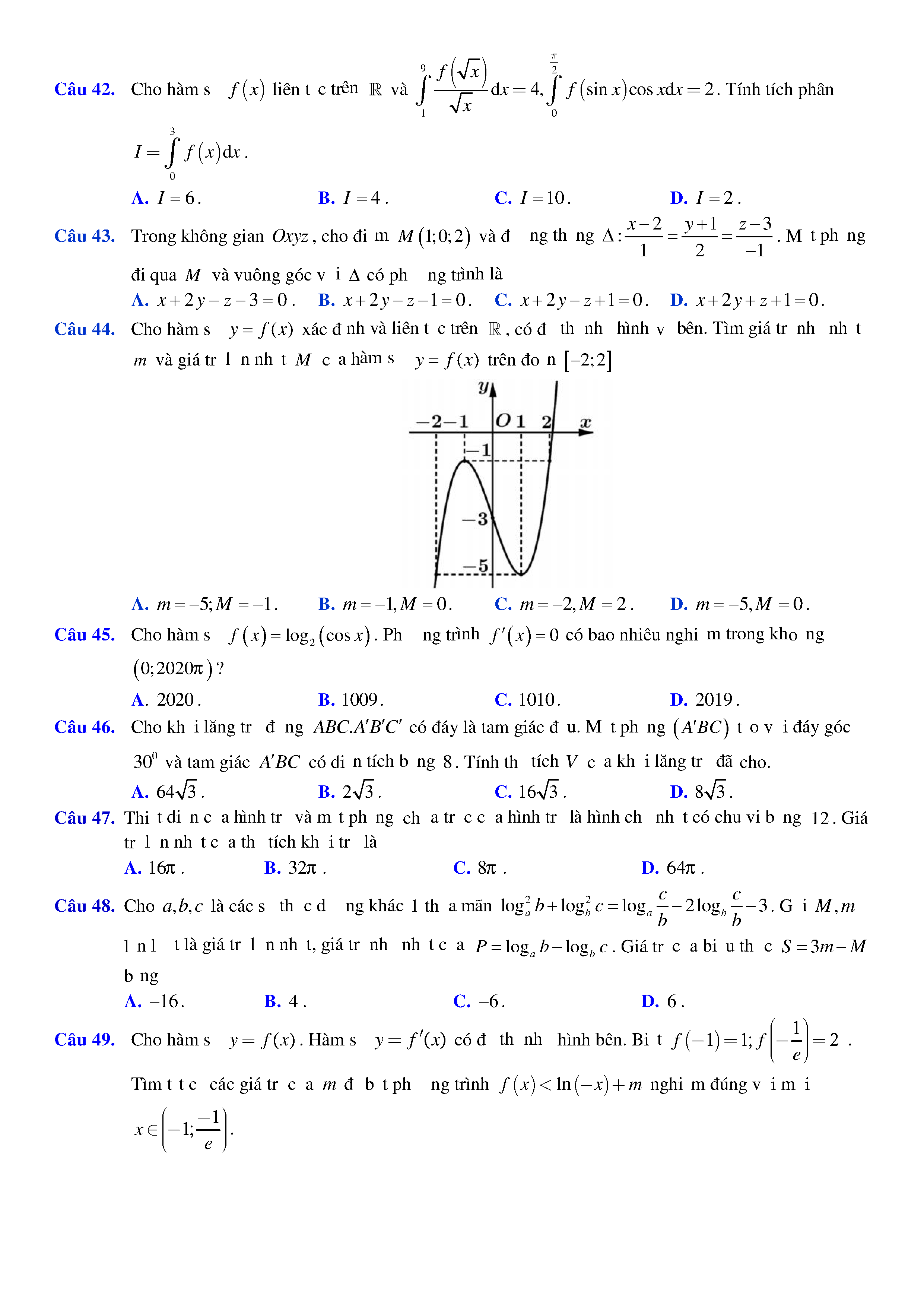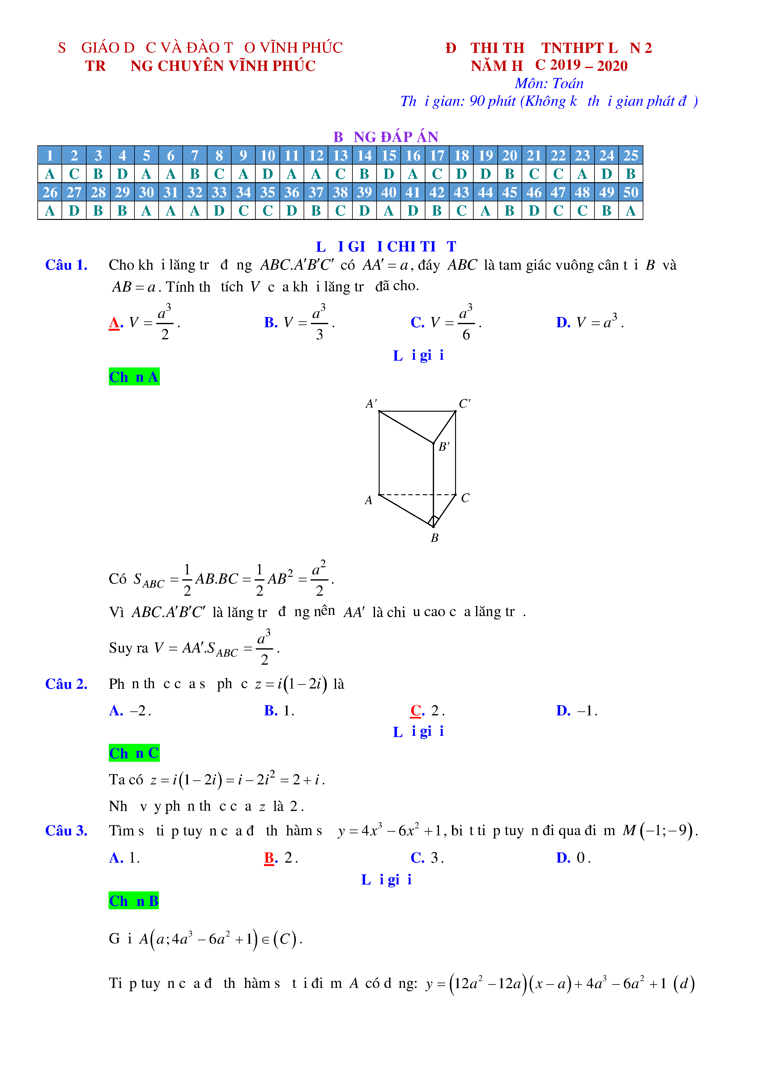 Đề thi thử THPT Năm 2020 môn Toán Trường THPT Chuyên Vĩnh Phúc - lần 2
