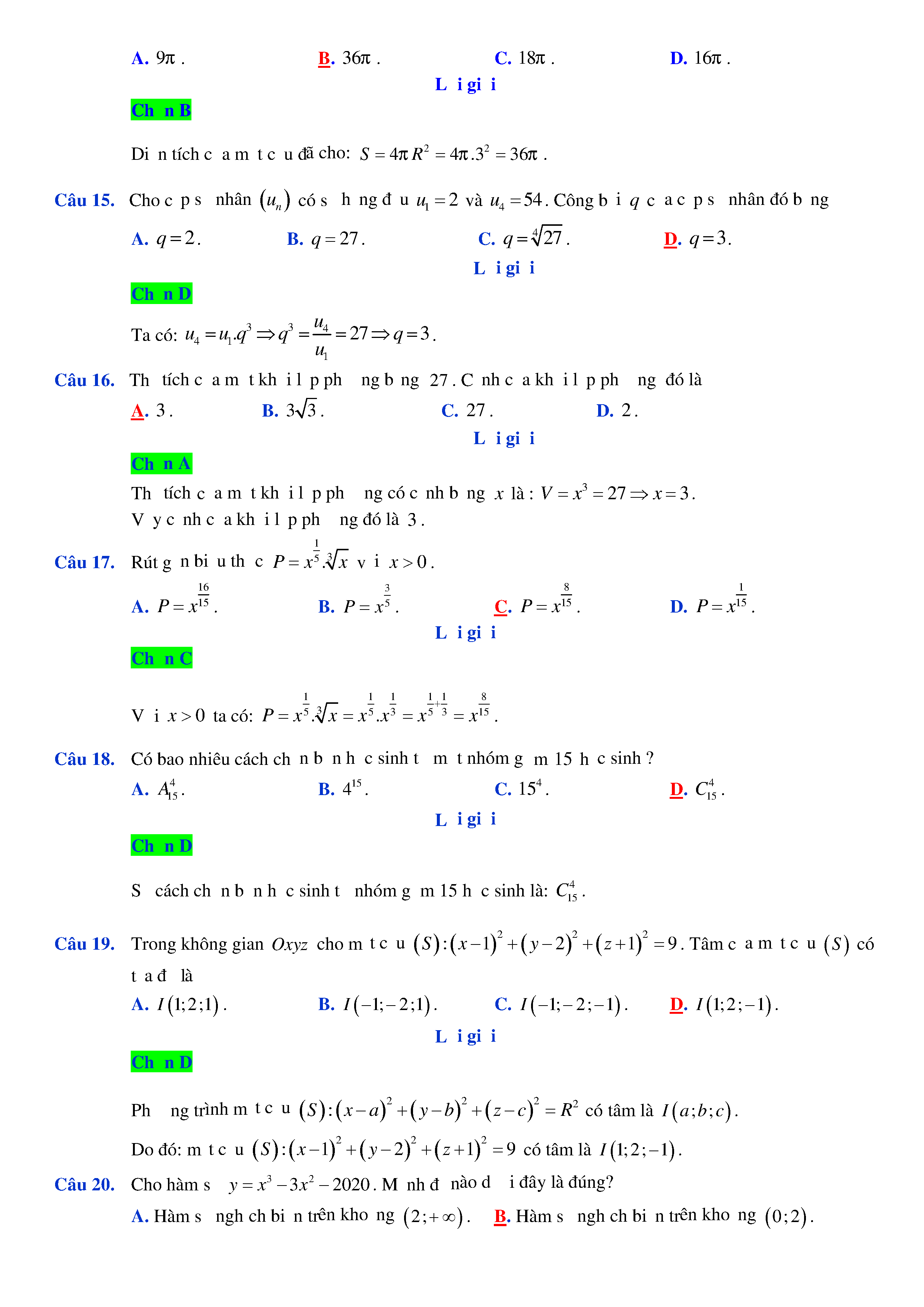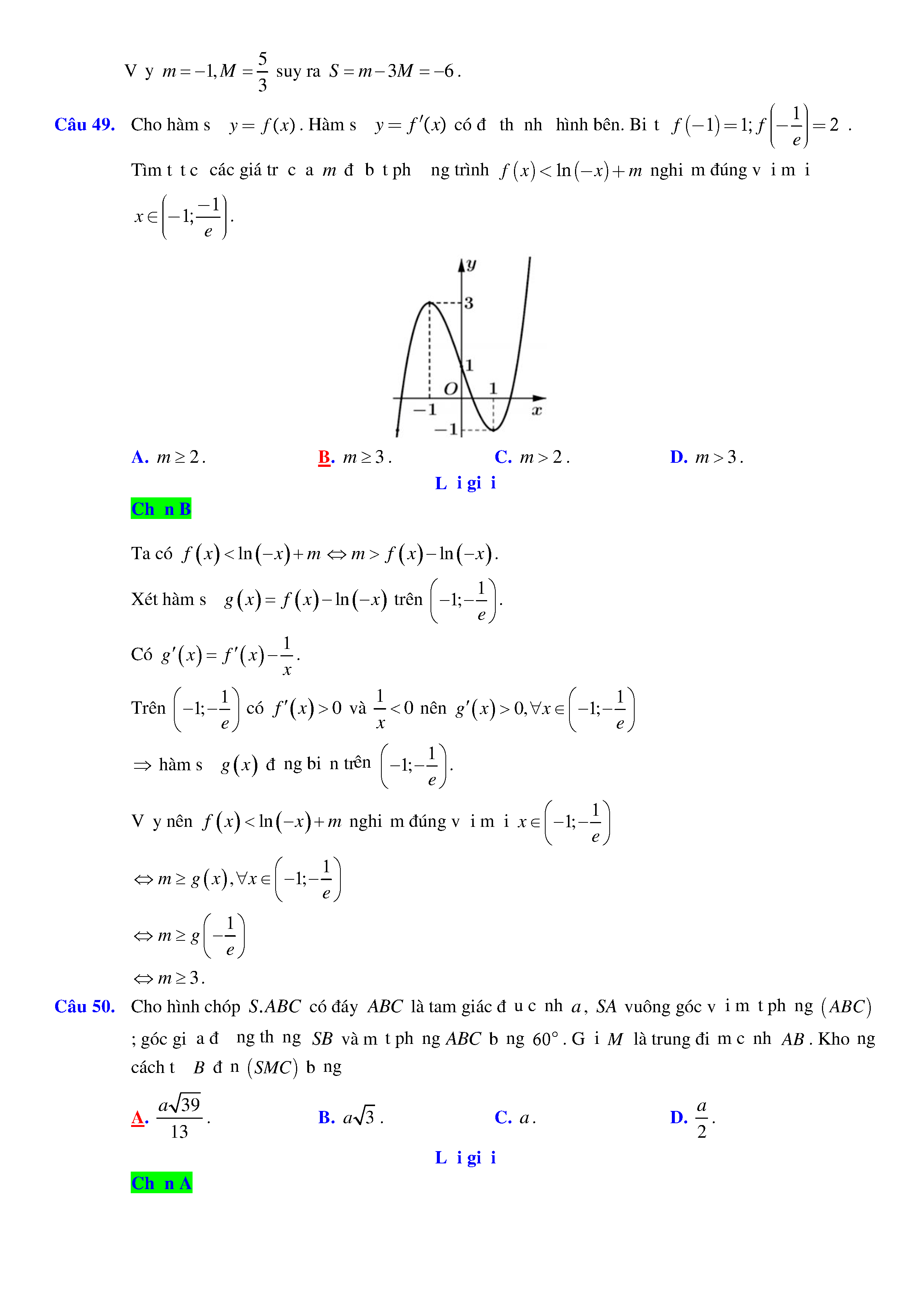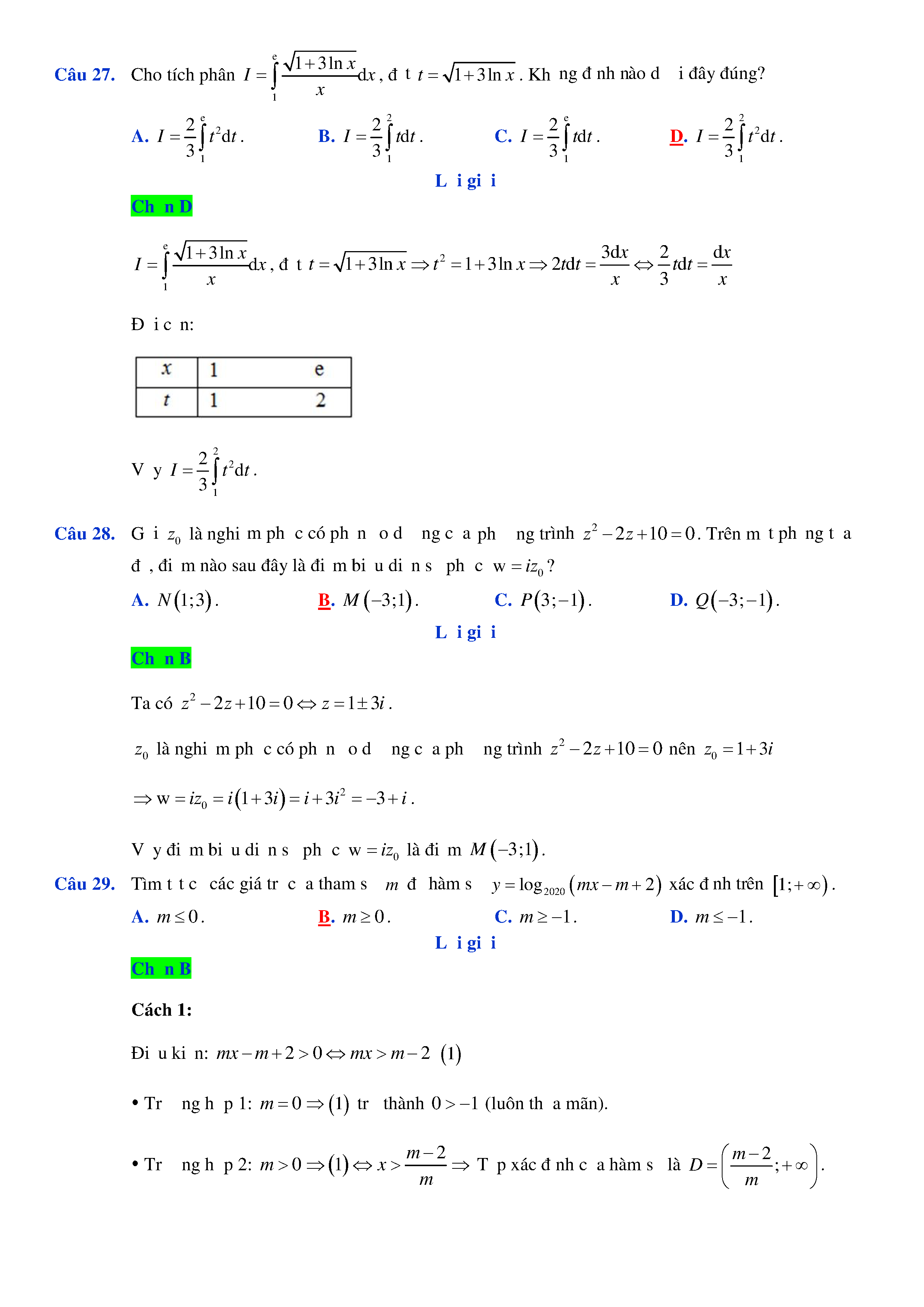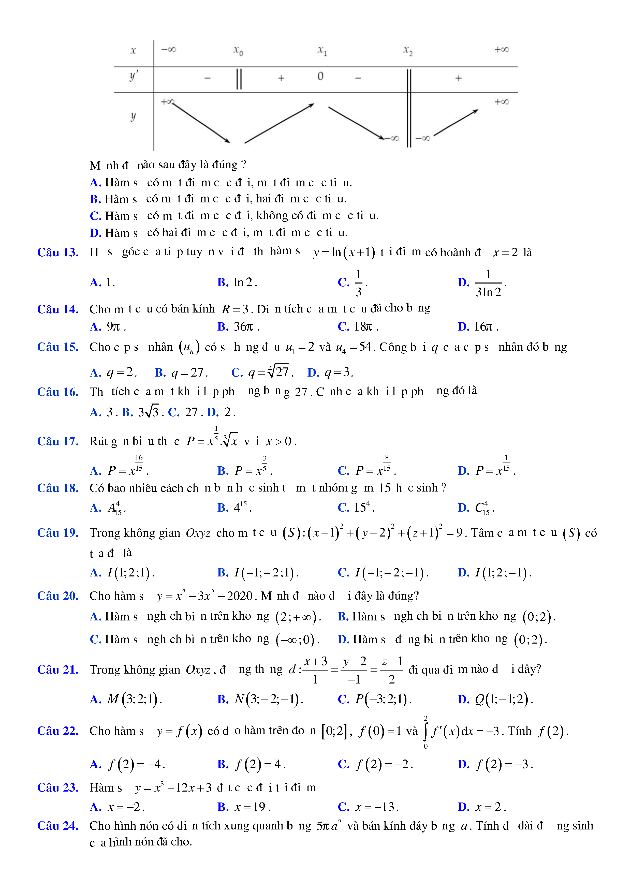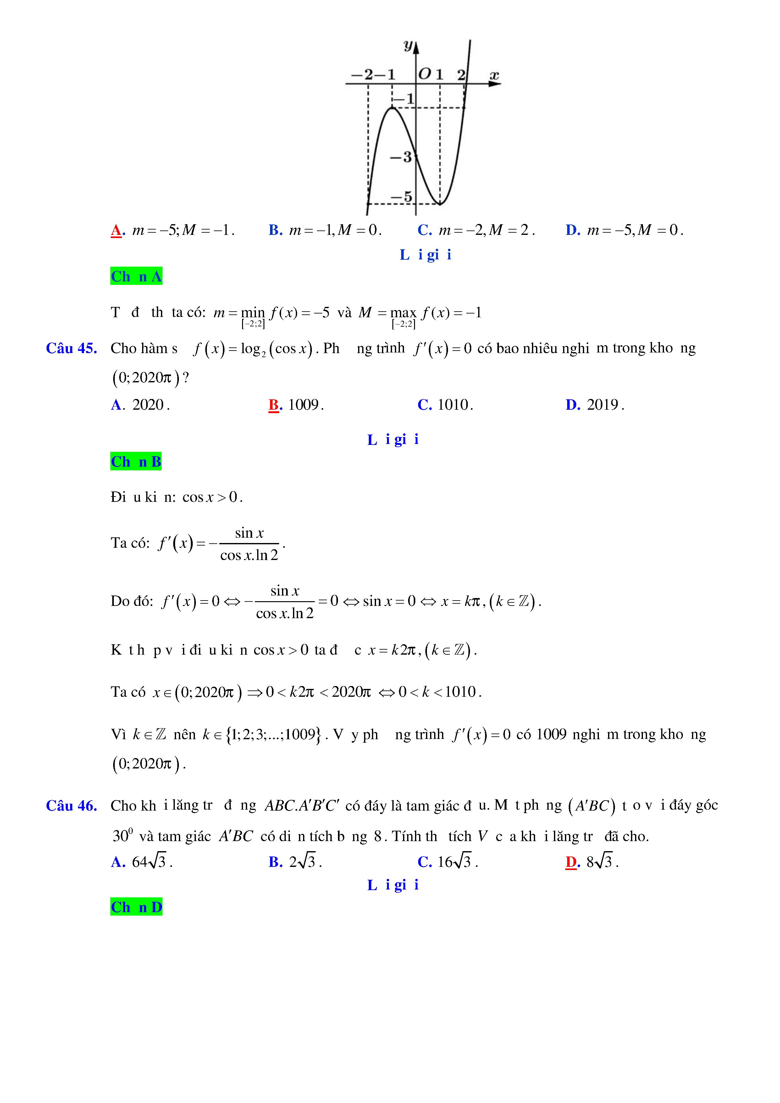 Đề thi thử THPT Năm 2020 môn Toán Trường THPT Chuyên Vĩnh Phúc - lần 2