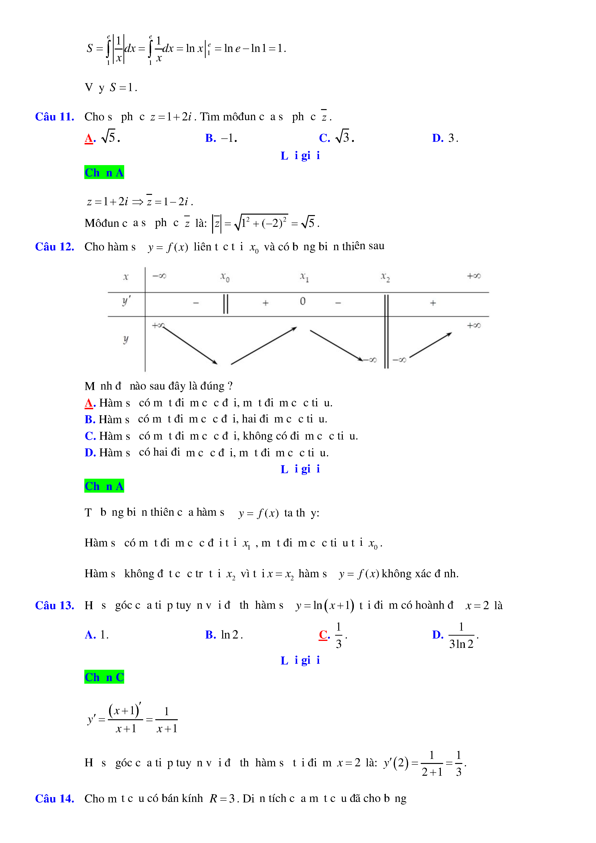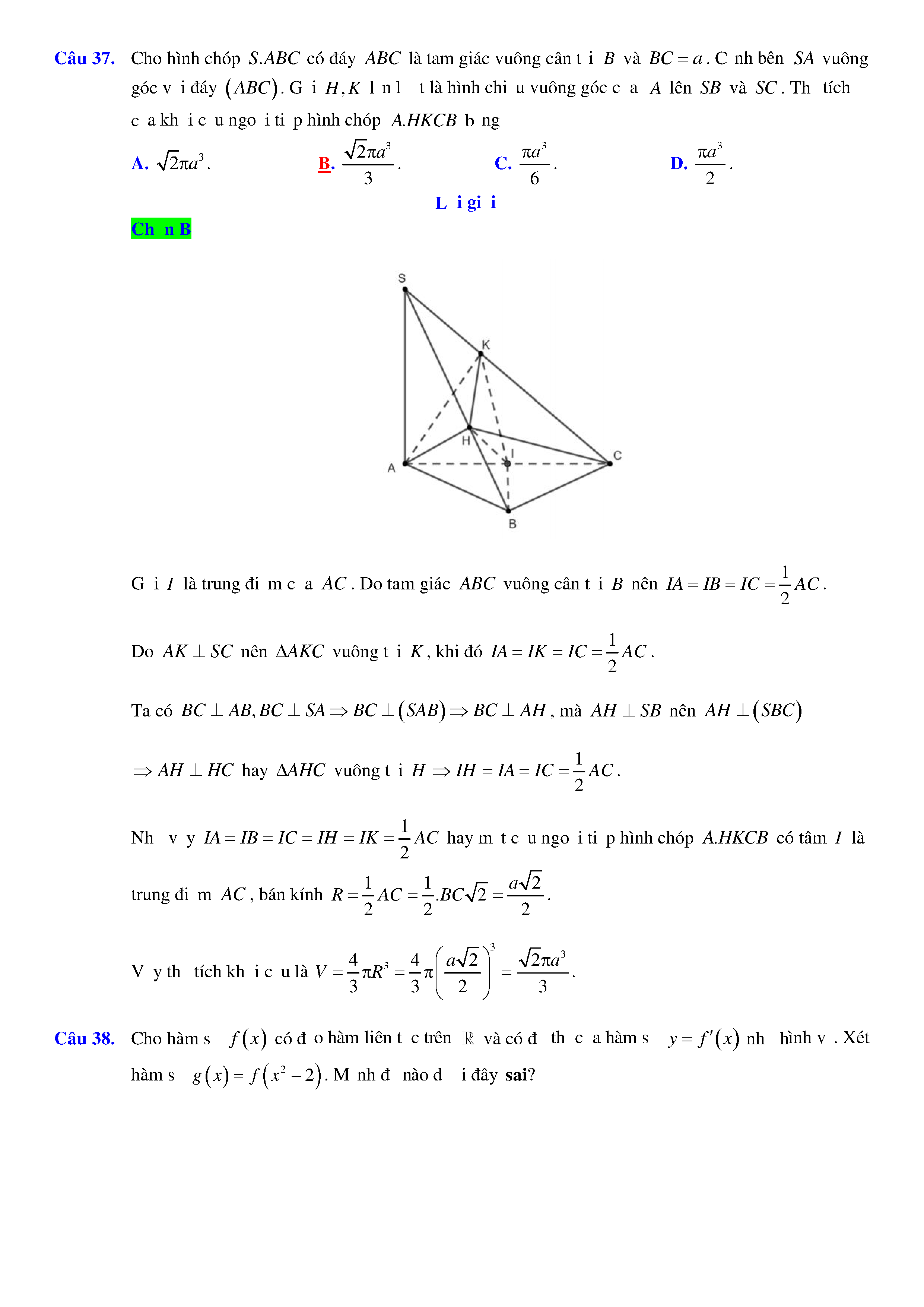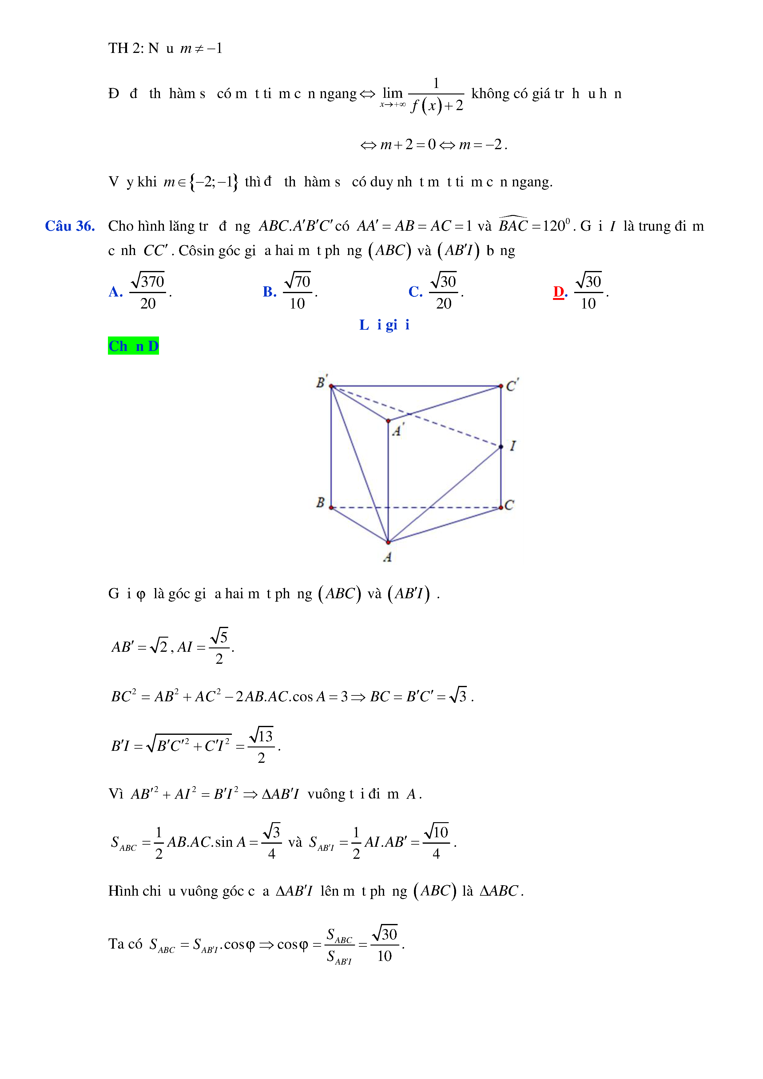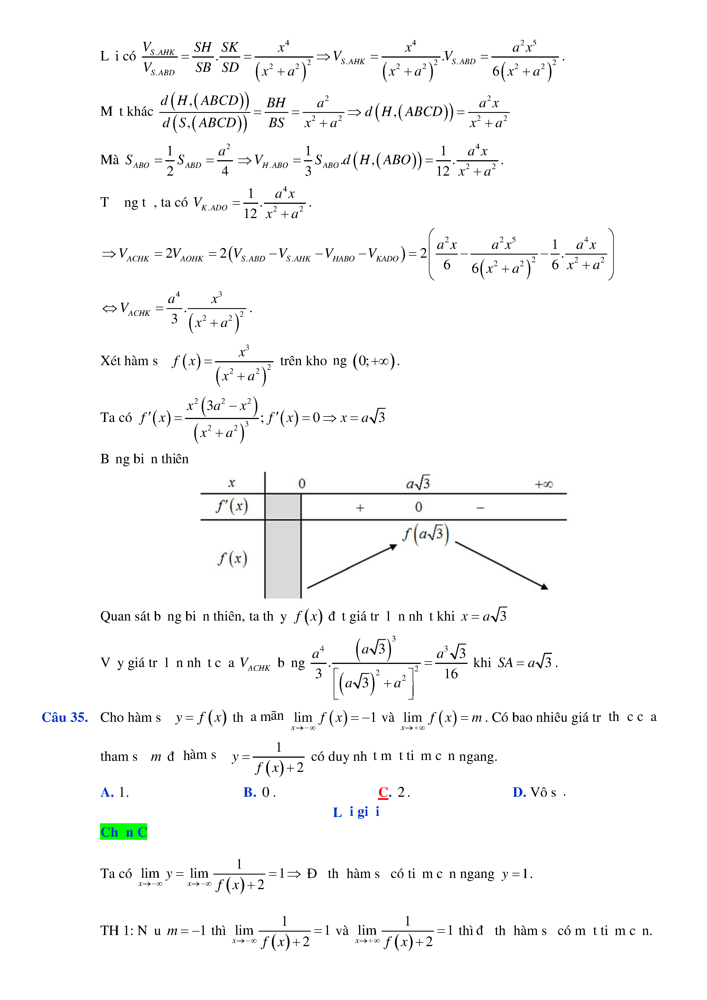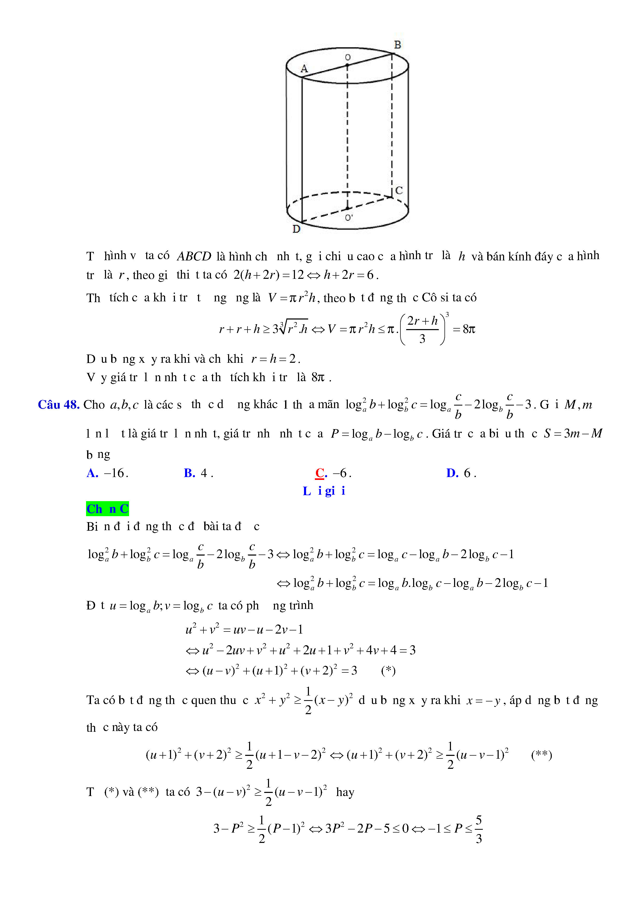 Đề thi thử THPT Năm 2020 môn Toán Trường THPT Chuyên Vĩnh Phúc - lần 2