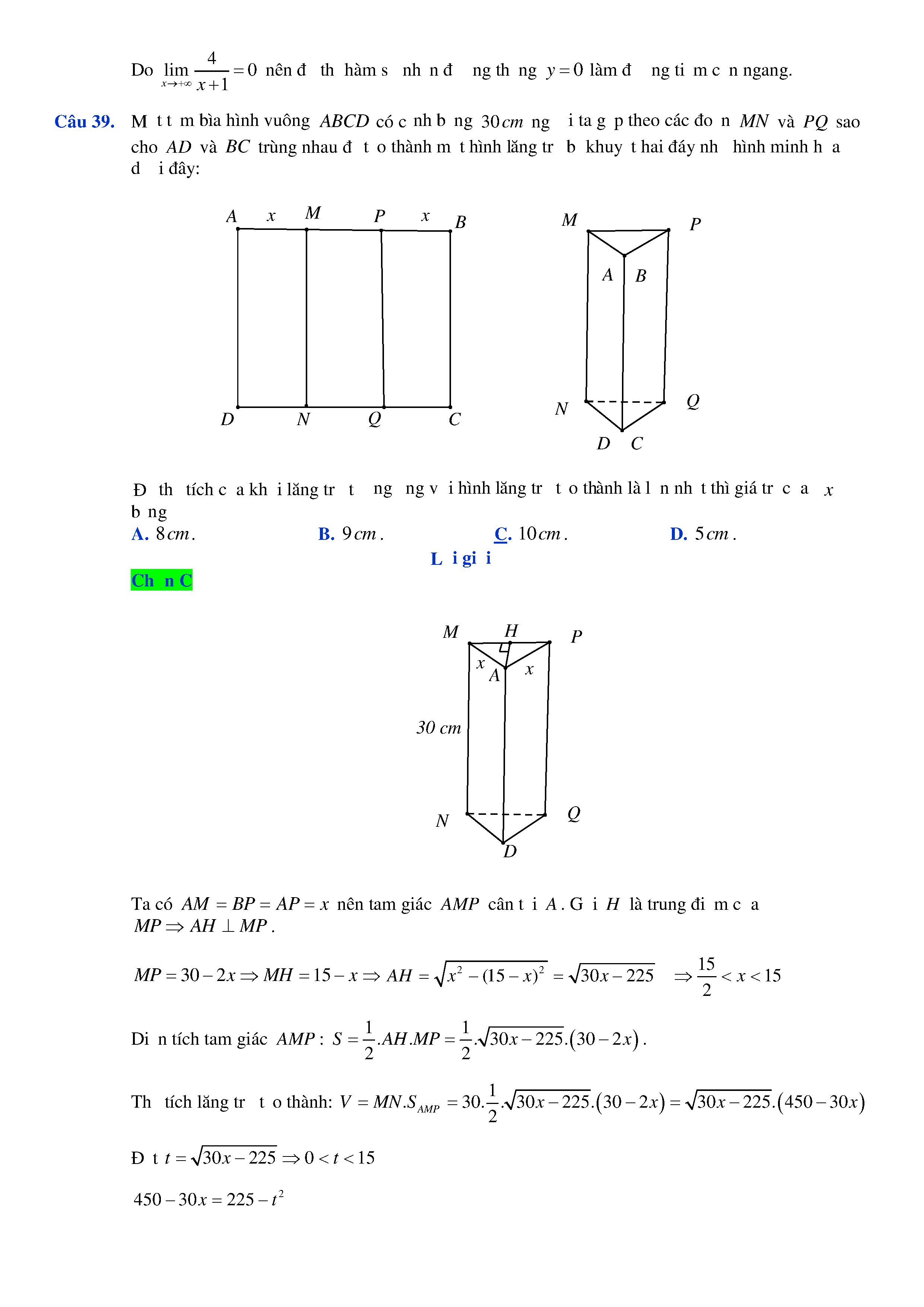 Đề thi thử THPT Năm 2020 môn Toán Trường THPT Đặng Thai Mai - Thanh Hóa - lần 1