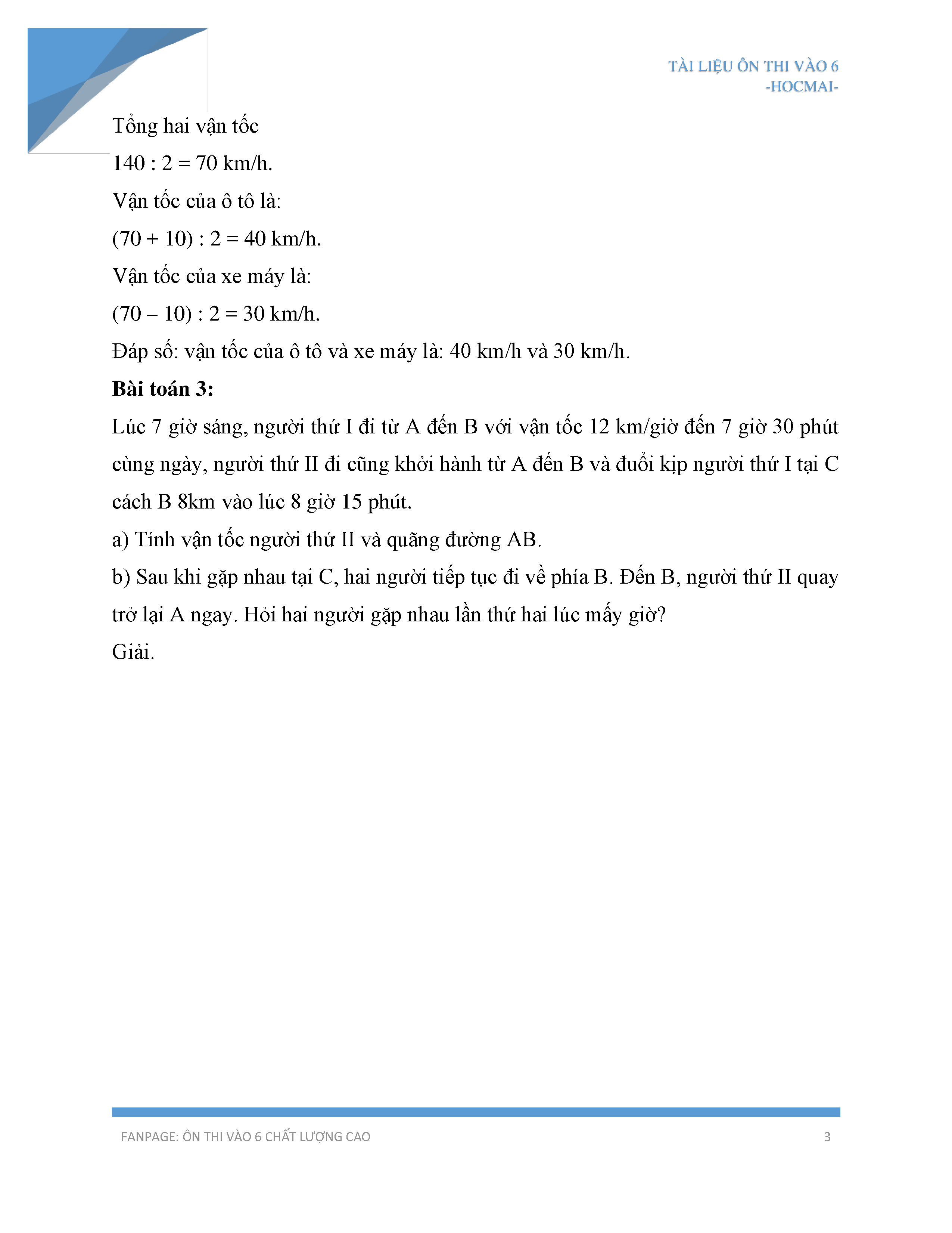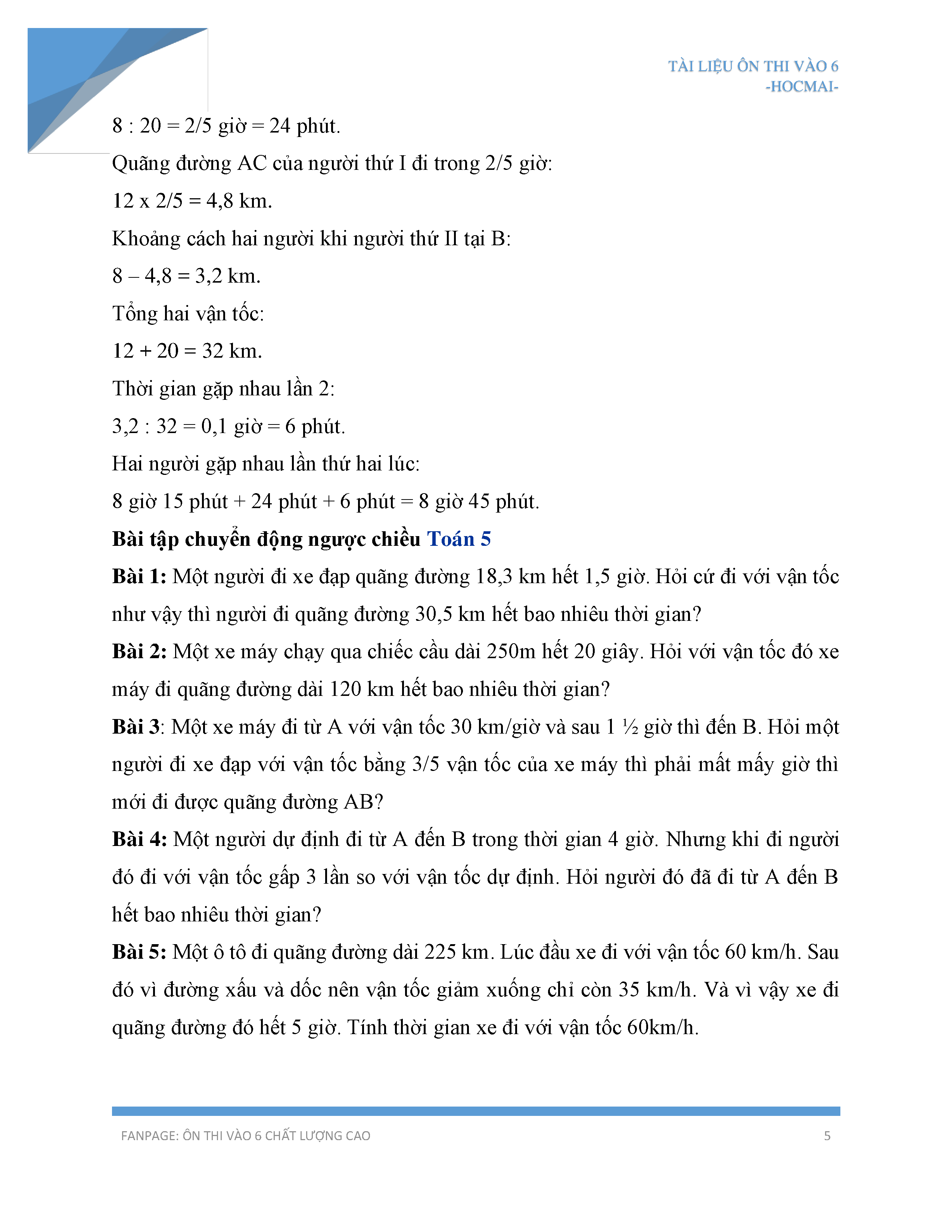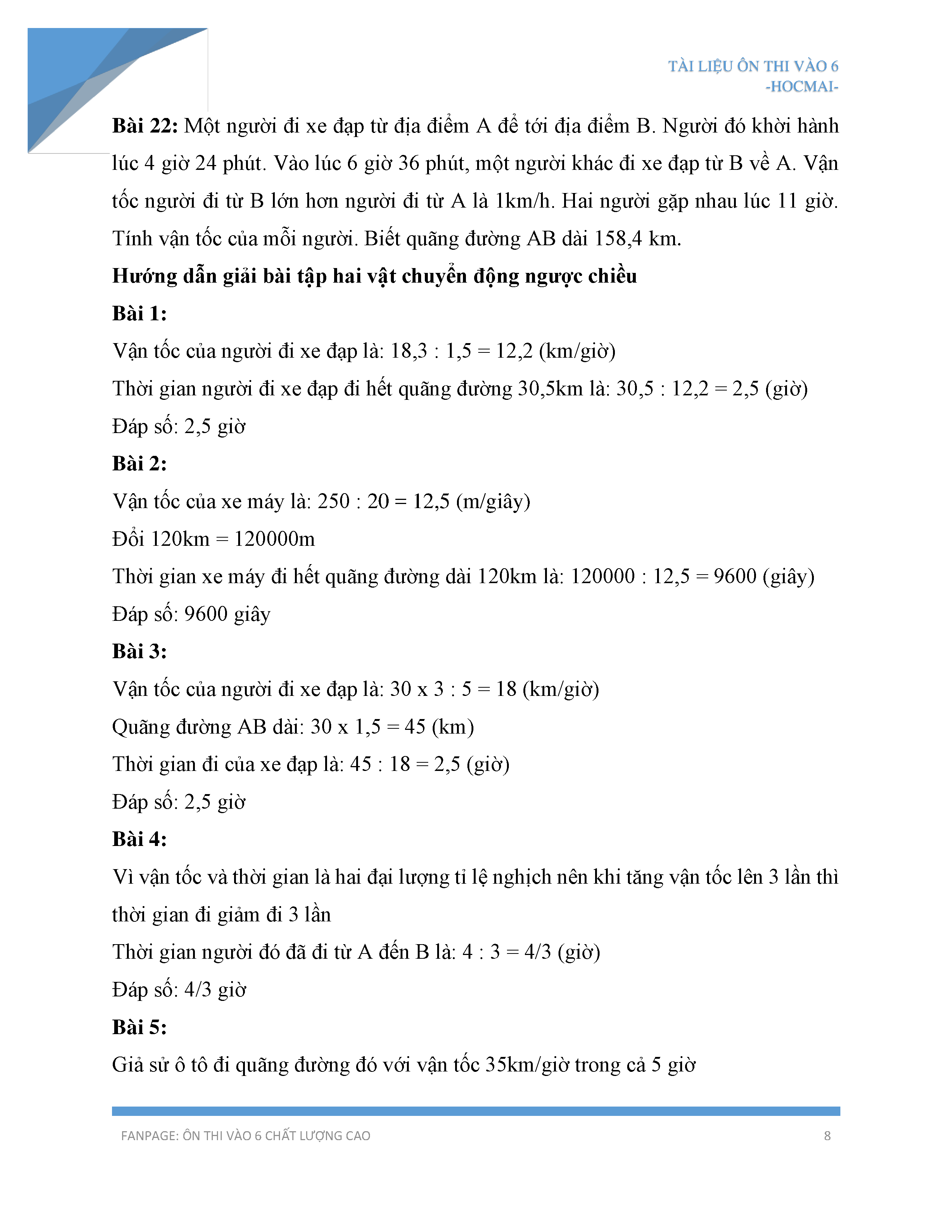 Hướng dẫn cách giải bài toán chuyển động ngược chiều và gặp nhau