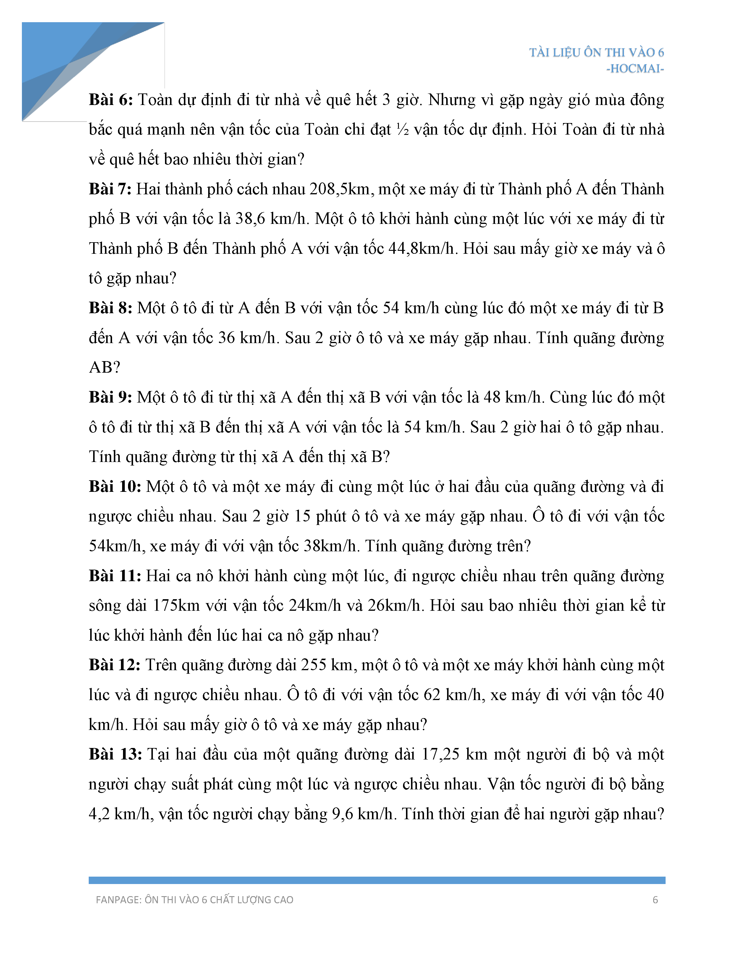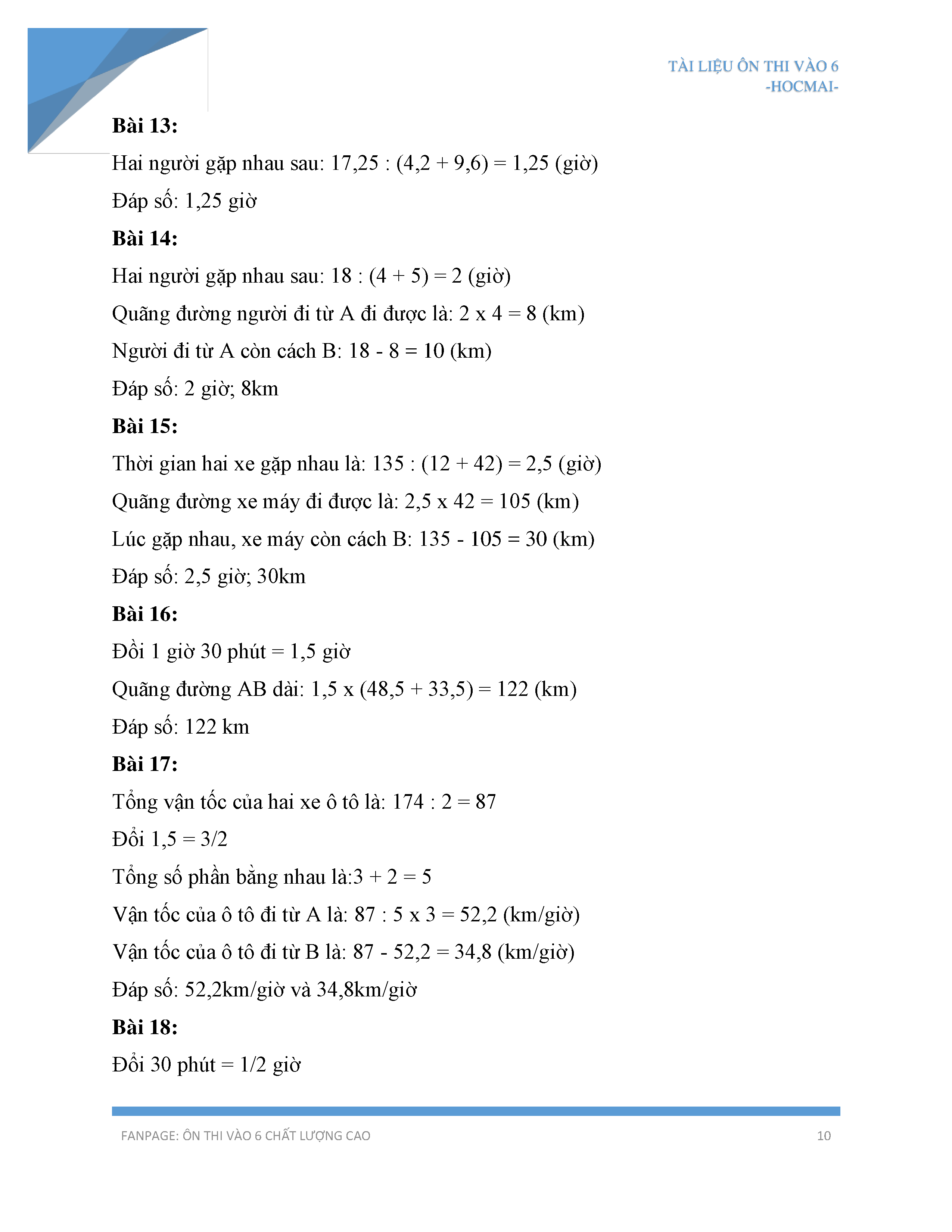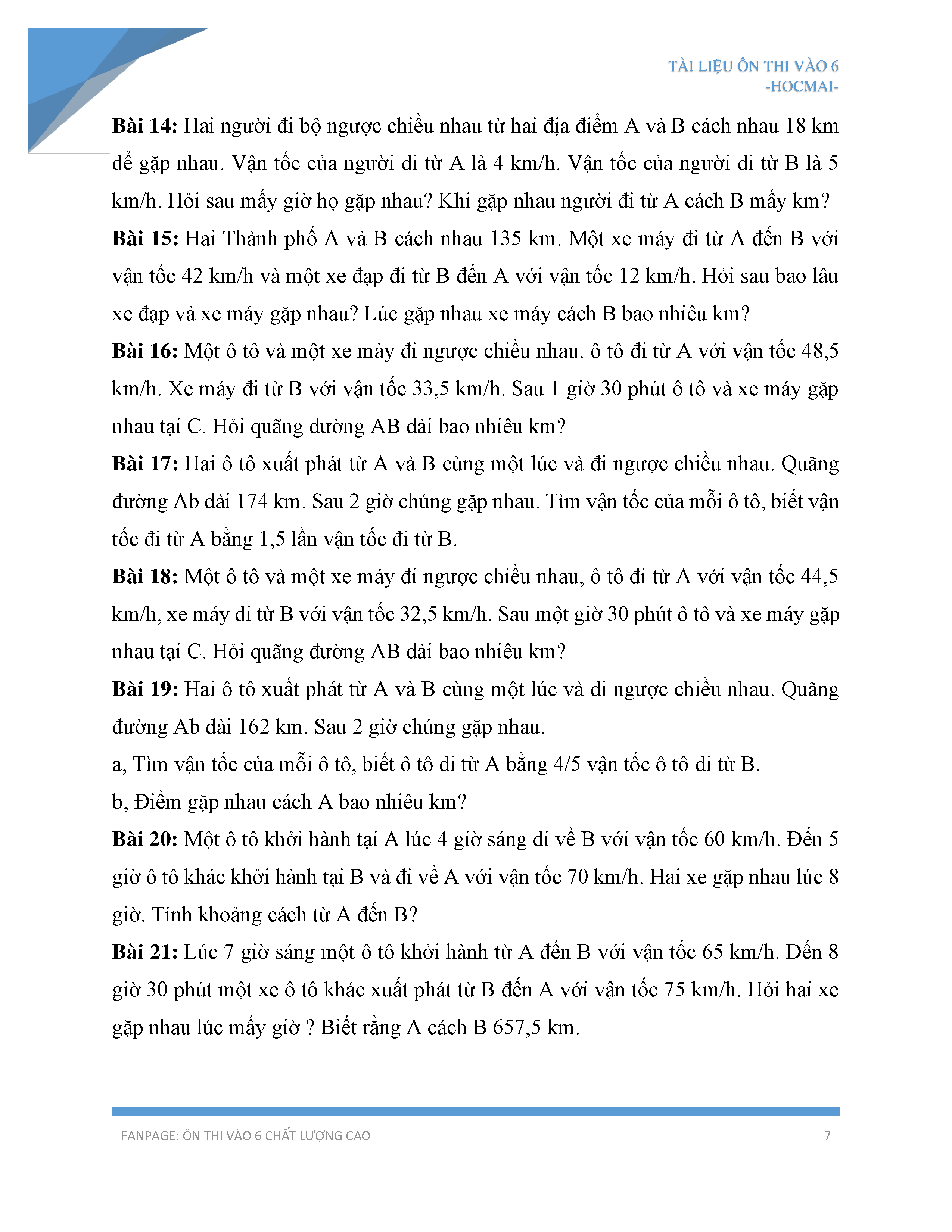 Hướng dẫn cách giải bài toán chuyển động ngược chiều và gặp nhau