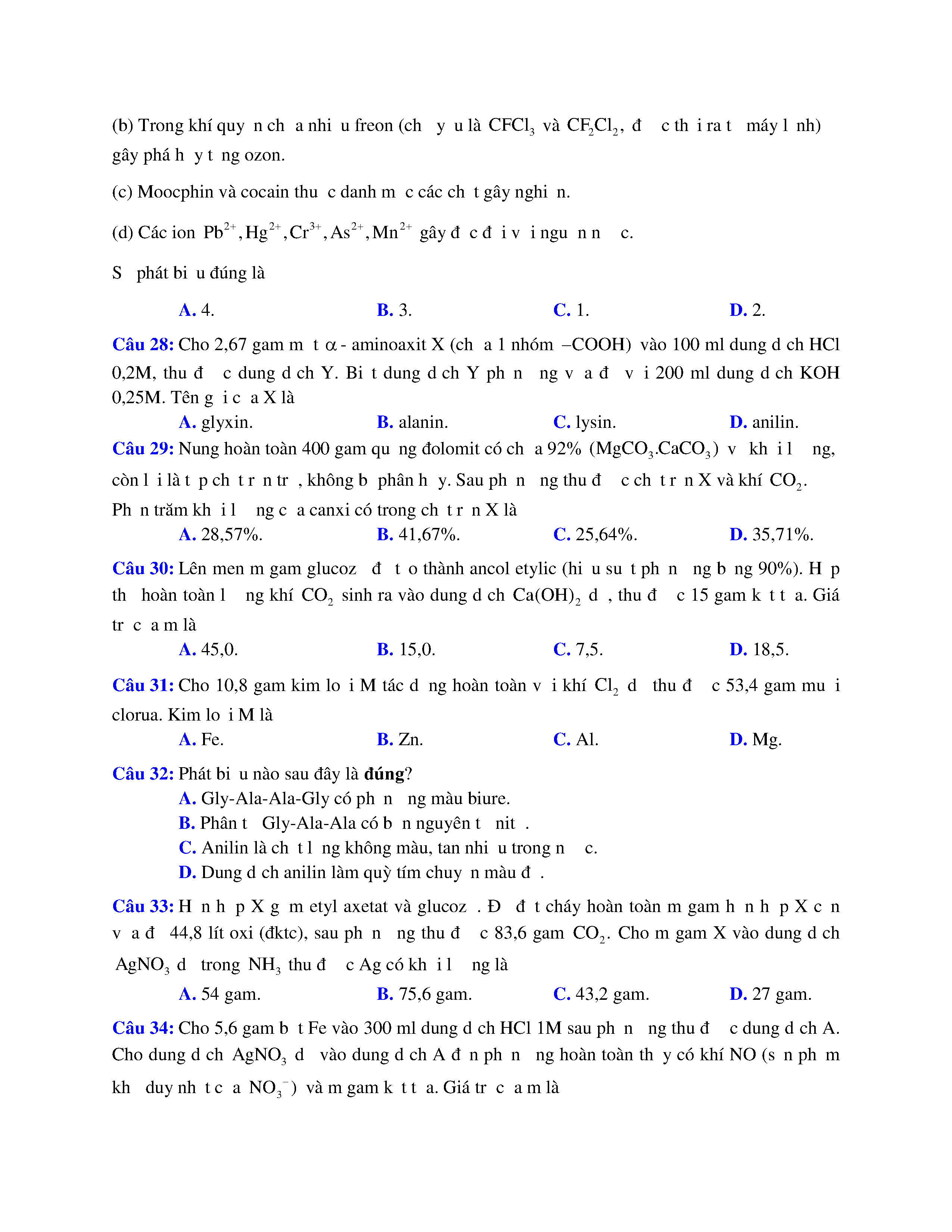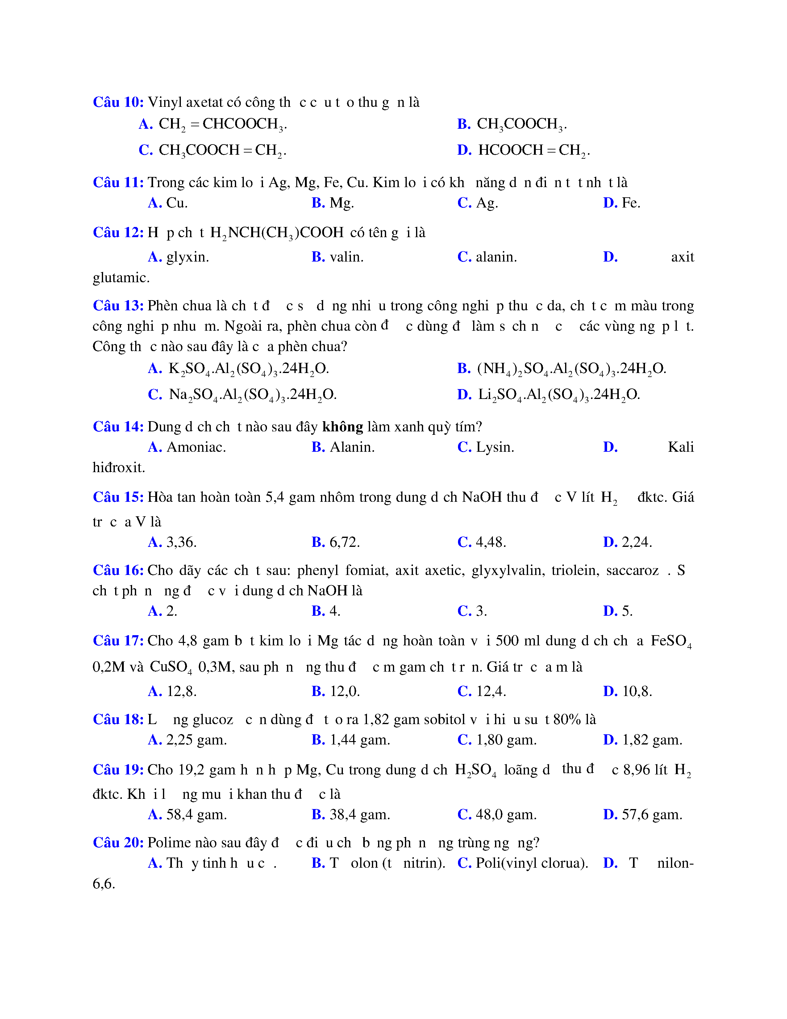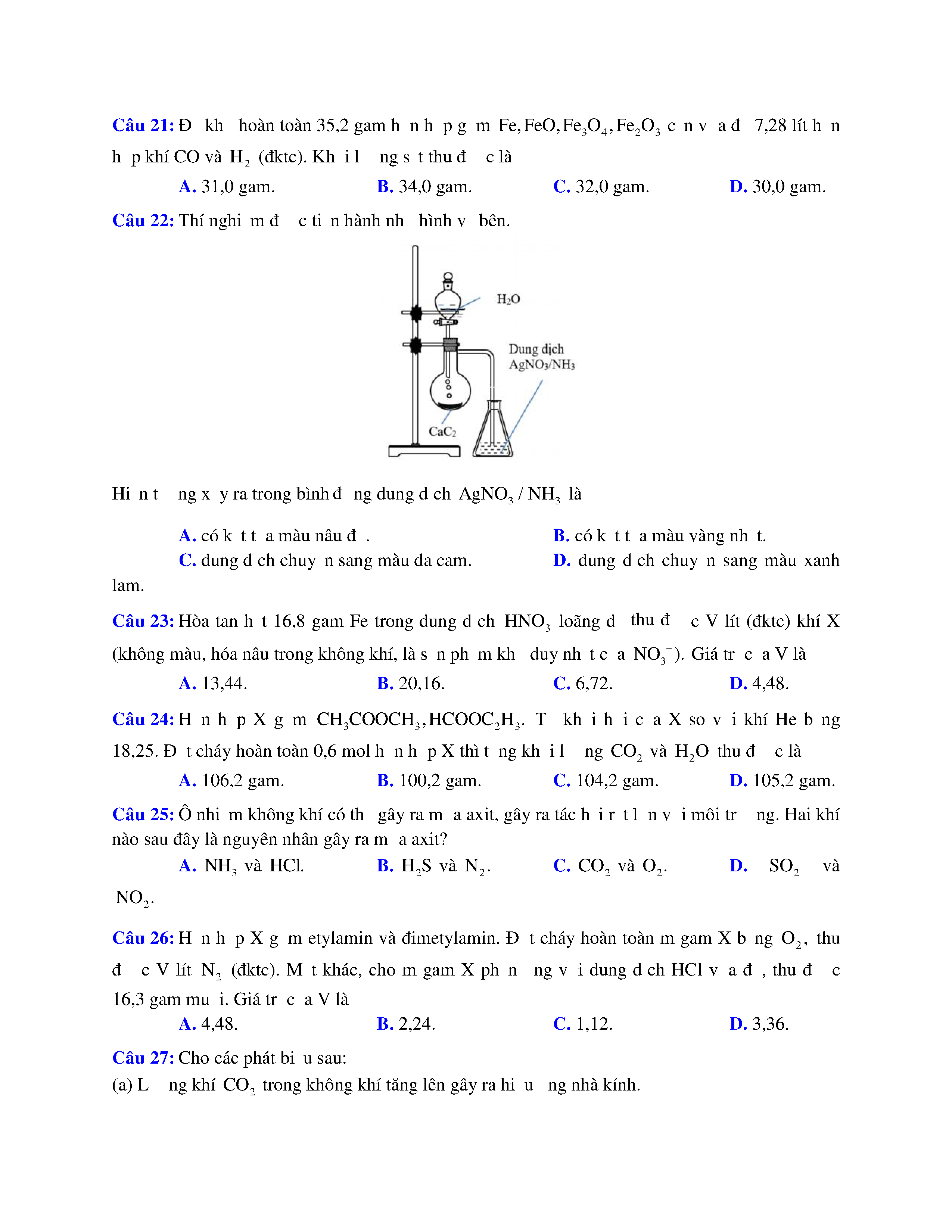 Đề thi Đánh giá công băng HKII Năm 2020 môn Hóa học Trường THPT Chuyên KHTN Hà Nội