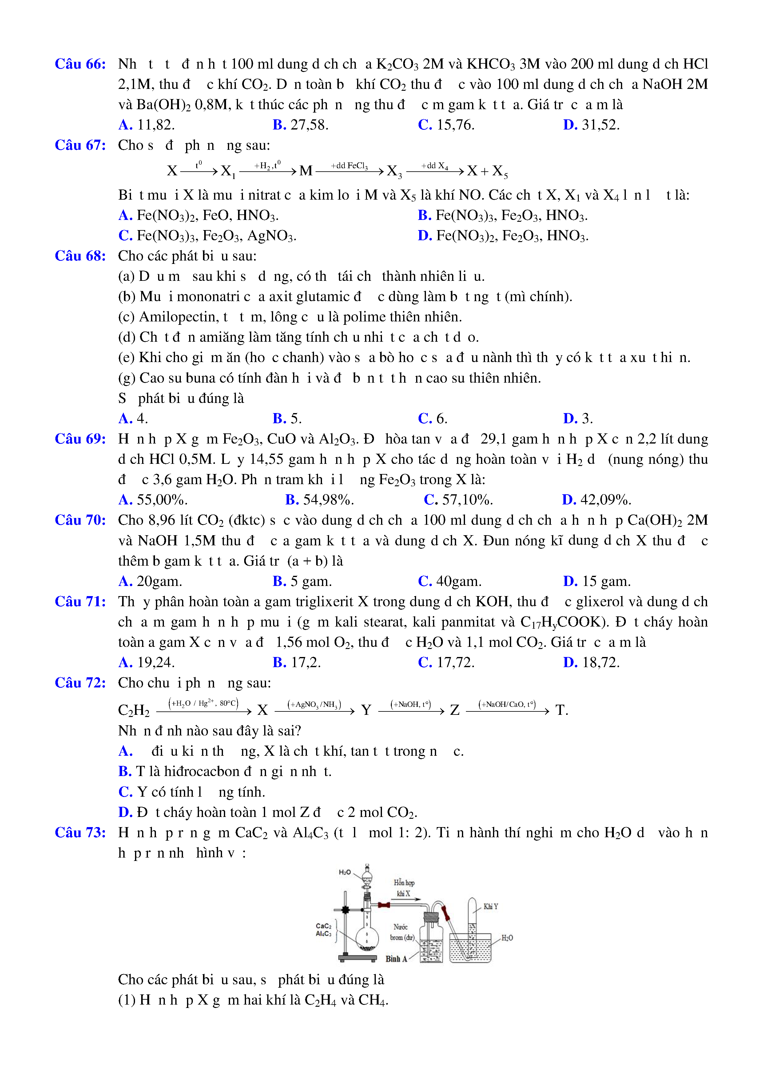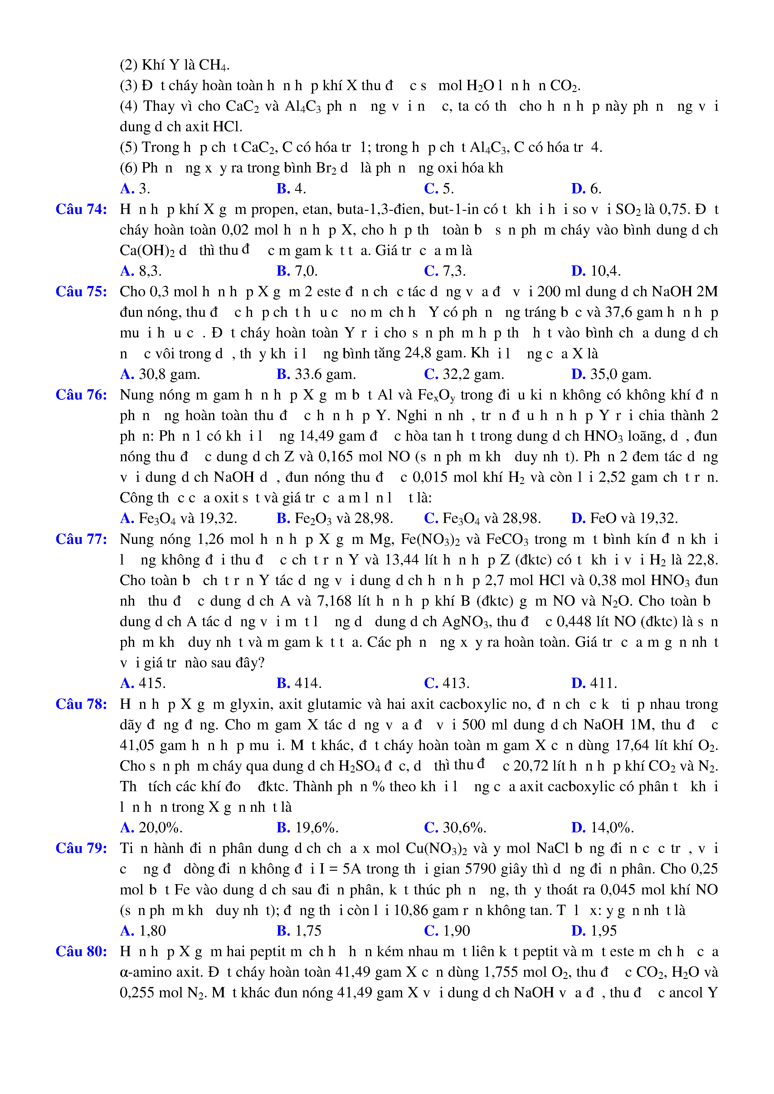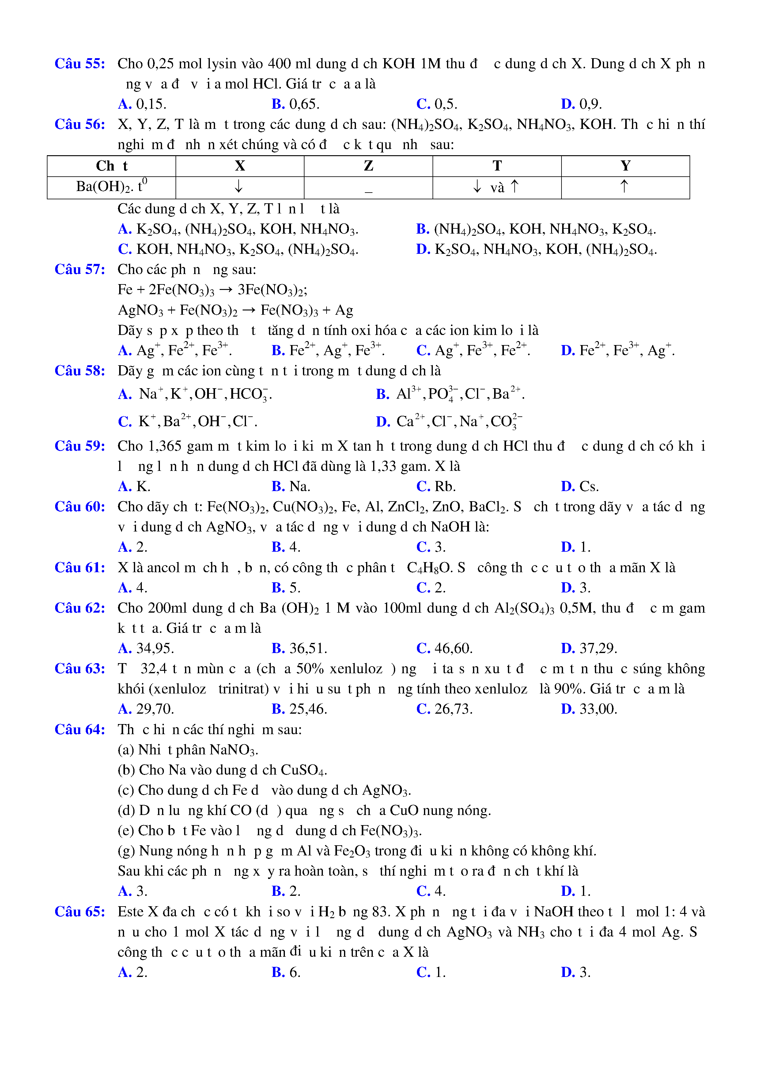 Đề thi thử THPT Năm 2020 môn Hóa học Trường THPT Chuyên Bắc Giang - lần 1