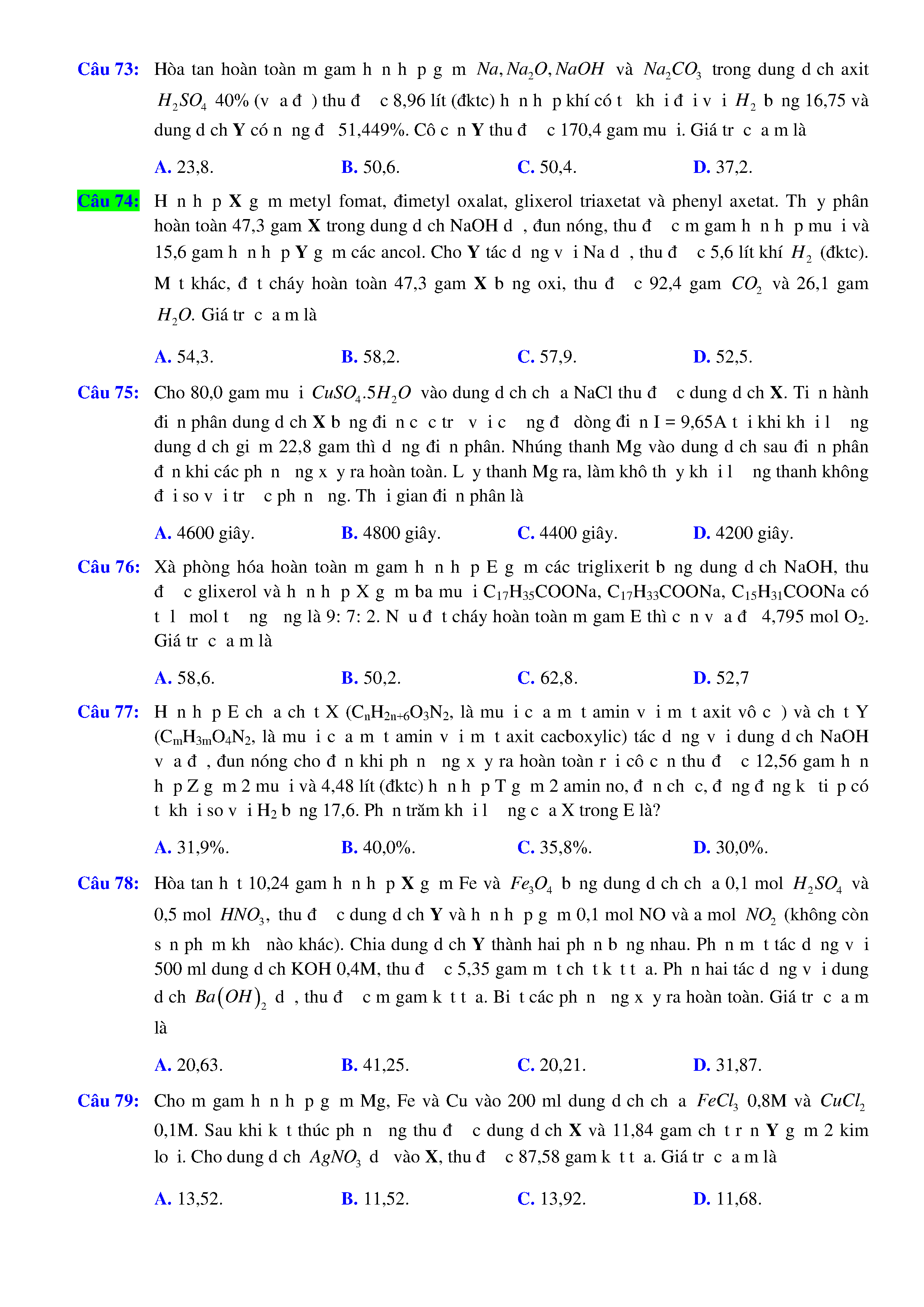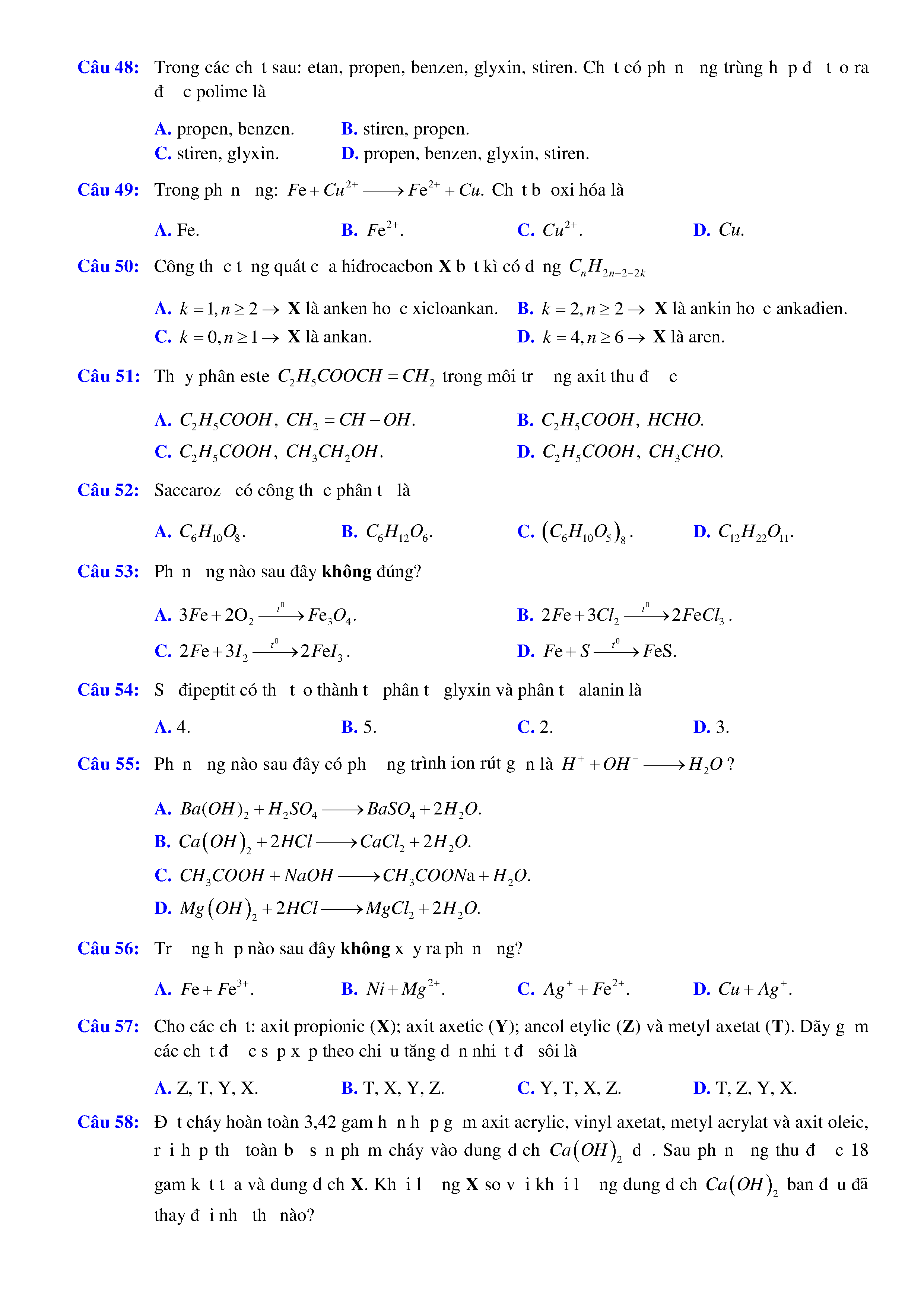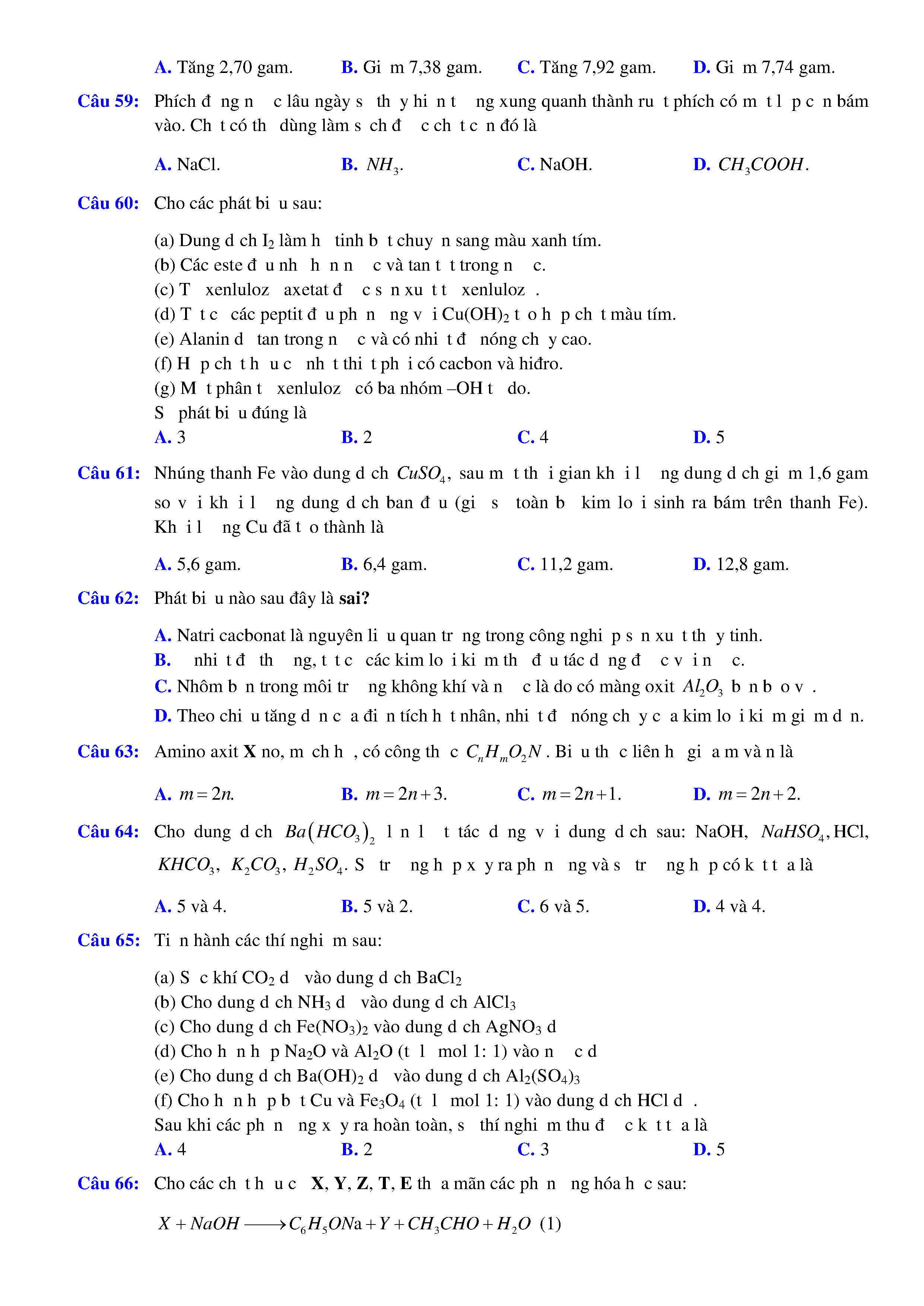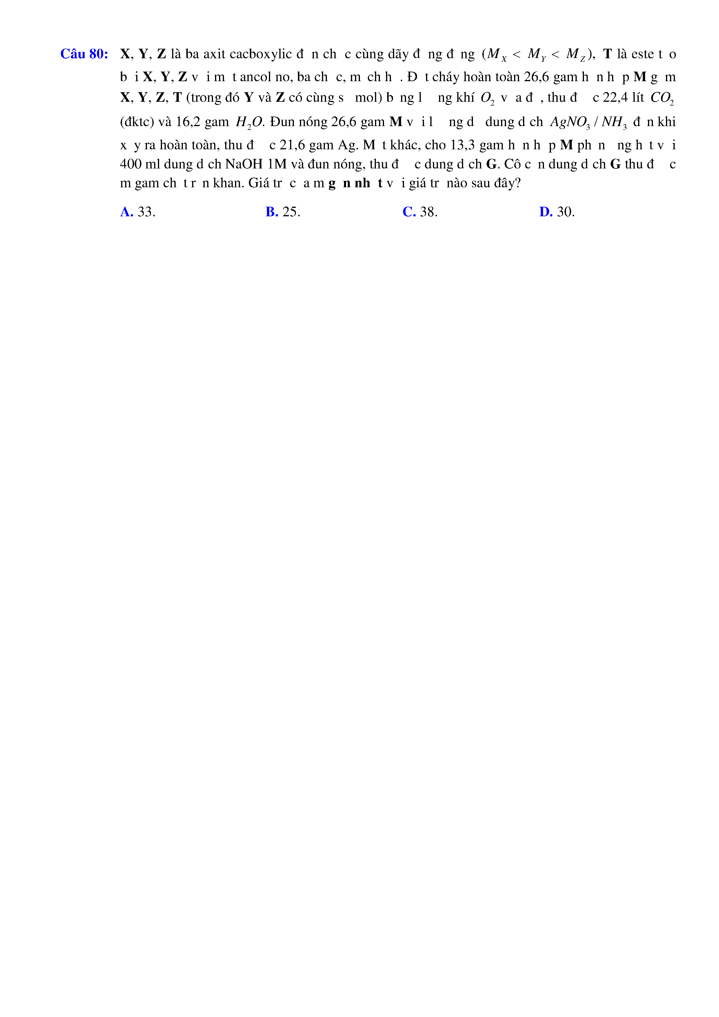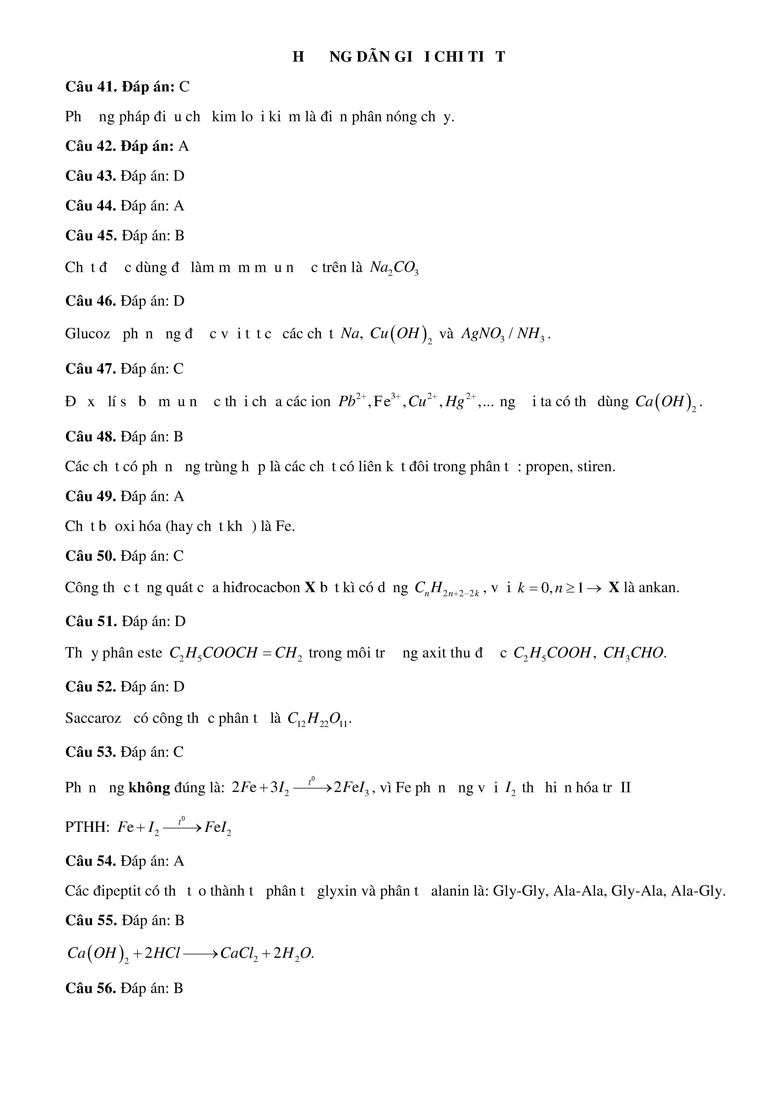Đề thi thử THPT Năm 2020 môn Hóa học Trường THPT Chuyên Trần Phú - Hải Phòng - lần 2