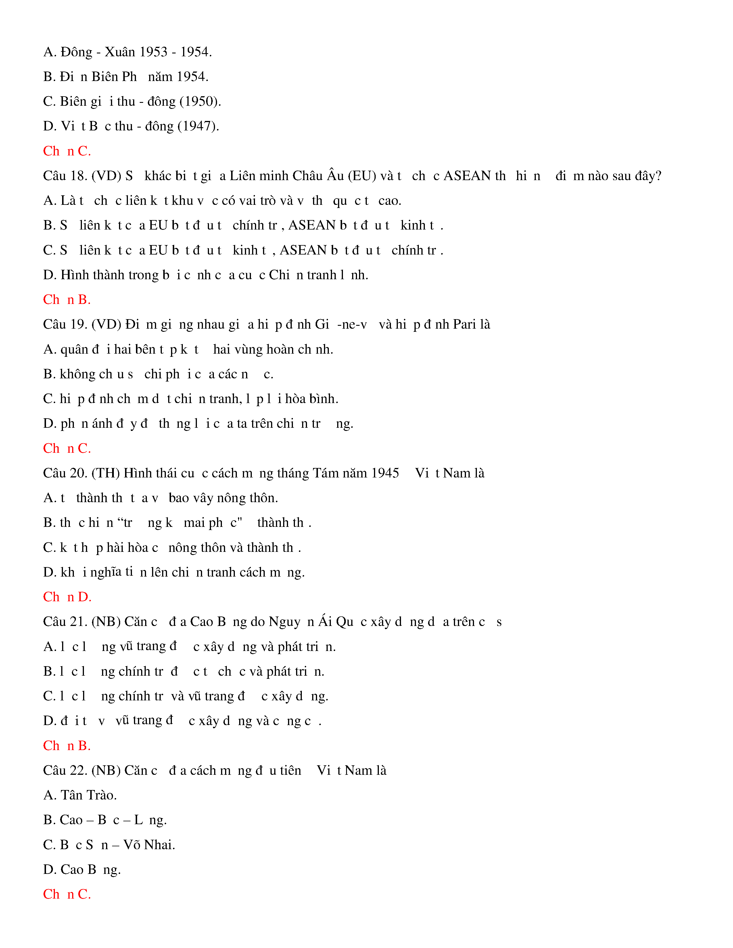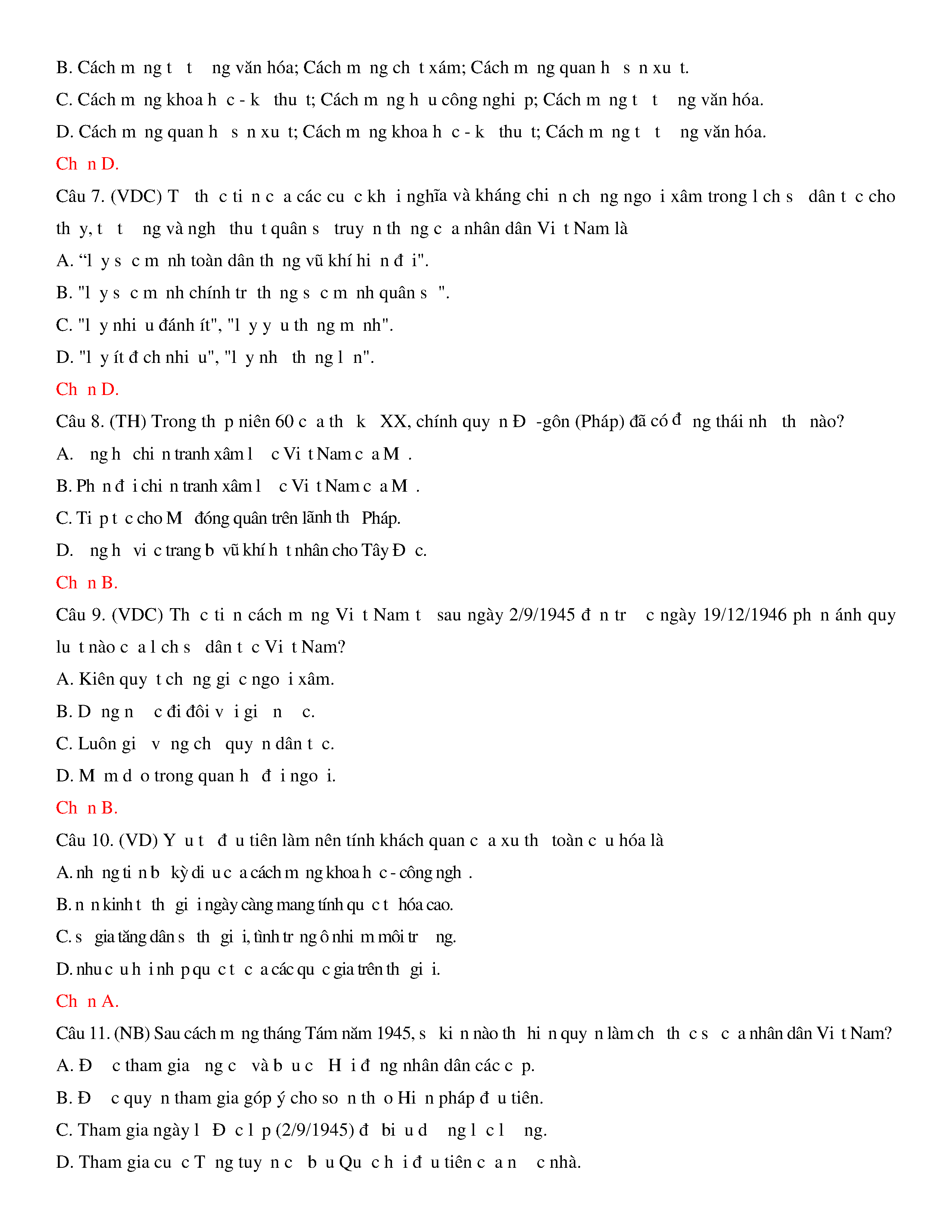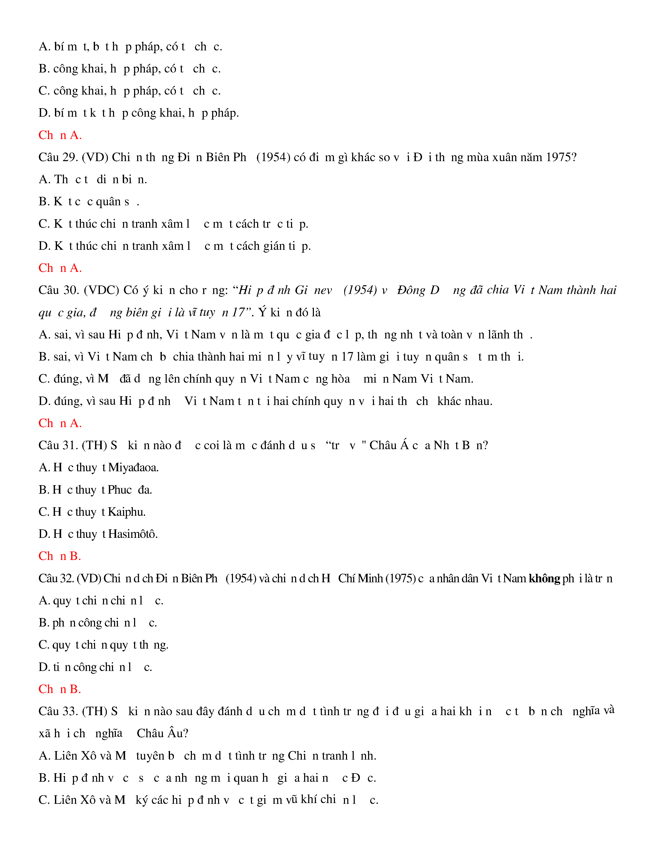 Đề thi thử THPT năm 2020 môn Lịch sử - Trường THPT Hoàng Văn Thụ - Hòa Bình