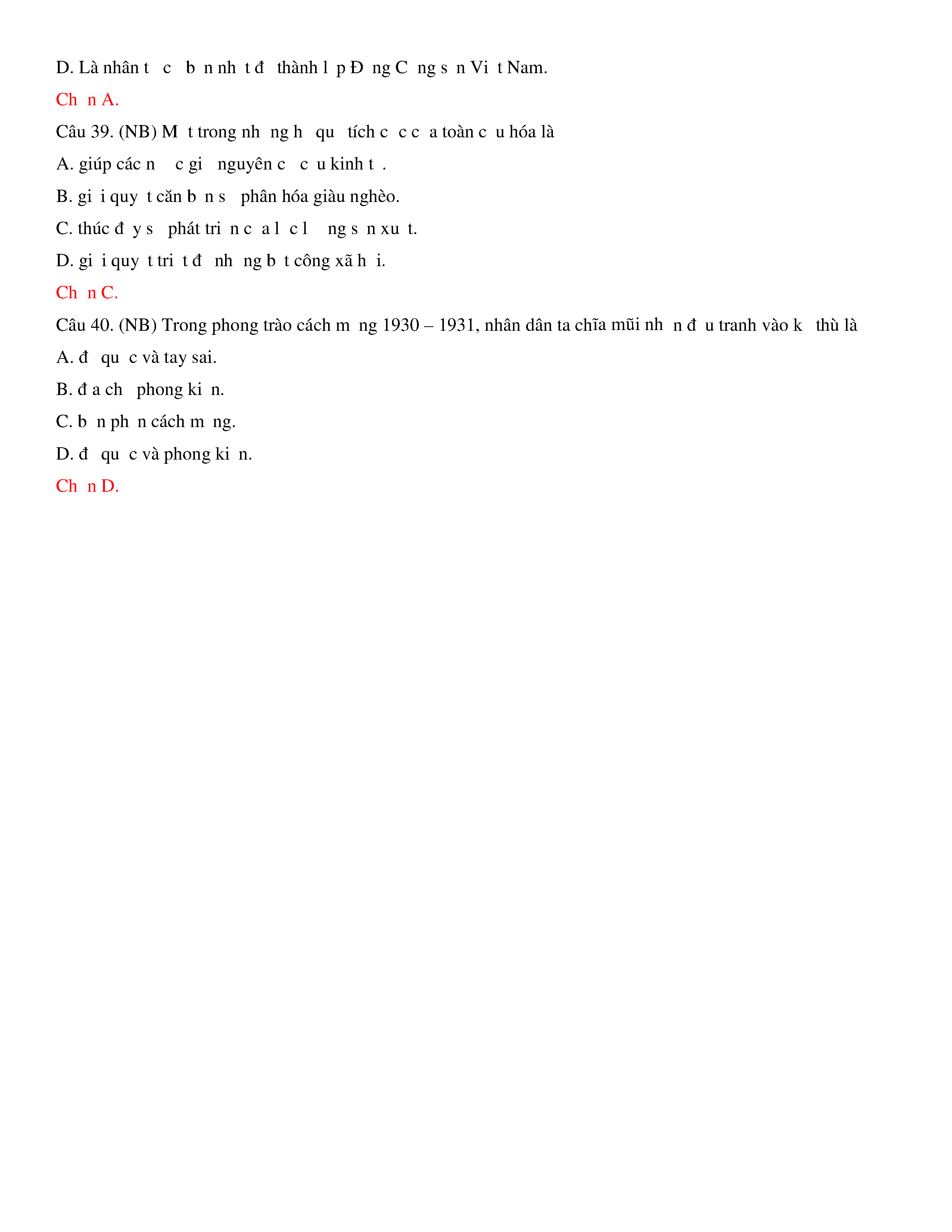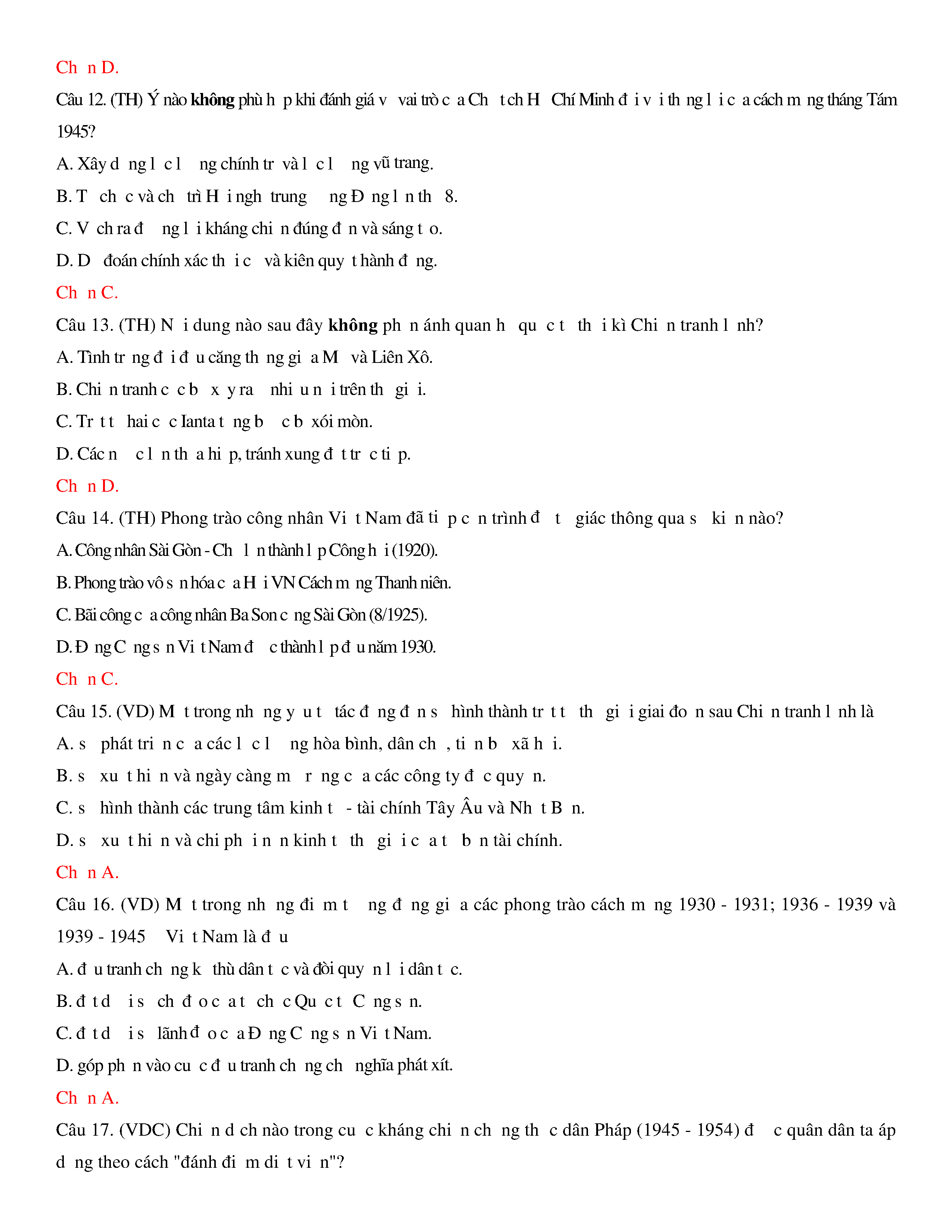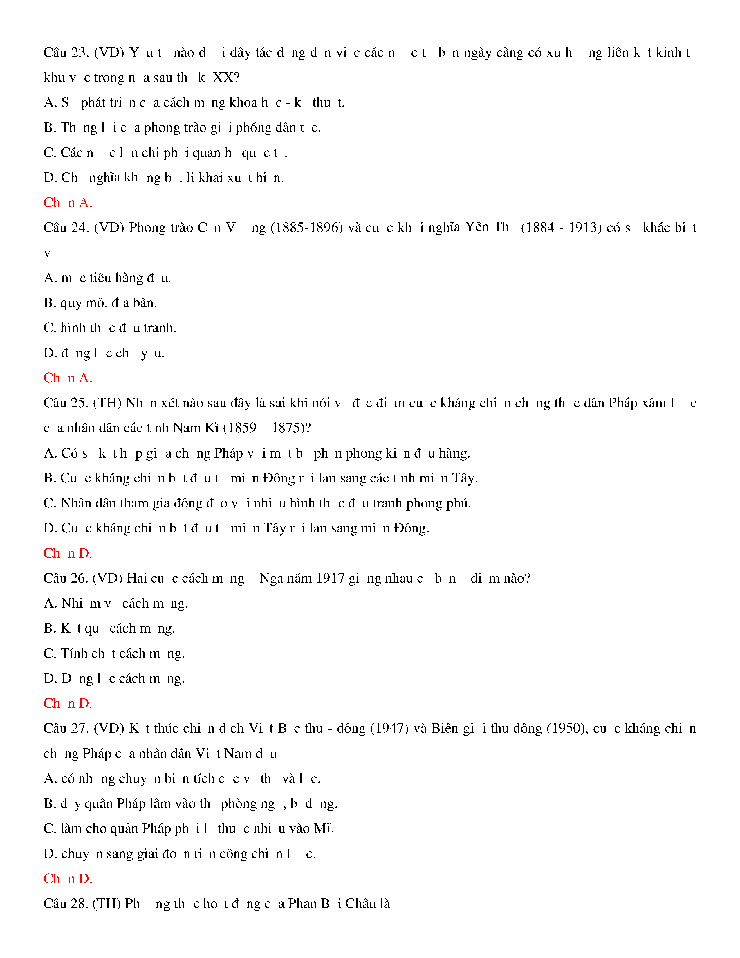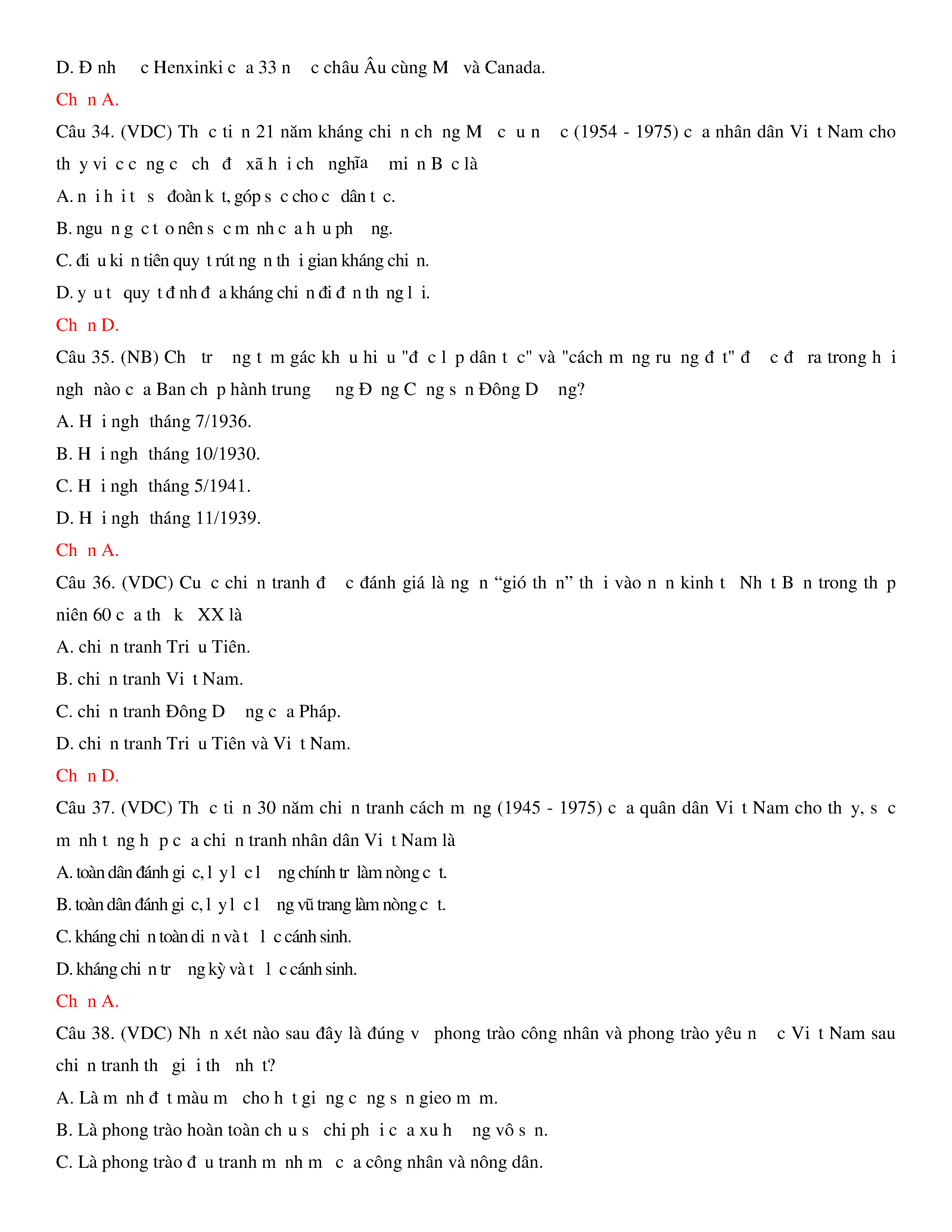 Đề thi thử THPT năm 2020 môn Lịch sử - Trường THPT Hoàng Văn Thụ - Hòa Bình