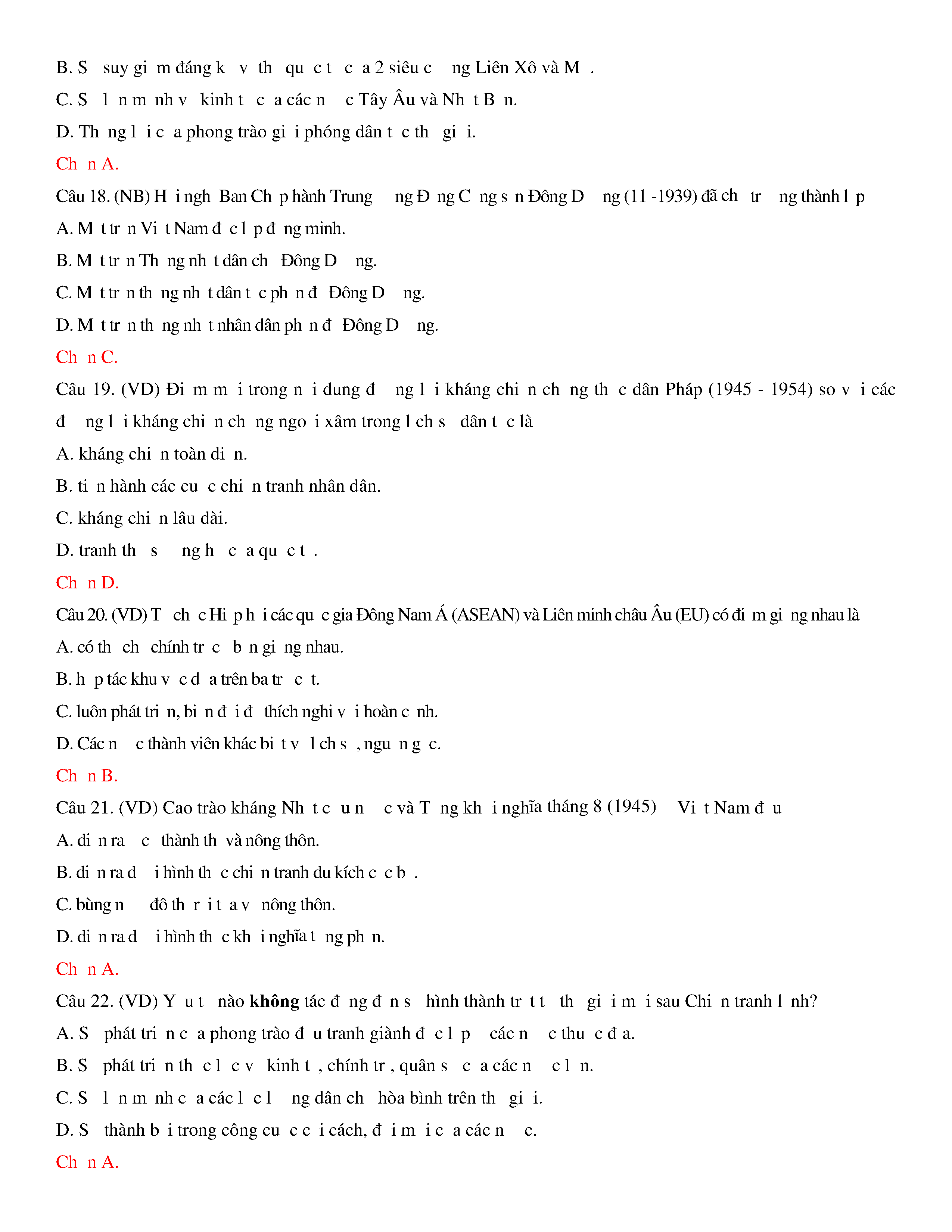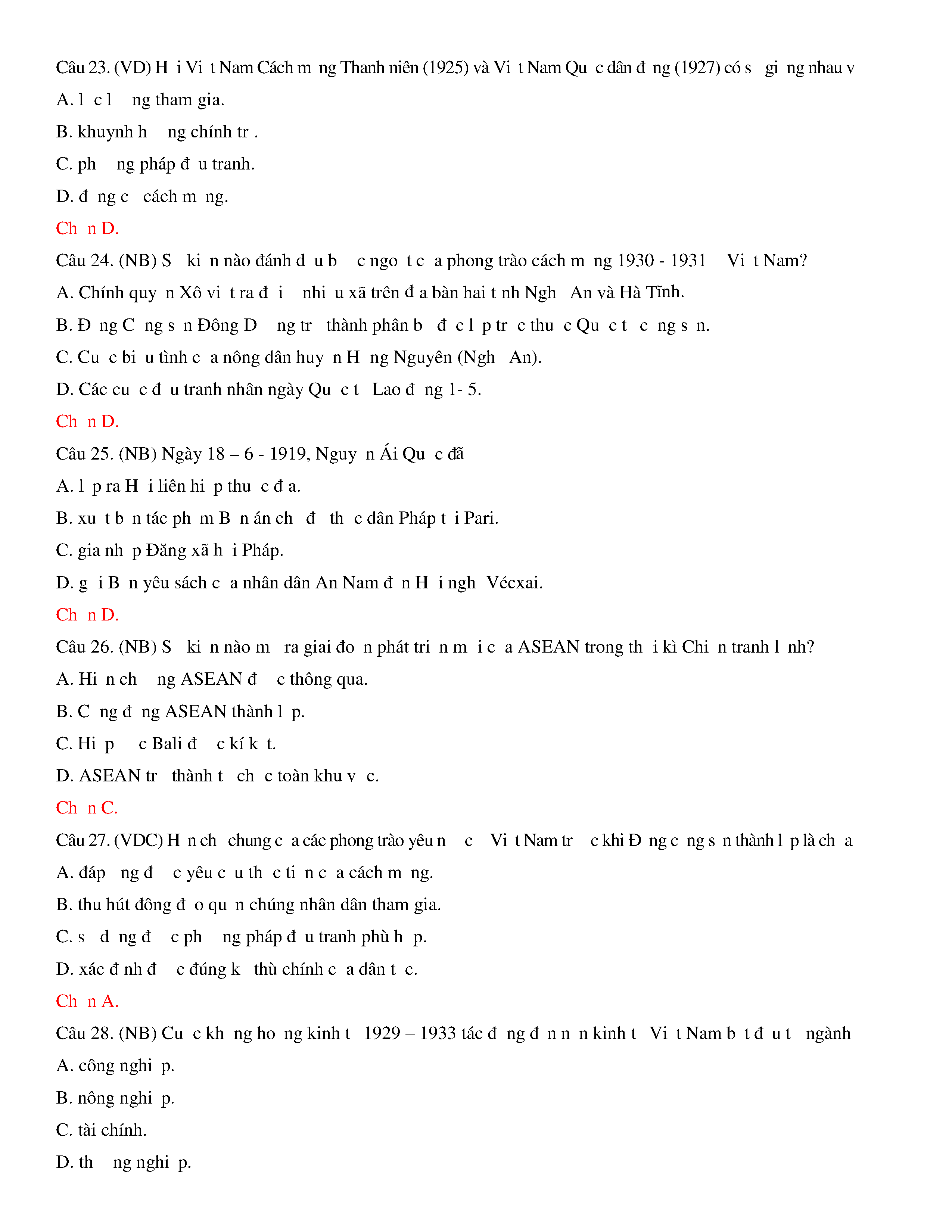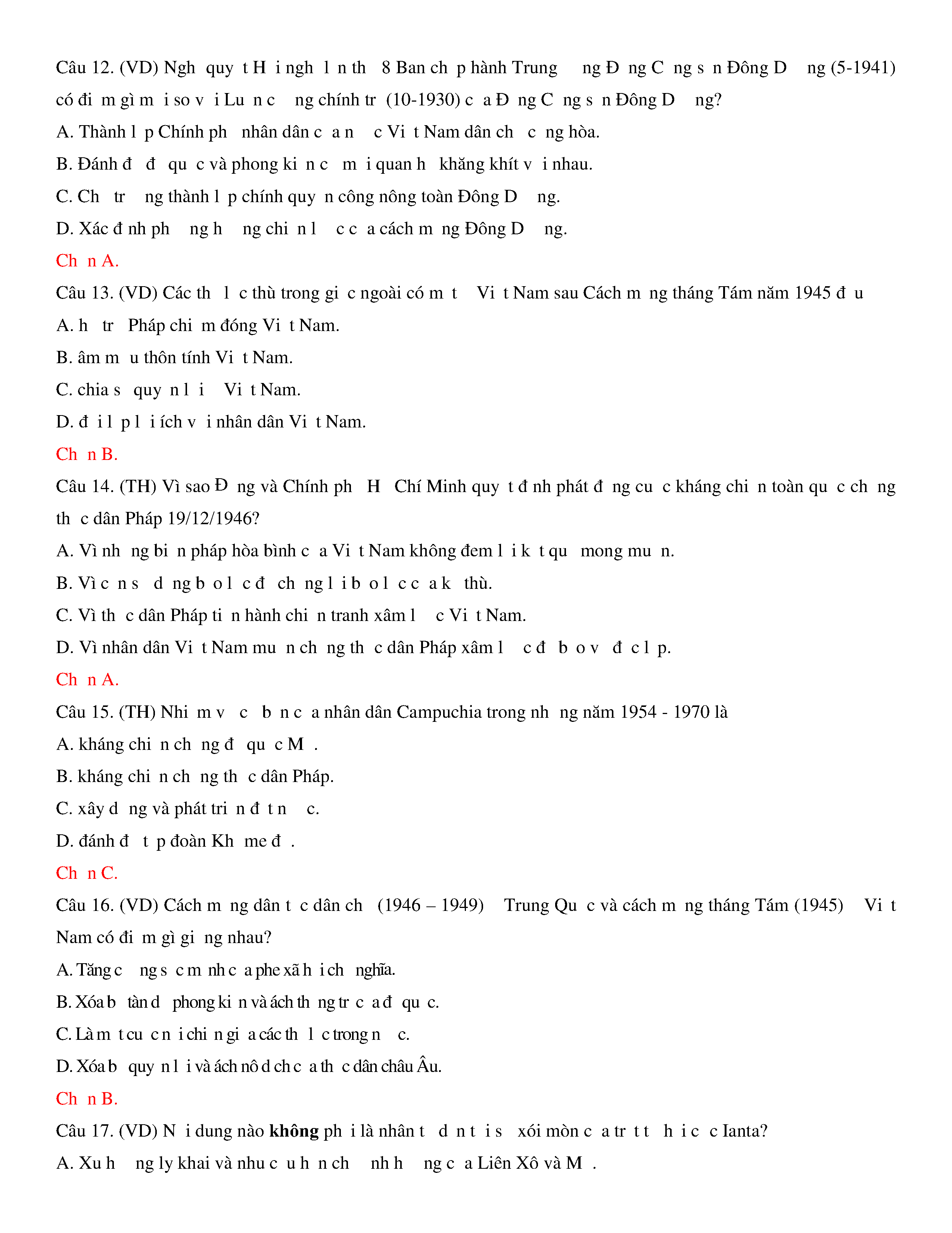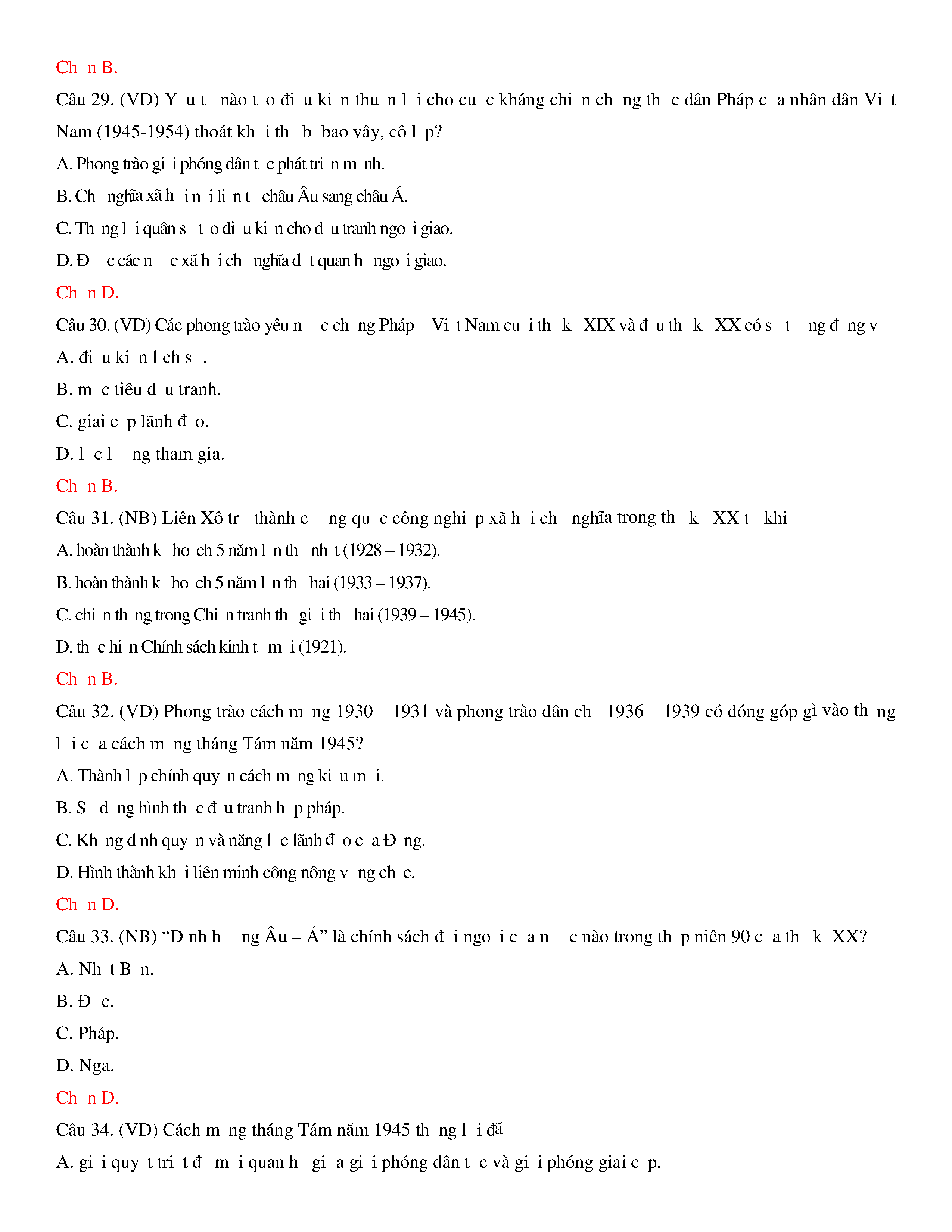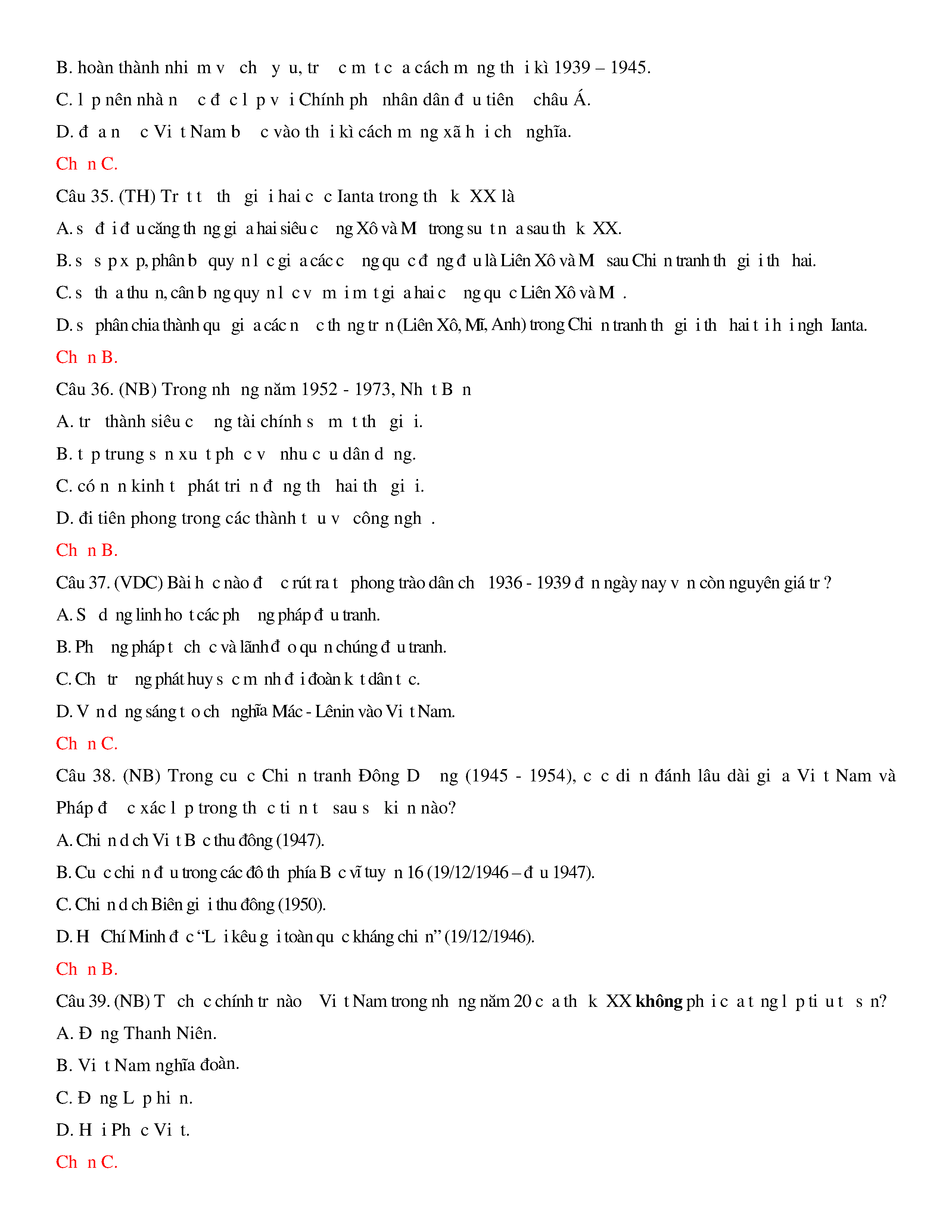 Đề thi thử THPT năm 2020 môn Lịch sử - Trường THPT Nguyễn Trãi - Hải Dương