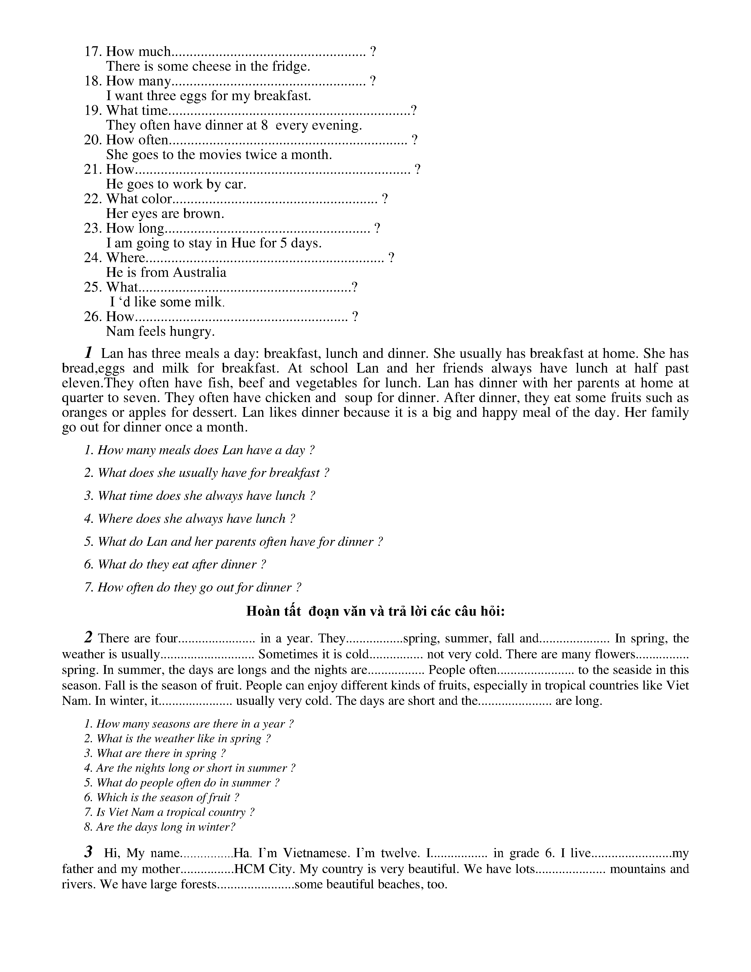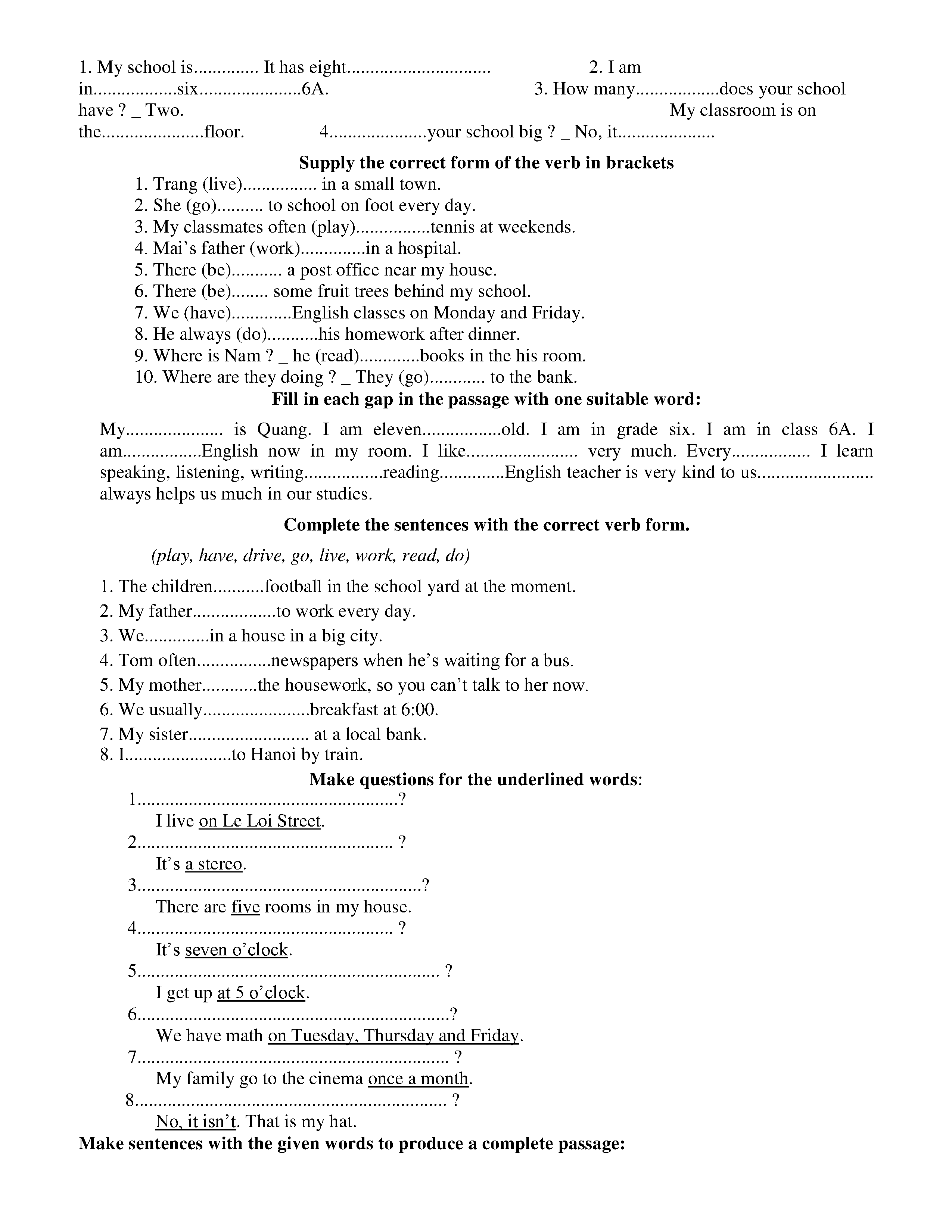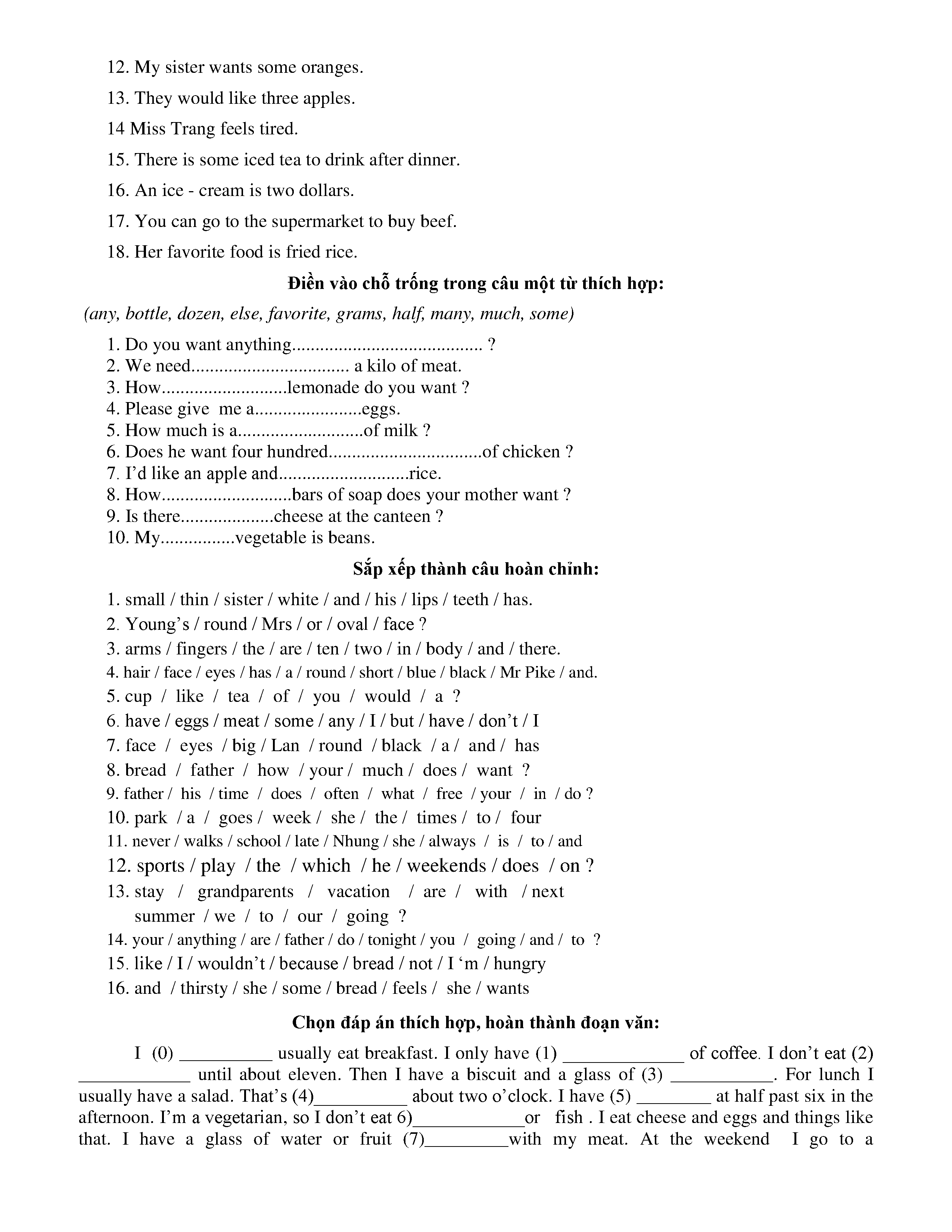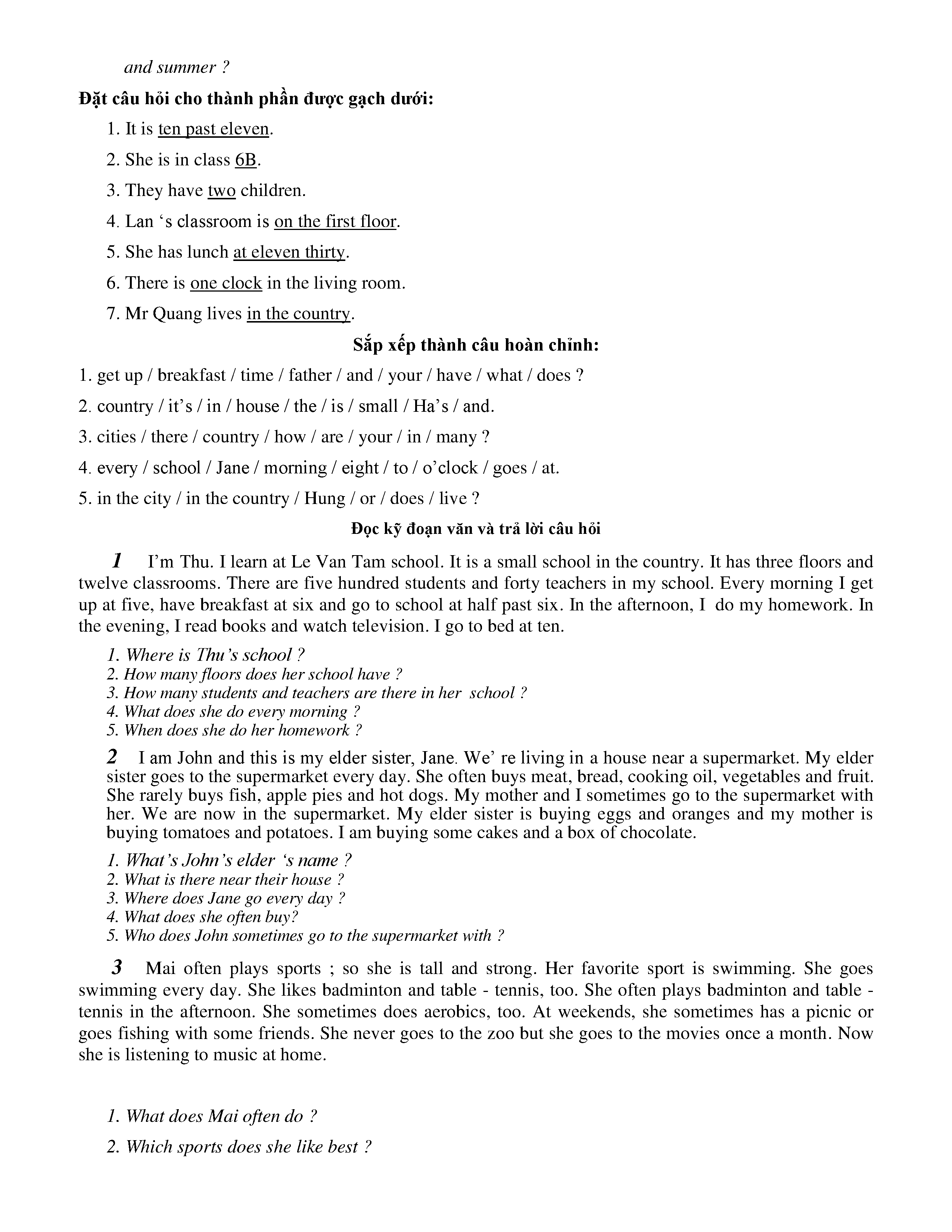 BÀI TẬP ÔN HÈ TIẾNG ANH 6