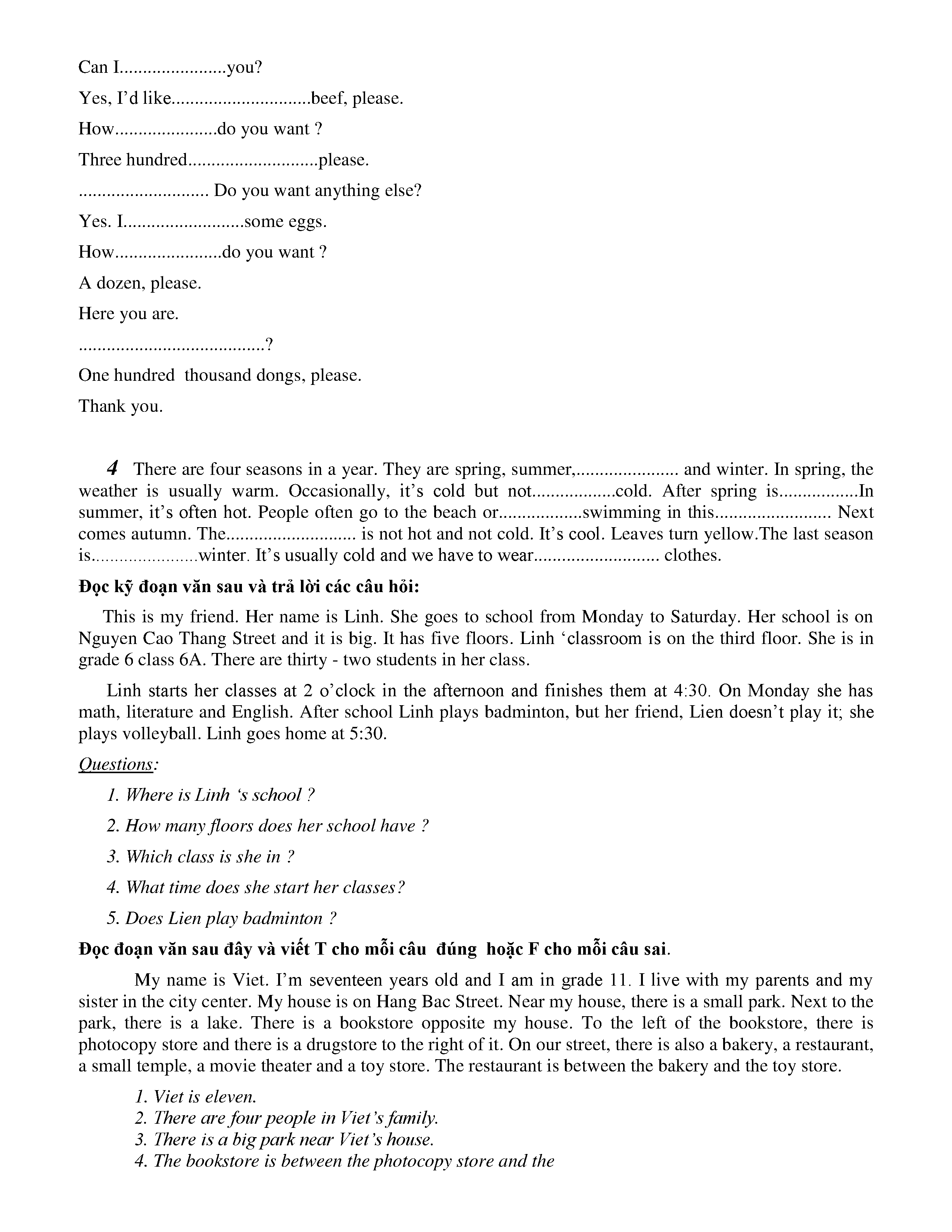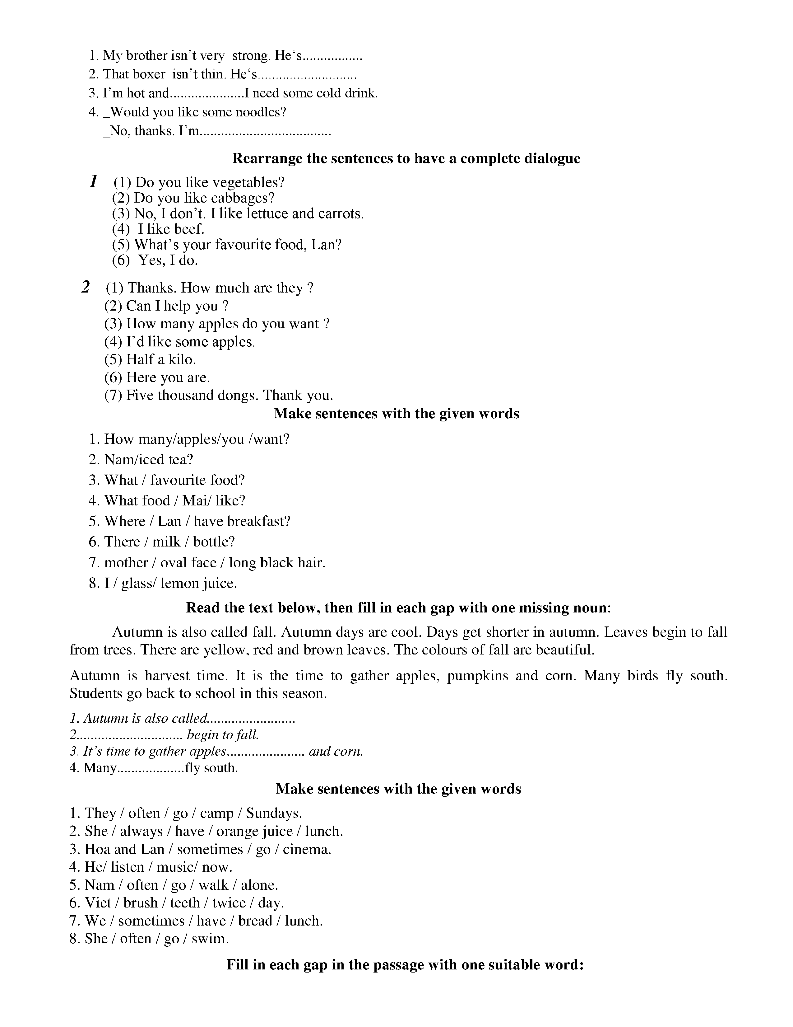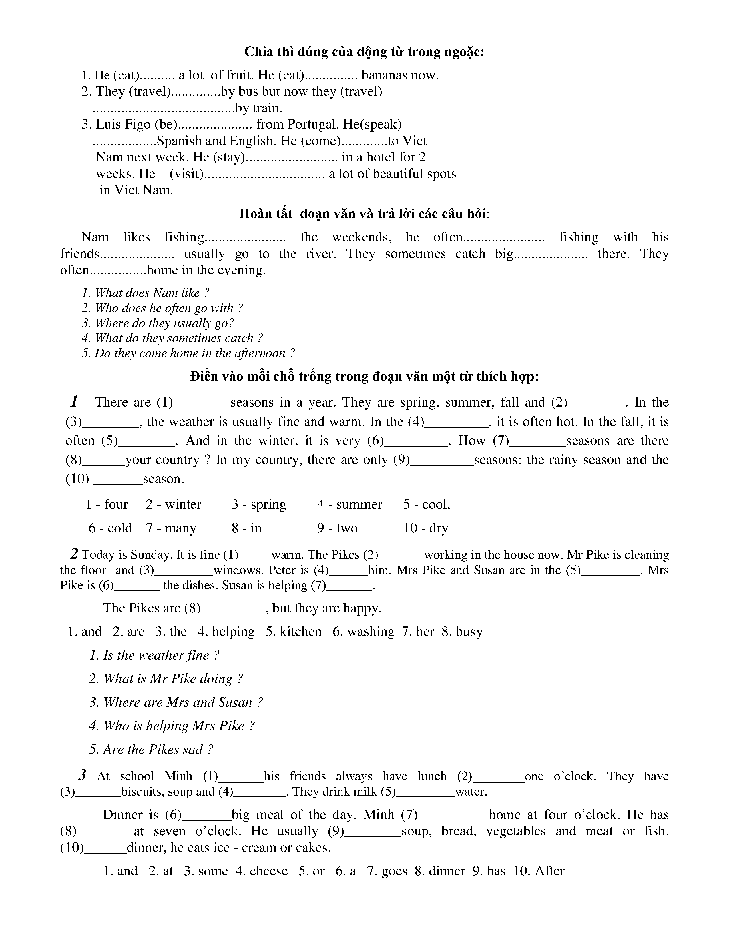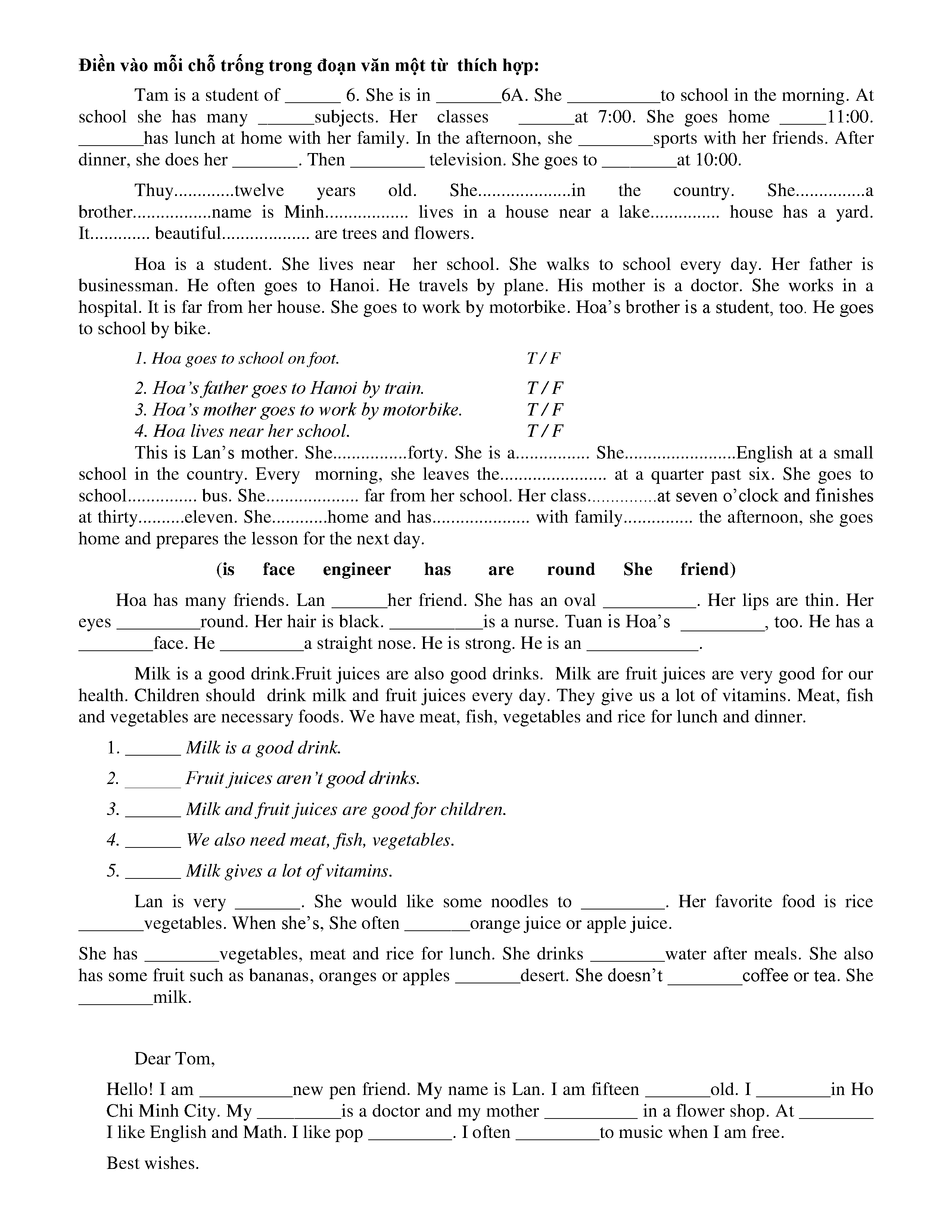 BÀI TẬP ÔN HÈ TIẾNG ANH 6