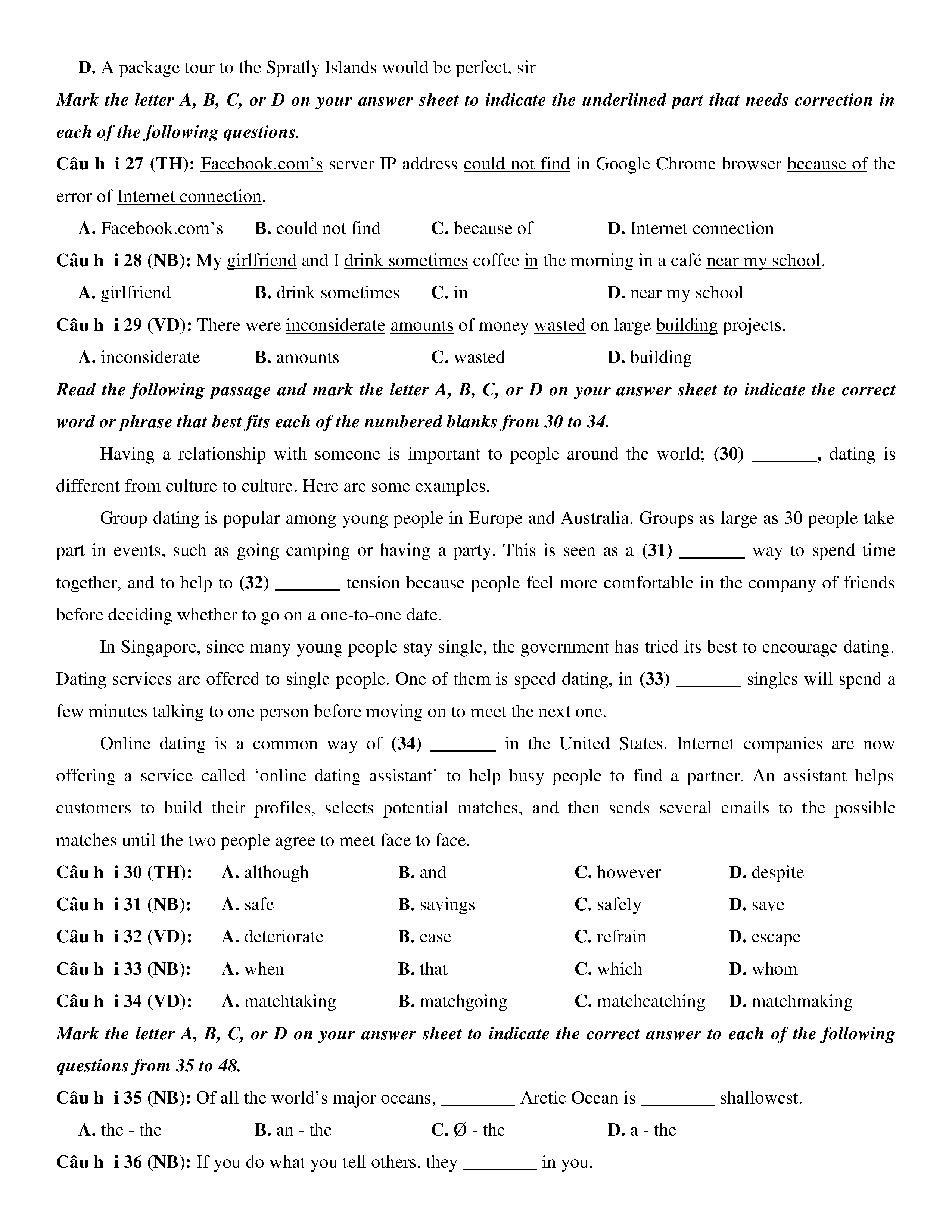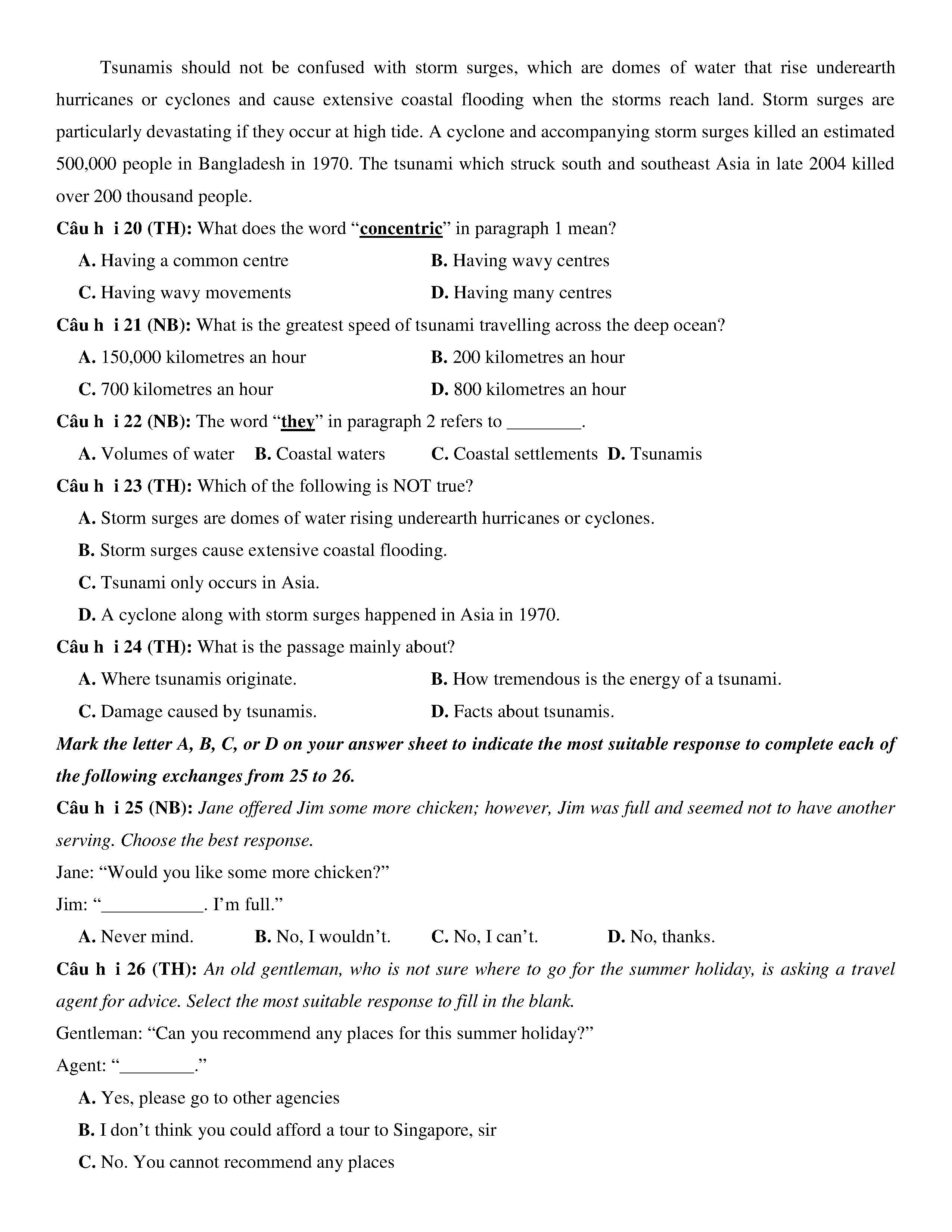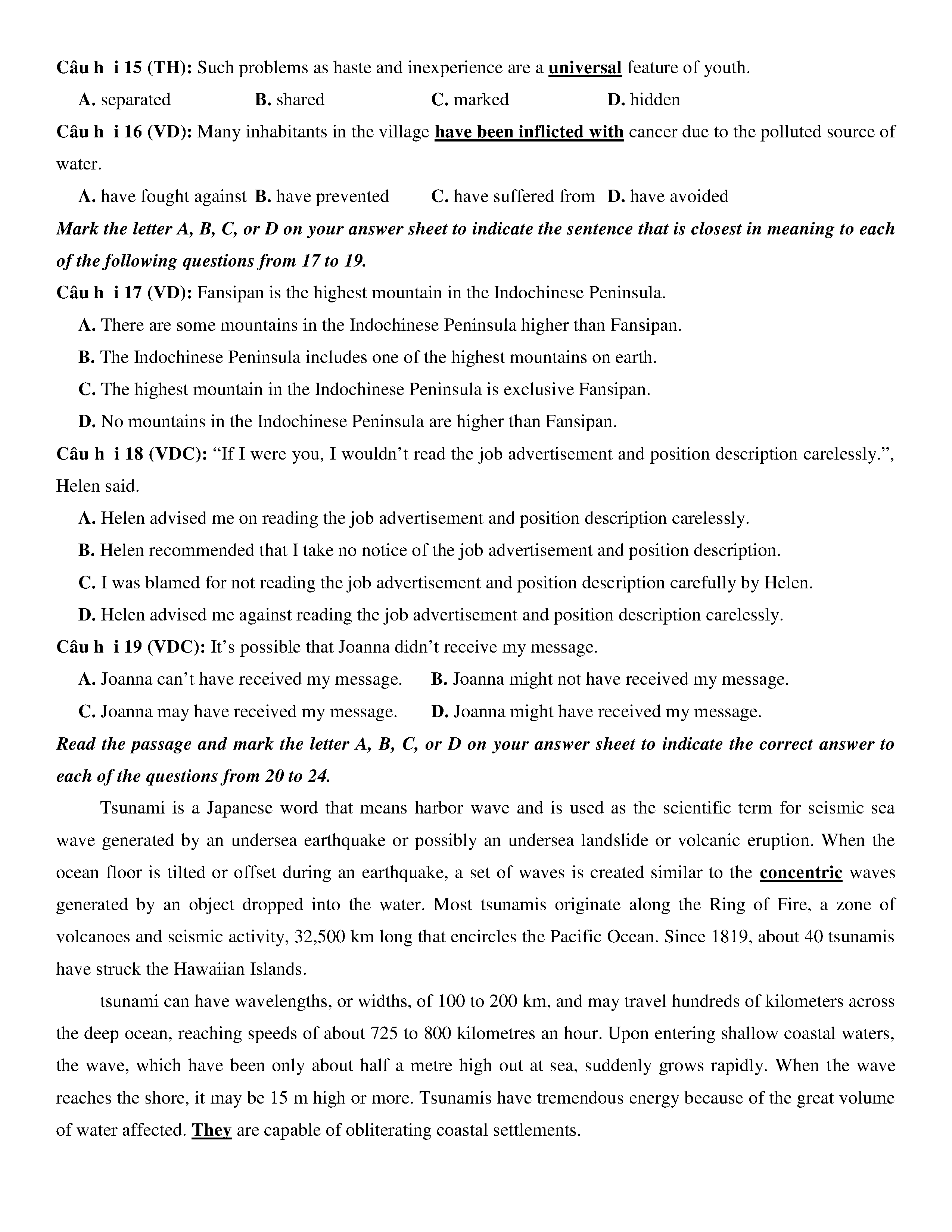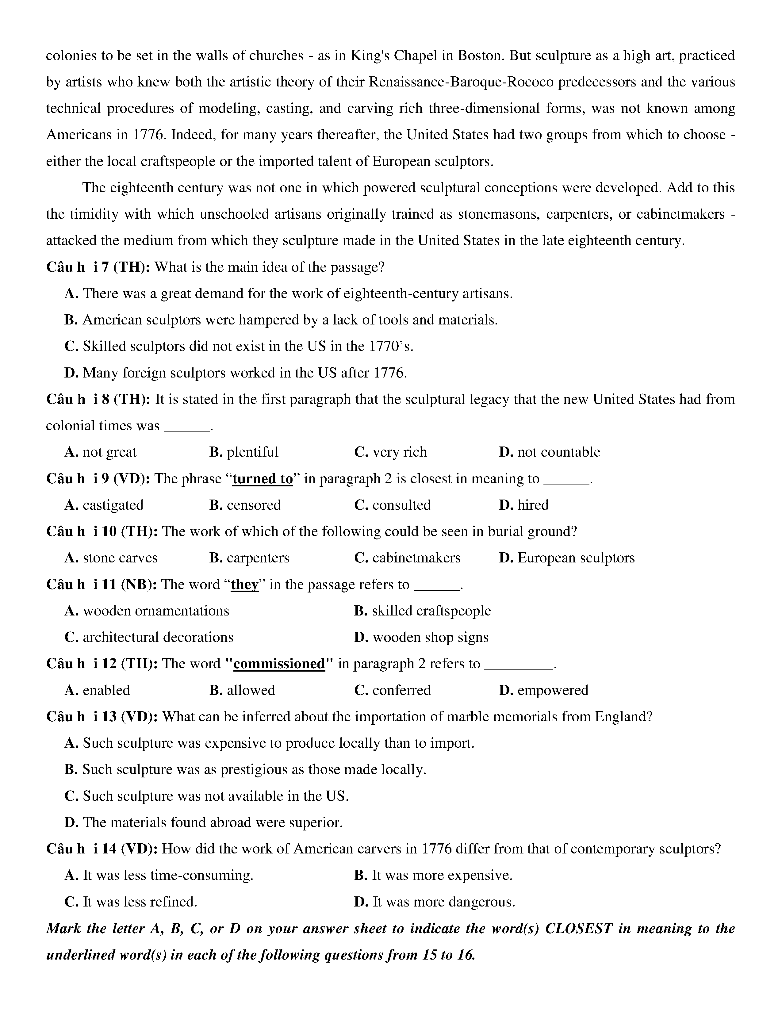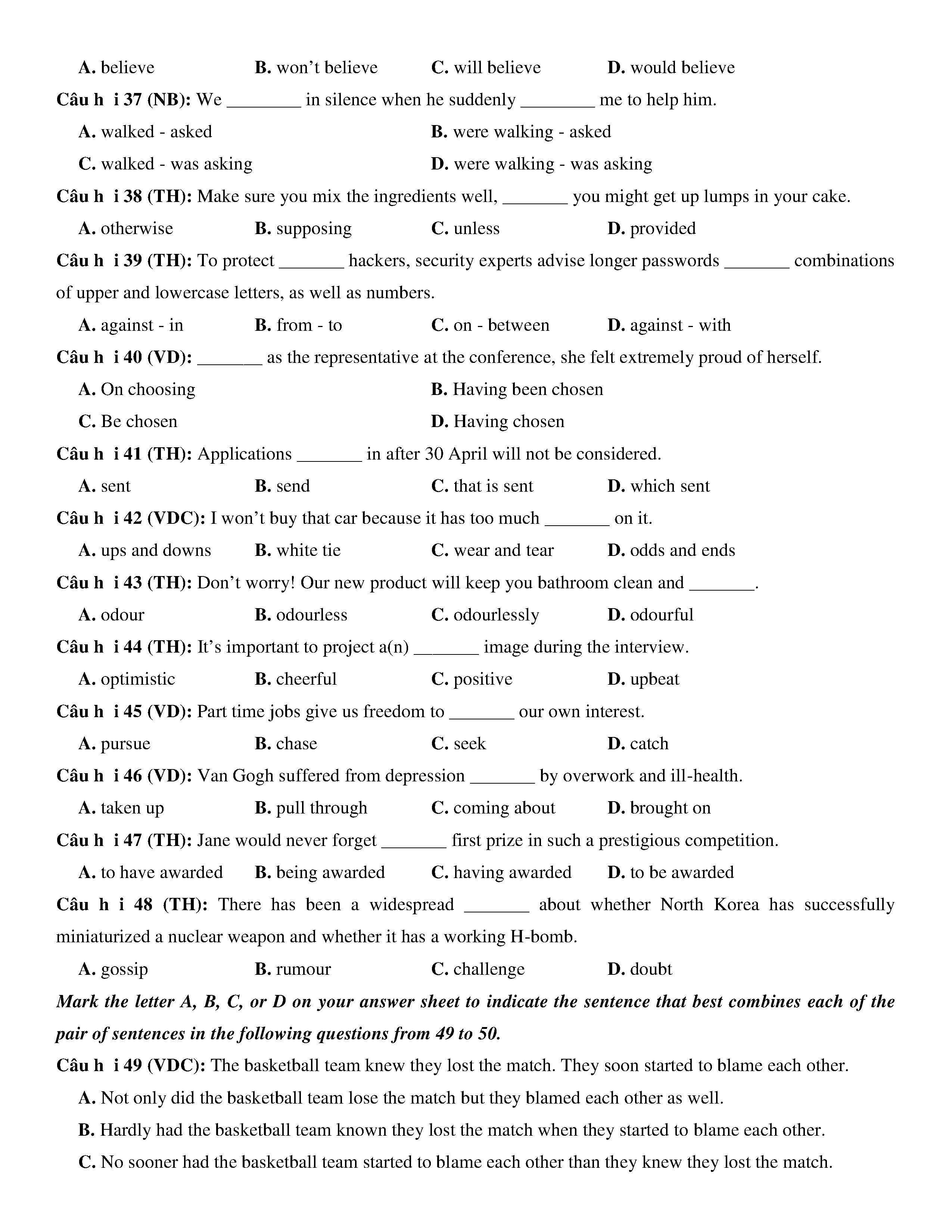 Đề KSCL lớp 12 môn Tiếng Anh năm 2020 Trường THPT Chuyên - Bắc Ninh