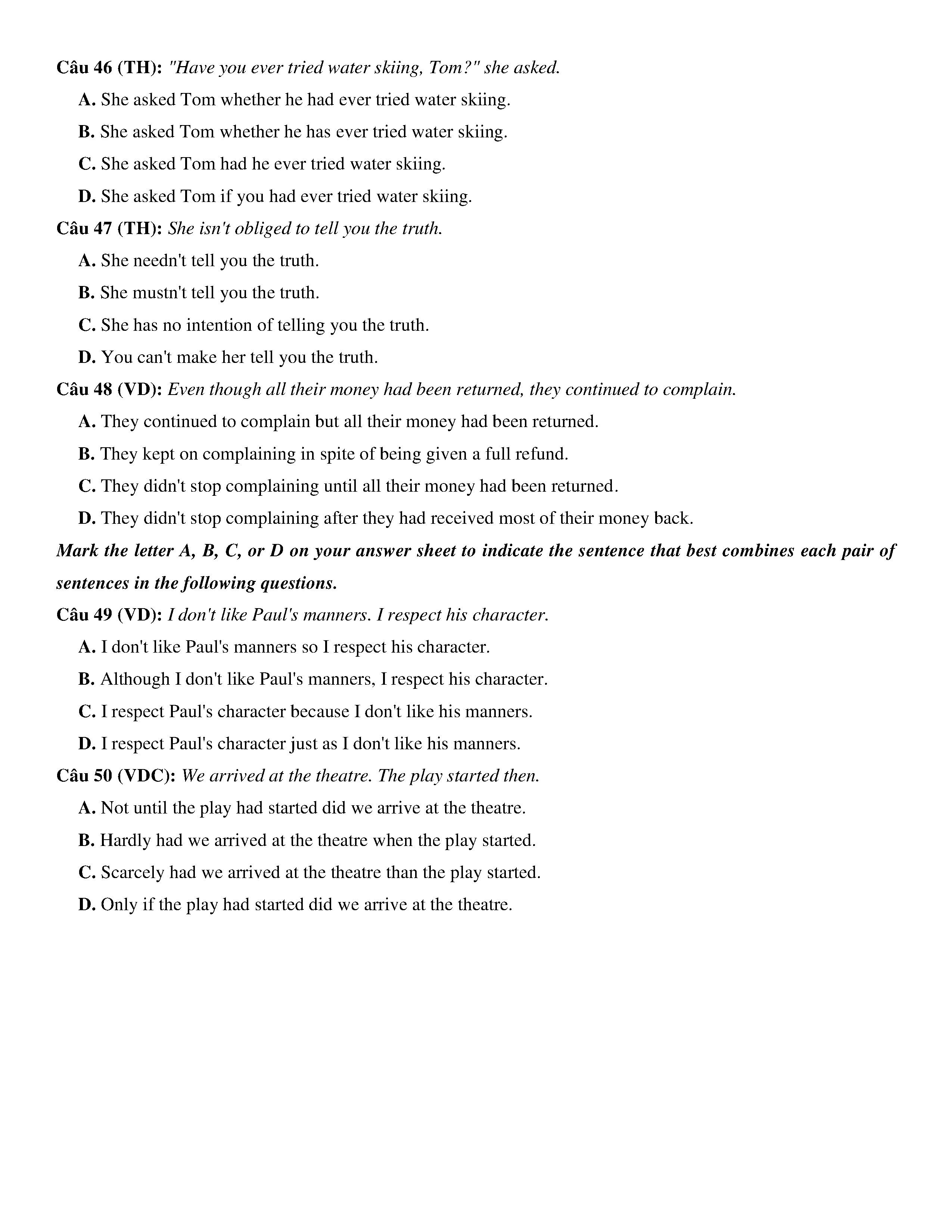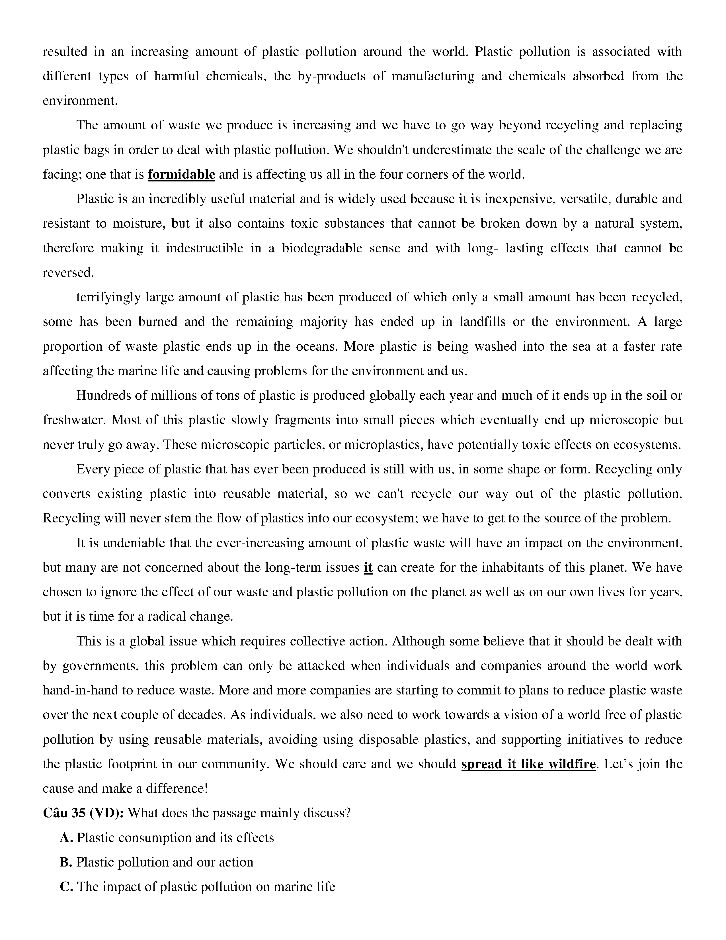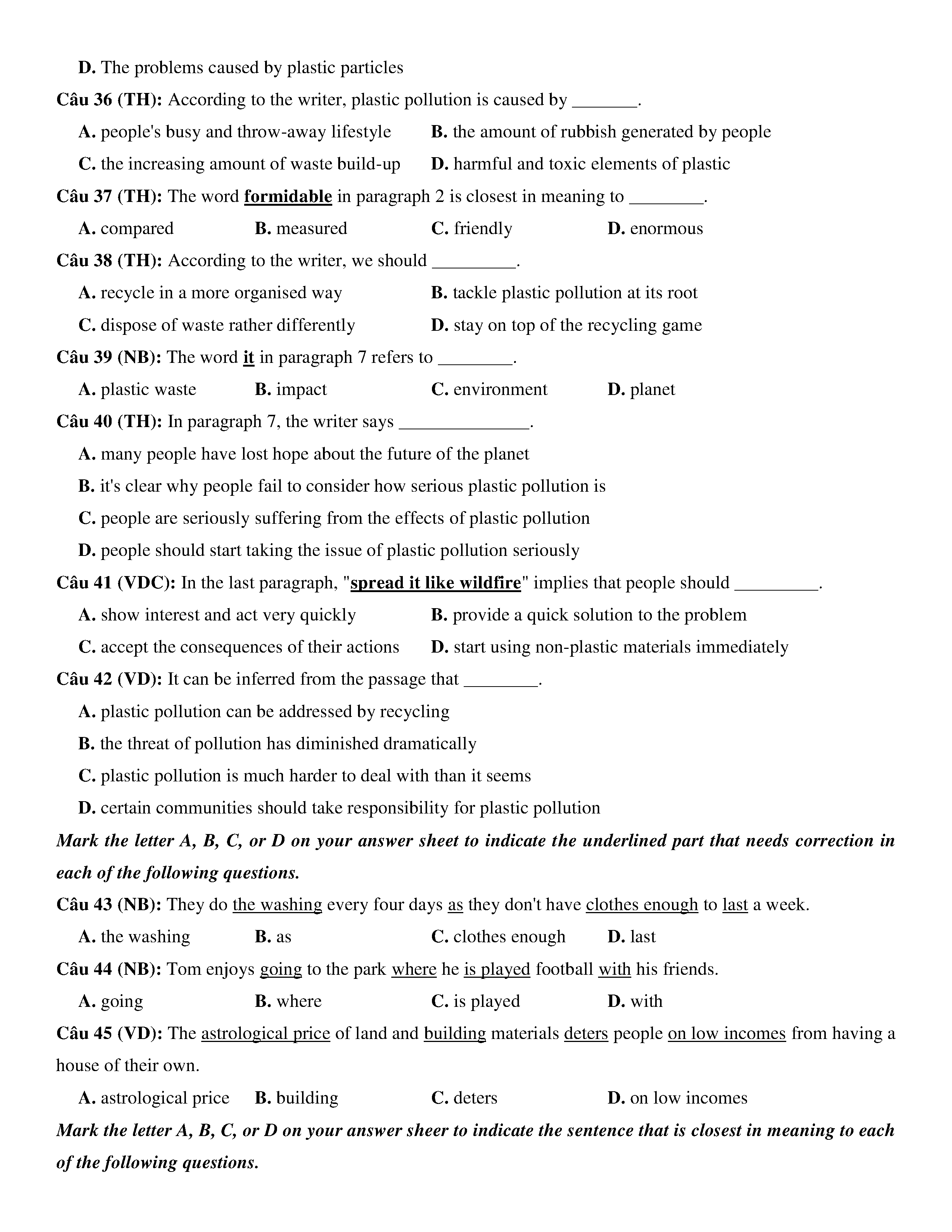 Đề KSCL lớp 12 môn Tiếng Anh năm 2020 Trường THPT Chuyên Quốc học Huế