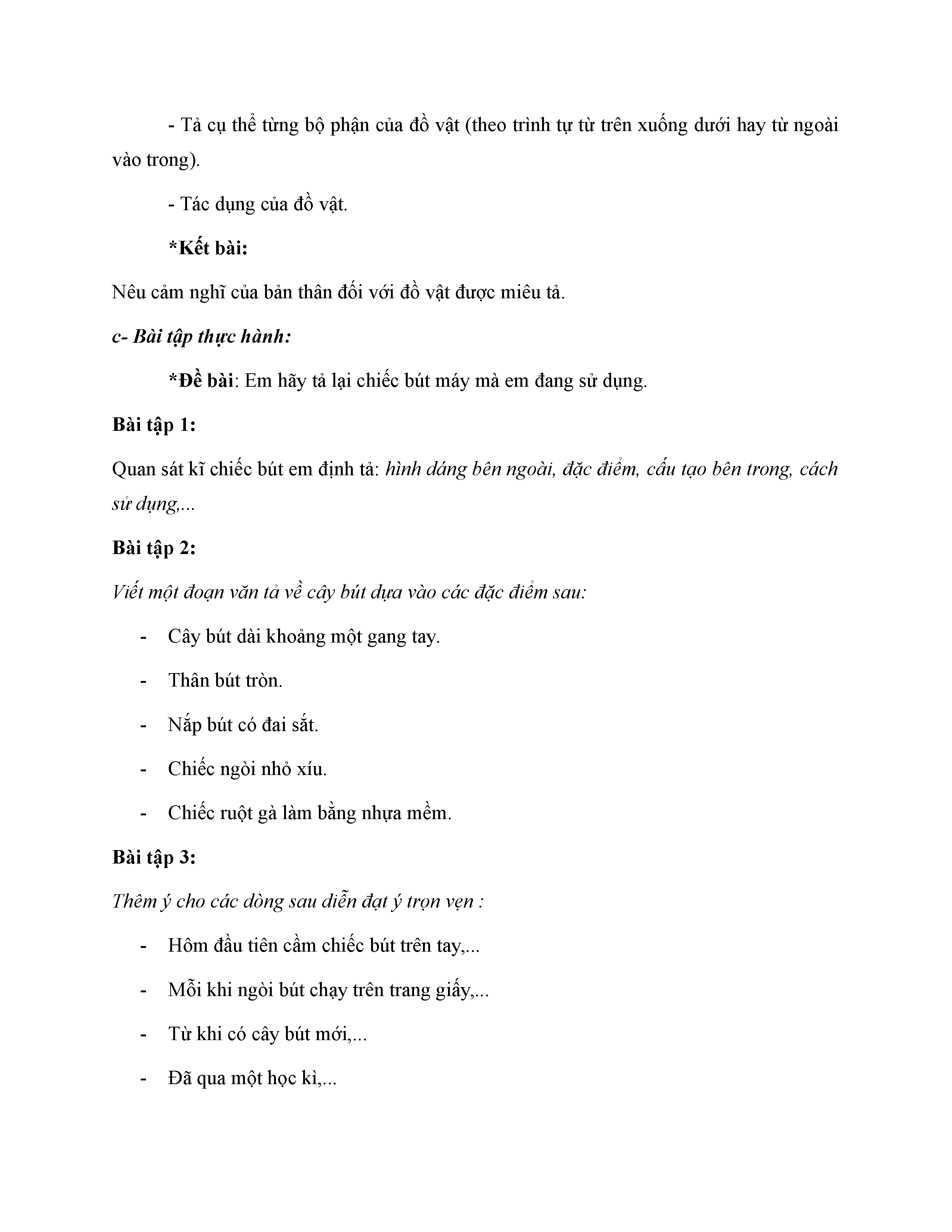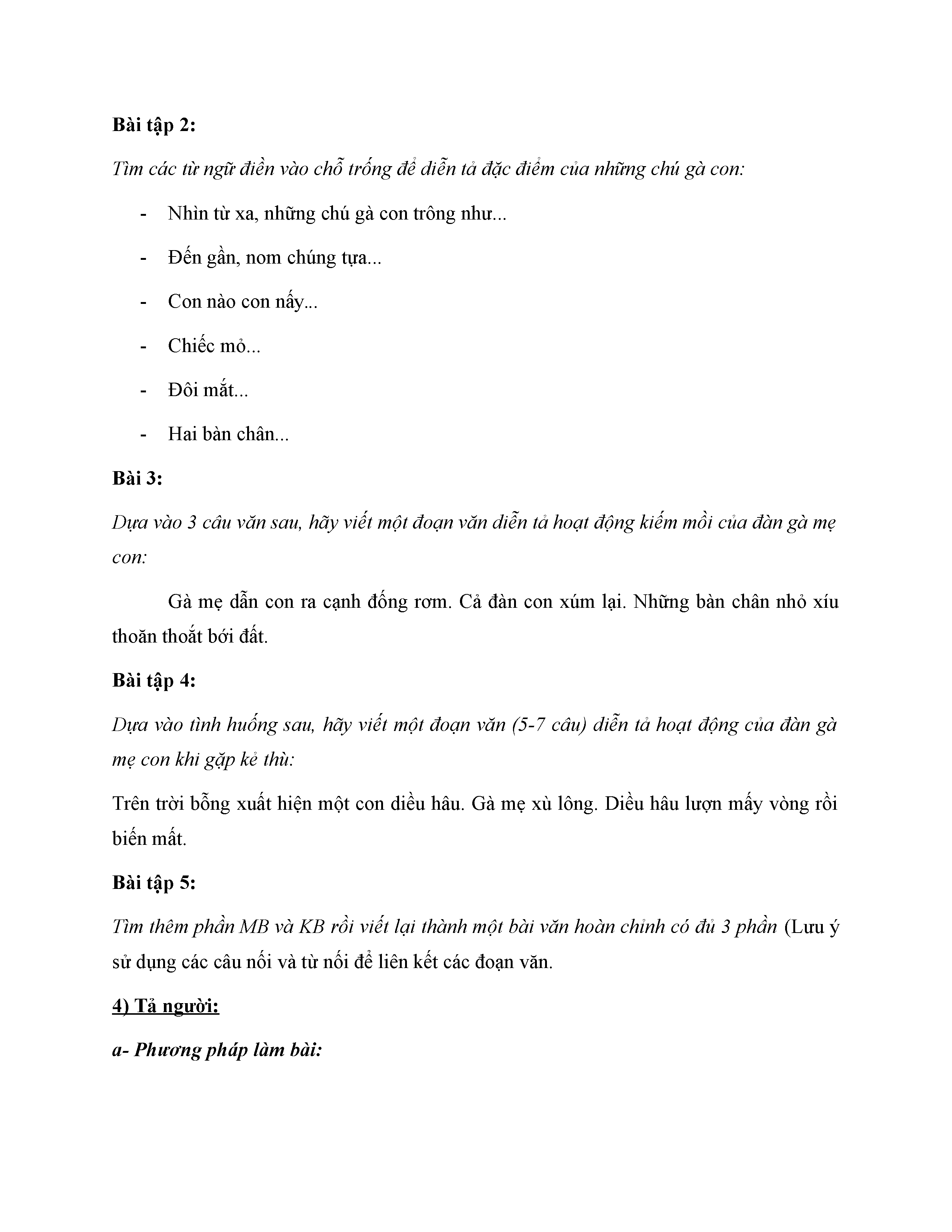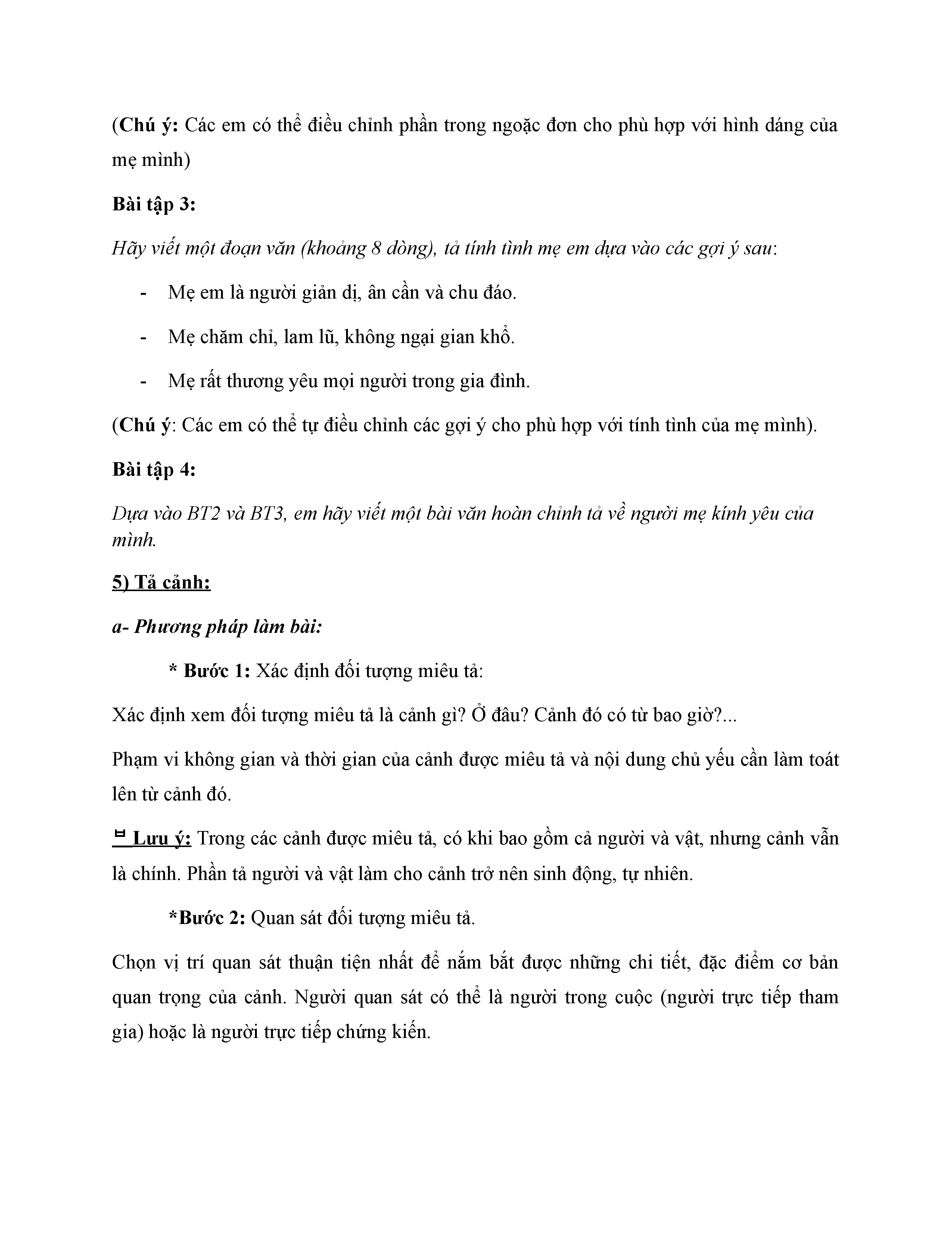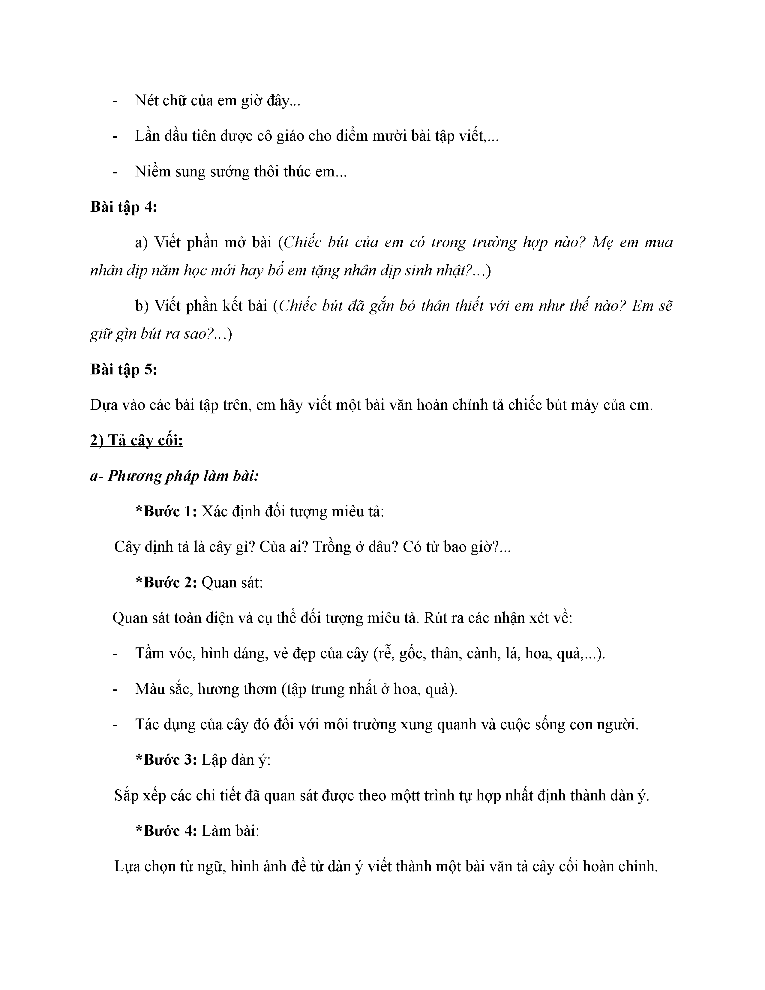 Các dạng văn miêu tả và phương pháp làm - Tập làm văn lớp 4,5