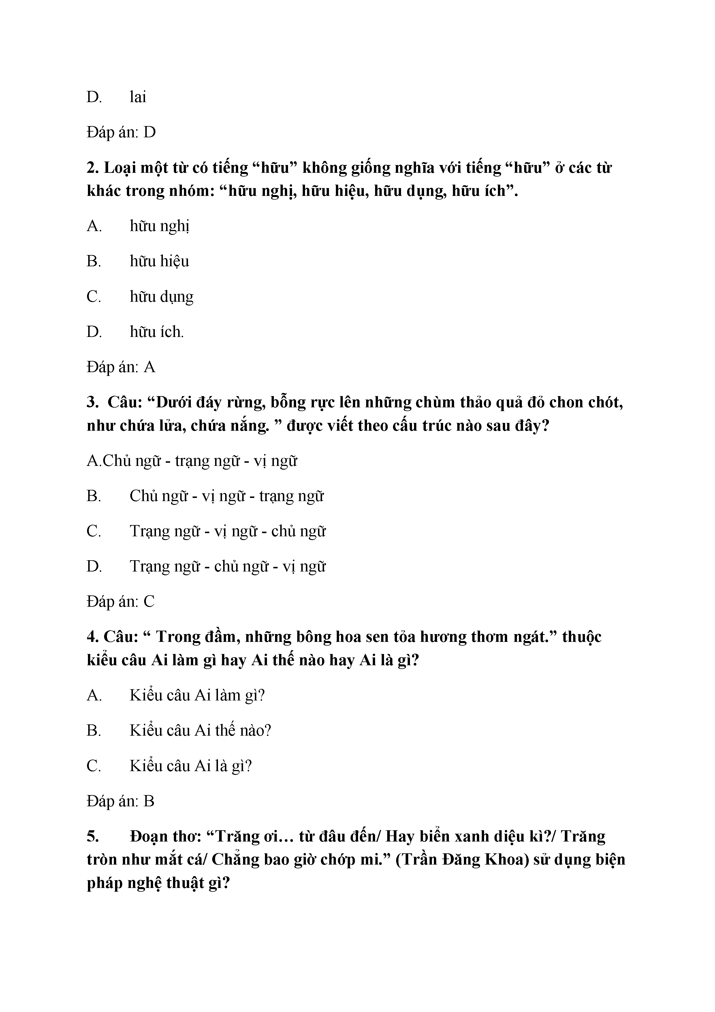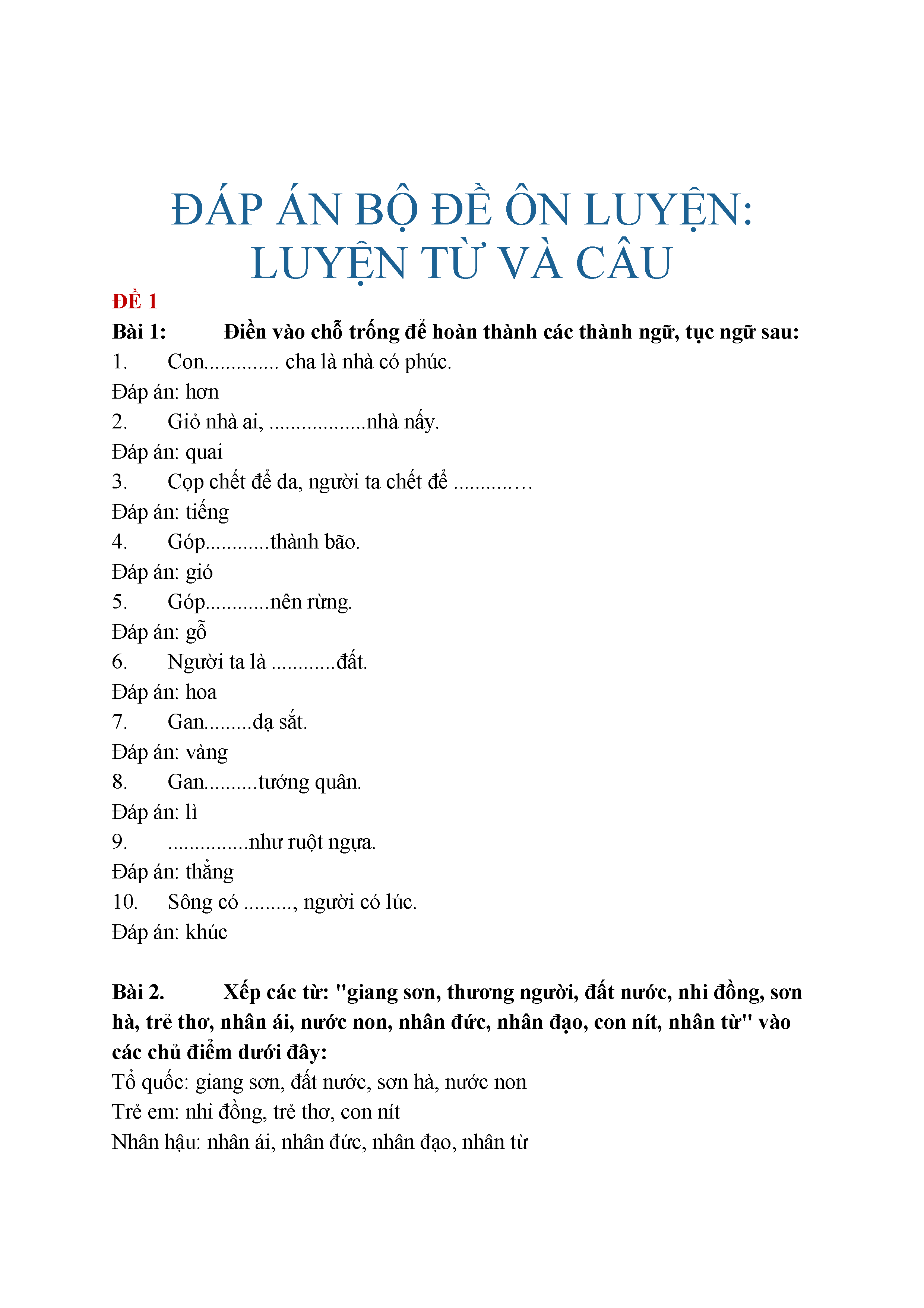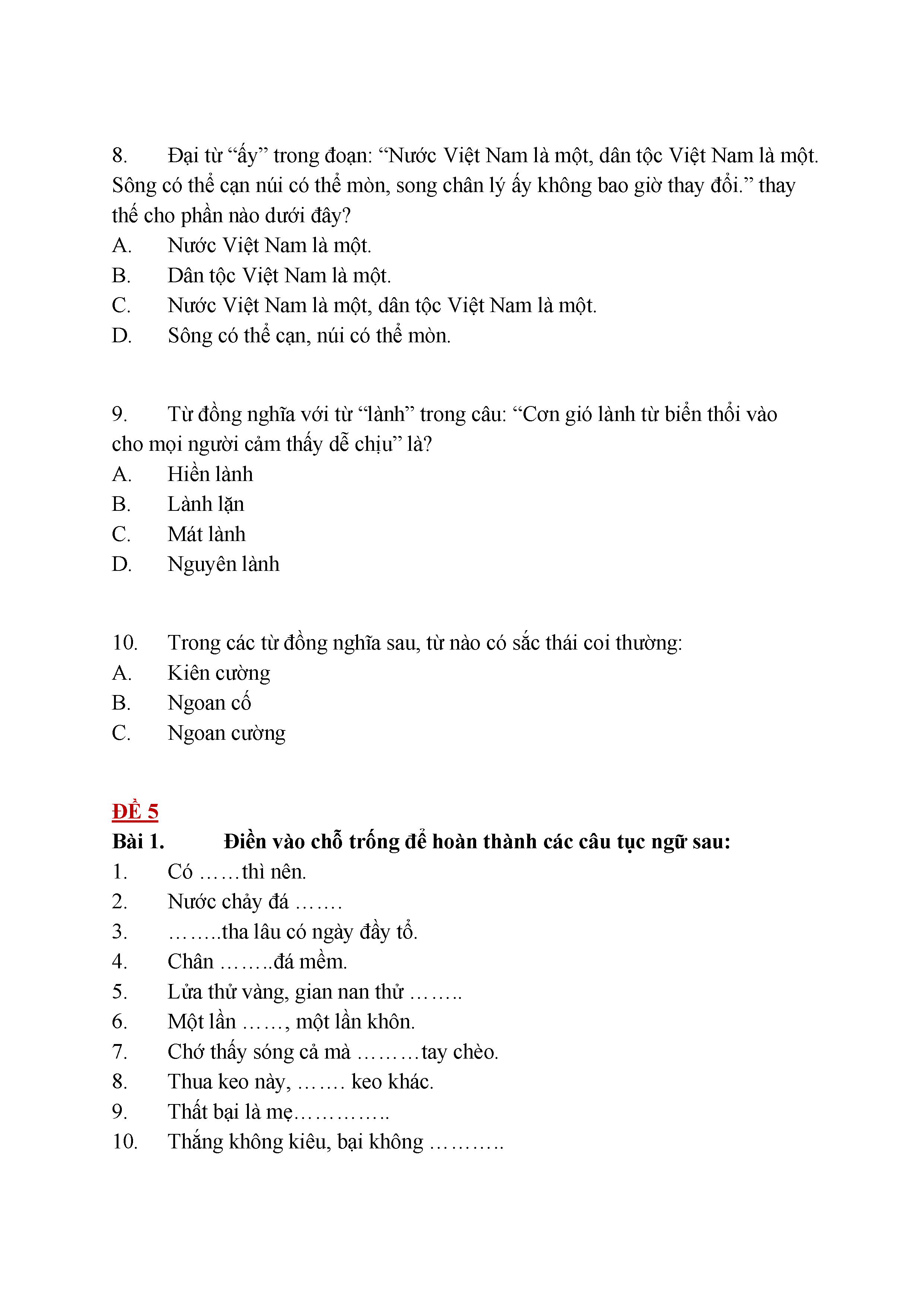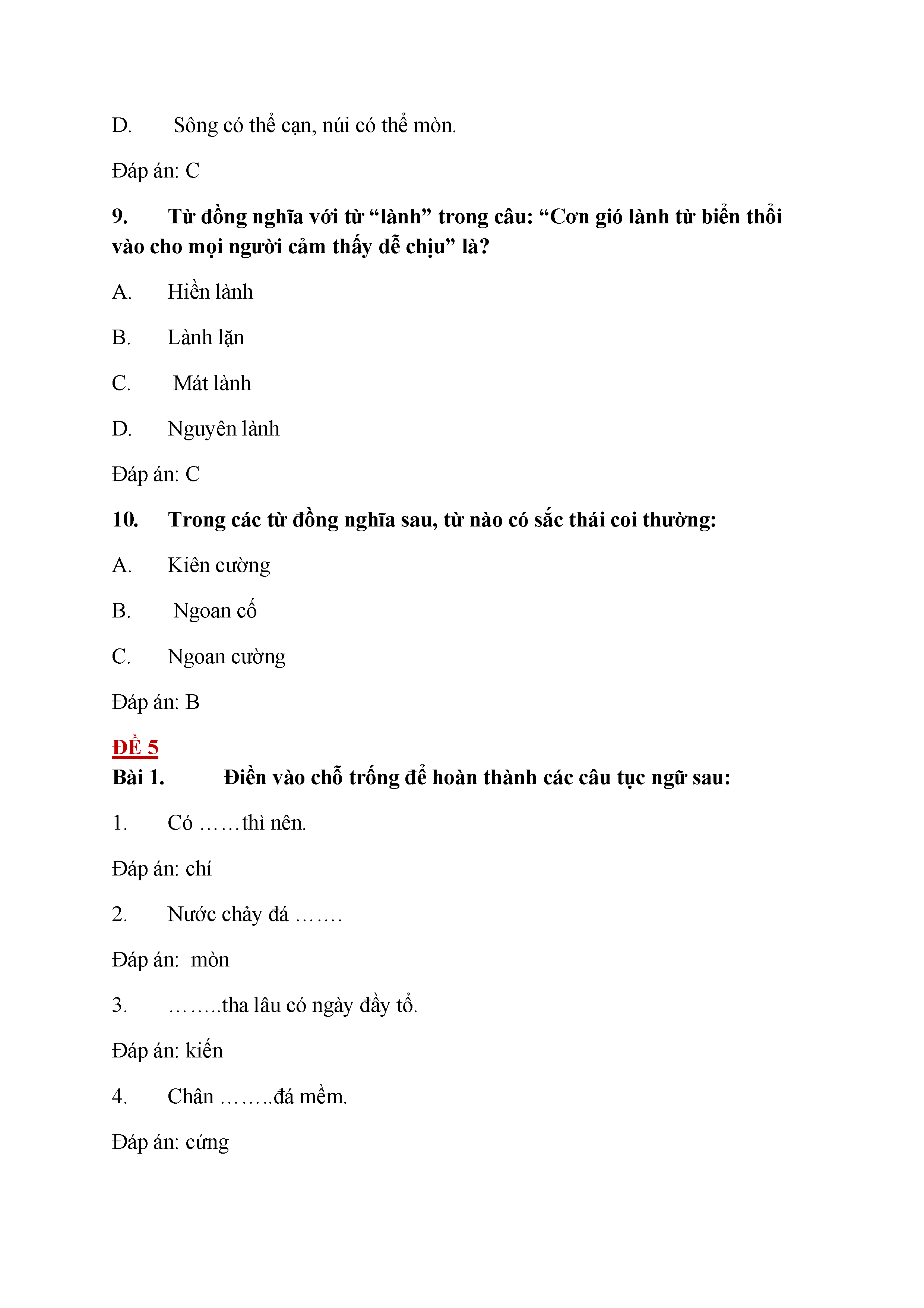 Bộ đề Luyện từ và câu - Tiếng Việt lớp 5 (có đáp án)
