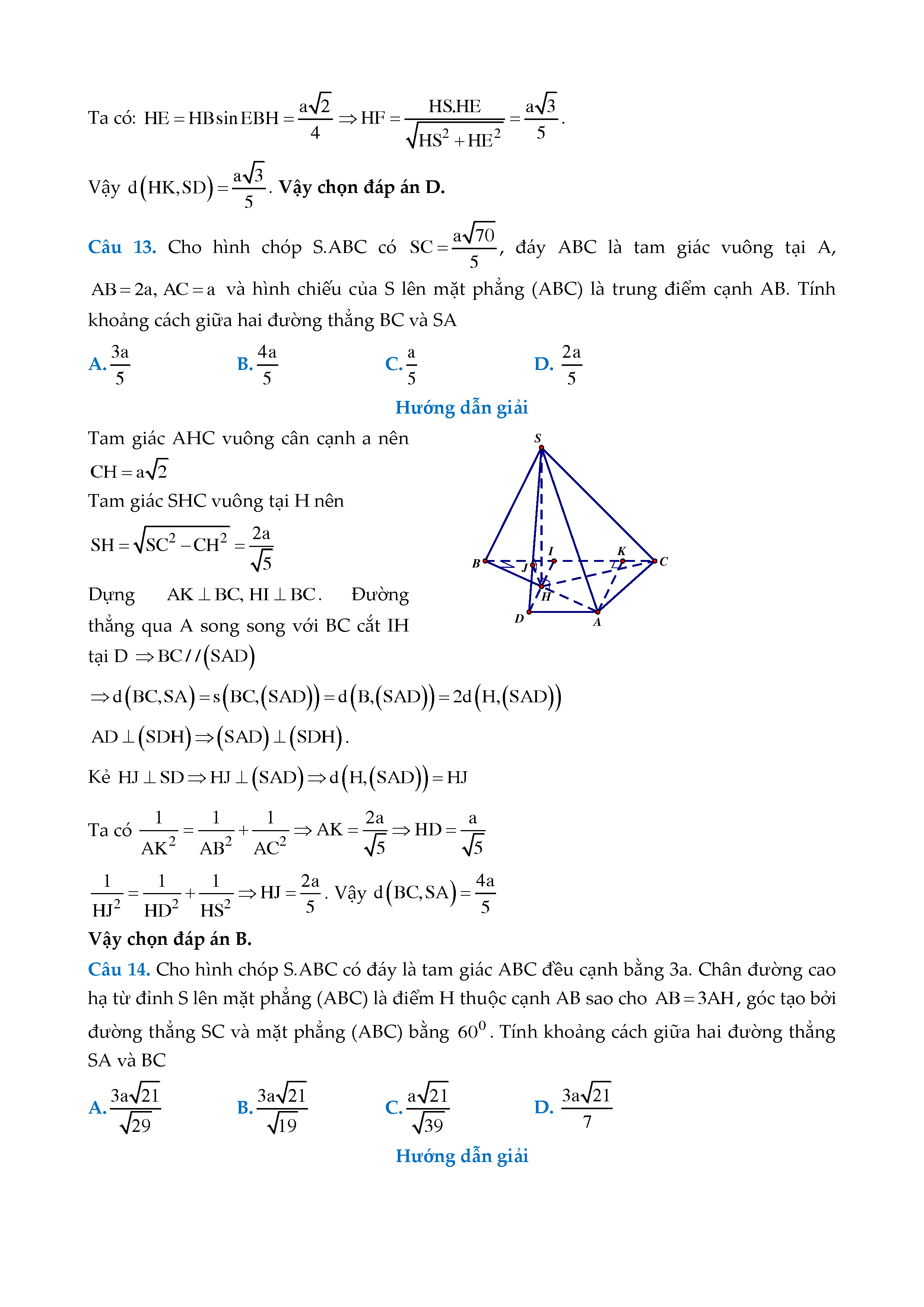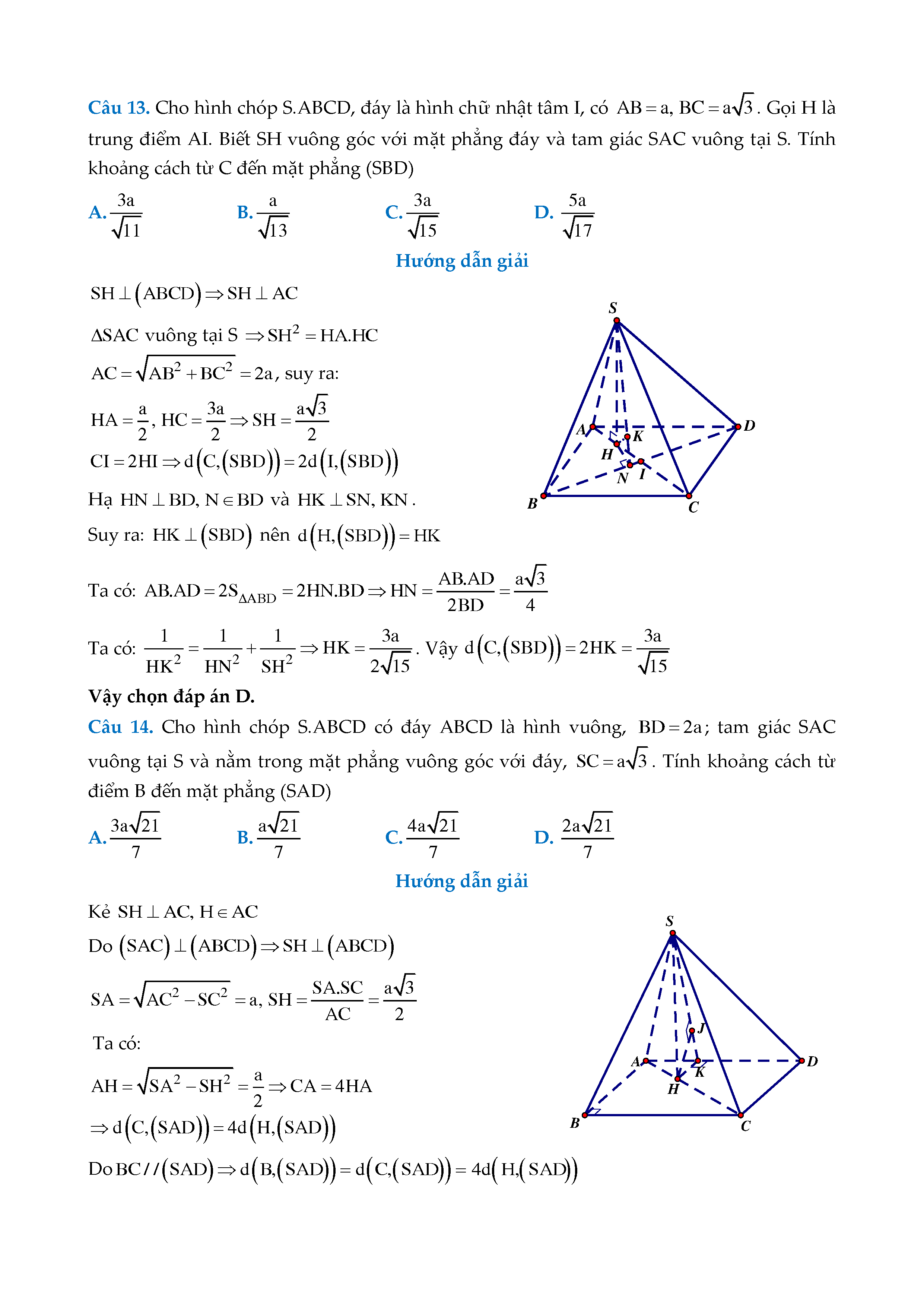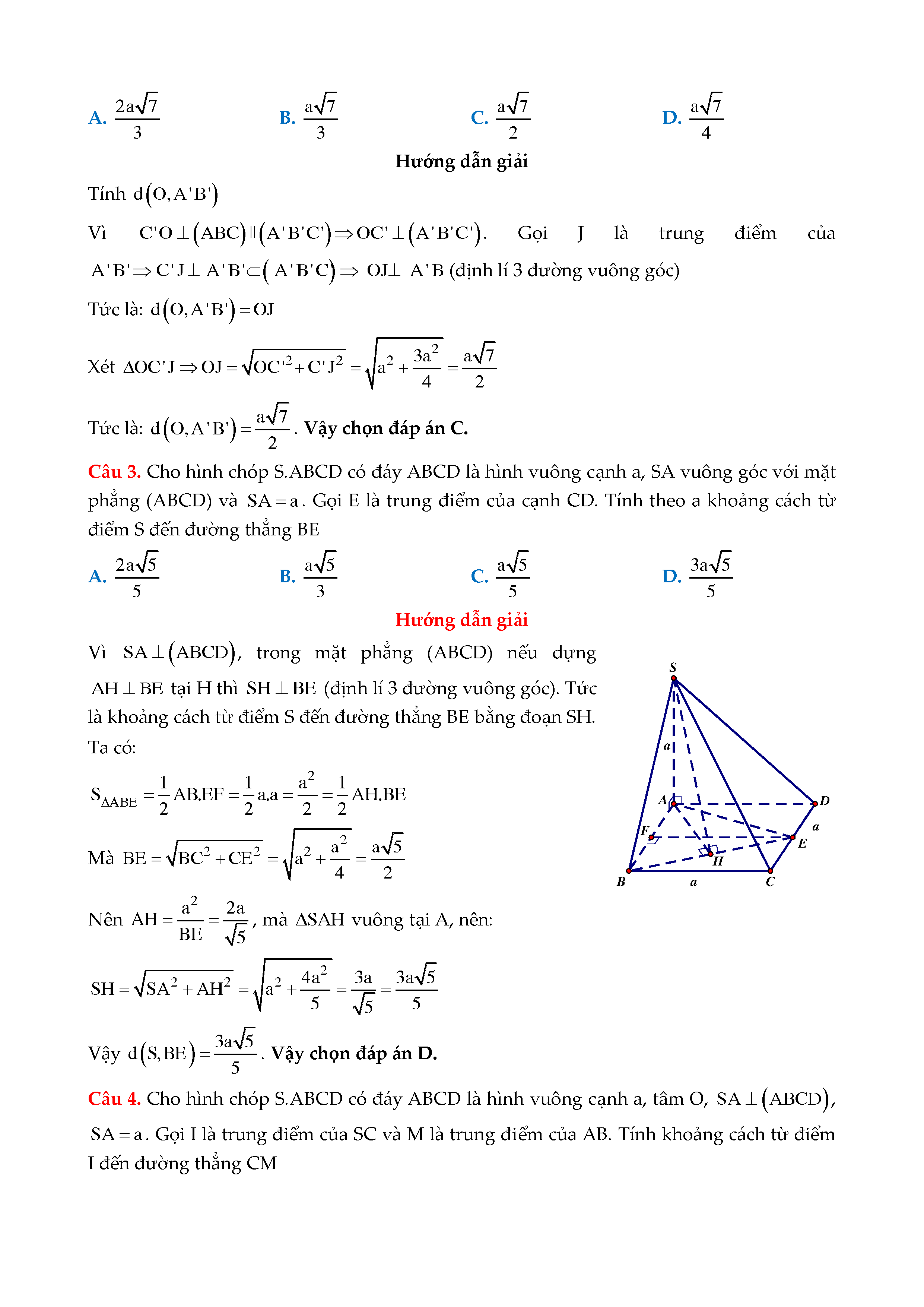 CÁC DẠNG TOÁN KHOẢNG CÁCH TRONG HÌNH HỌC KHÔNG GIAN