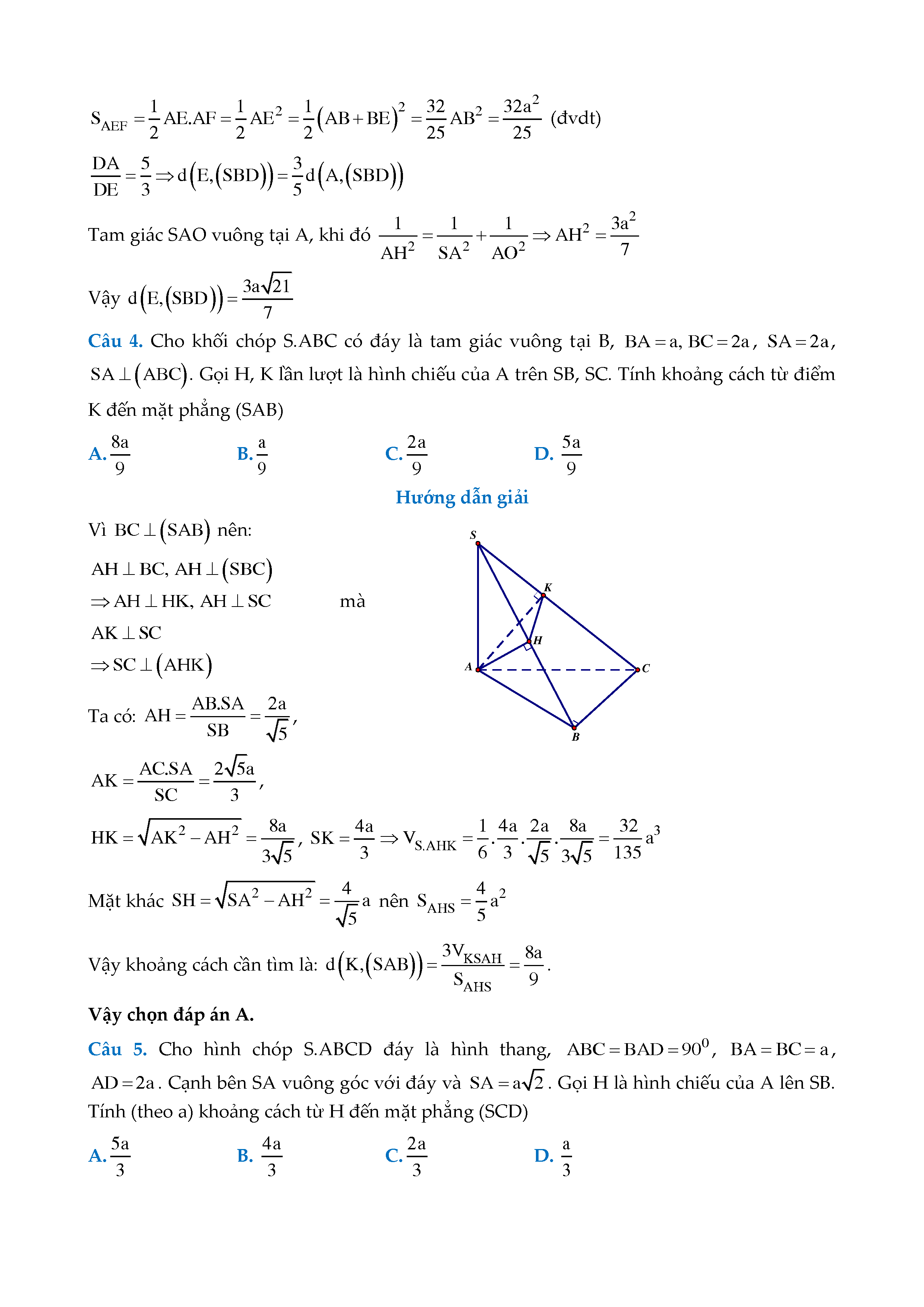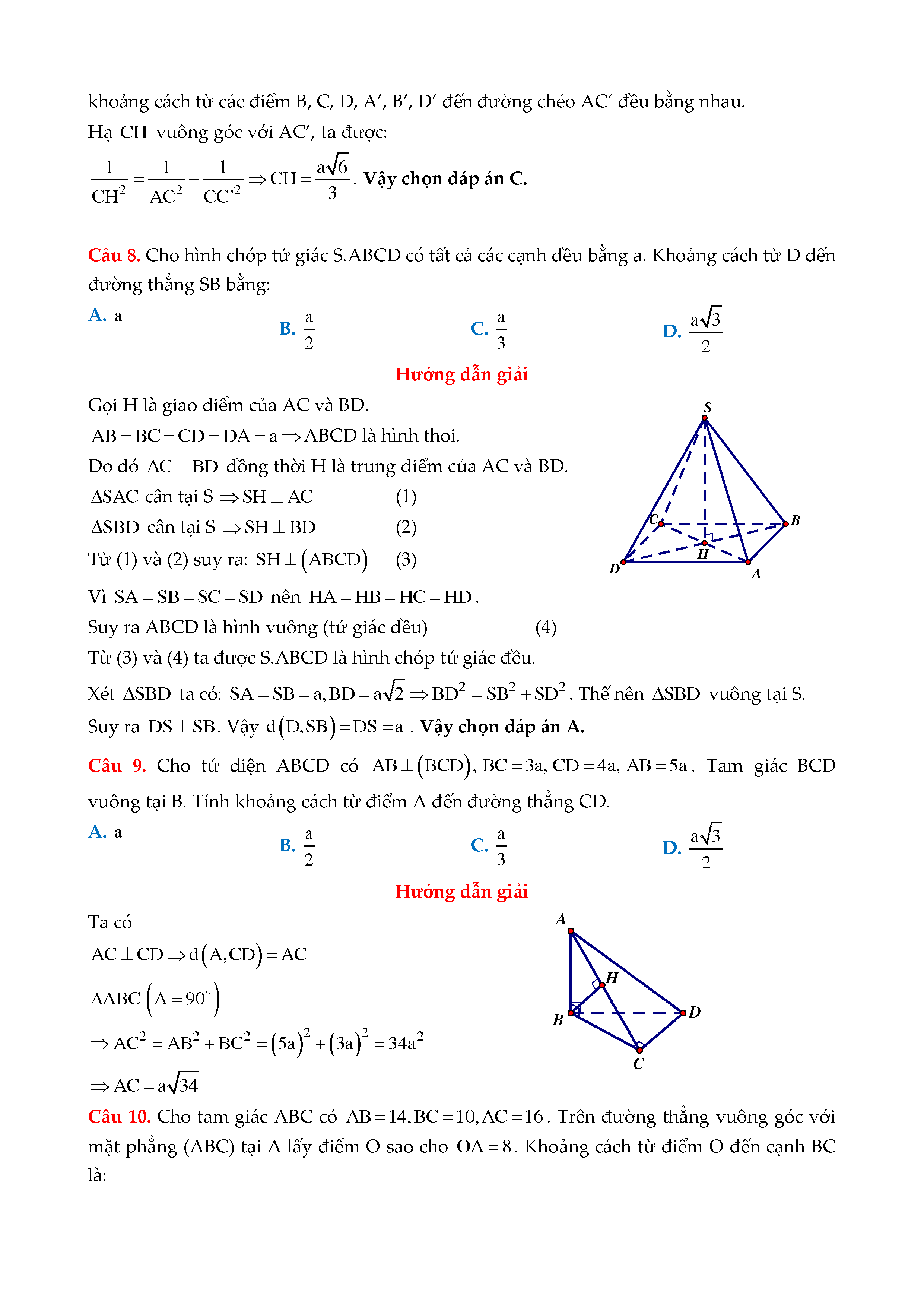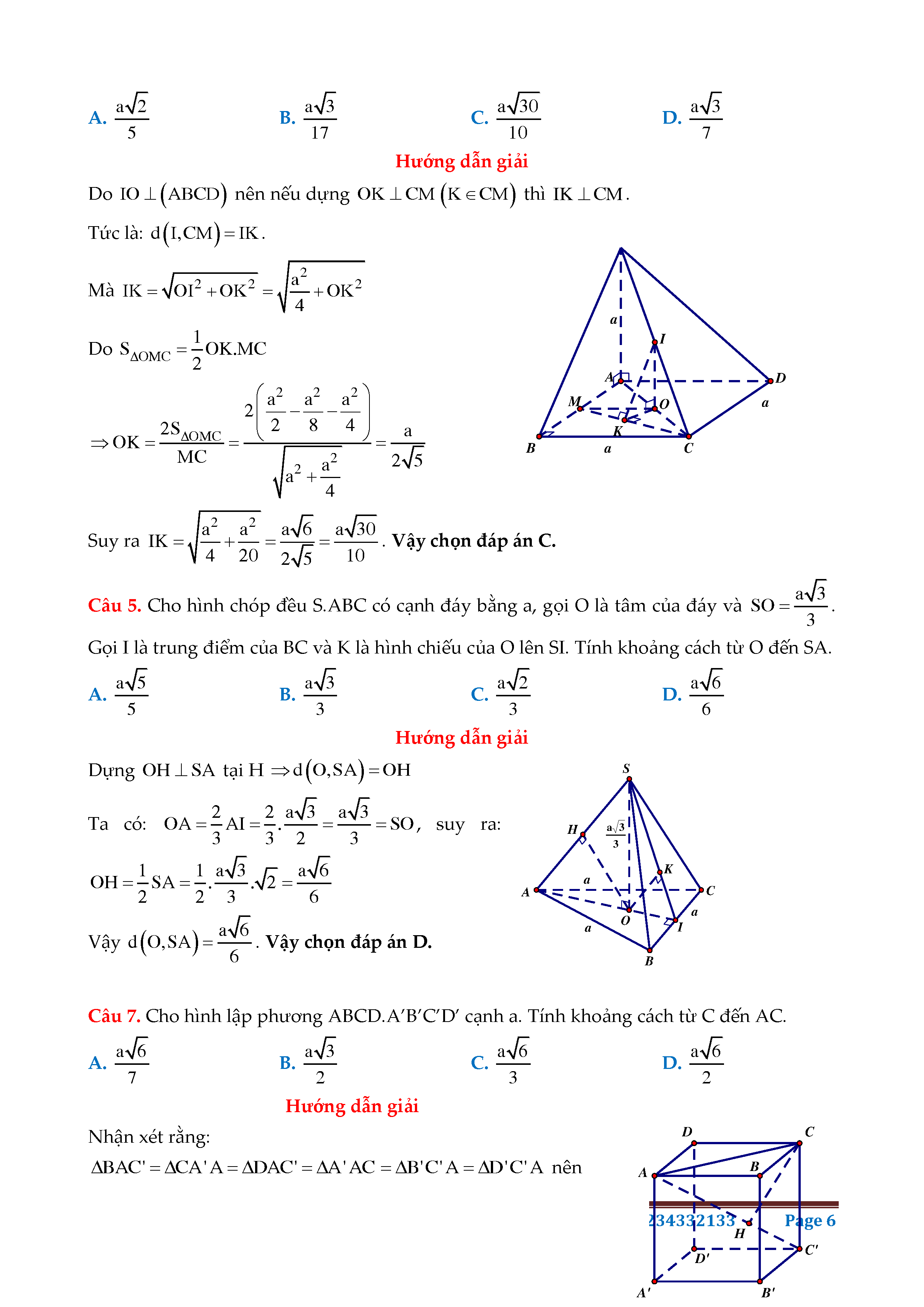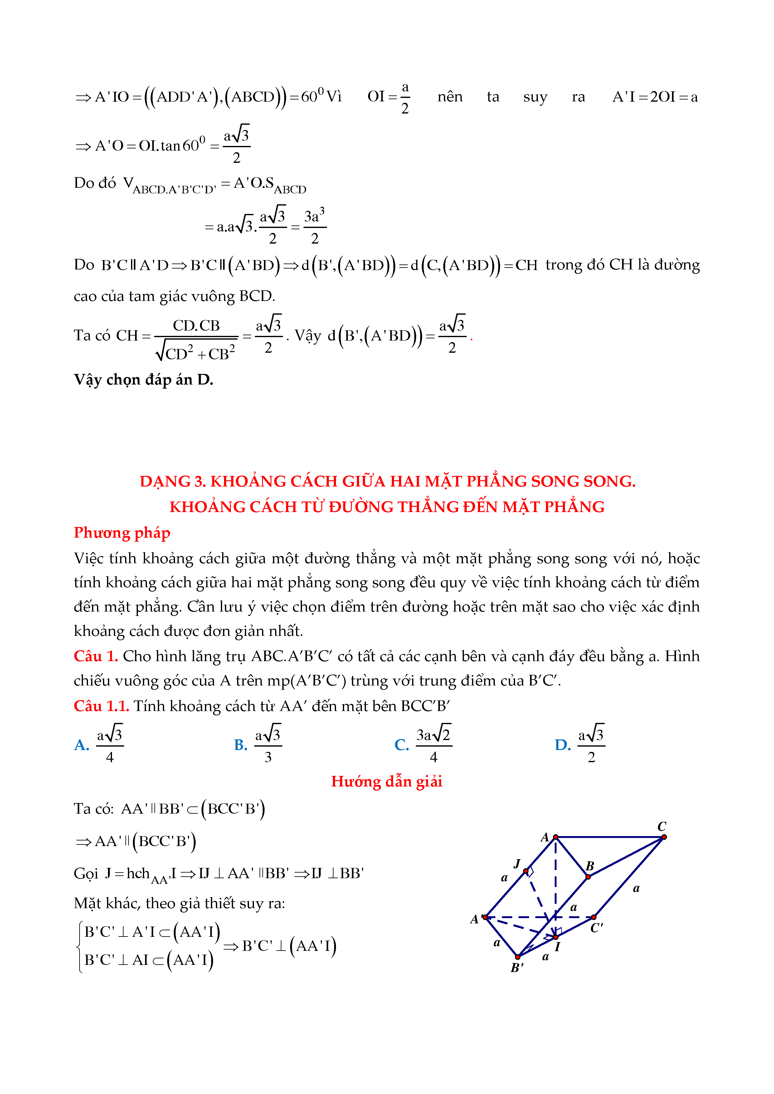 Các dạng toán KHOẢNG CÁCH trong hình học không gian