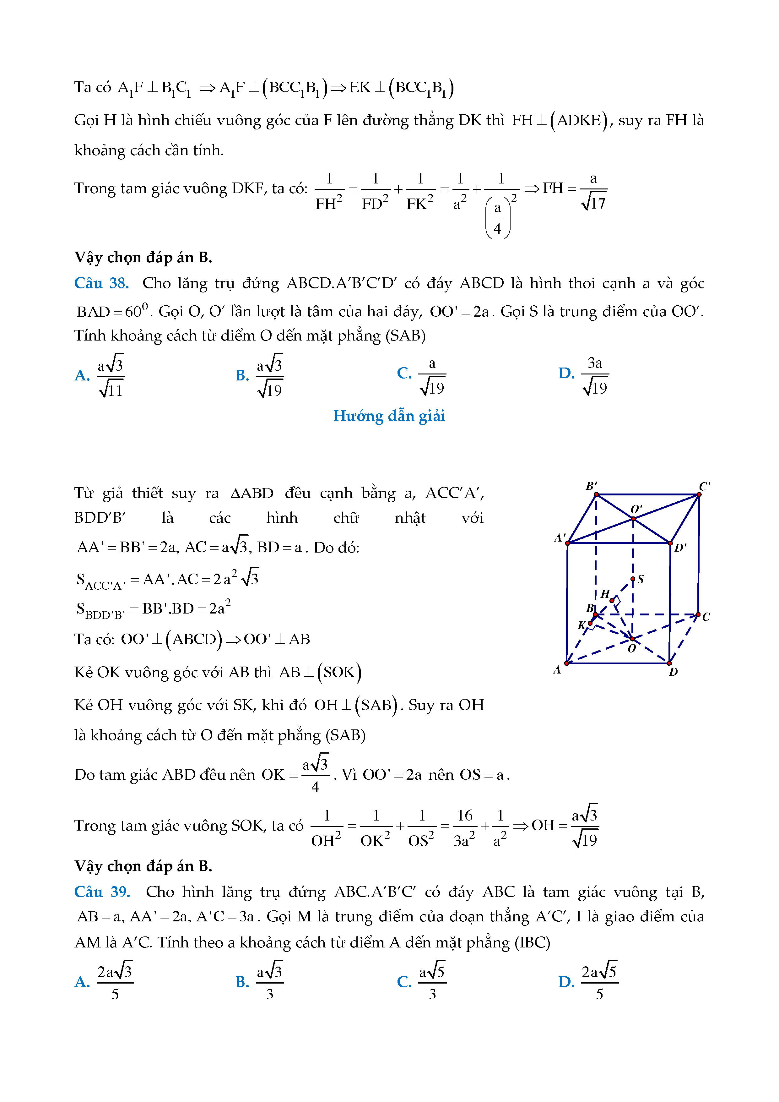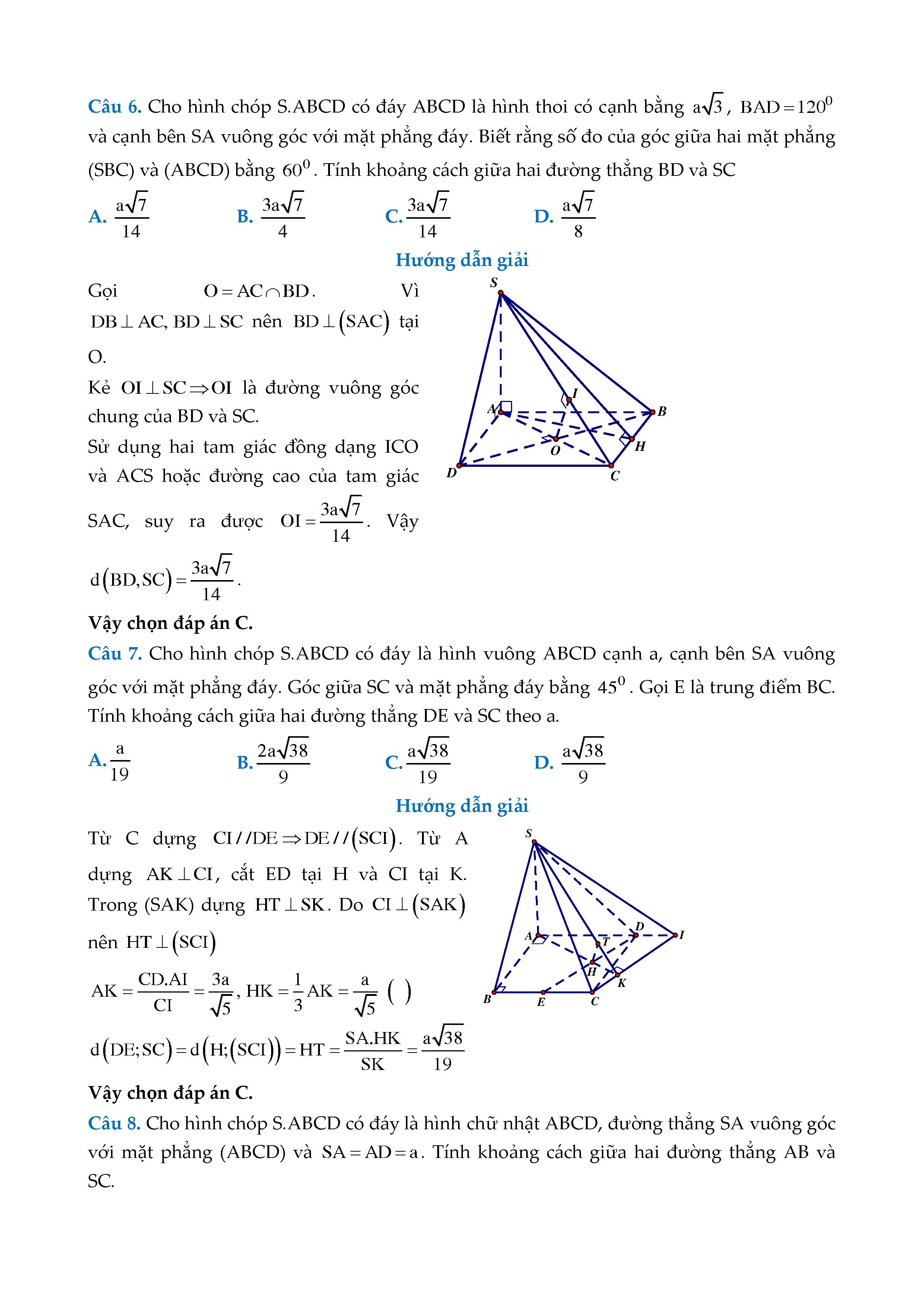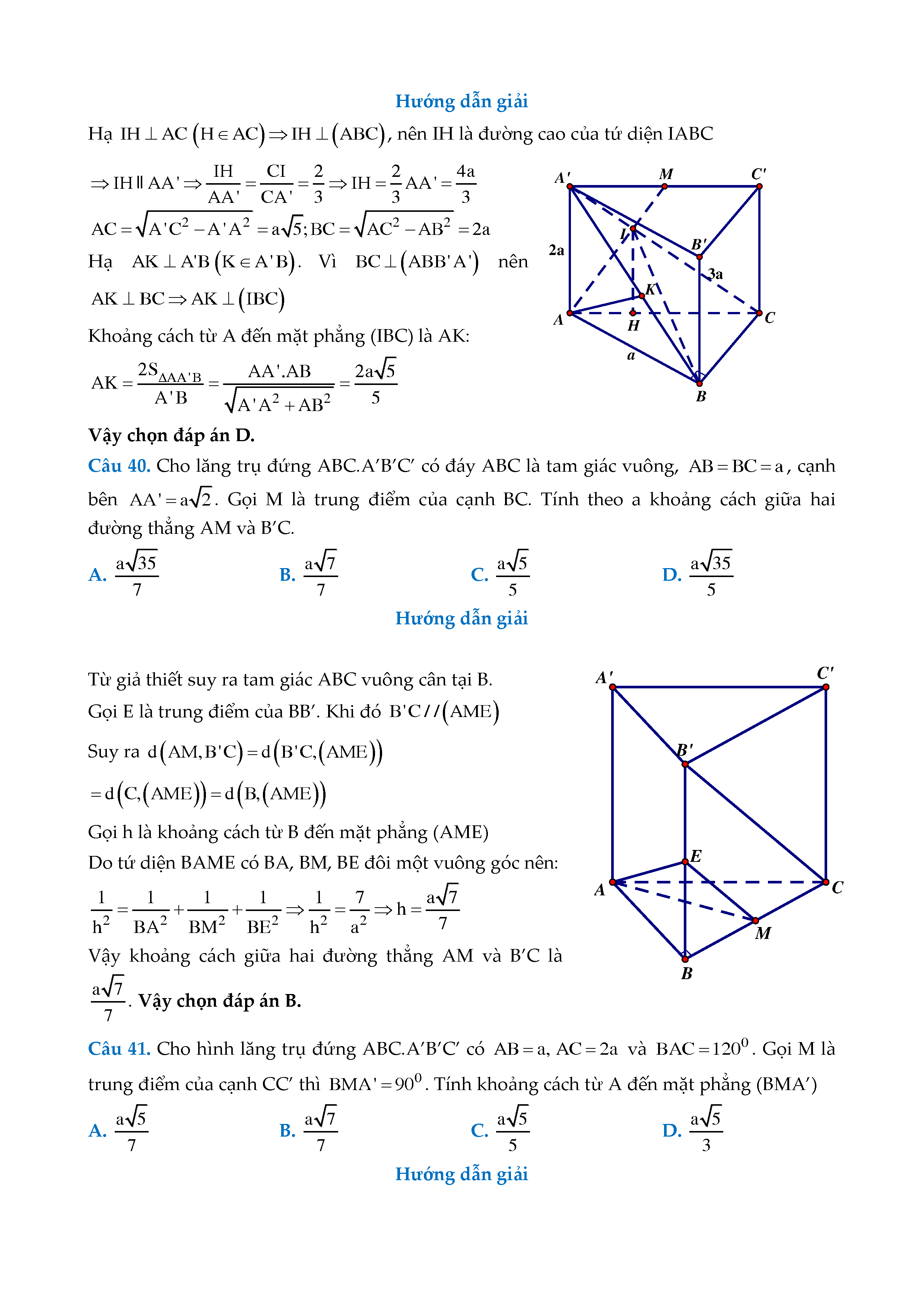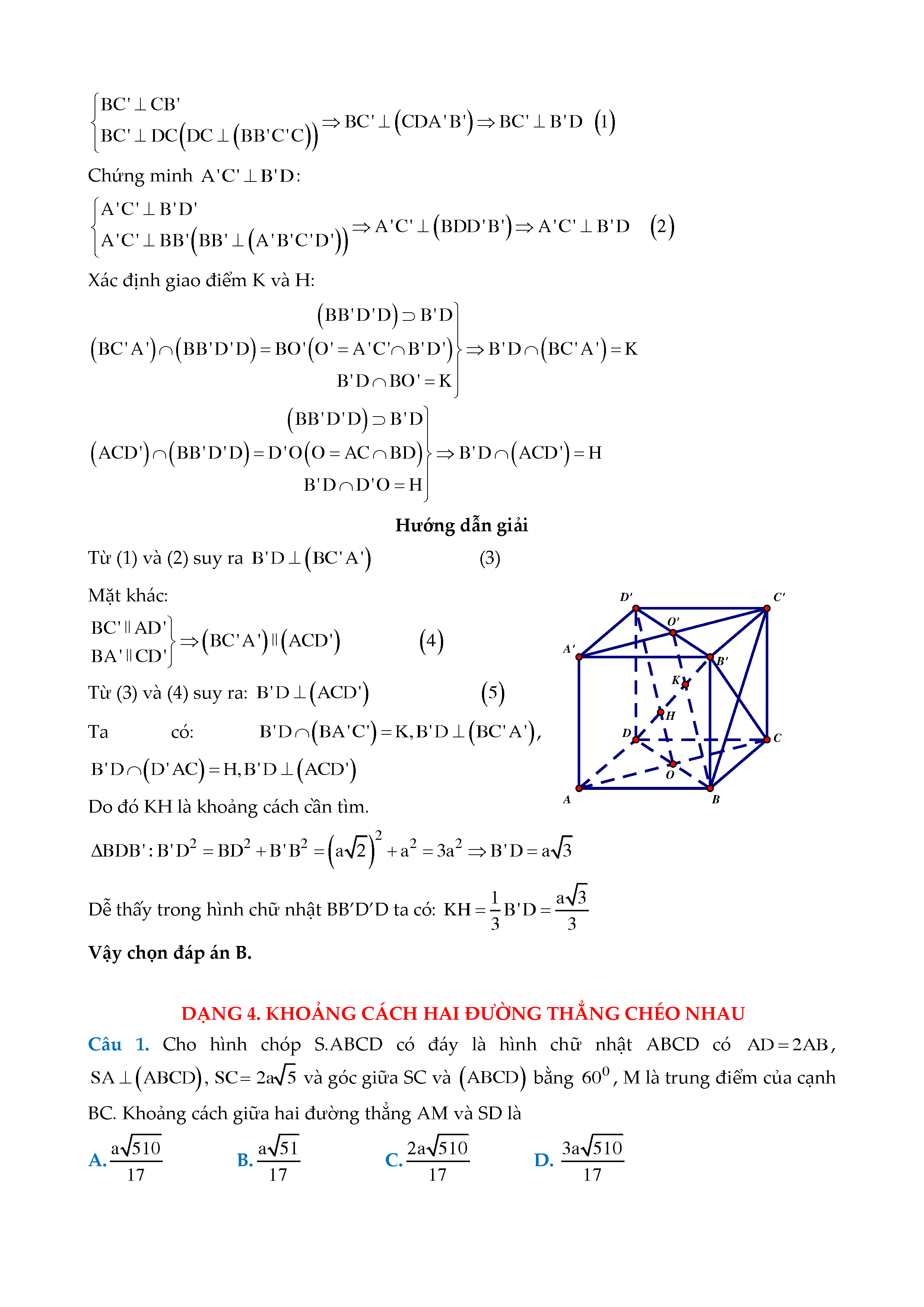 Các dạng toán KHOẢNG CÁCH trong hình học không gian