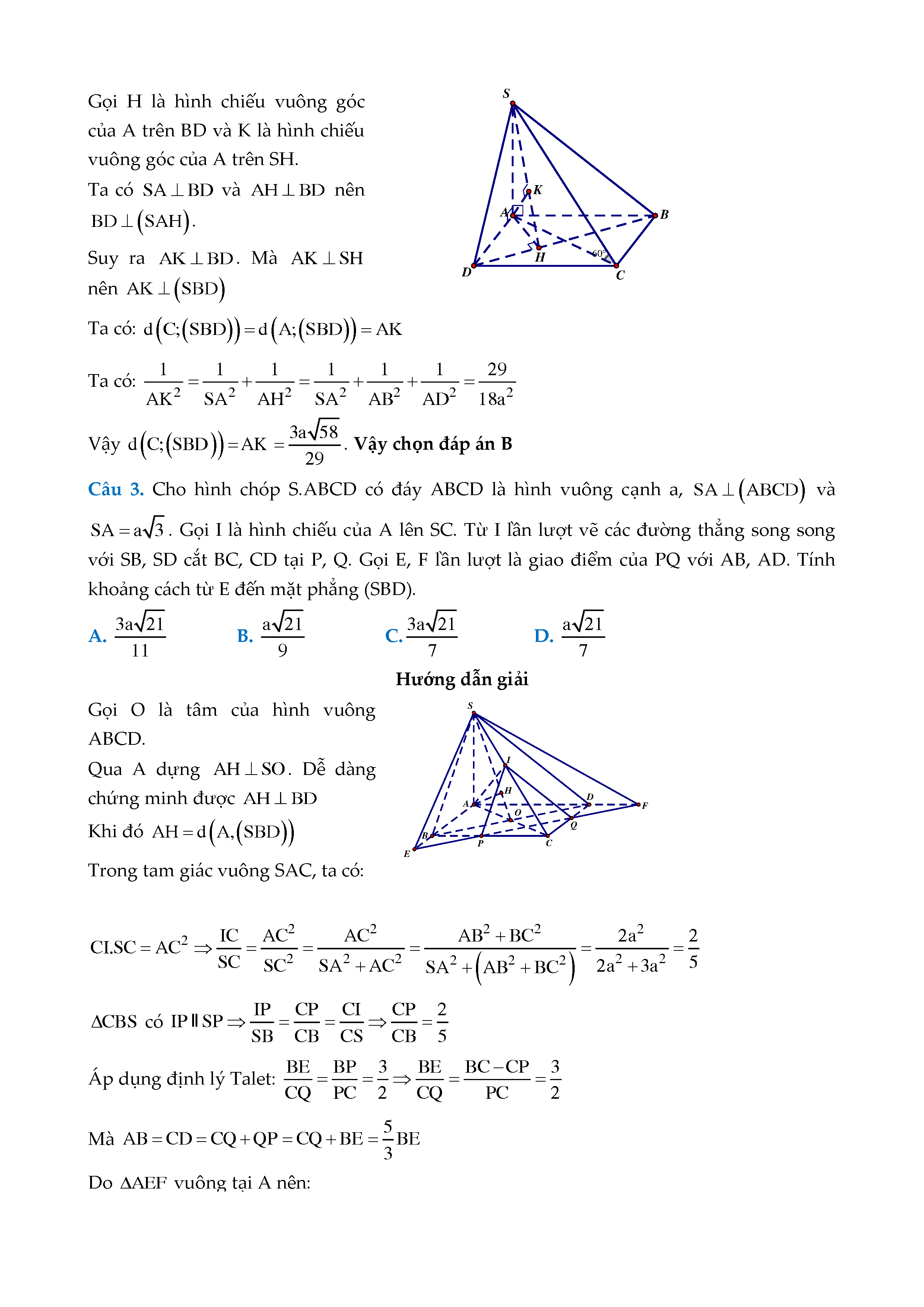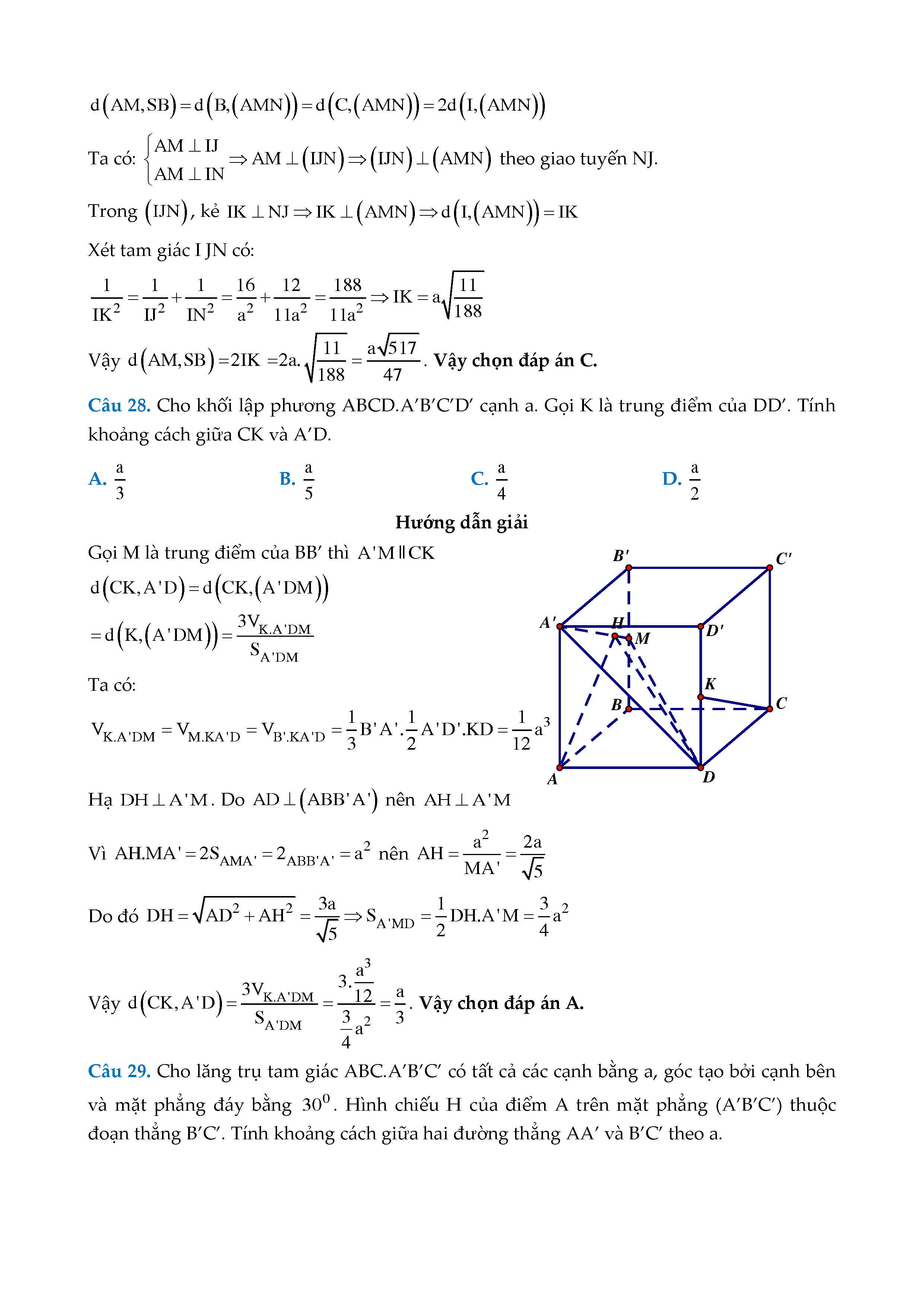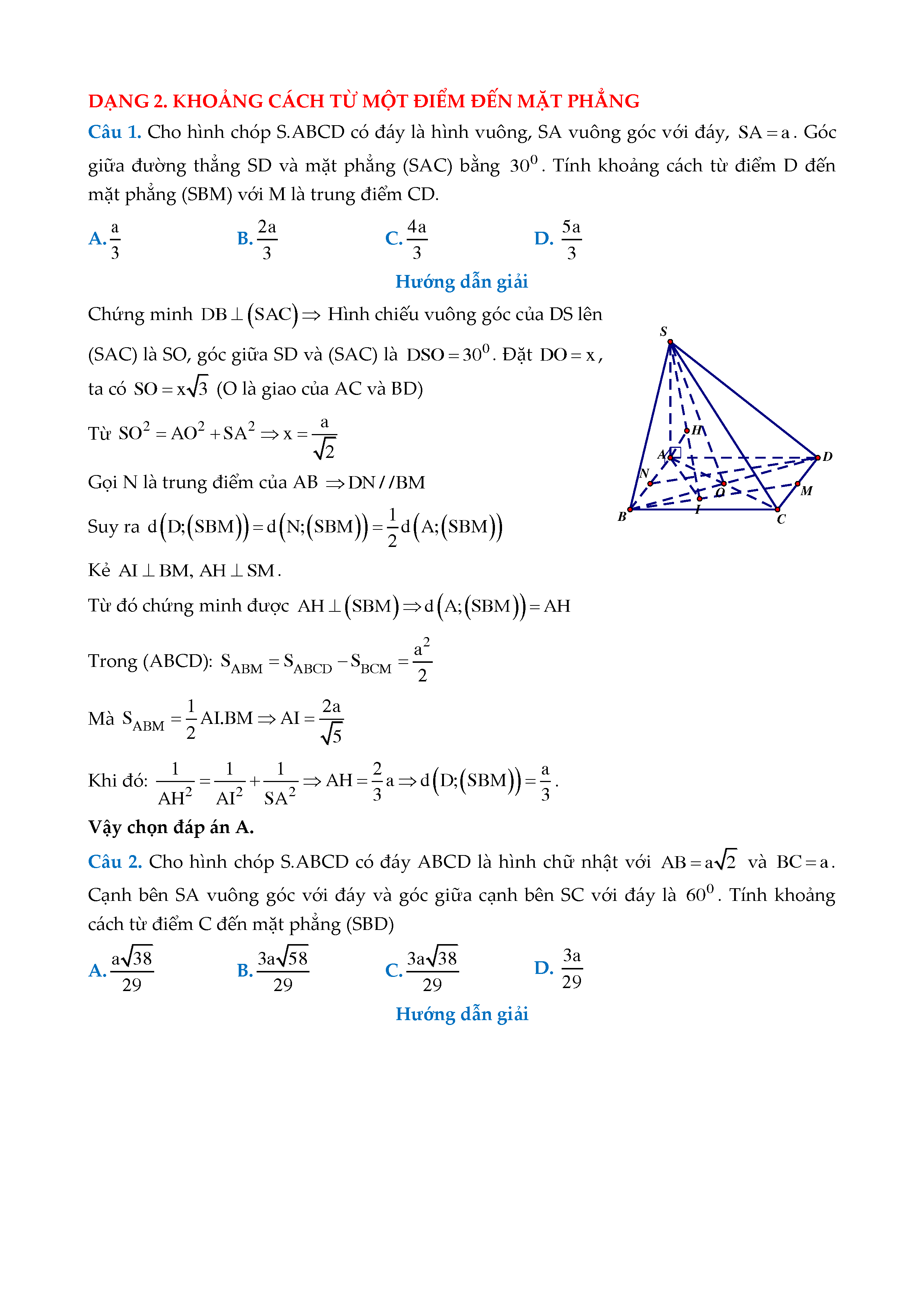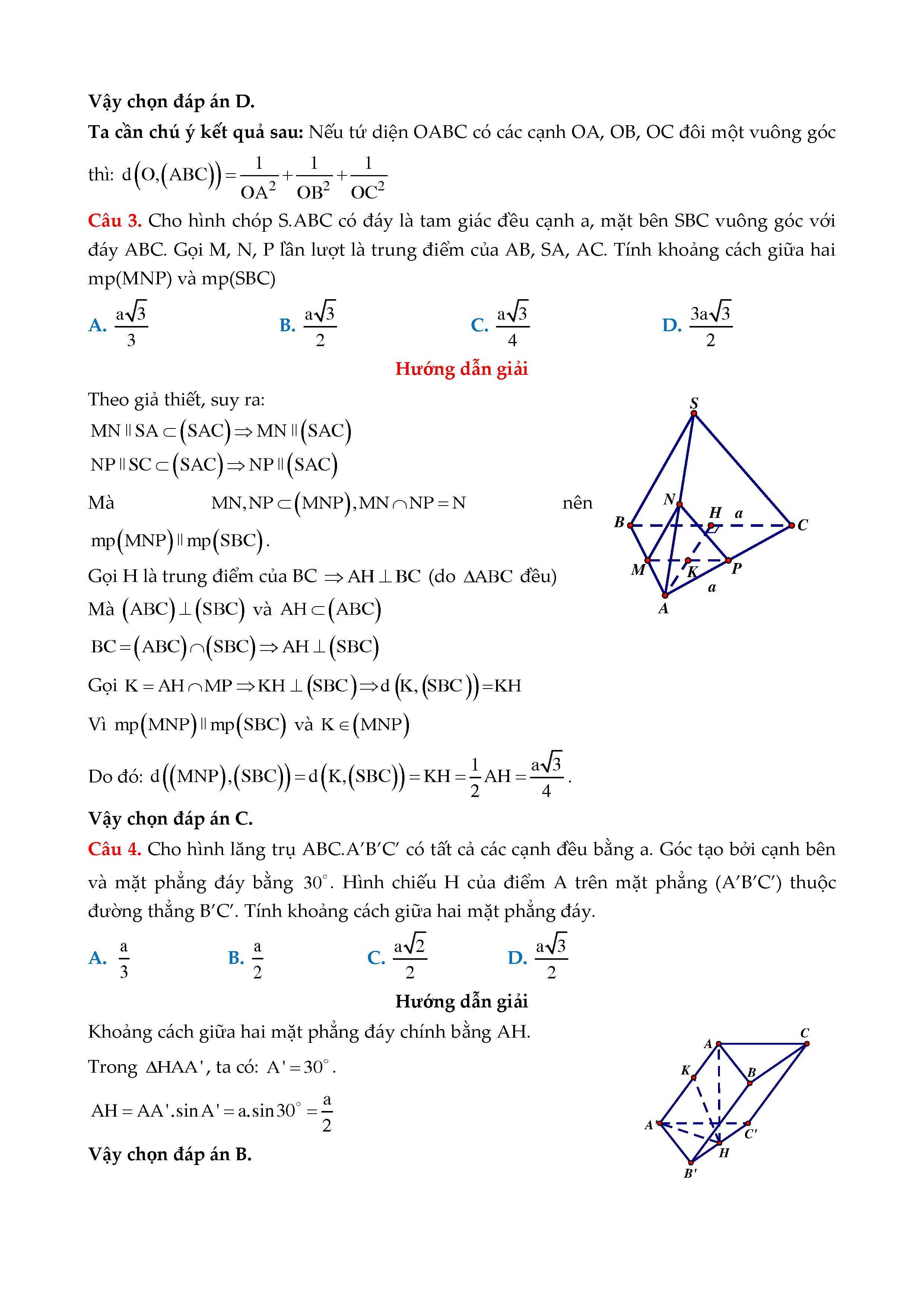 Các dạng toán KHOẢNG CÁCH trong hình học không gian