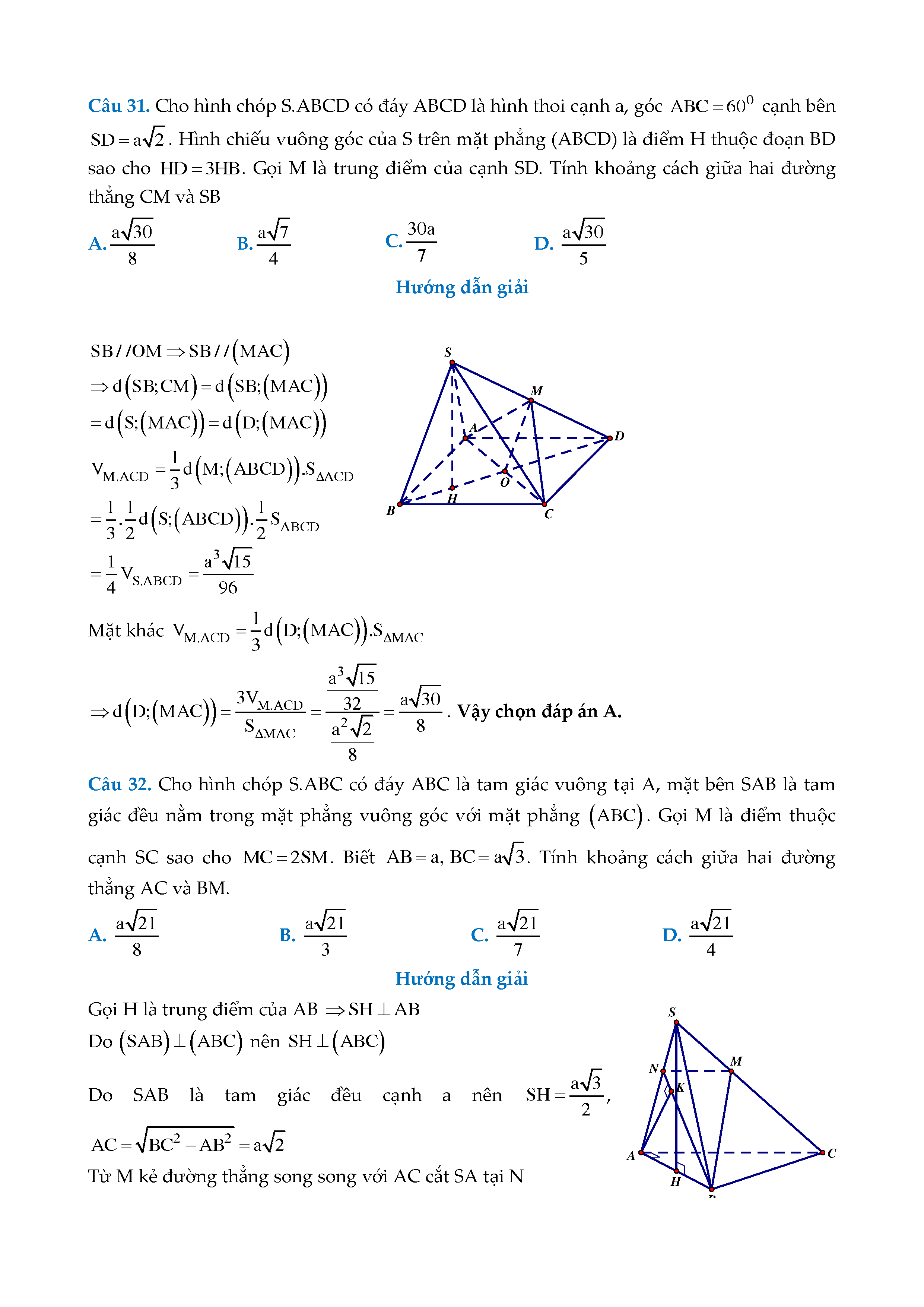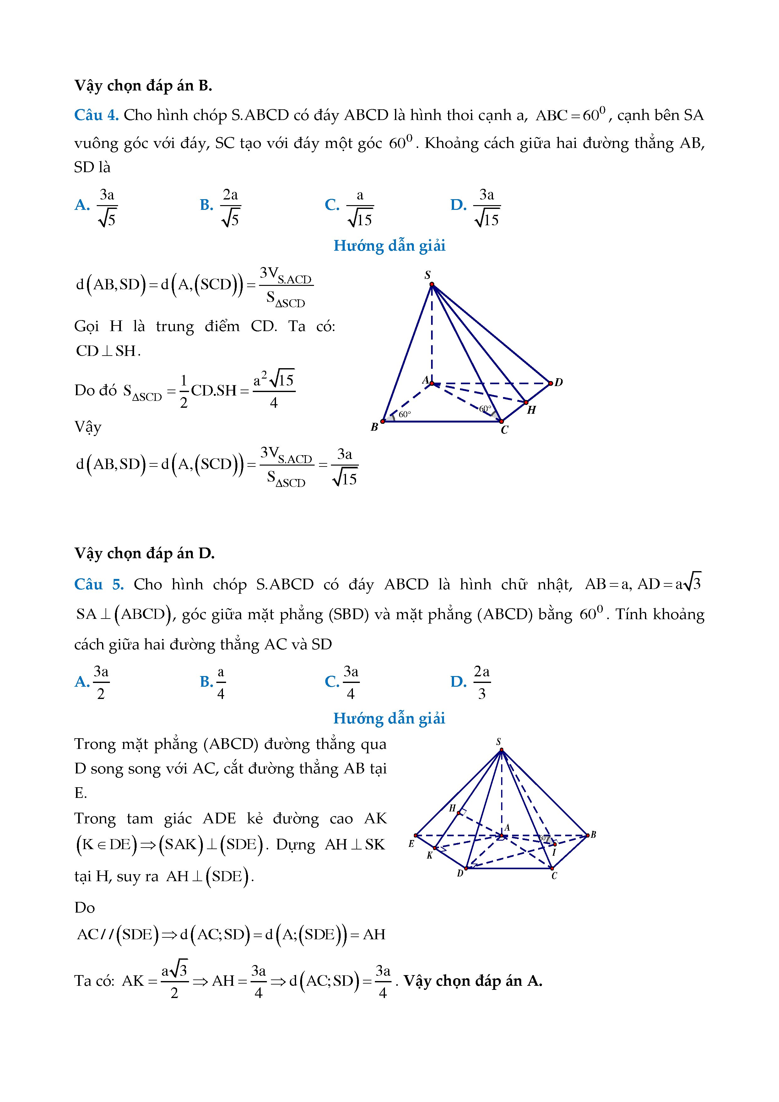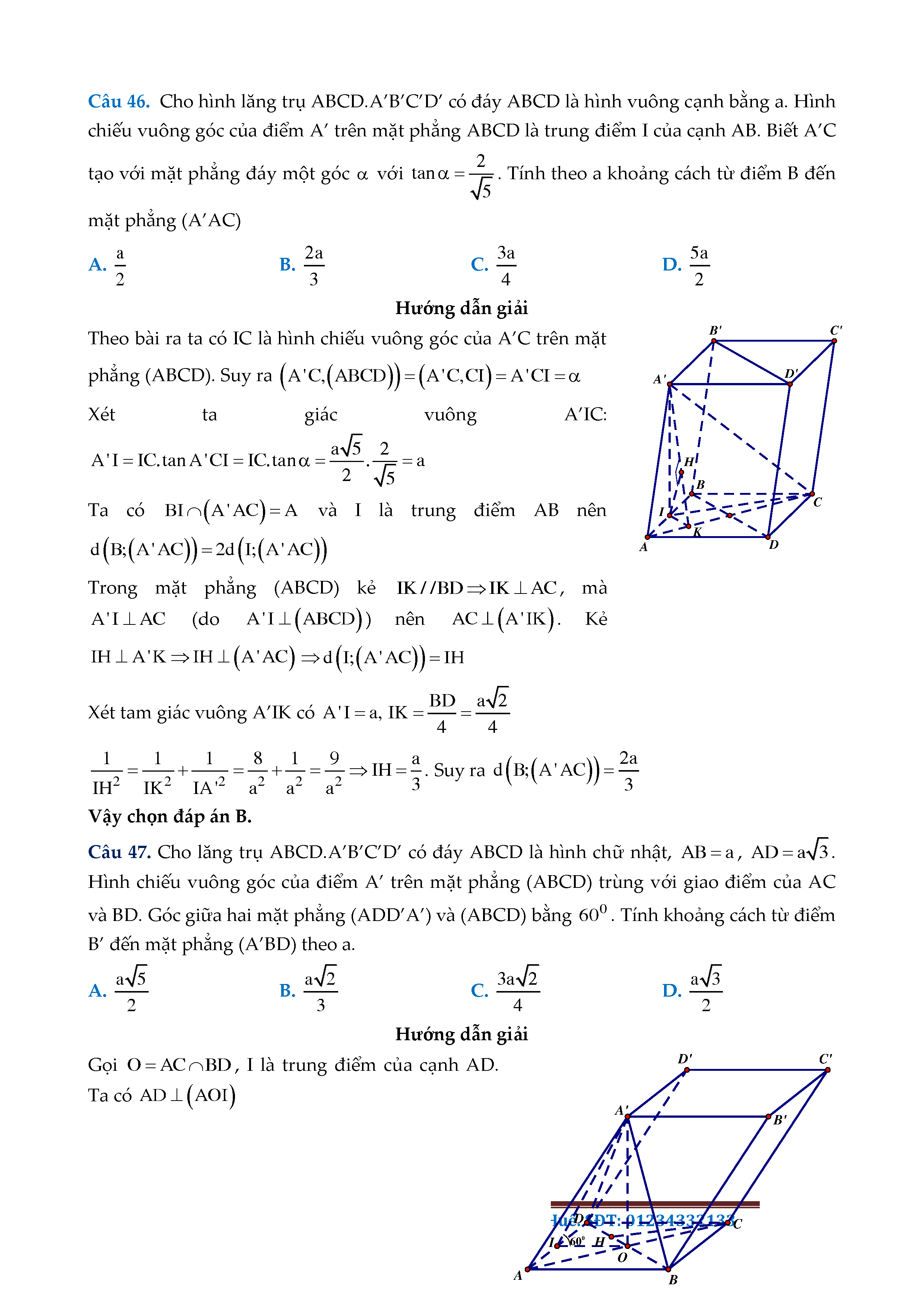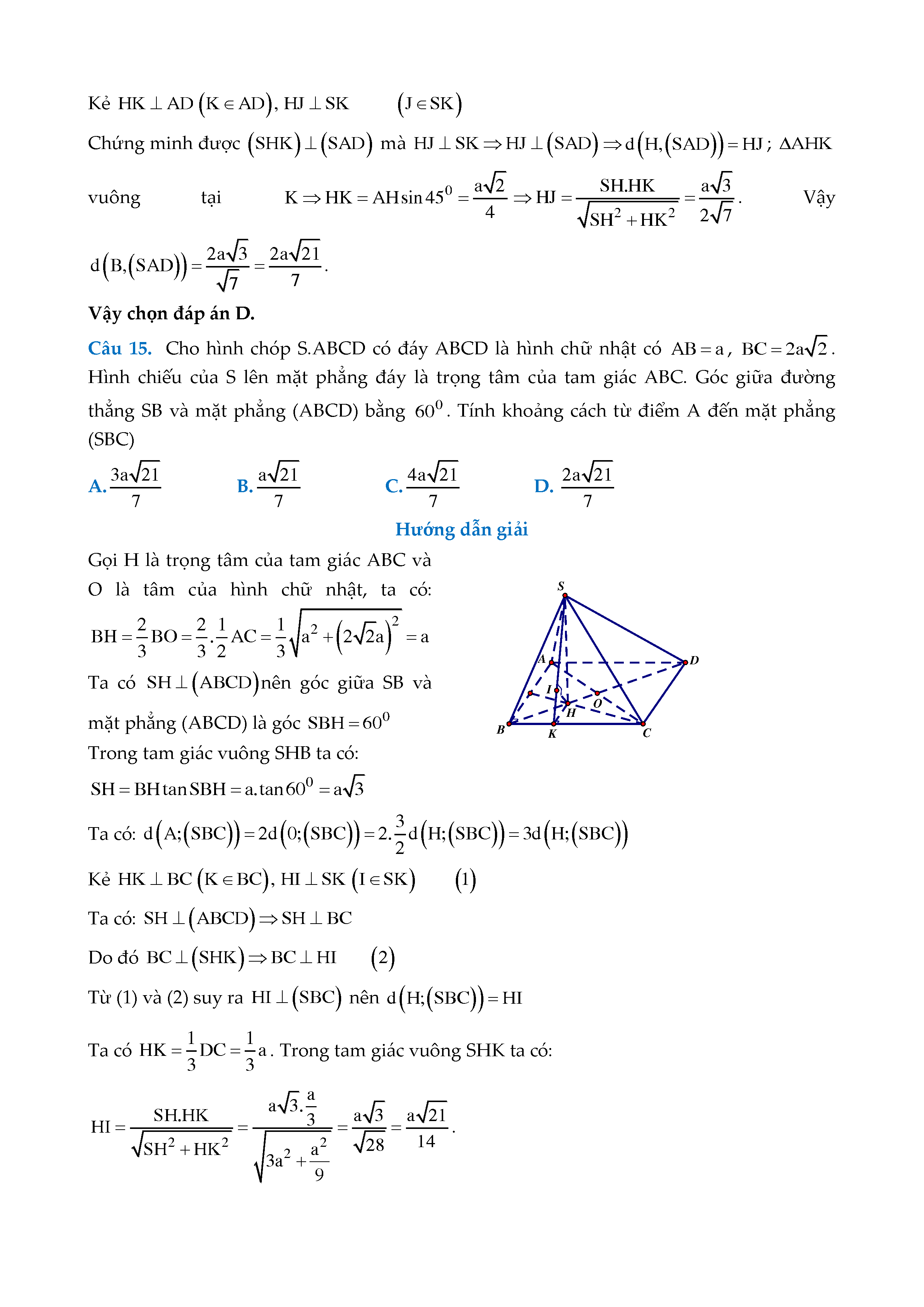 Các dạng toán KHOẢNG CÁCH trong hình học không gian