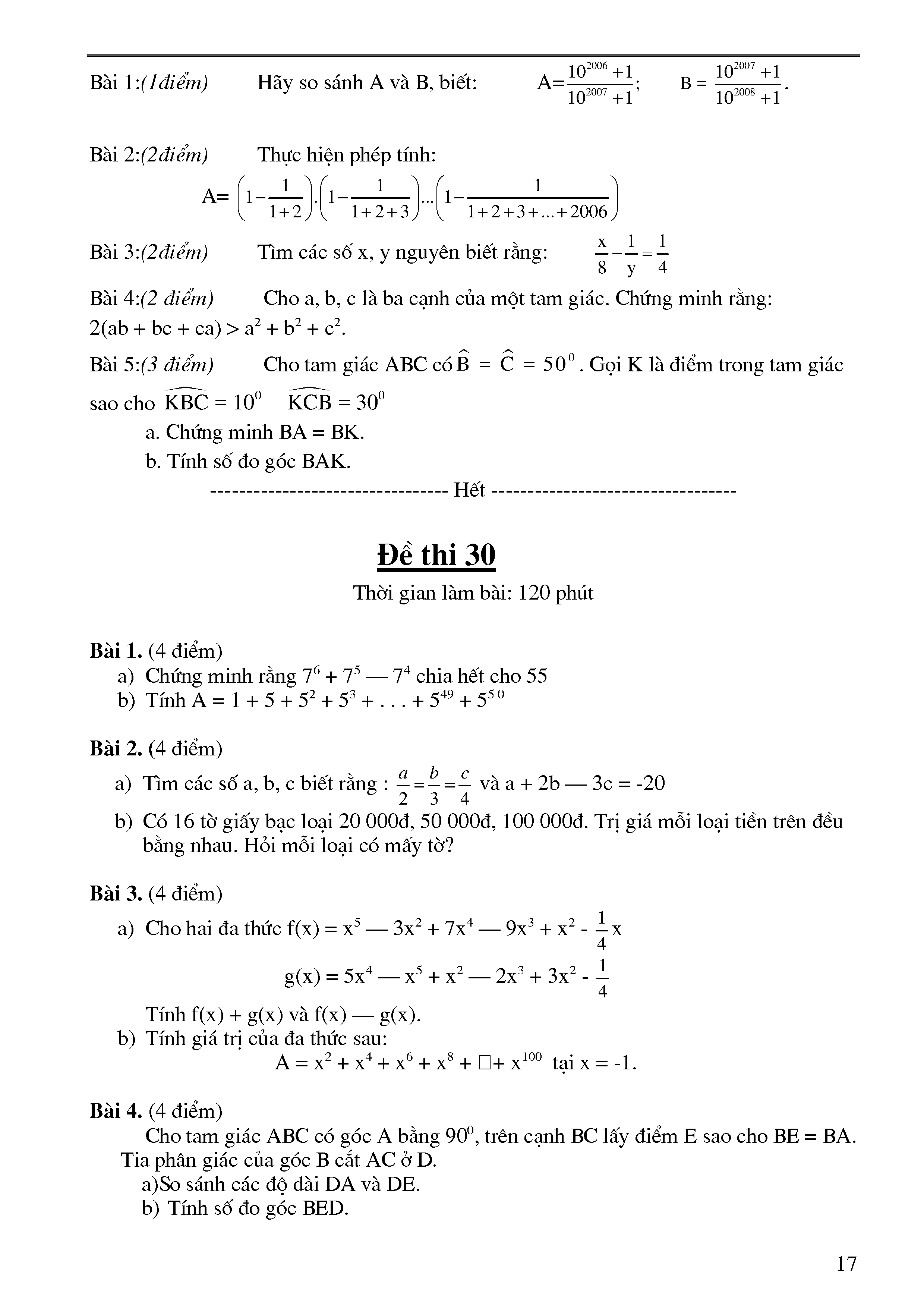 30 ĐỀ THI HSG CÓ ĐÁP ÁN