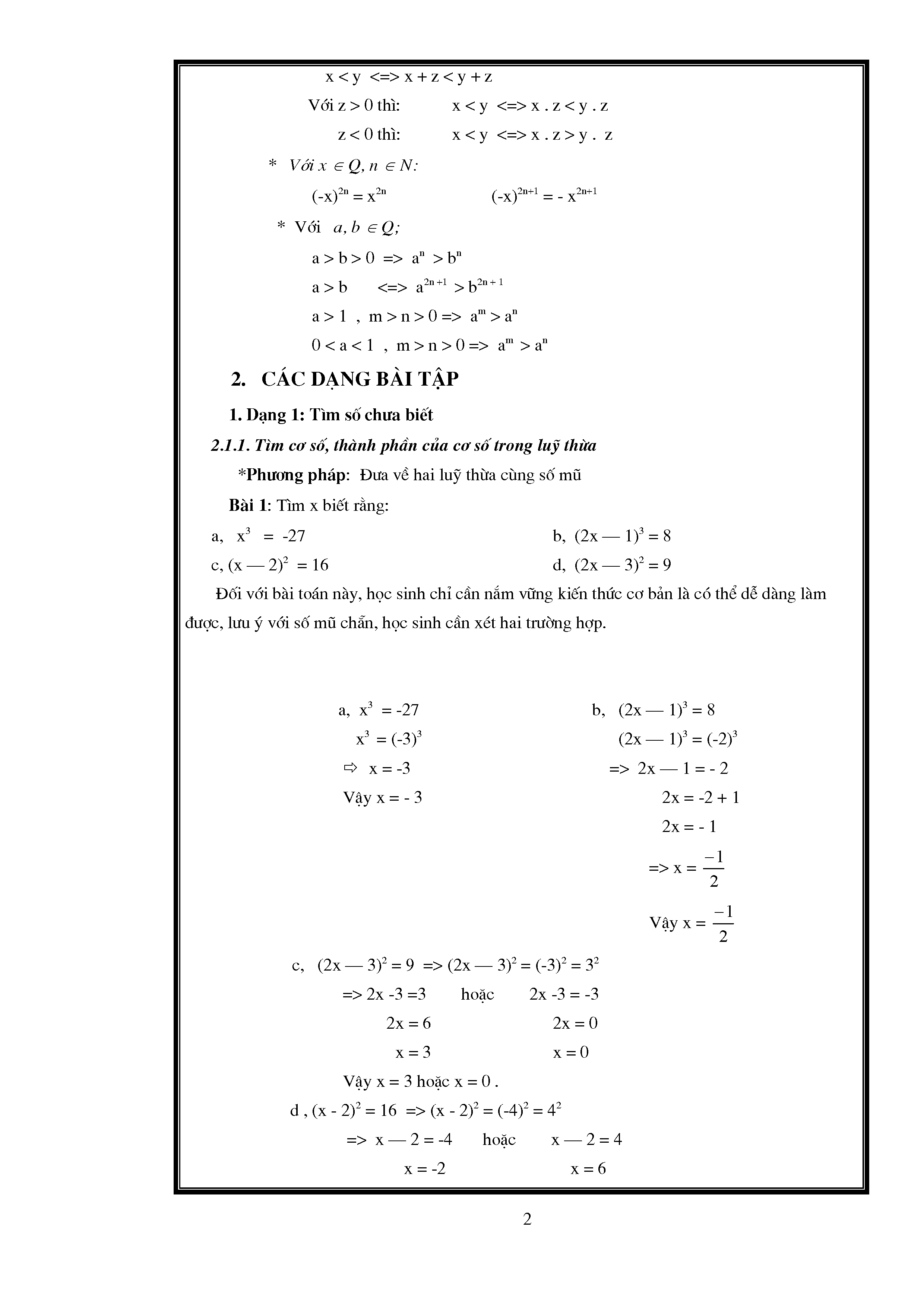 CÁC DẠNG BÀI LŨY THỪA SỐ HỮU TỈ VÀ PHƯƠNG PHÁP GIẢI - TOÁN 7