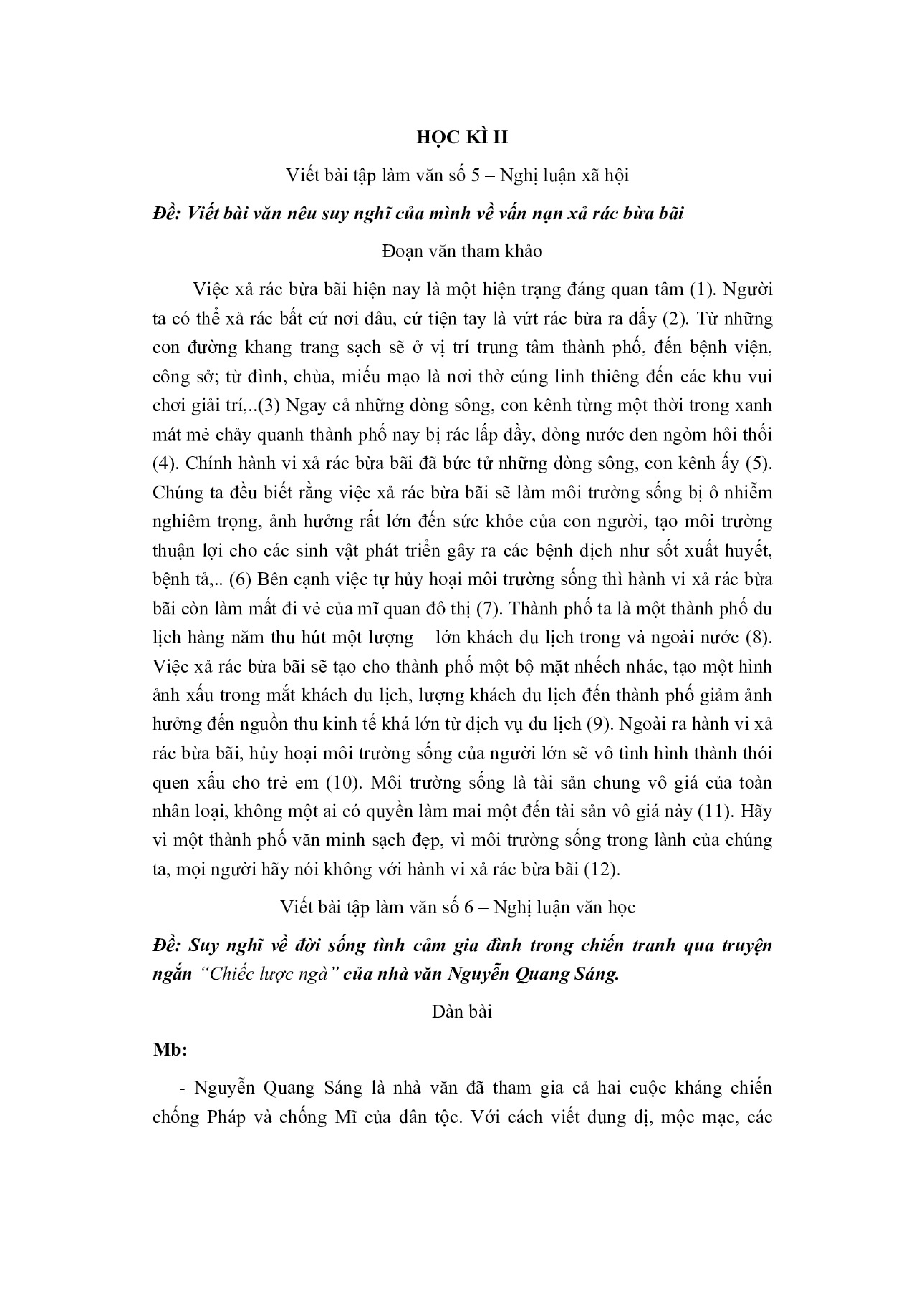 TỔNG HỢP CÁC BÀI VĂN MẪU HỌC KÌ II LỚP 8