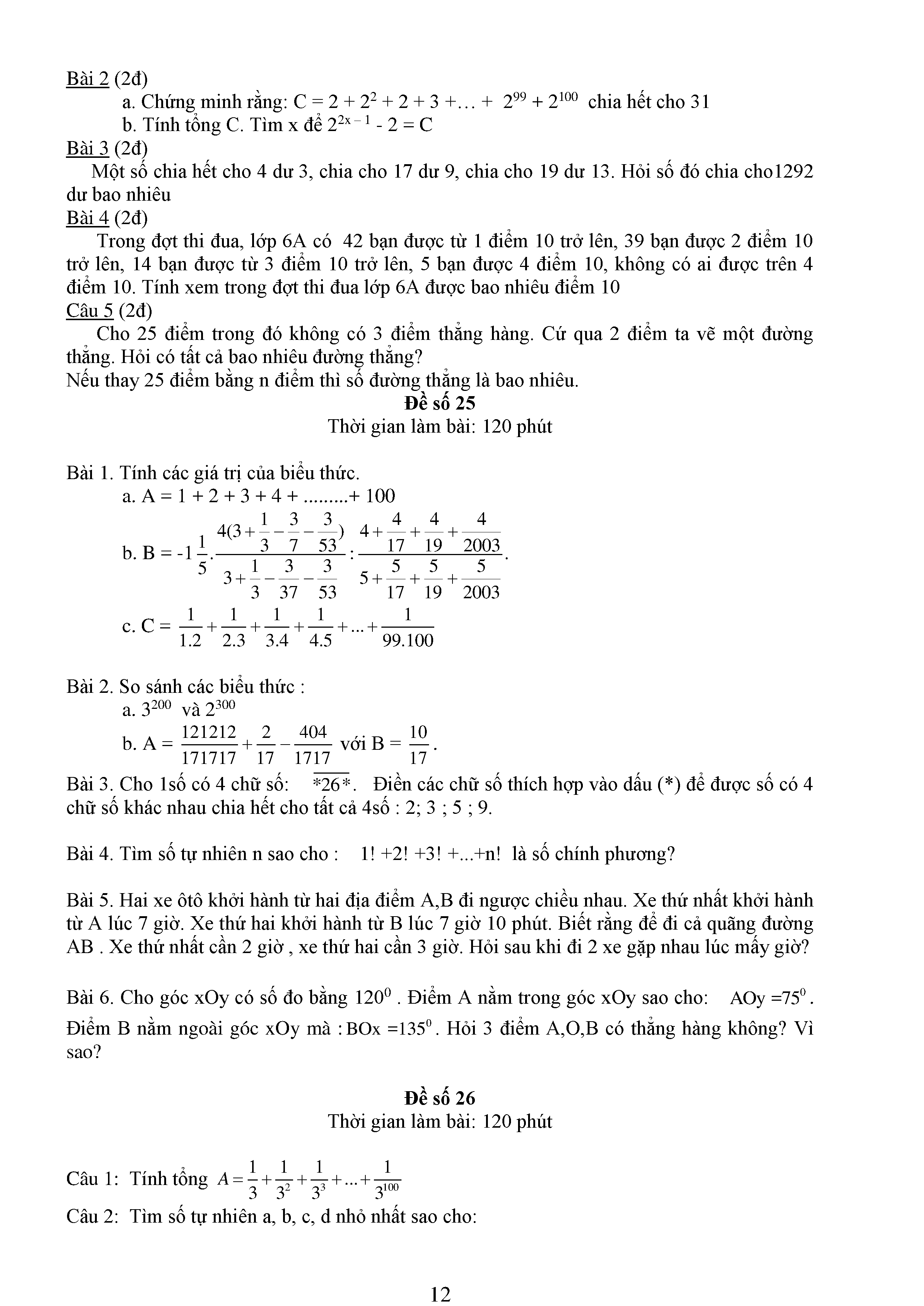 ĐỀ THI HỌC SINH GIỎI TOÁN 6 – CÓ ĐÁP ÁN CHI TIẾT