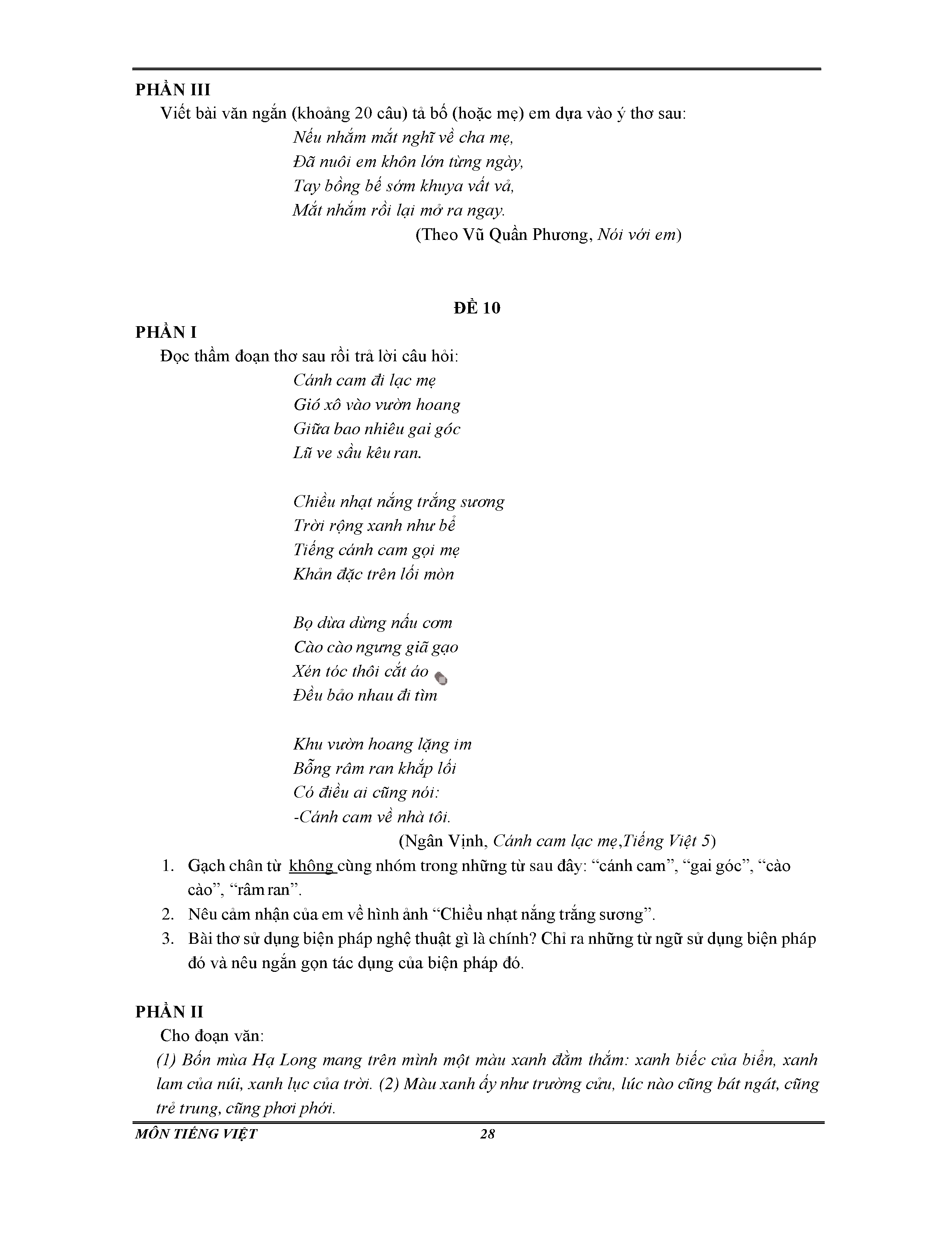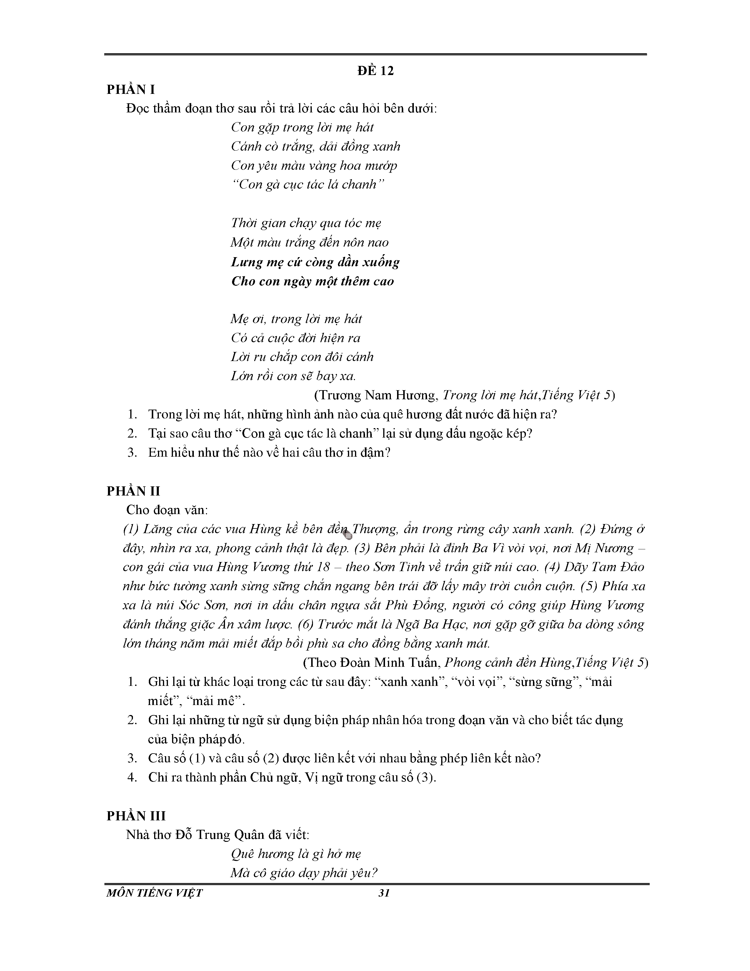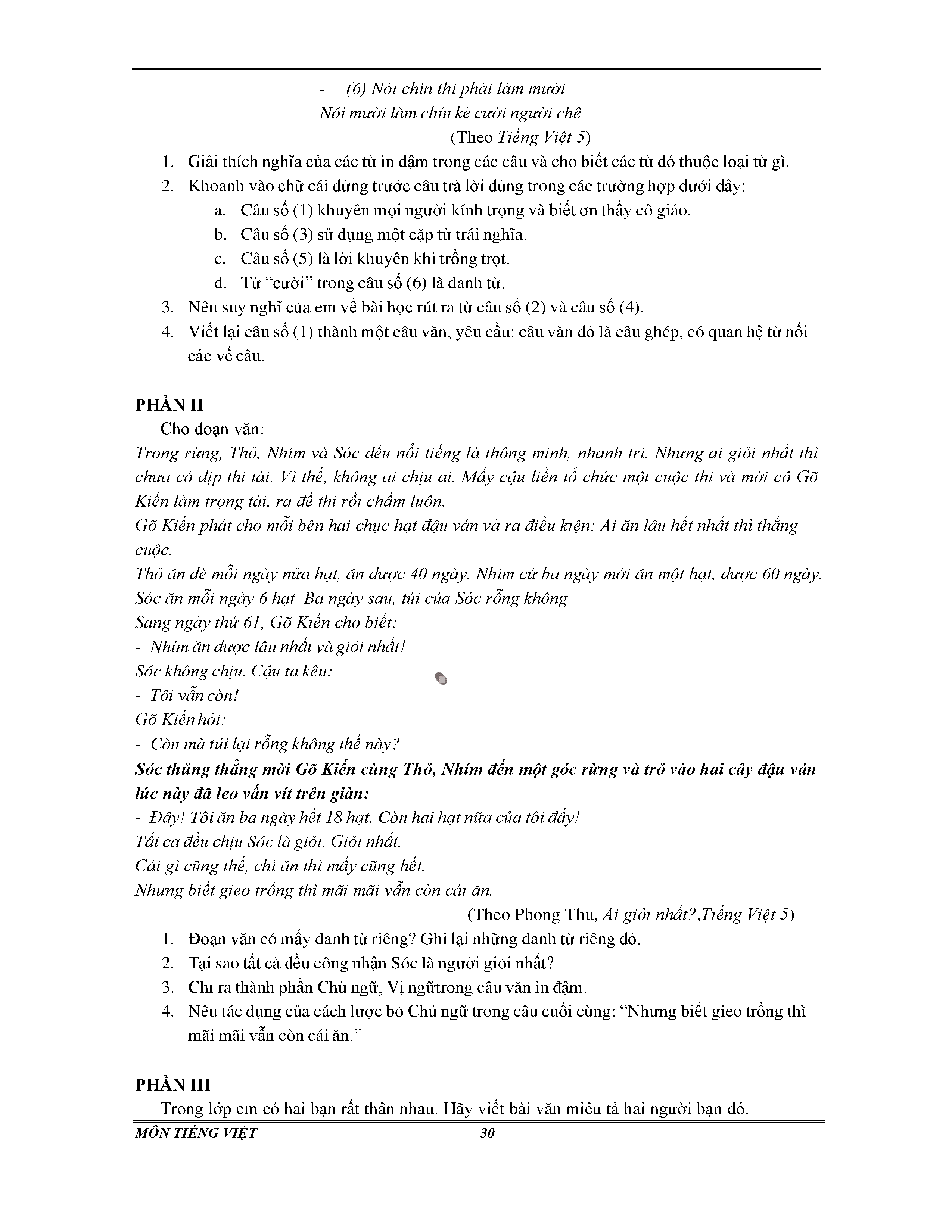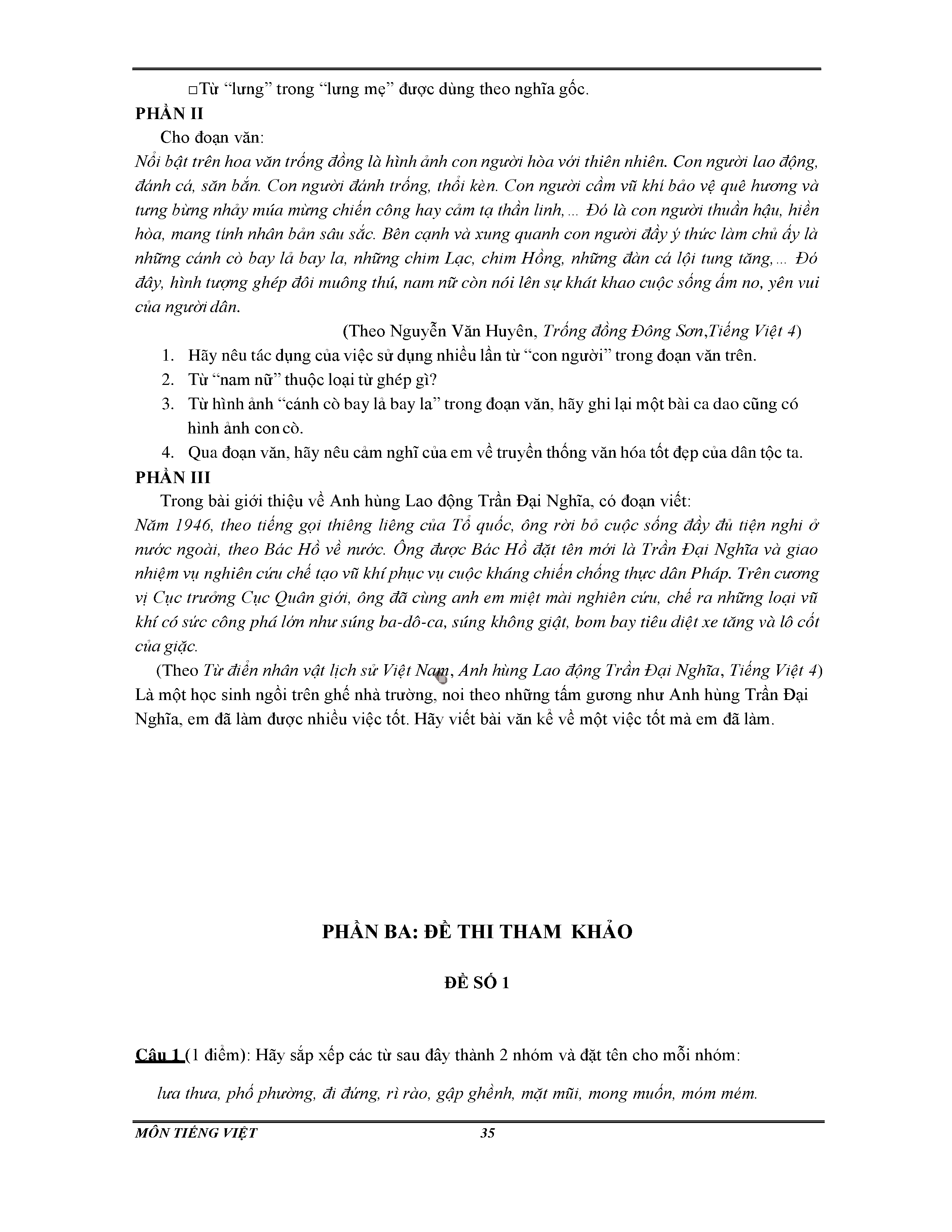 TÀI LIỆU ÔN THI VÀO 6 MÔN TIẾNG VIỆT