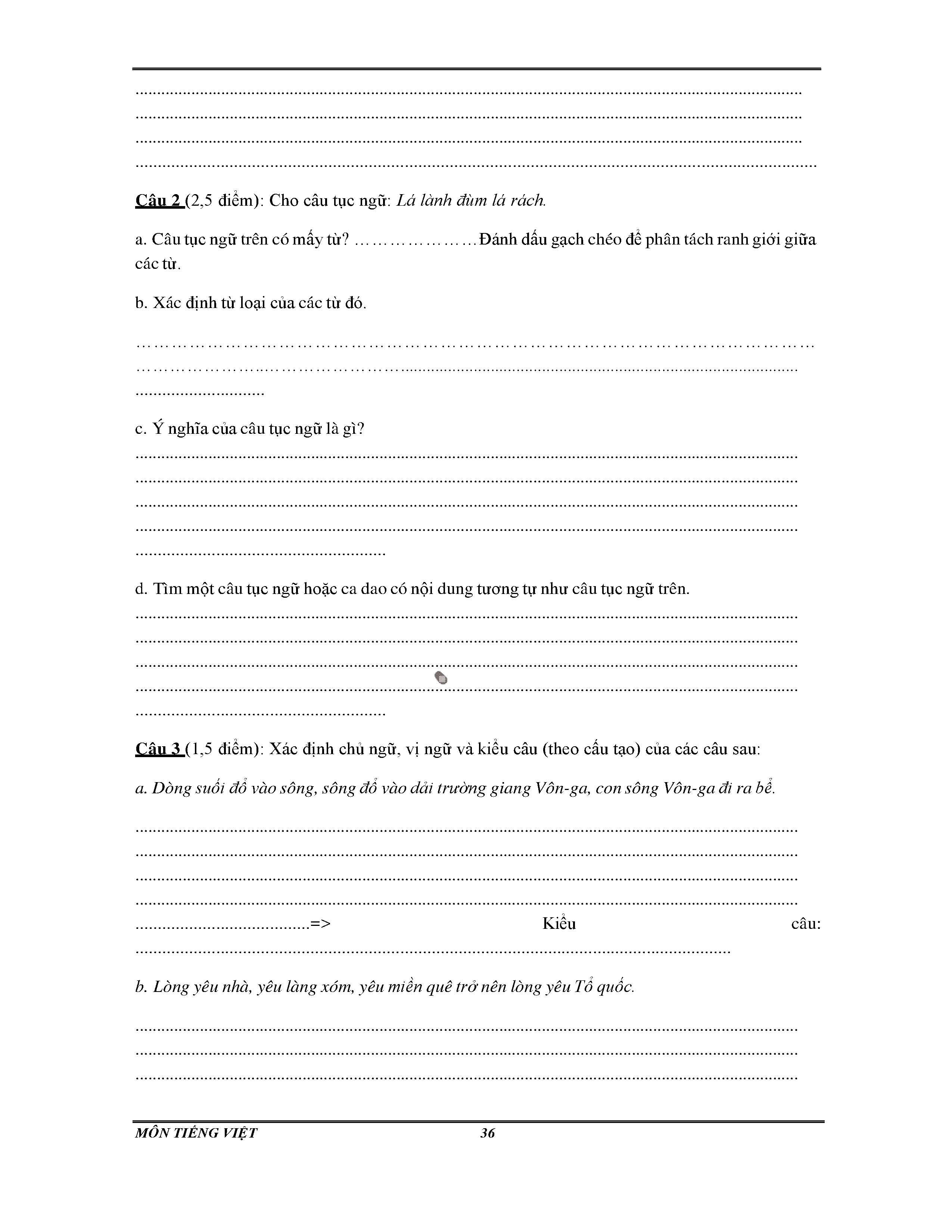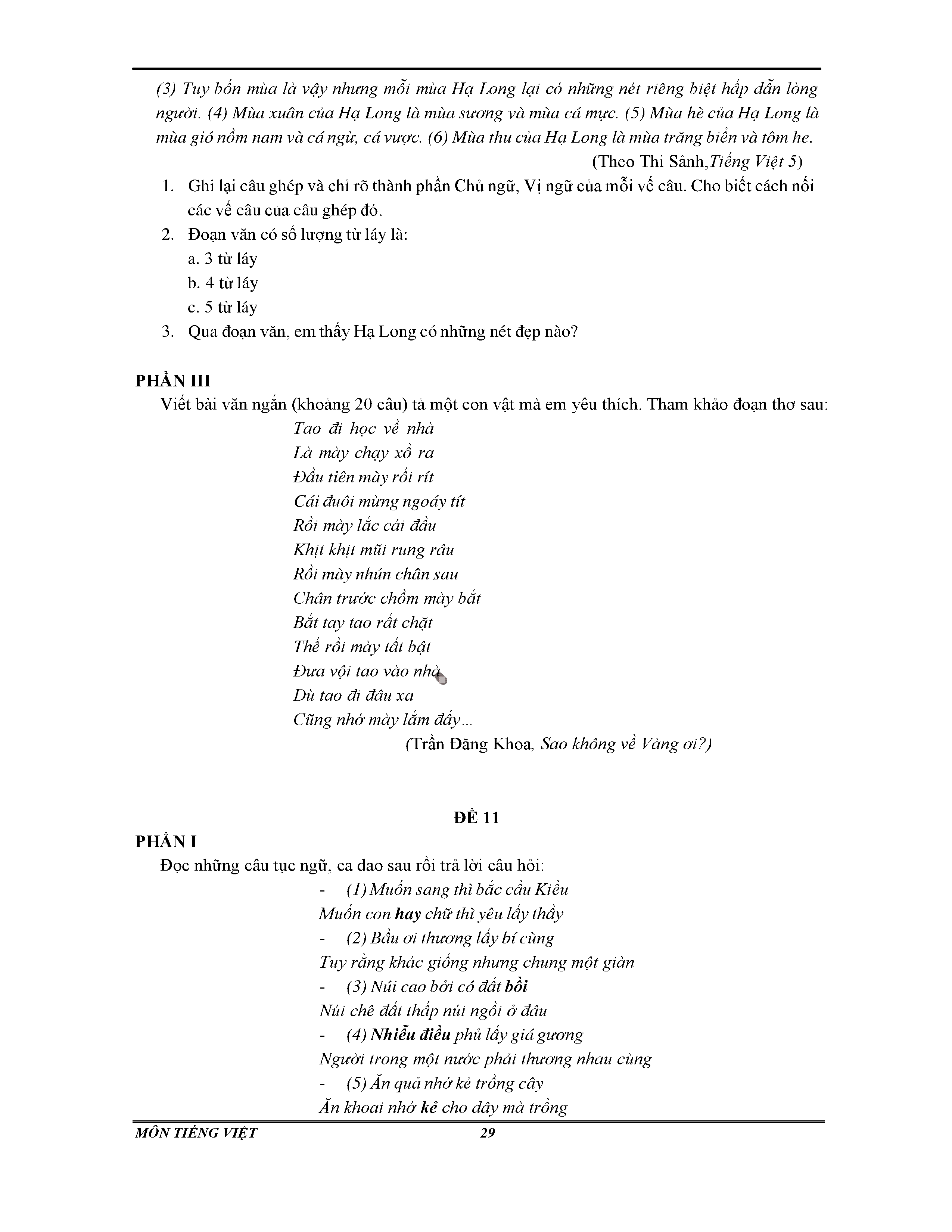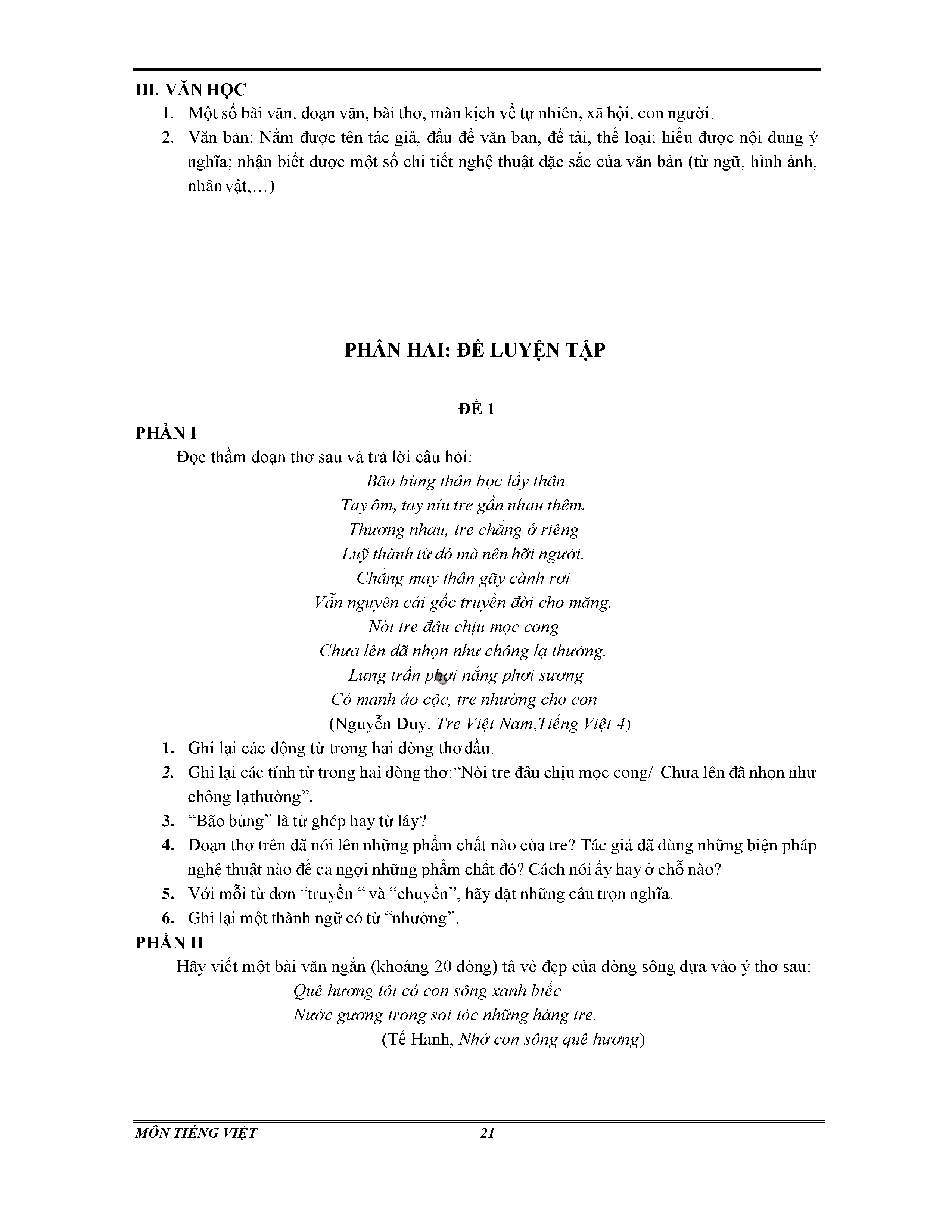 TÀI LIỆU ÔN THI VÀO 6 MÔN TIẾNG VIỆT