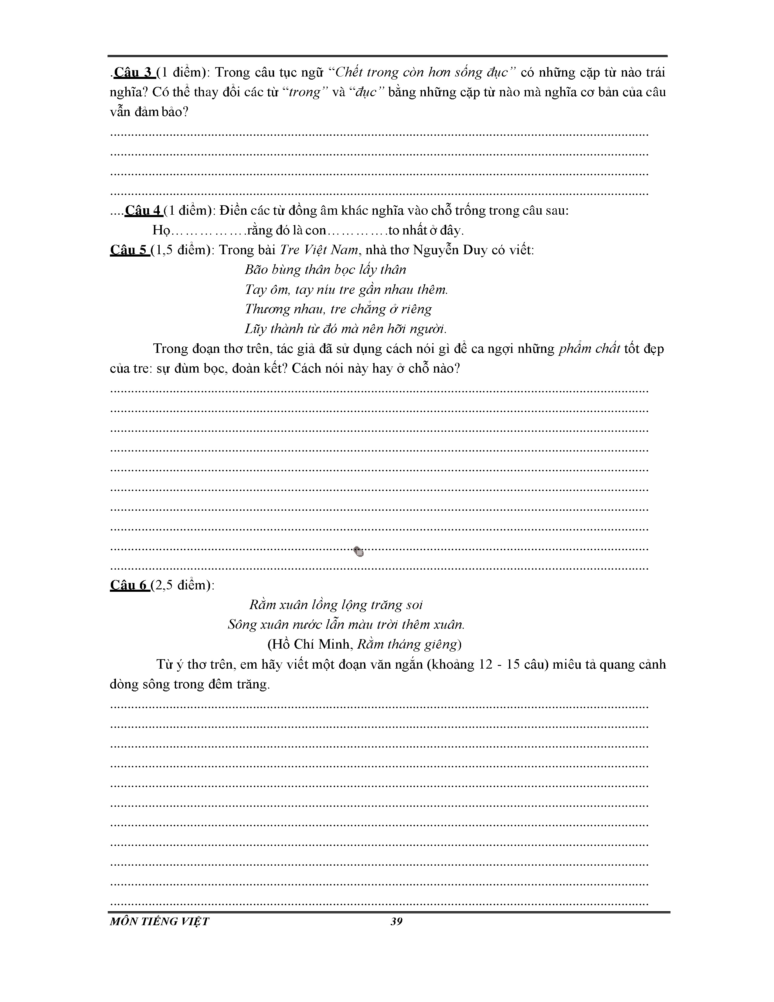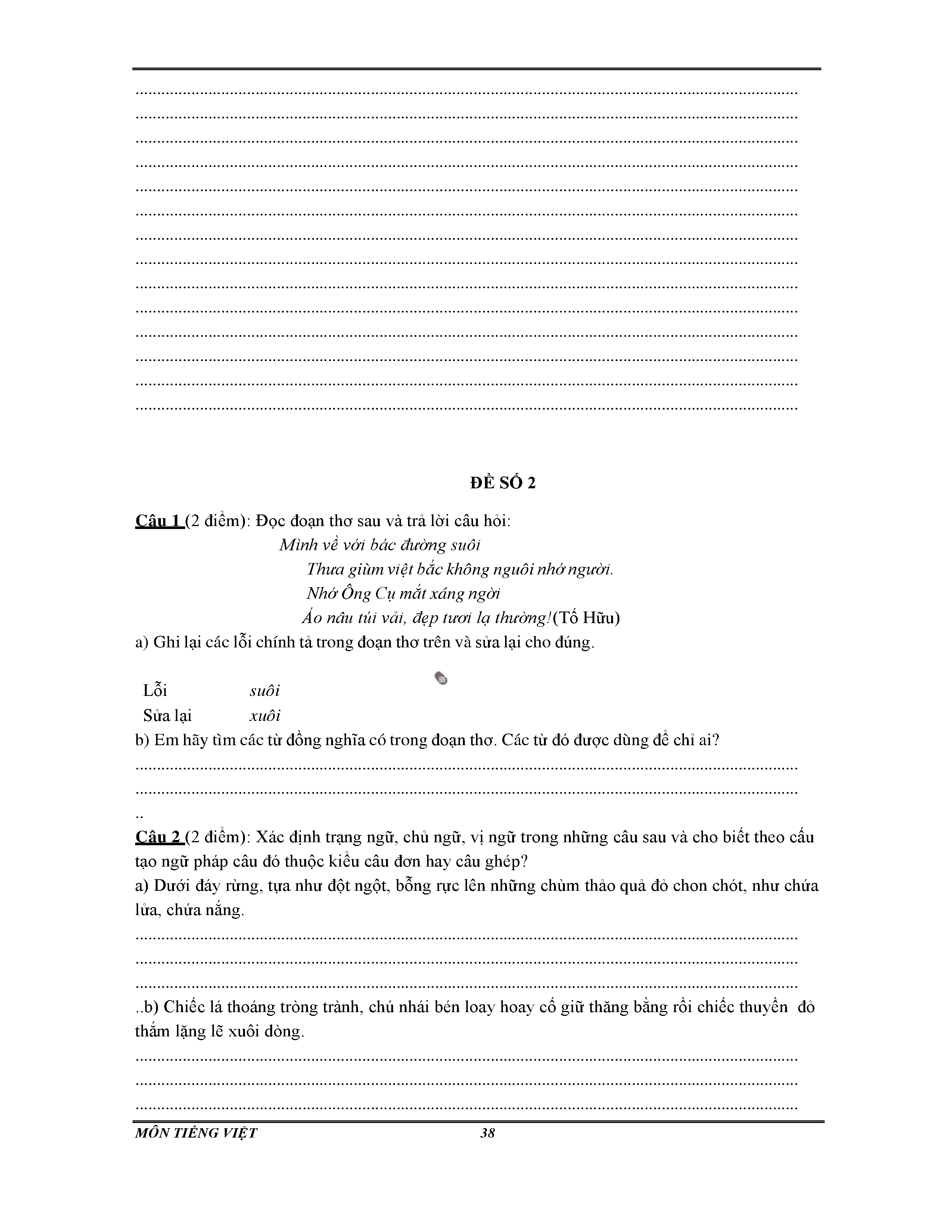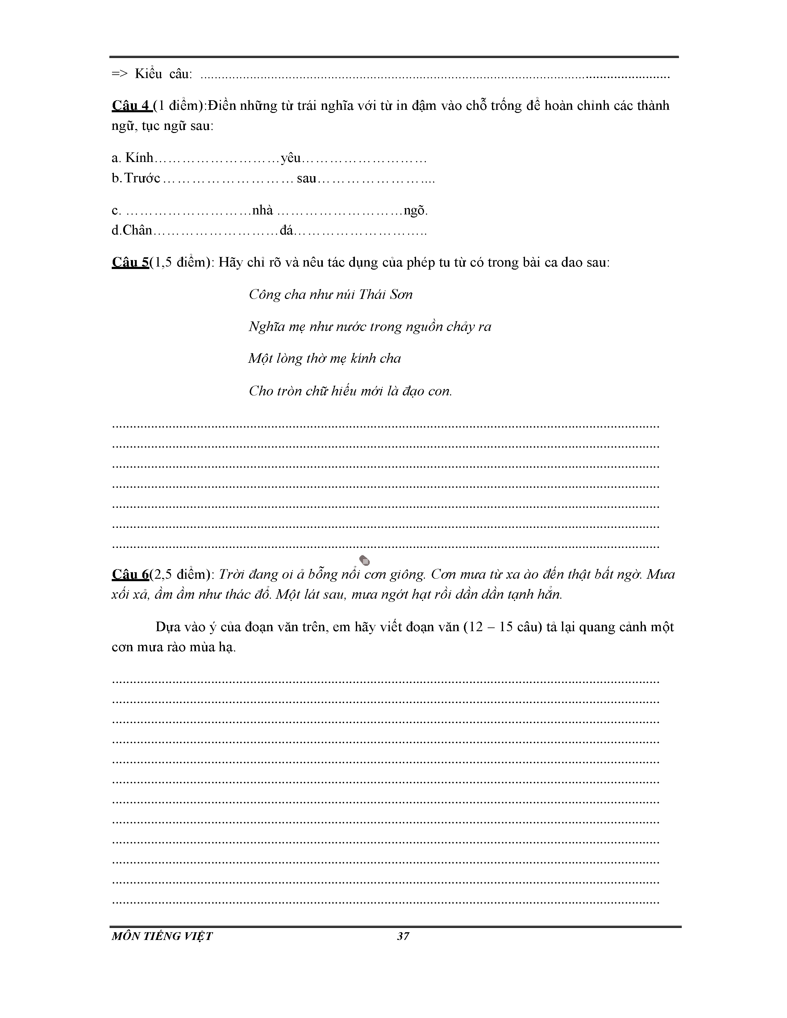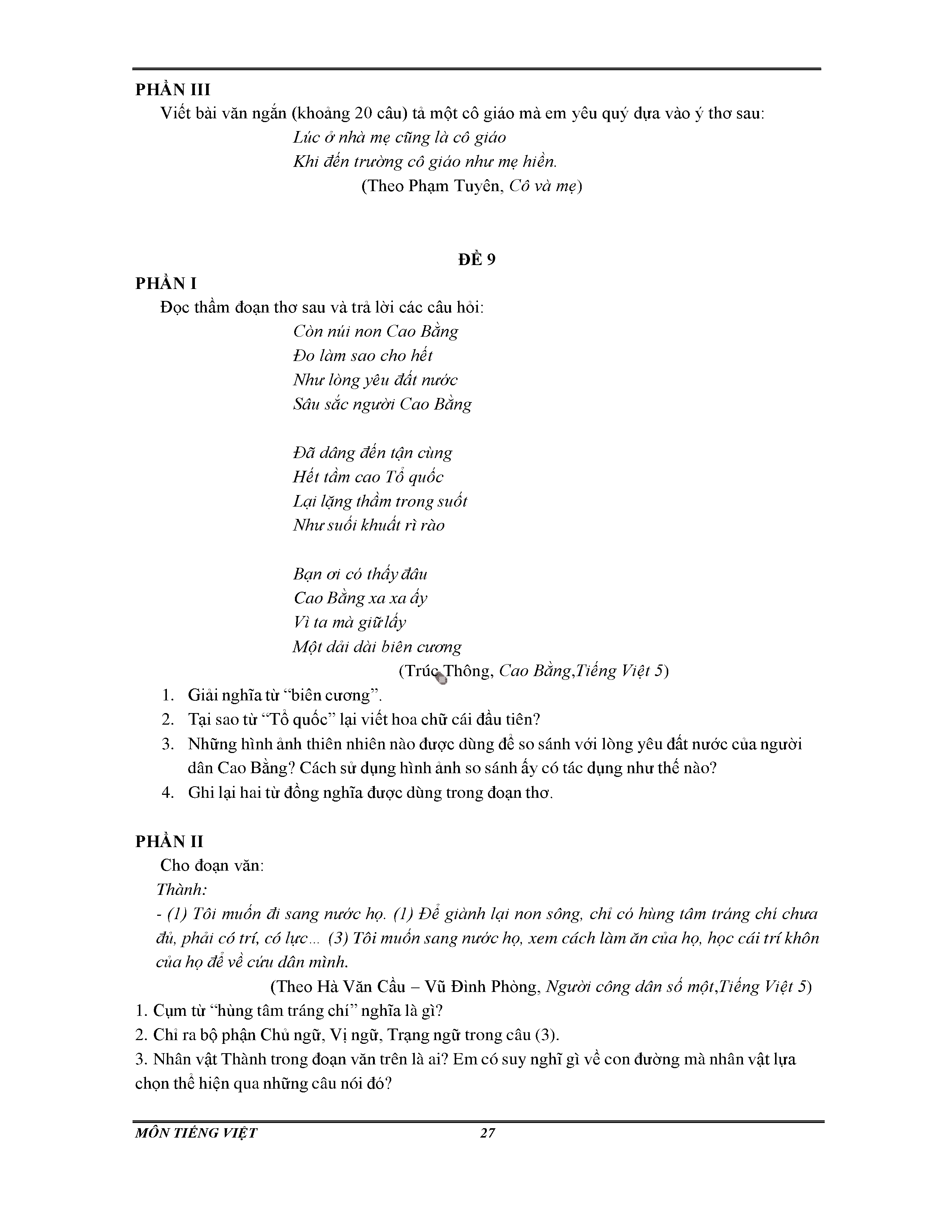 TÀI LIỆU ÔN THI VÀO 6 MÔN TIẾNG VIỆT