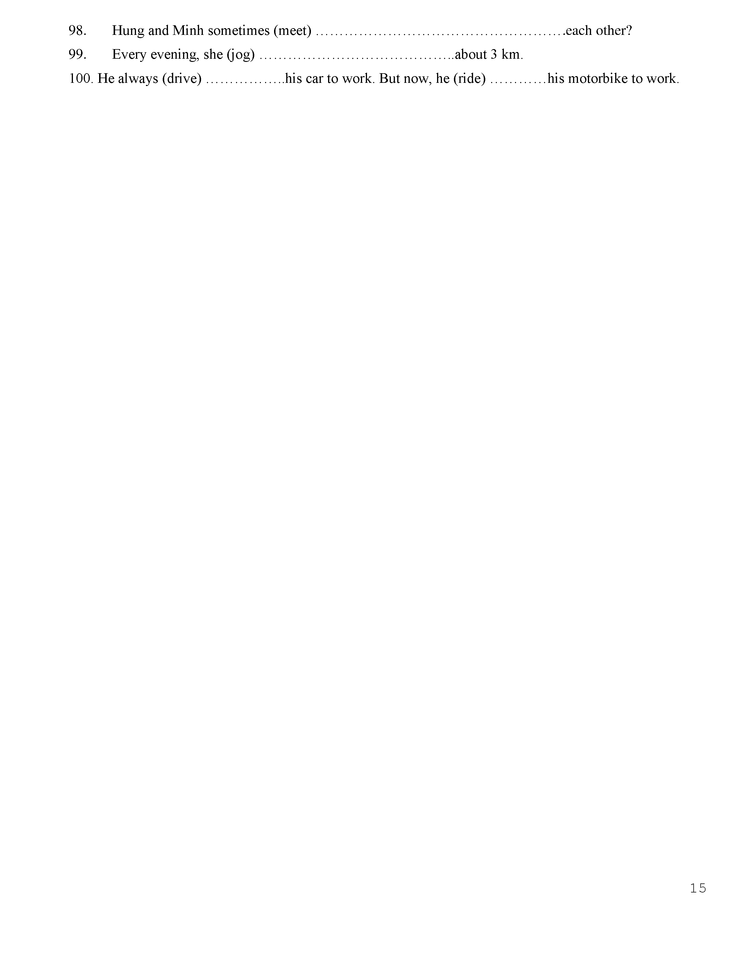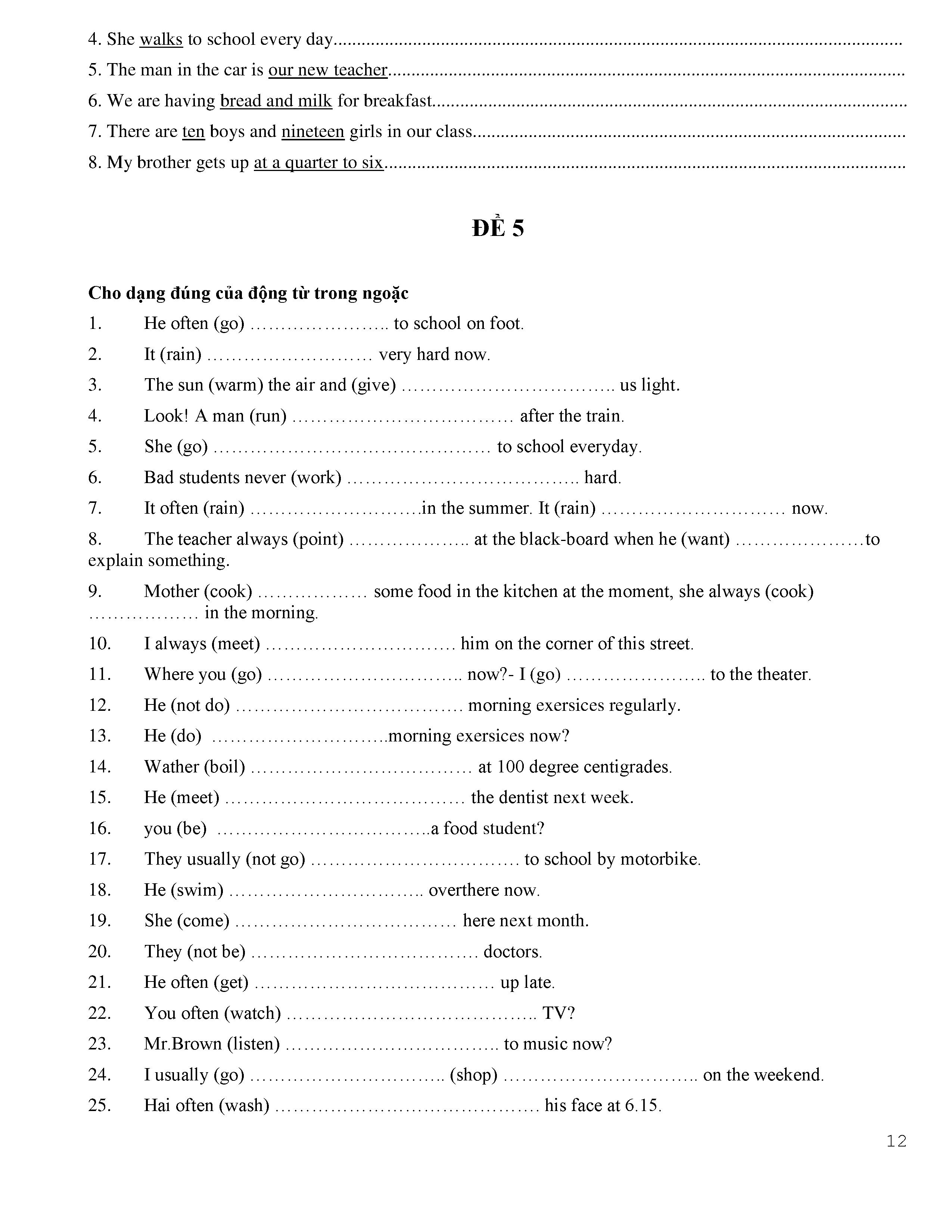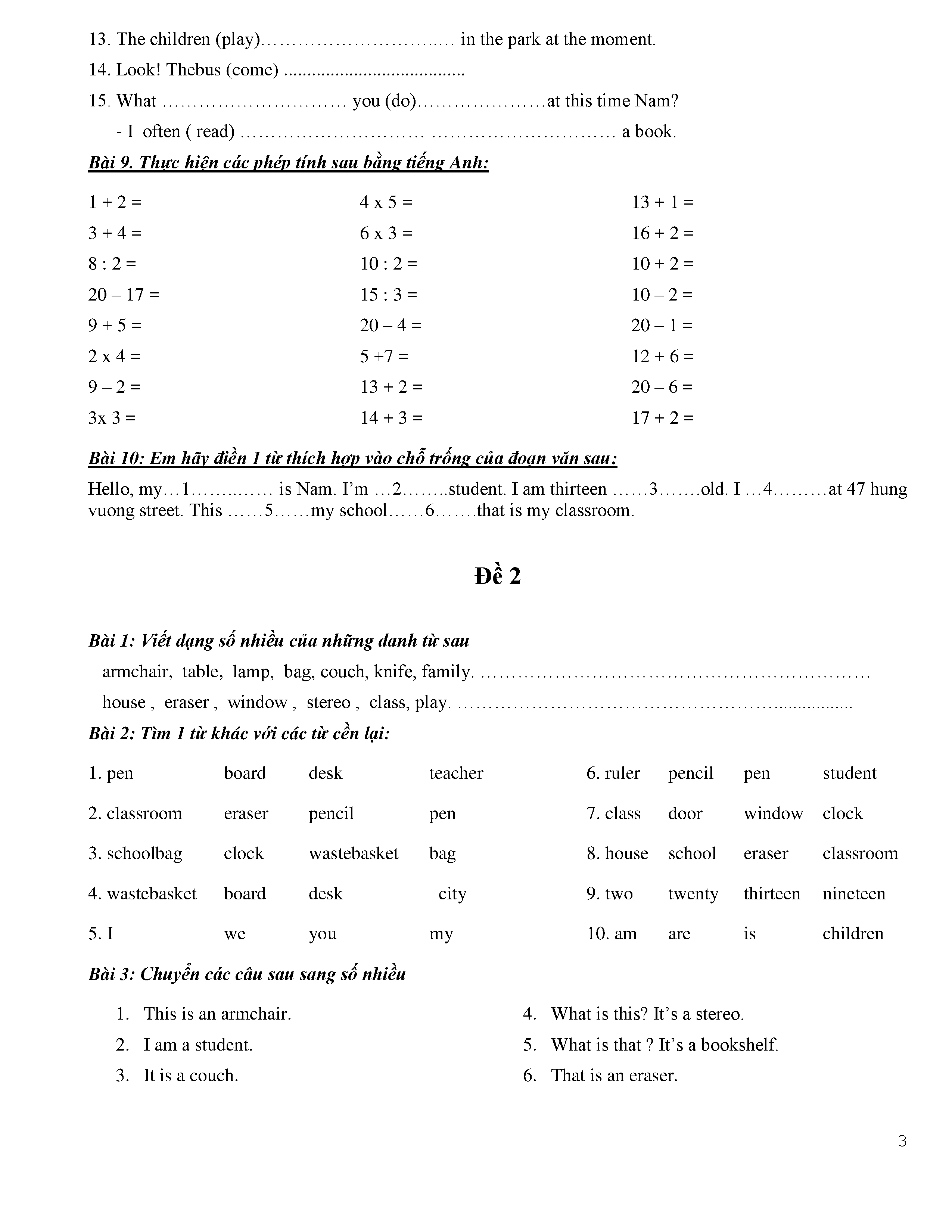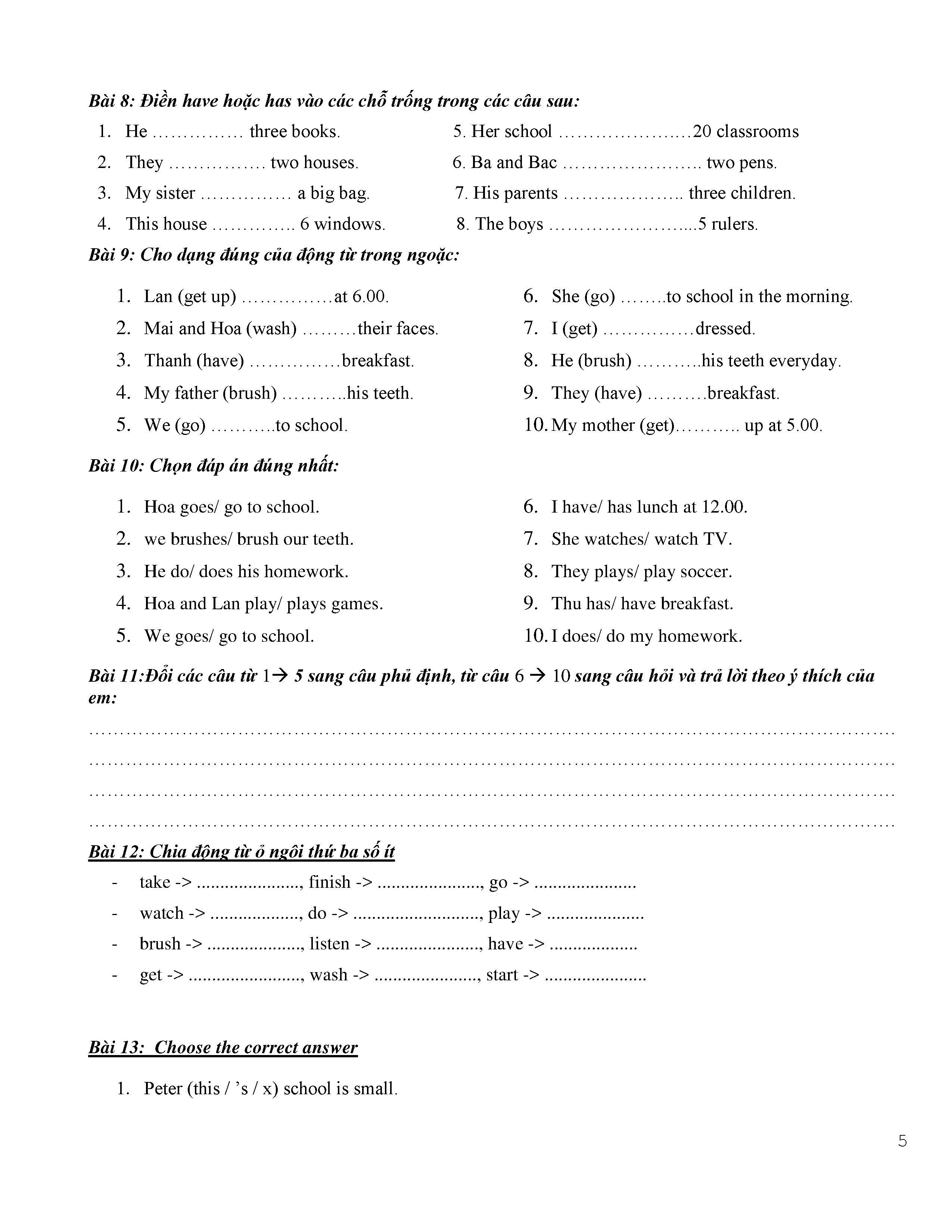 BÀI TẬP ÔN HÈ MÔN TIẾNG ANH LỚP 5 LÊN LỚP 6