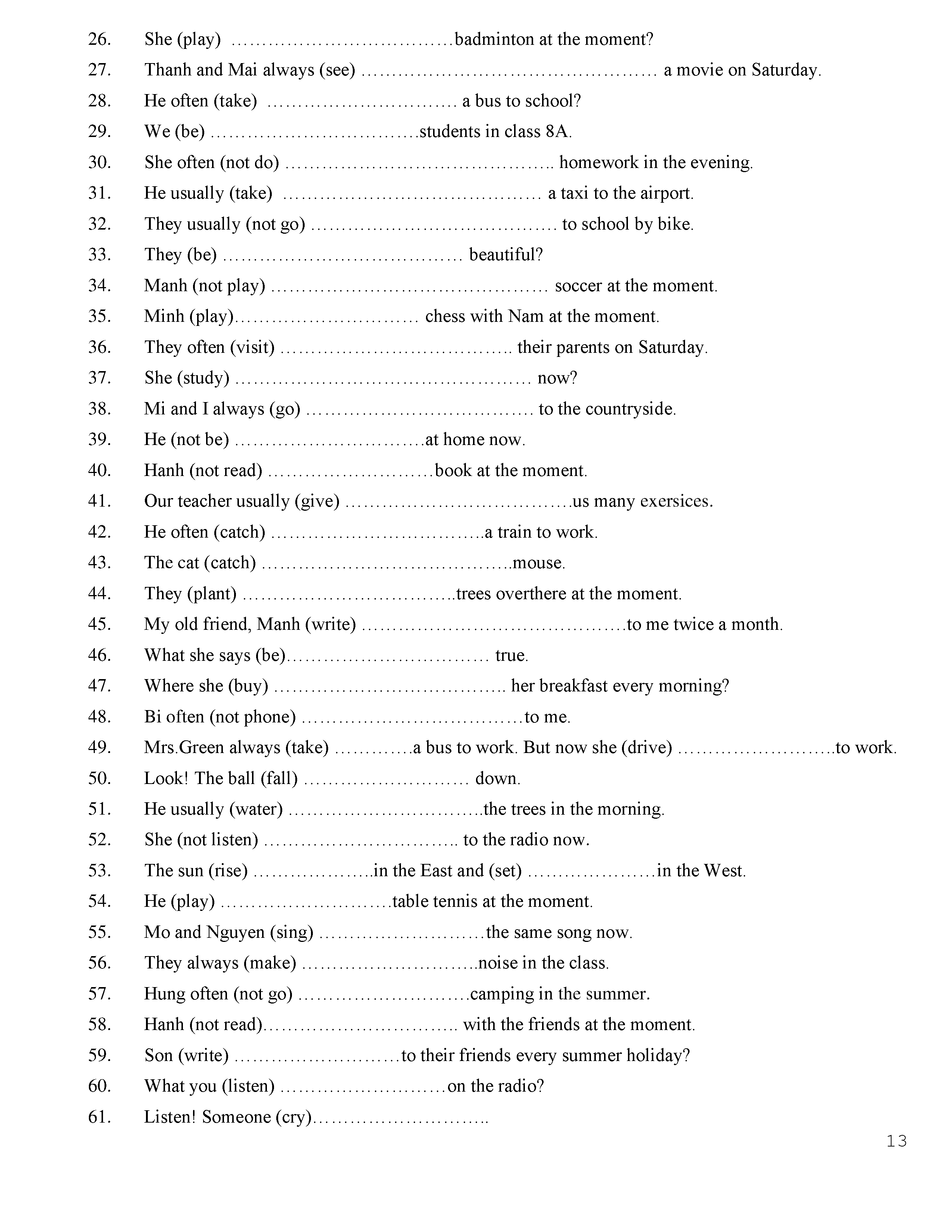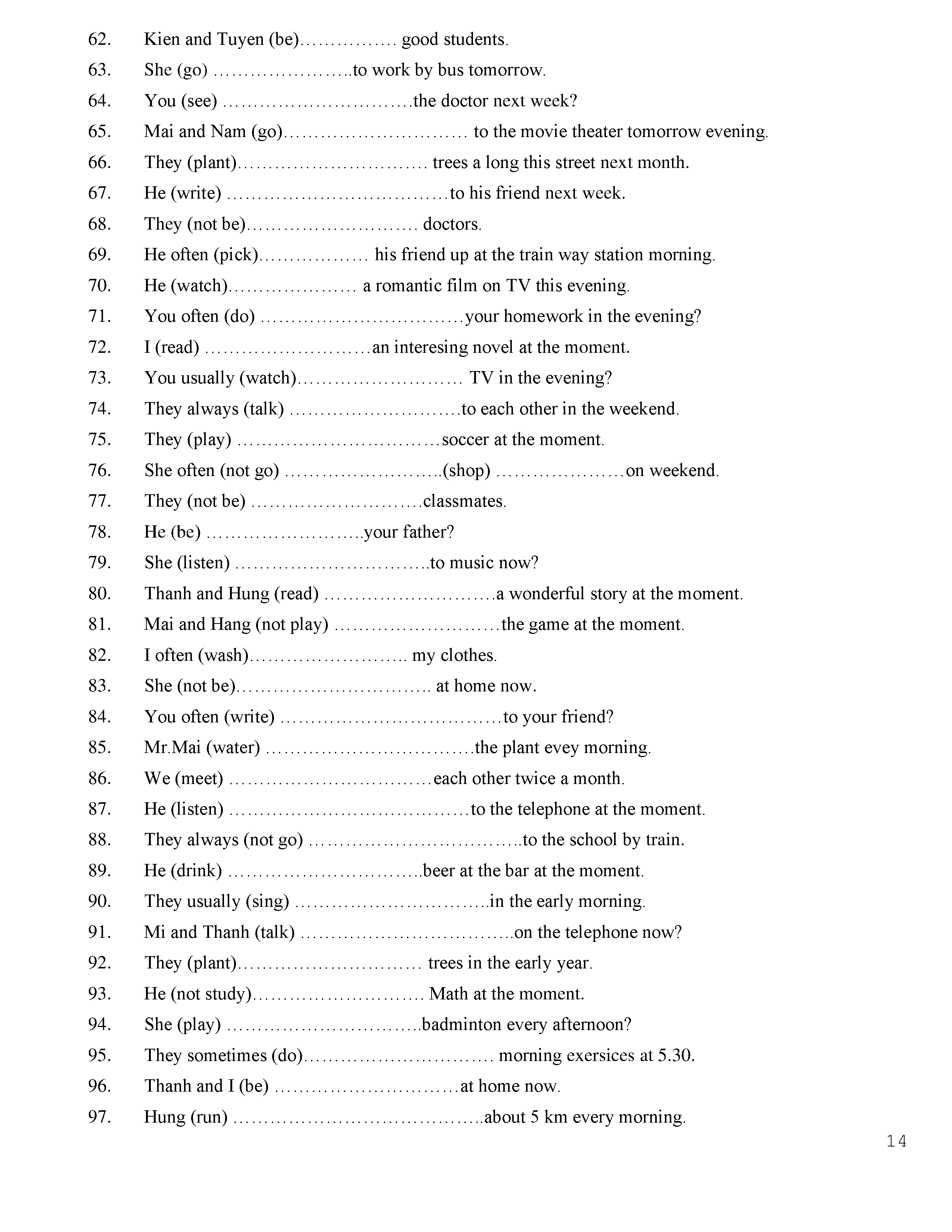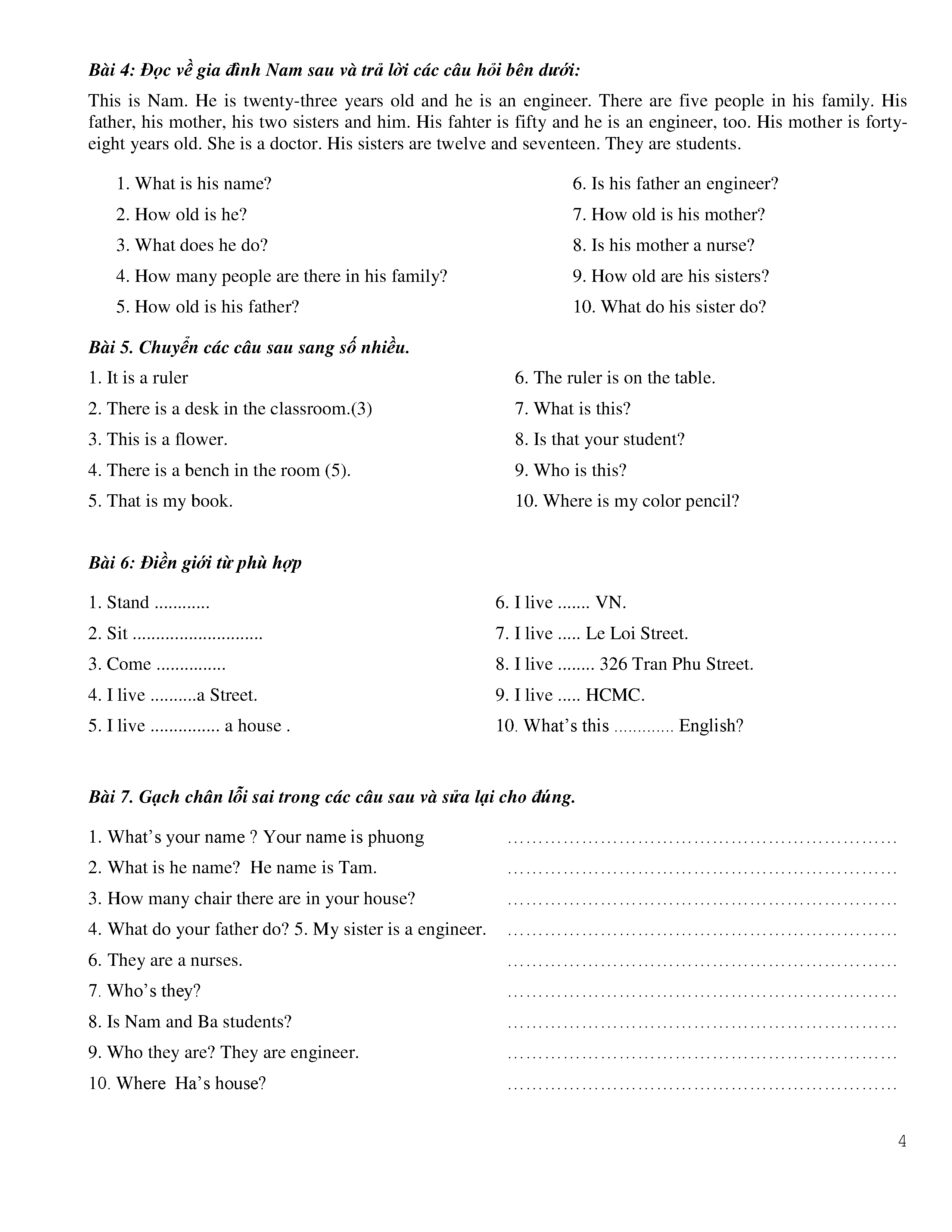 BÀI TẬP ÔN HÈ MÔN TIẾNG ANH LỚP 5 LÊN LỚP 6