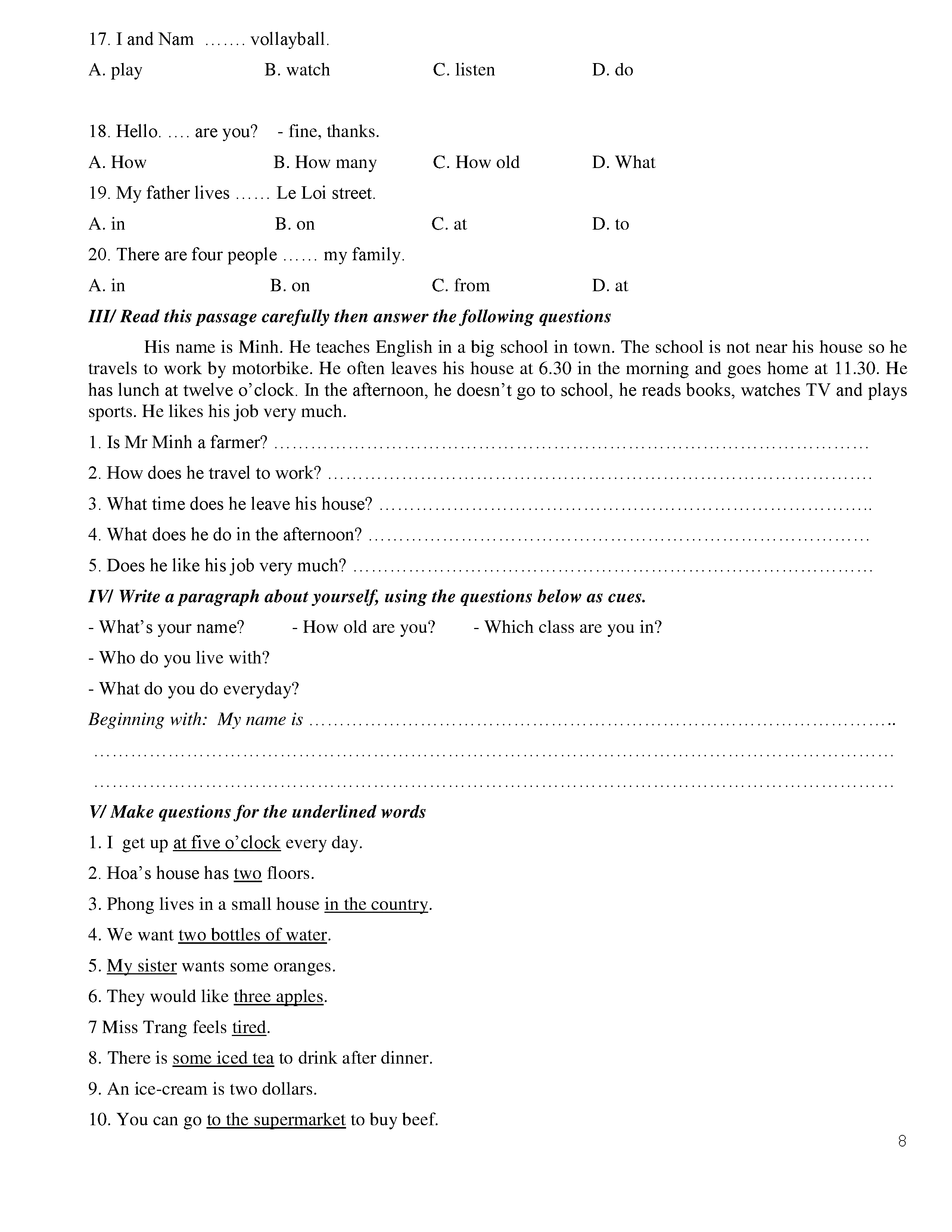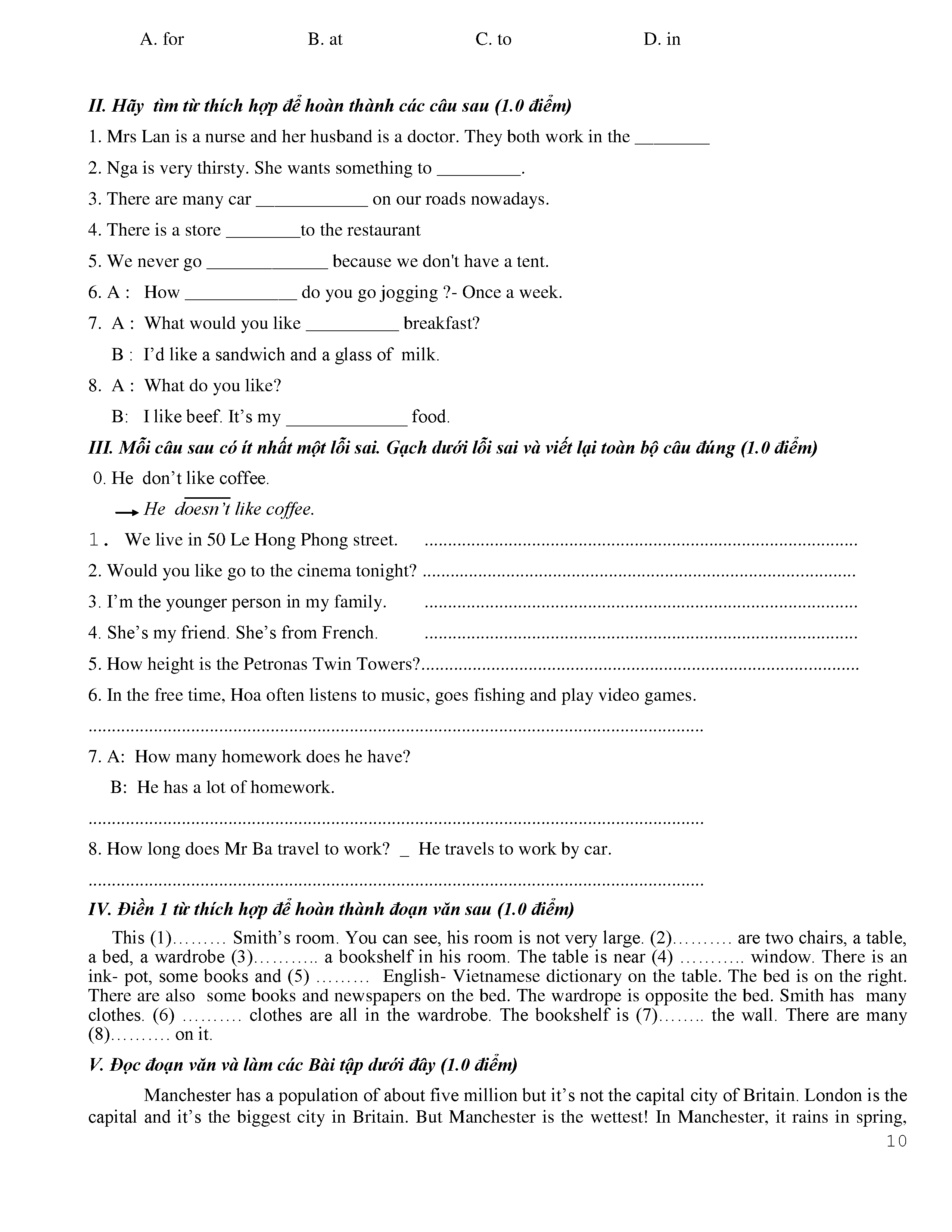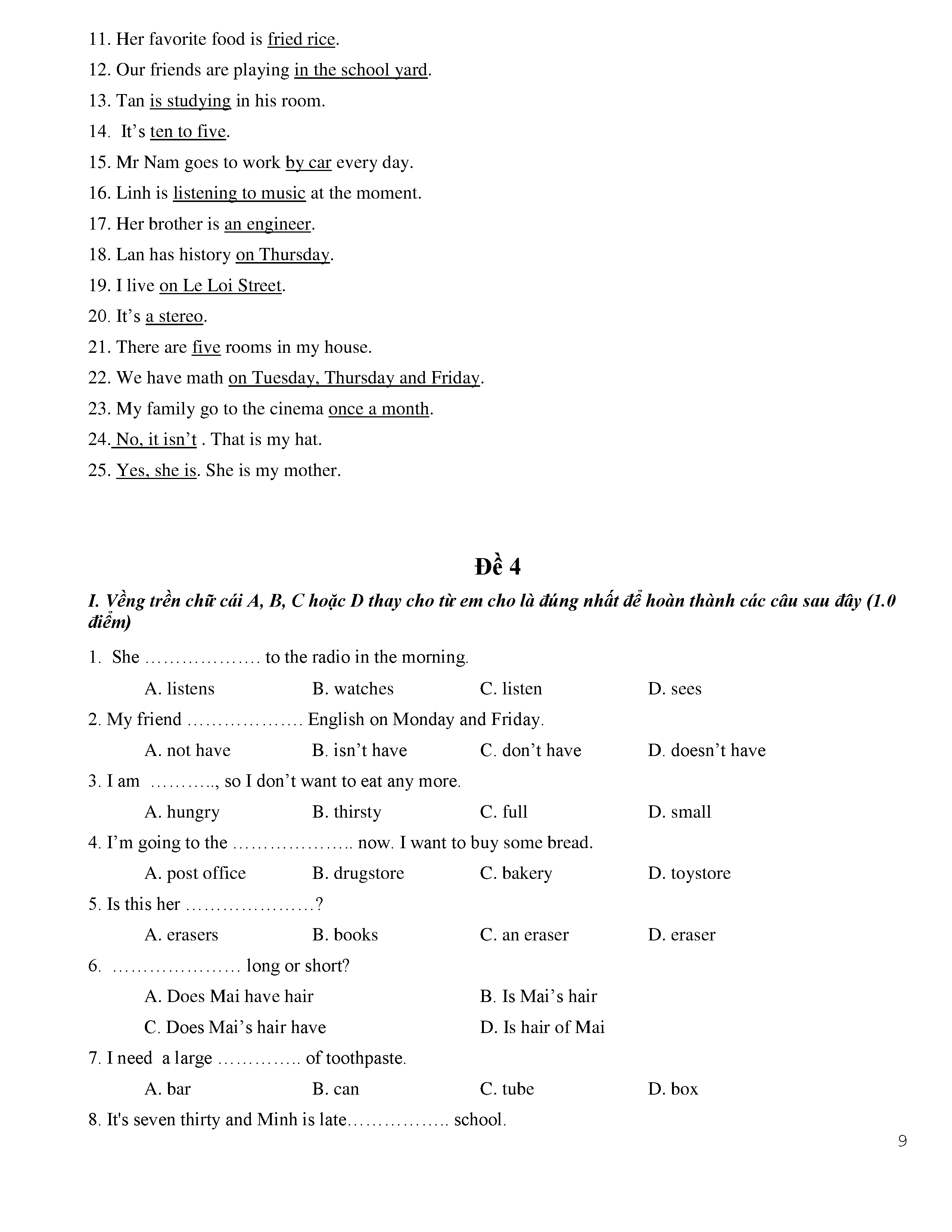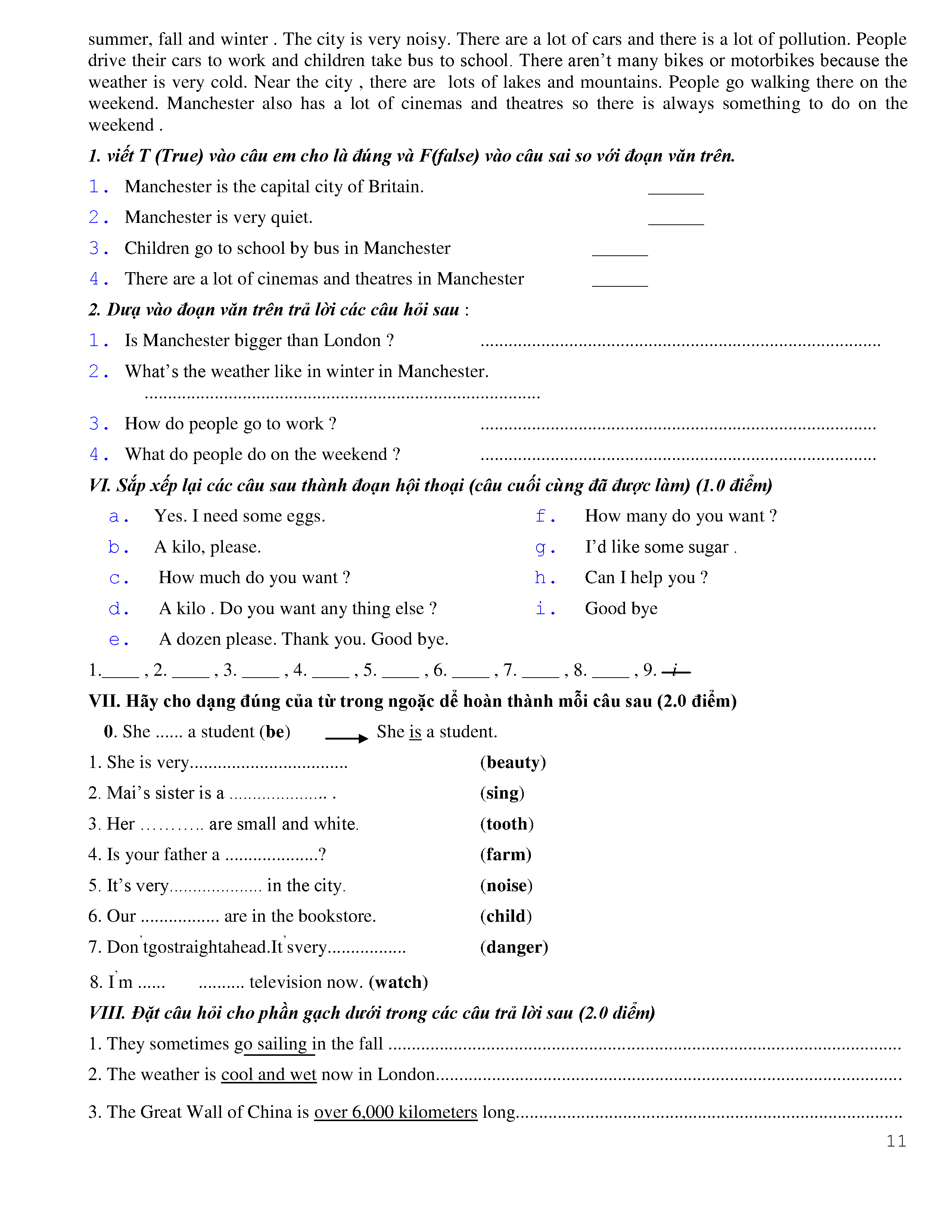BÀI TẬP ÔN HÈ MÔN TIẾNG ANH LỚP 5 LÊN LỚP 6