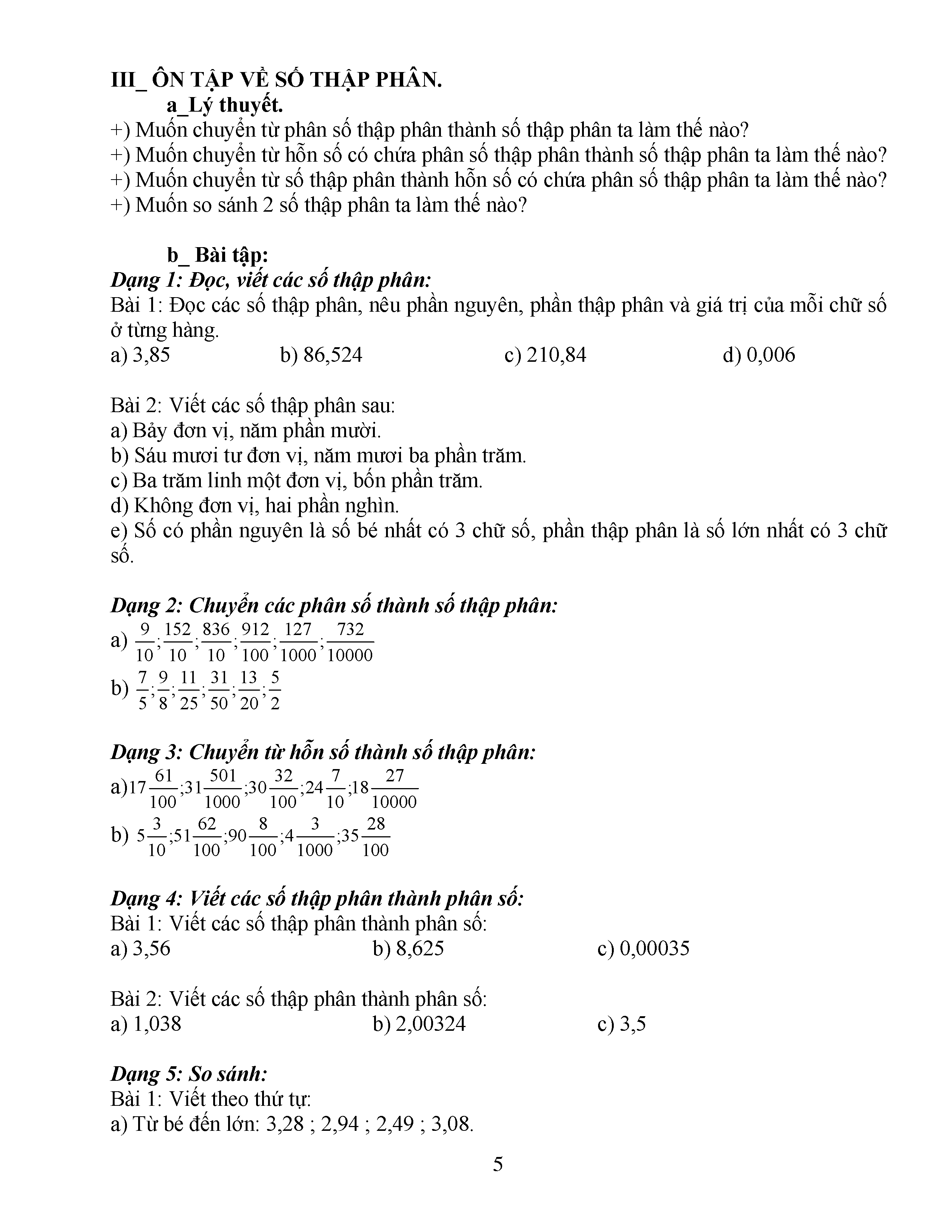 BÀI TẬP ÔN HÈ MÔN TOÁN VÀ TIẾNG VIỆT LỚP 5 LÊN 6