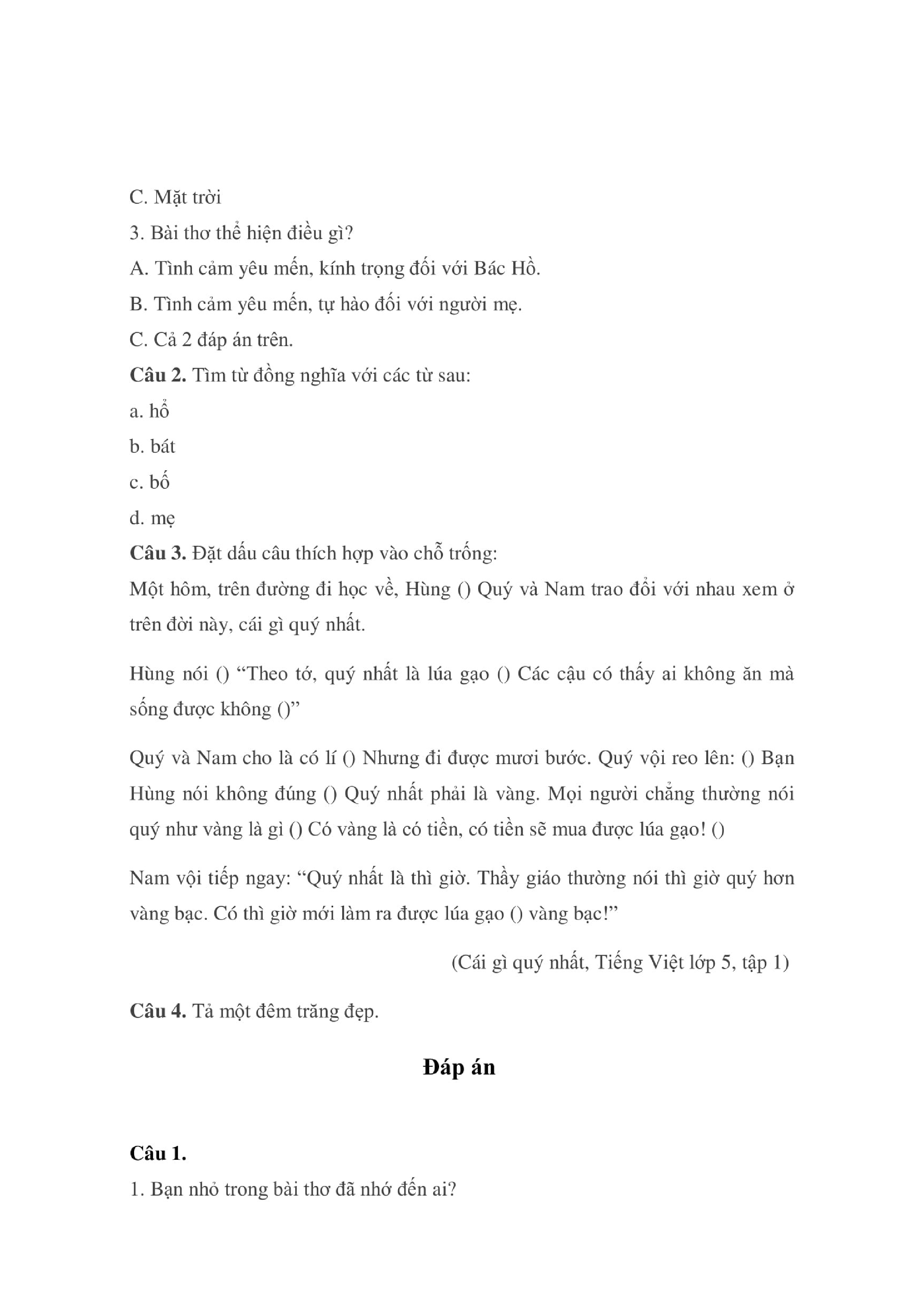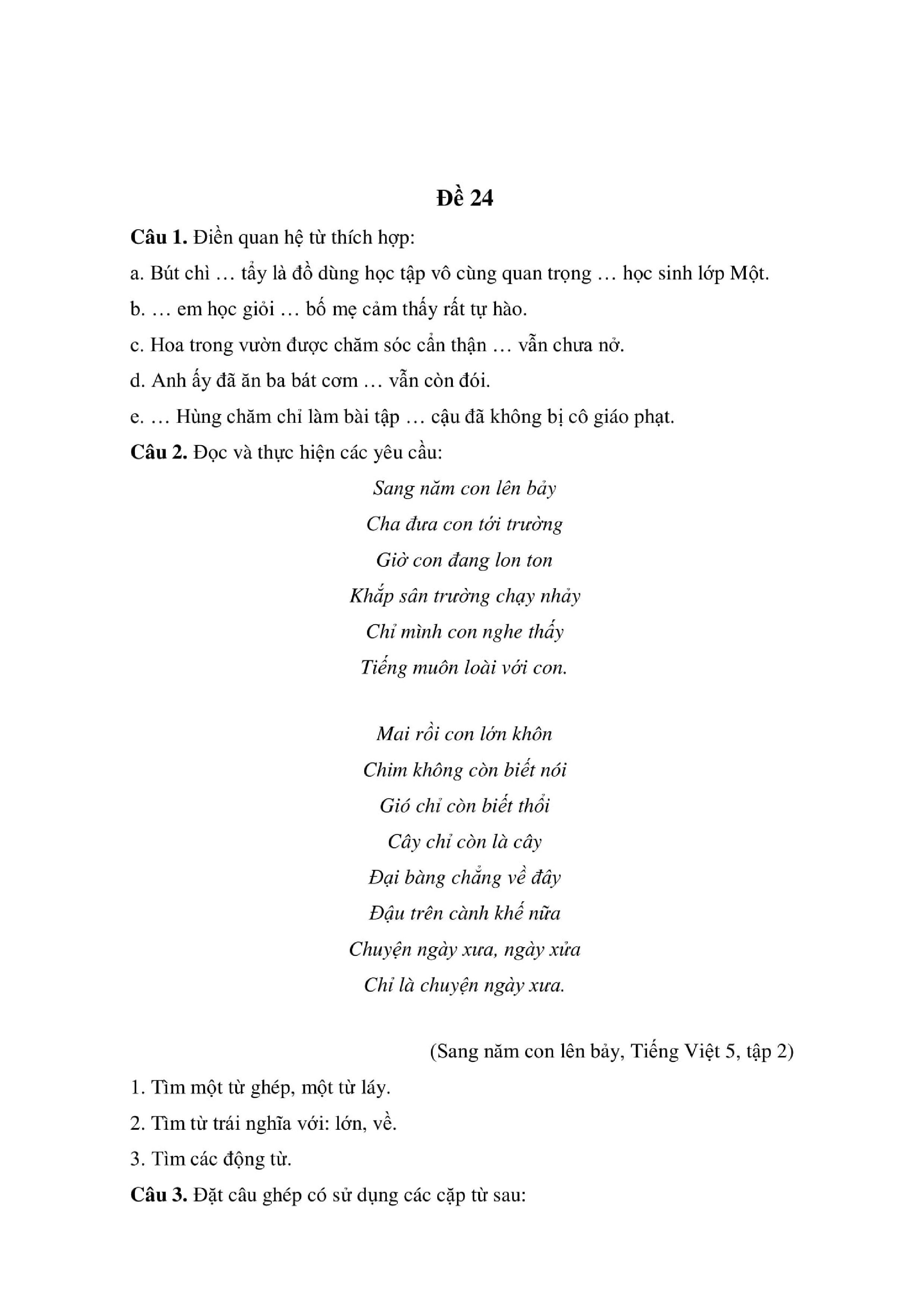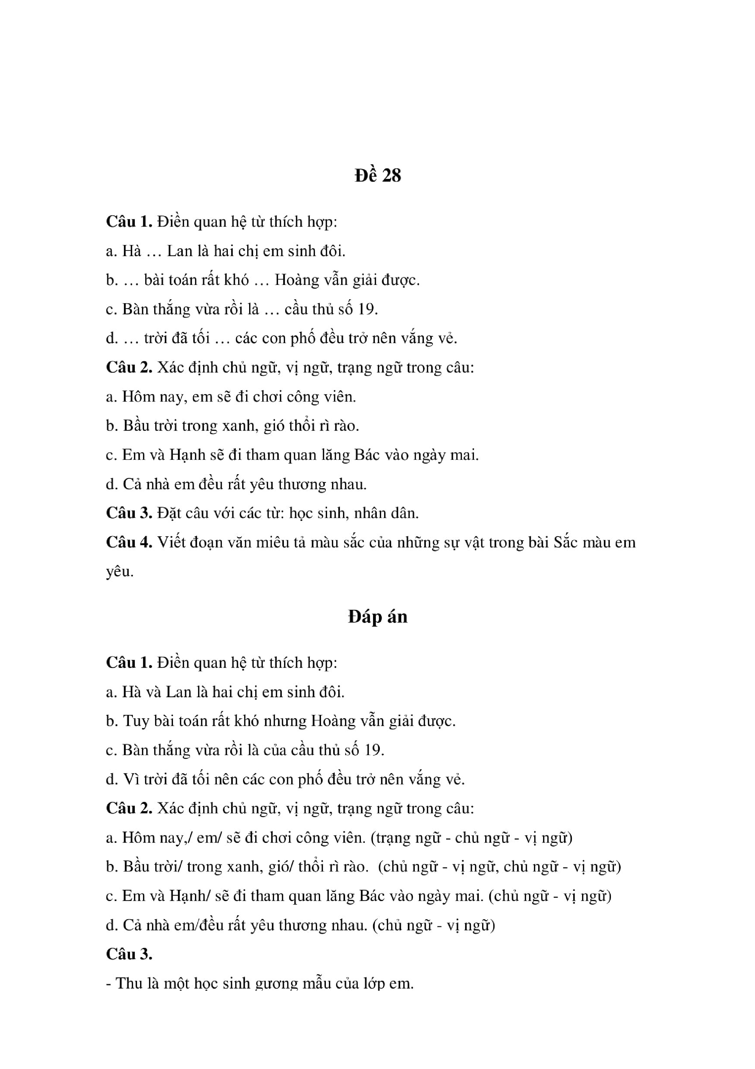 28 ĐỀ ÔN TẬP MÔN TIẾNG VIỆT LỚP 5