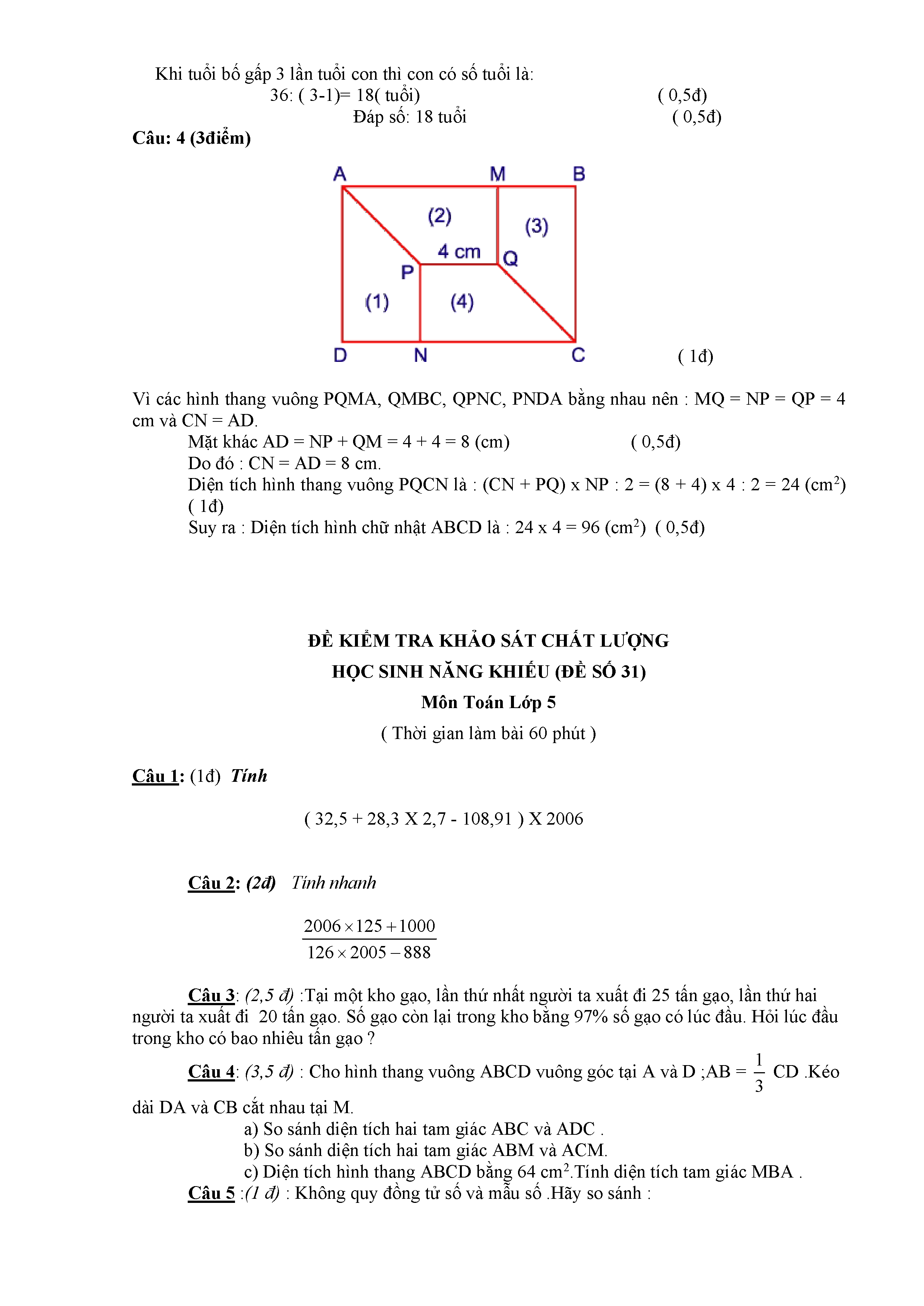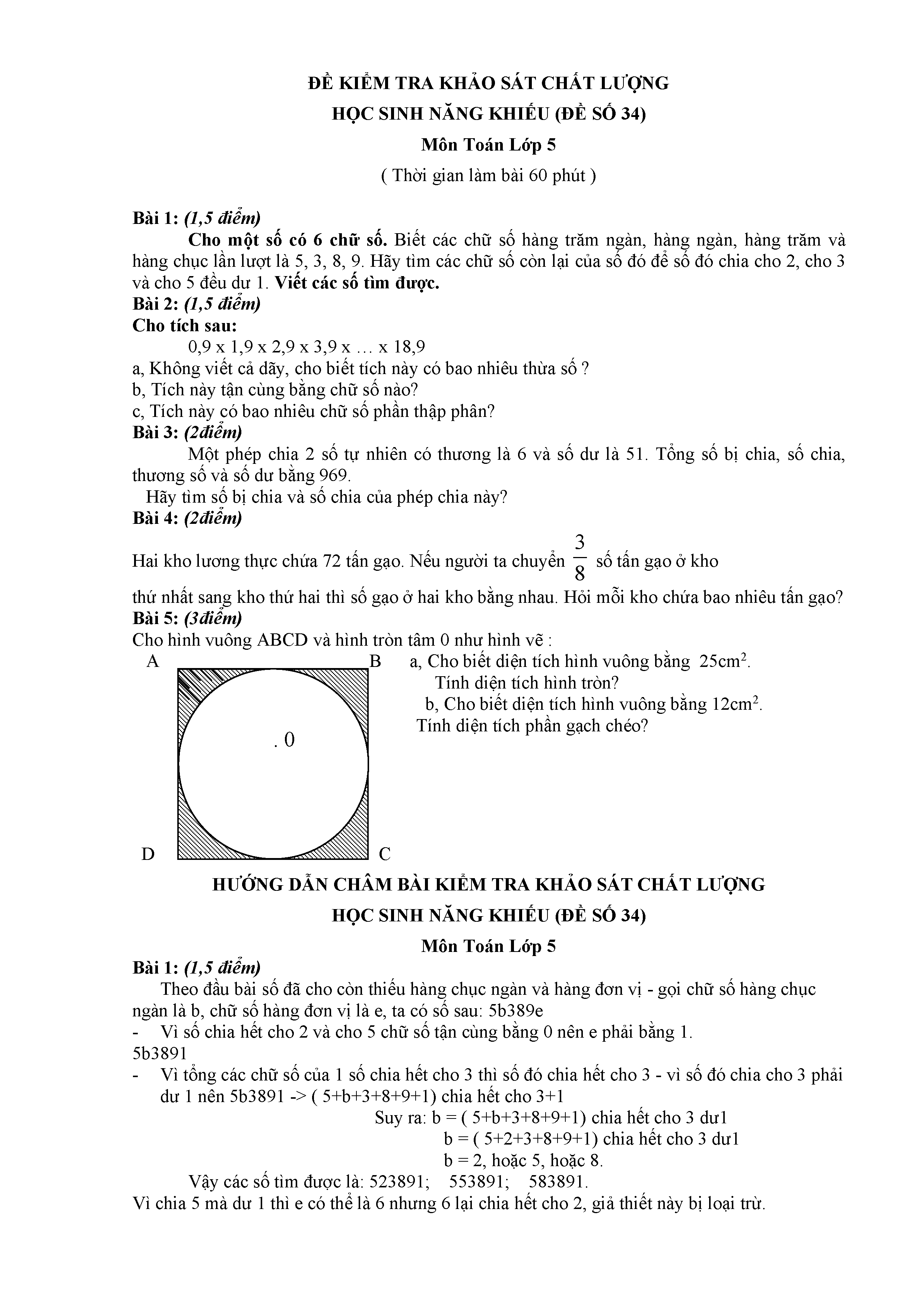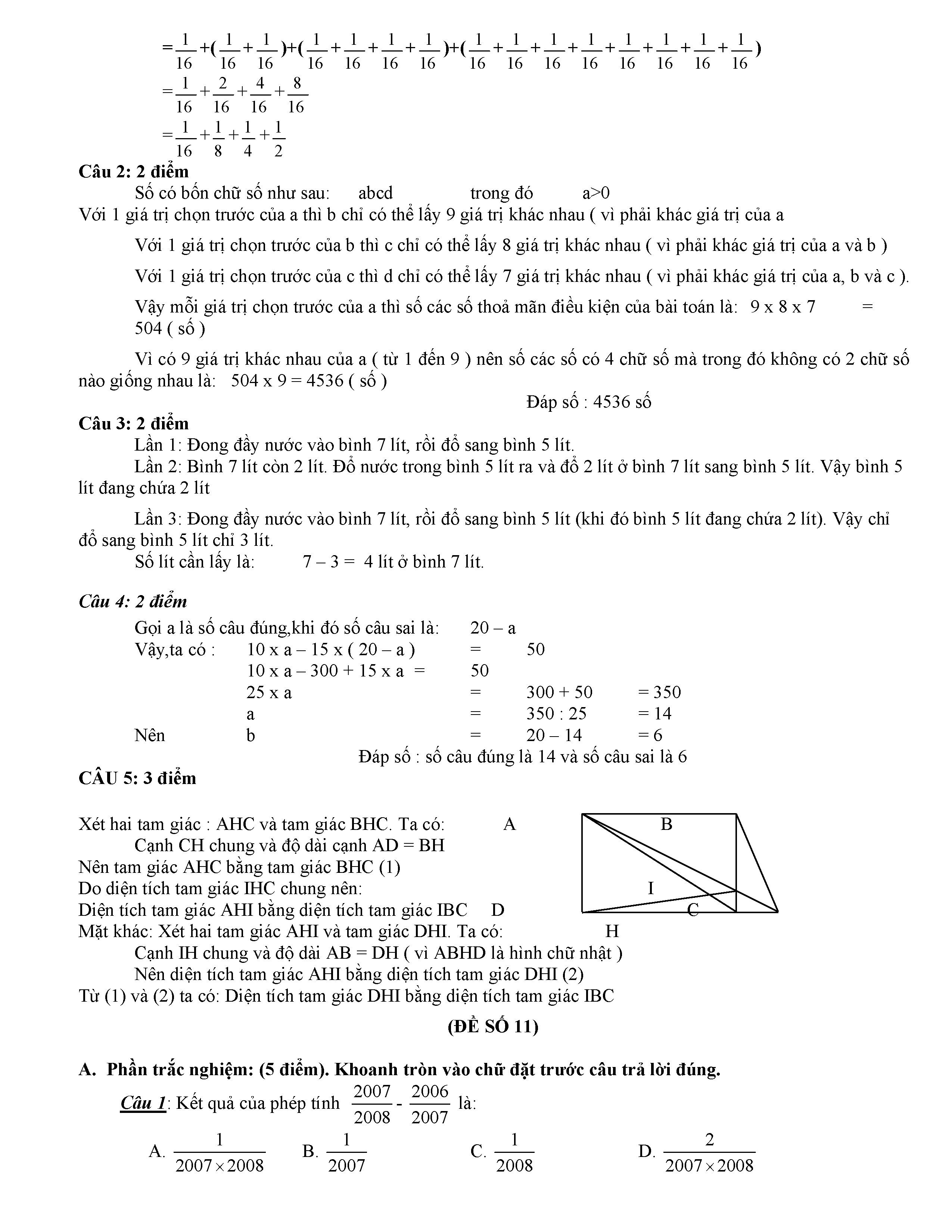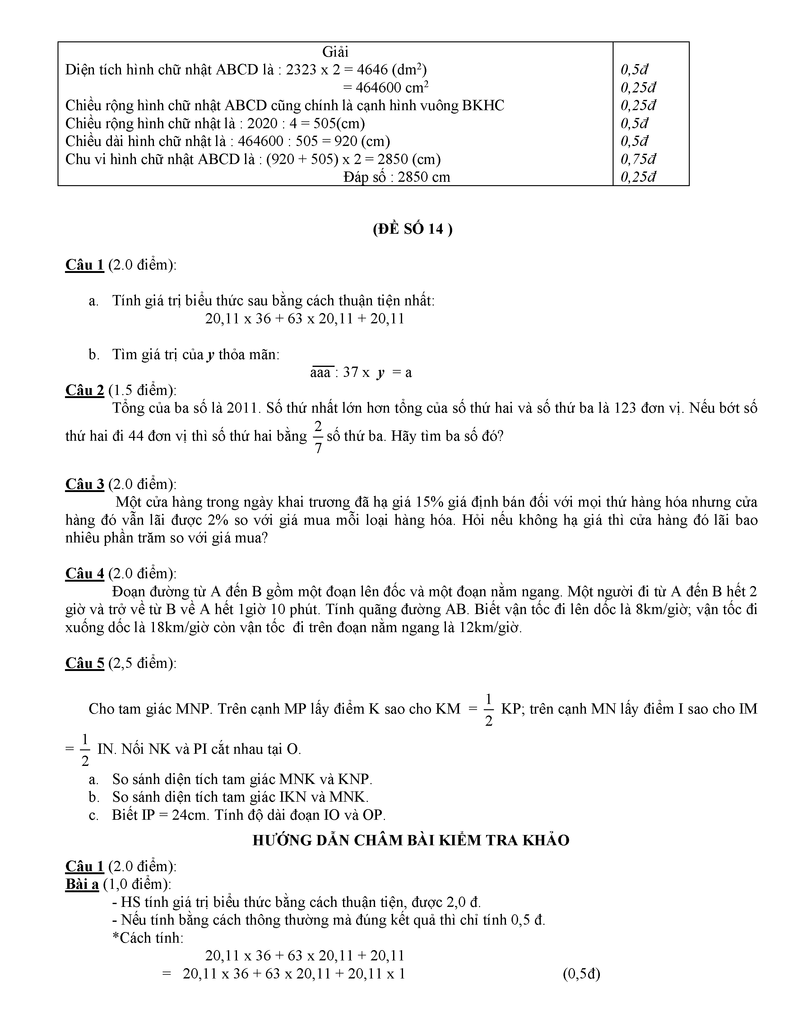 BỘ ĐỀ ÔN THI VÀO LỚP 6 MÔN TOÁN (CÓ ĐÁP ÁN)