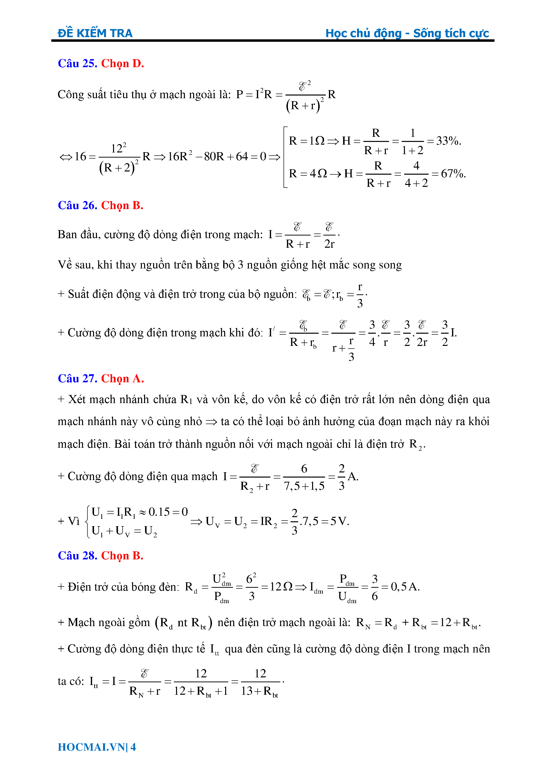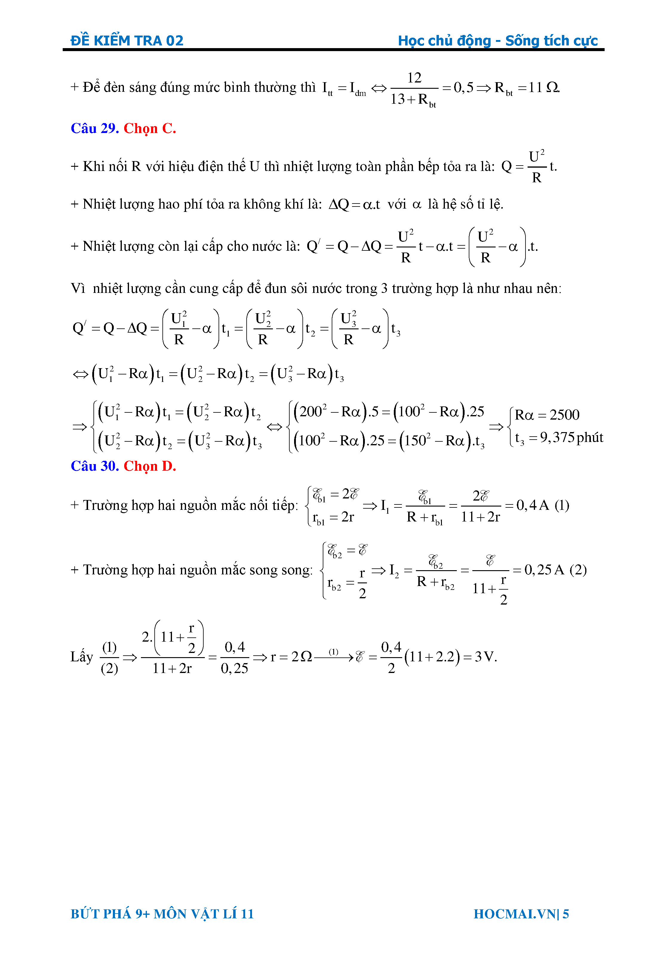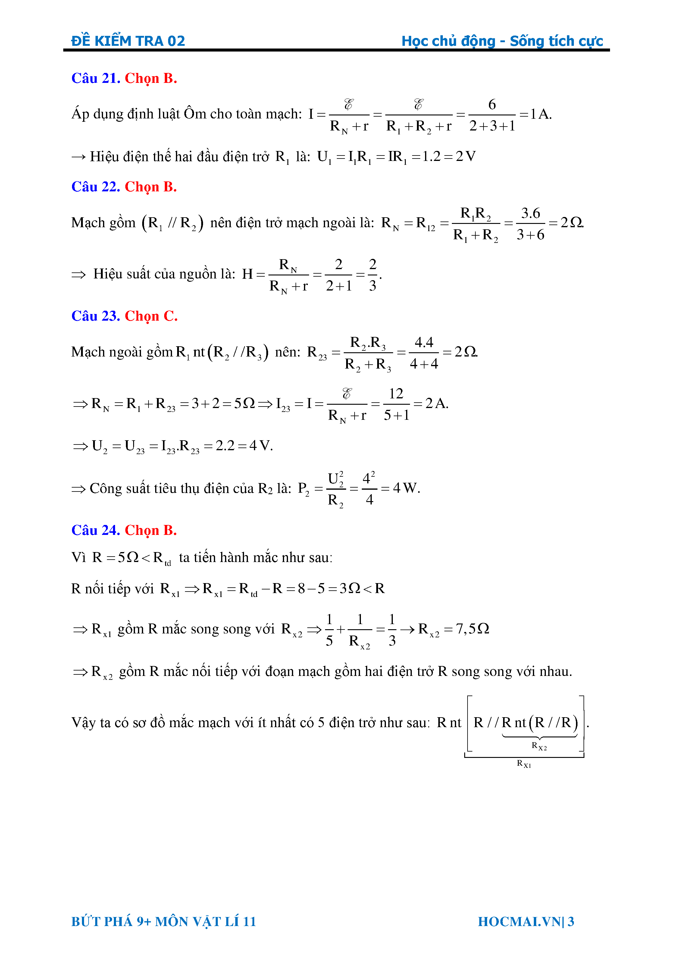Bứt phá 9+ môn Vật lý 11 Lời giải bài kiểm tra 1 tiết số 02