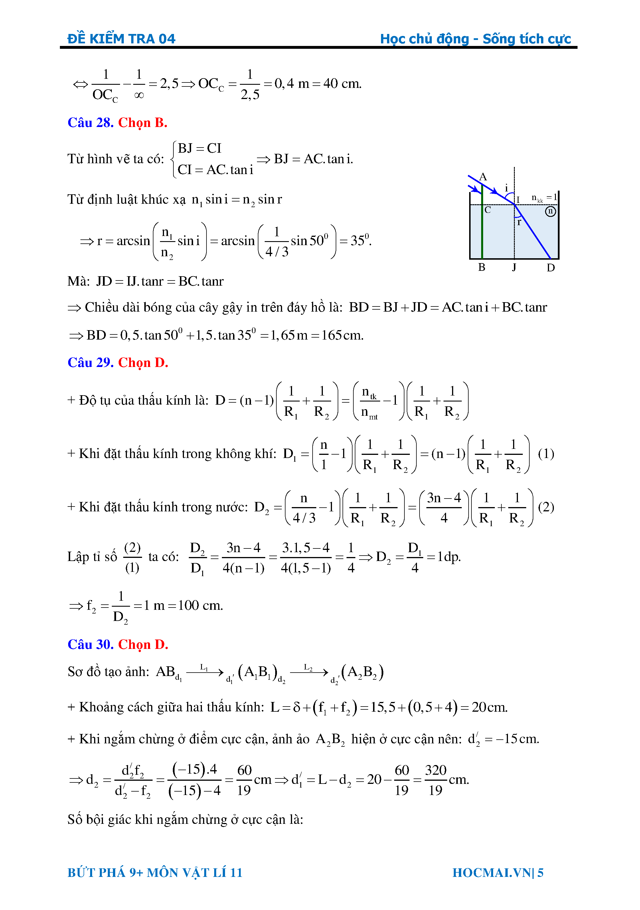Bứt phá 9+ môn Vật lý 11 Lời giải bài kiểm tra 1 tiết số 04
