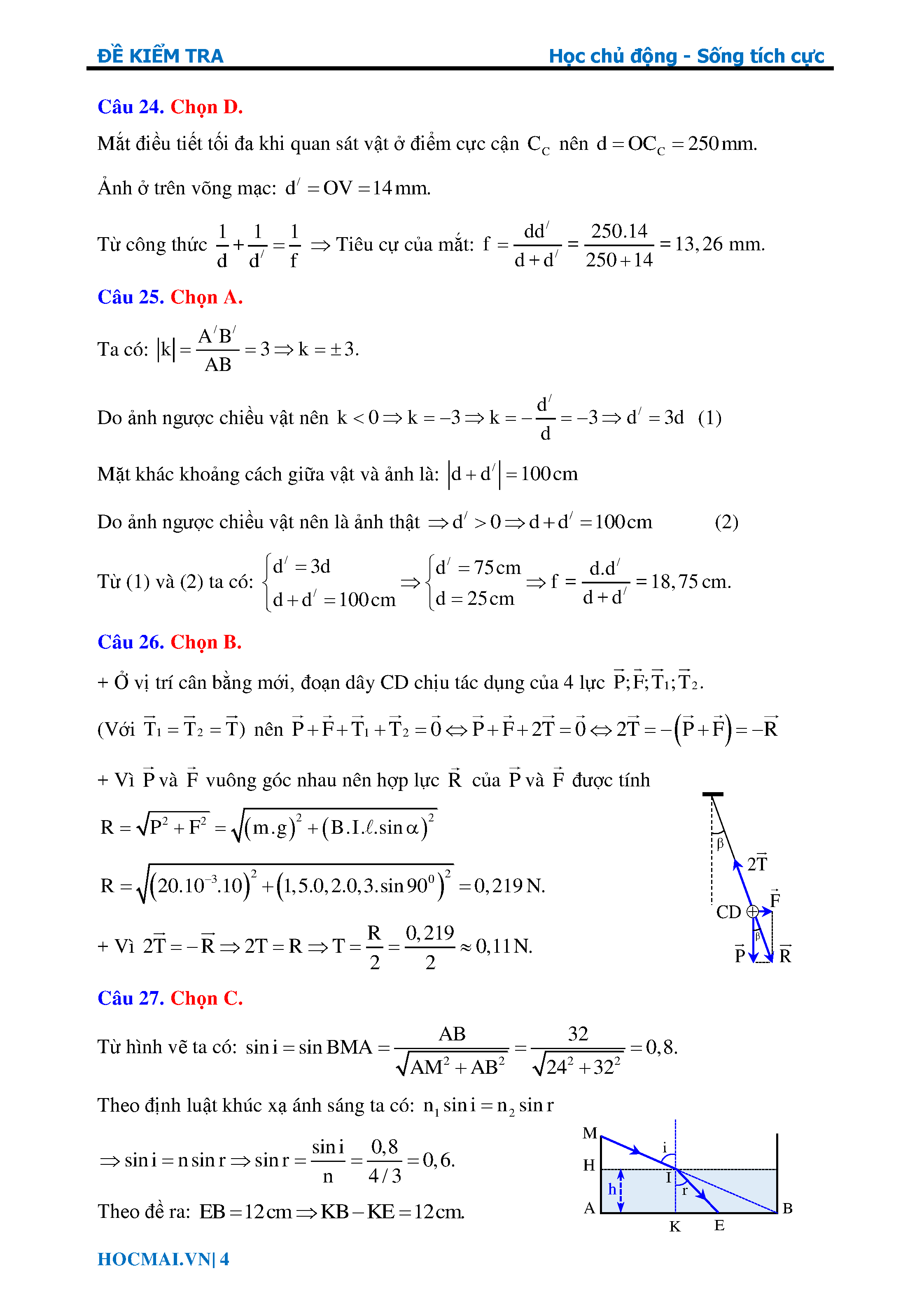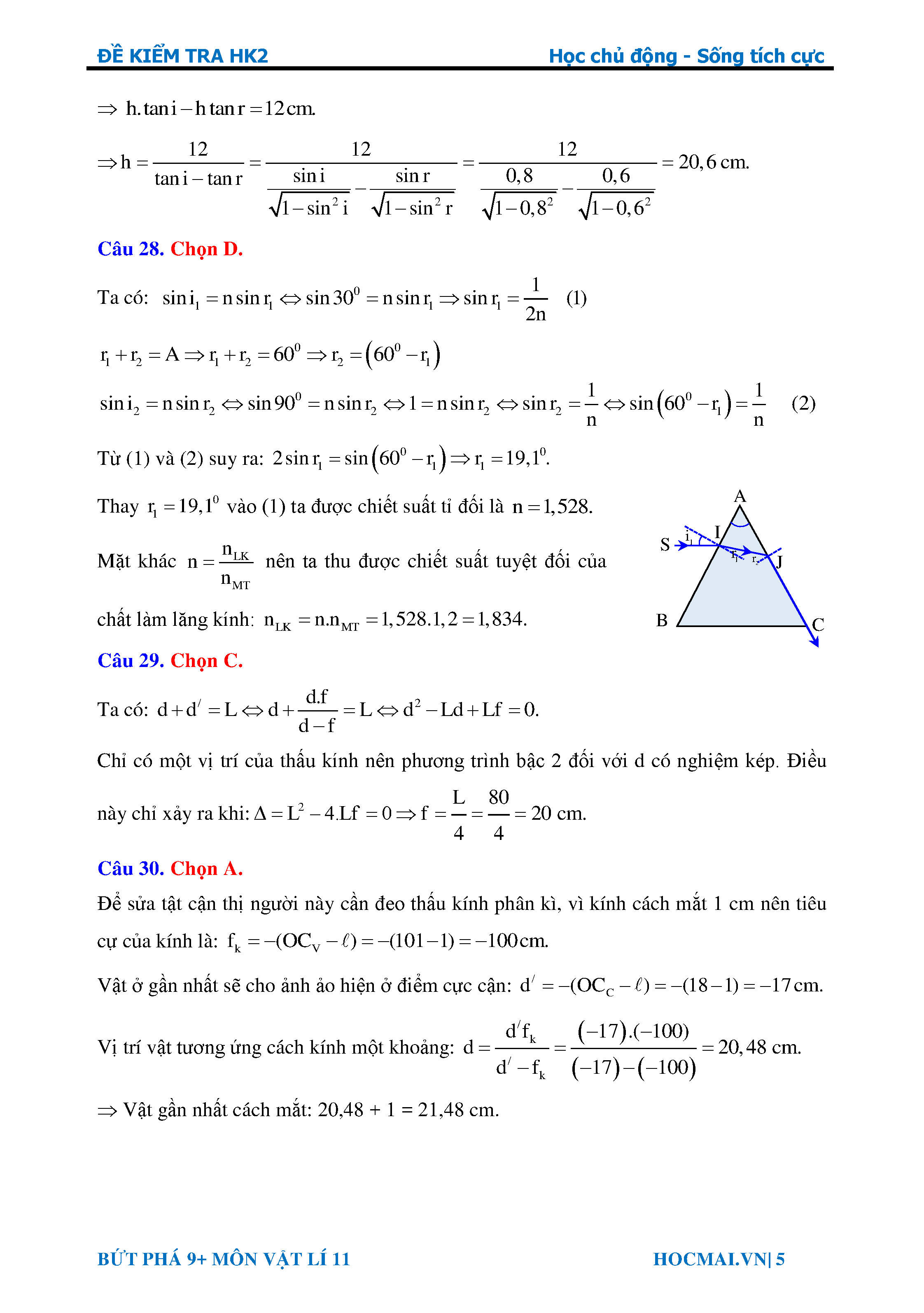 Bứt phá 9+ môn Vật lý 11 Lời giải bài kiểm tra Học kì 2