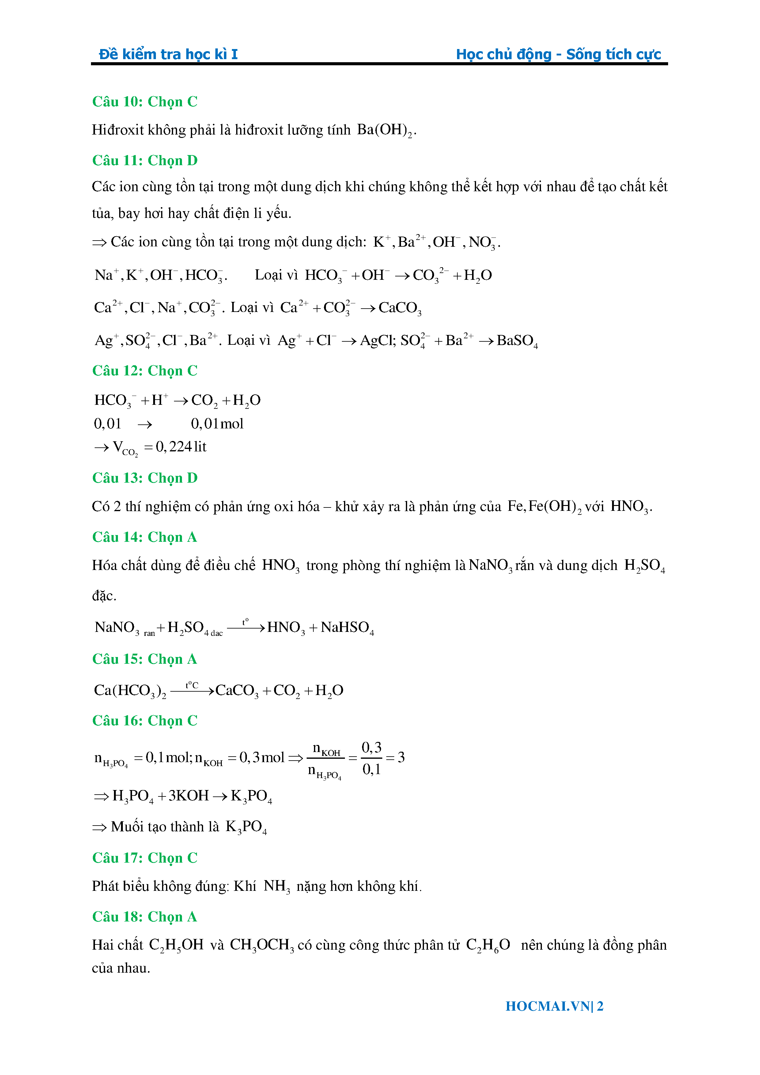 Bứt phá 9+ môn Hóa học 11 Lời giải bài học kì 1