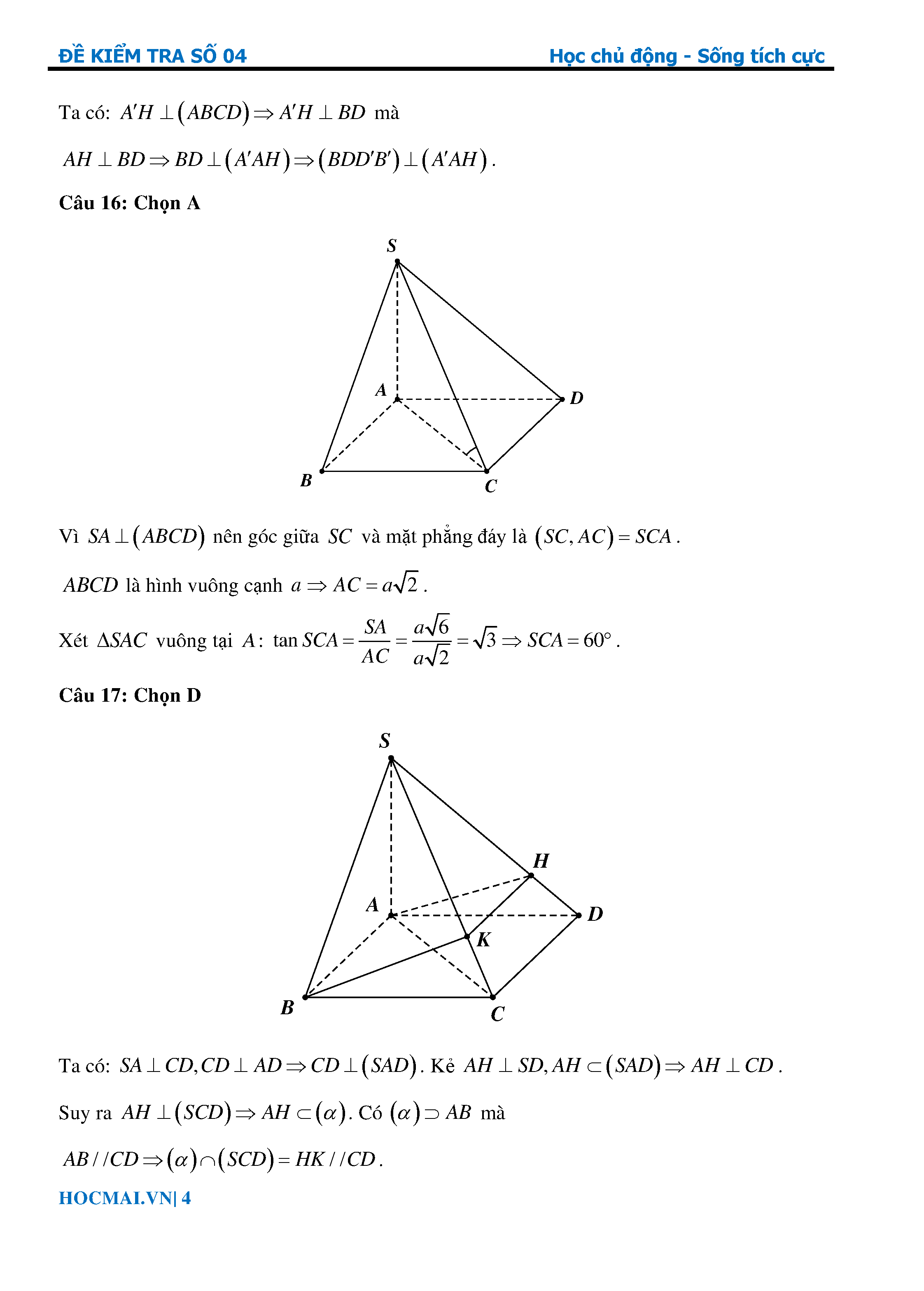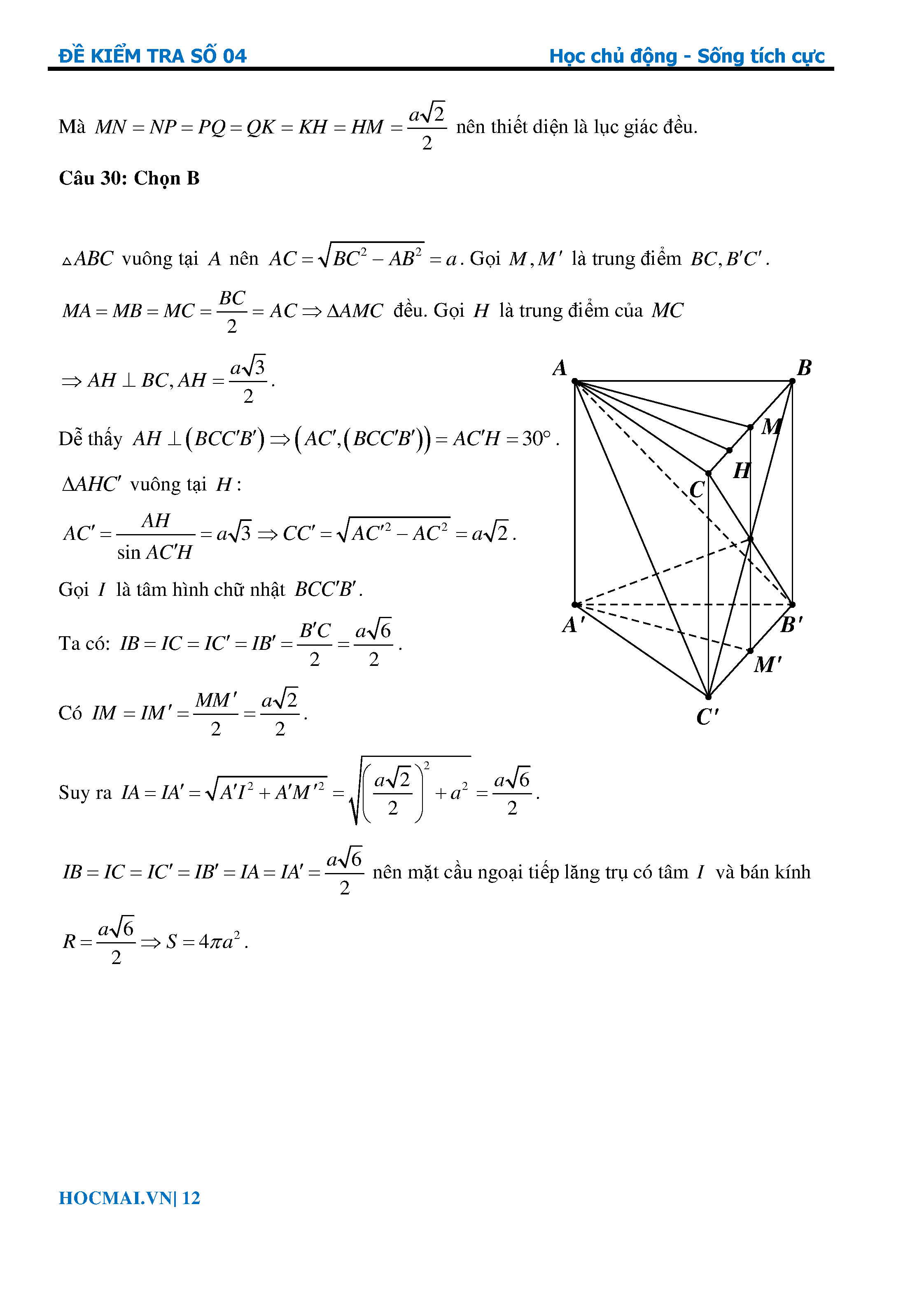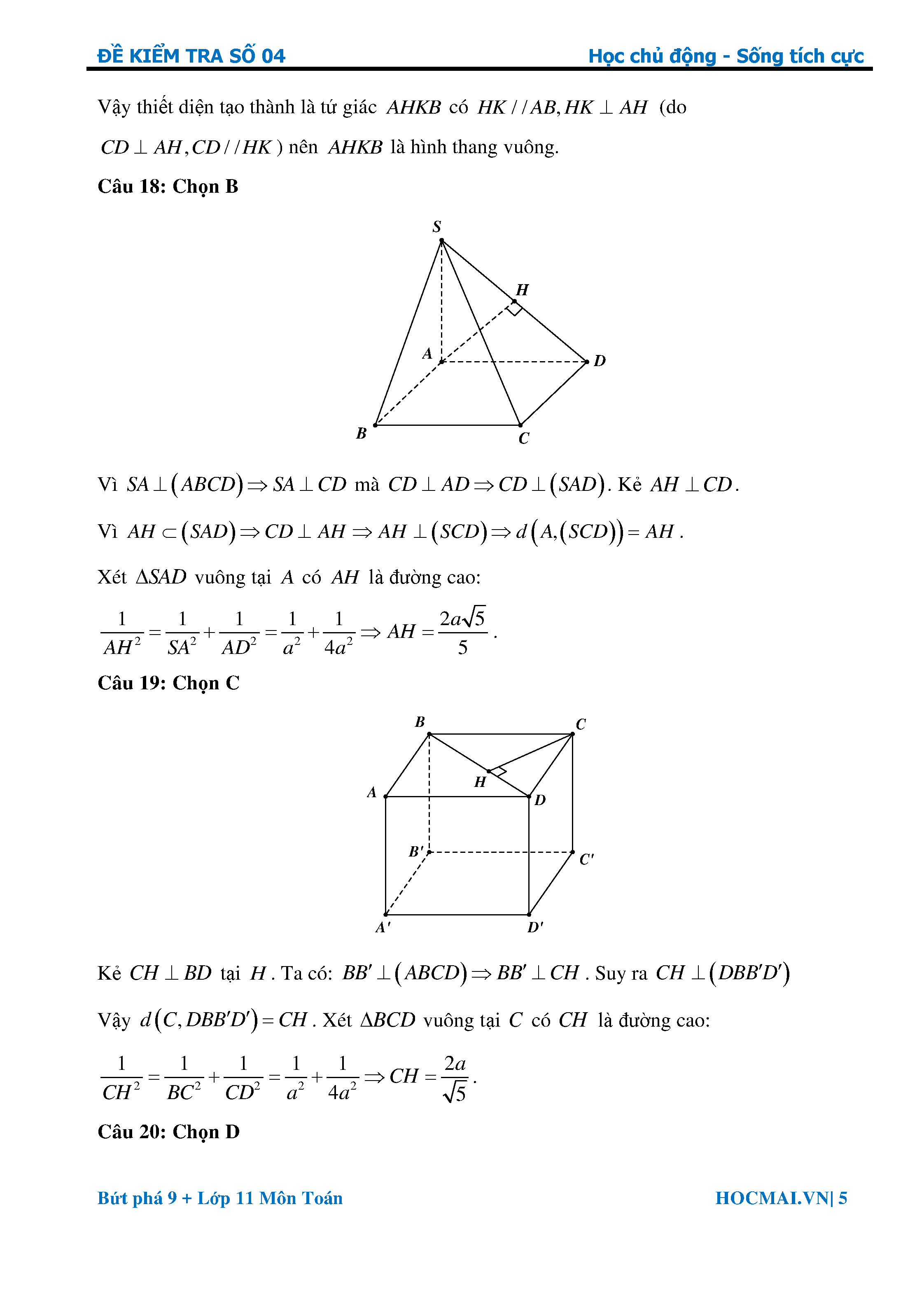 Bứt phá 9+ môn Toán 11 Lời giải bài kiểm tra 1 tiết số 04