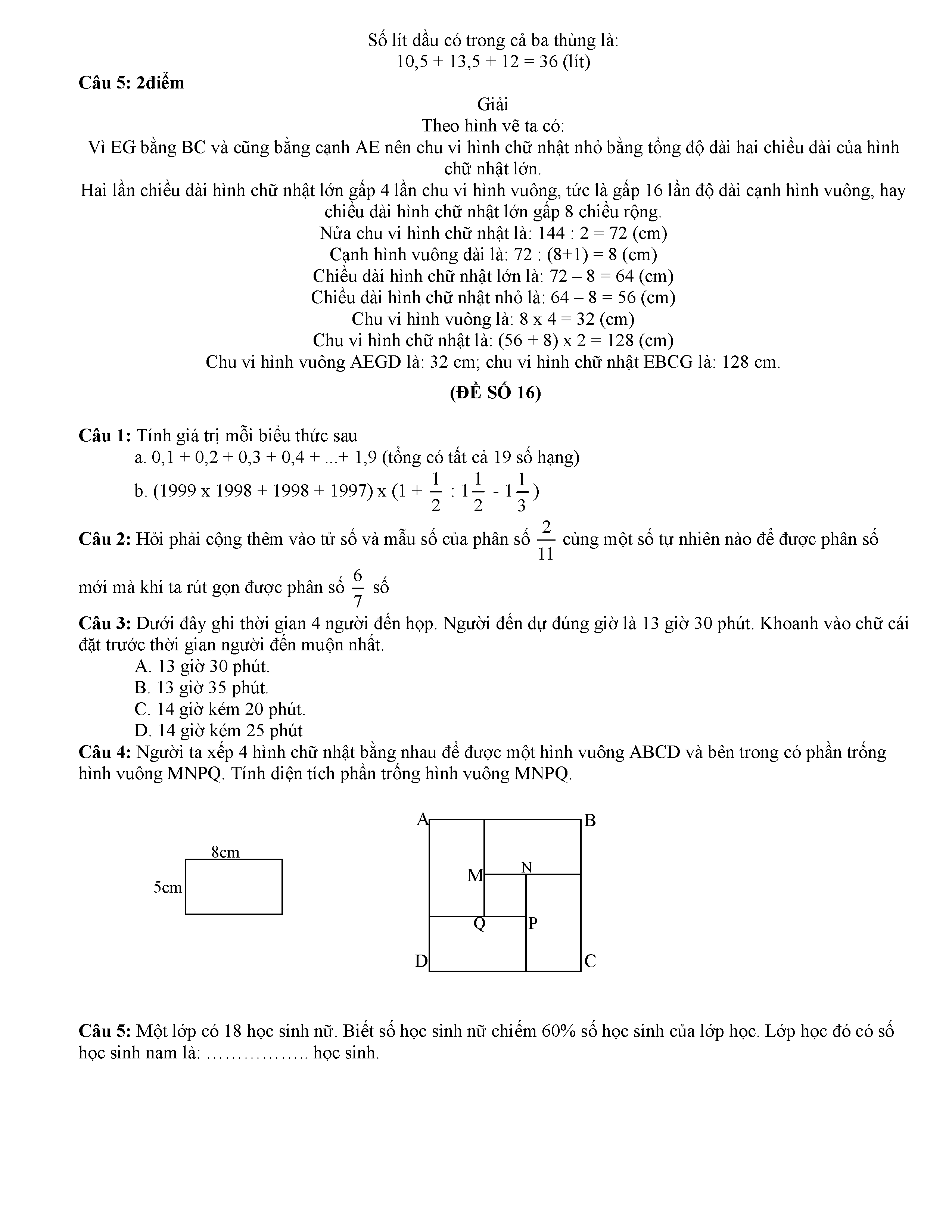 35 ĐỀ ÔN THI VÀO LỚP 6 MÔN TOÁN