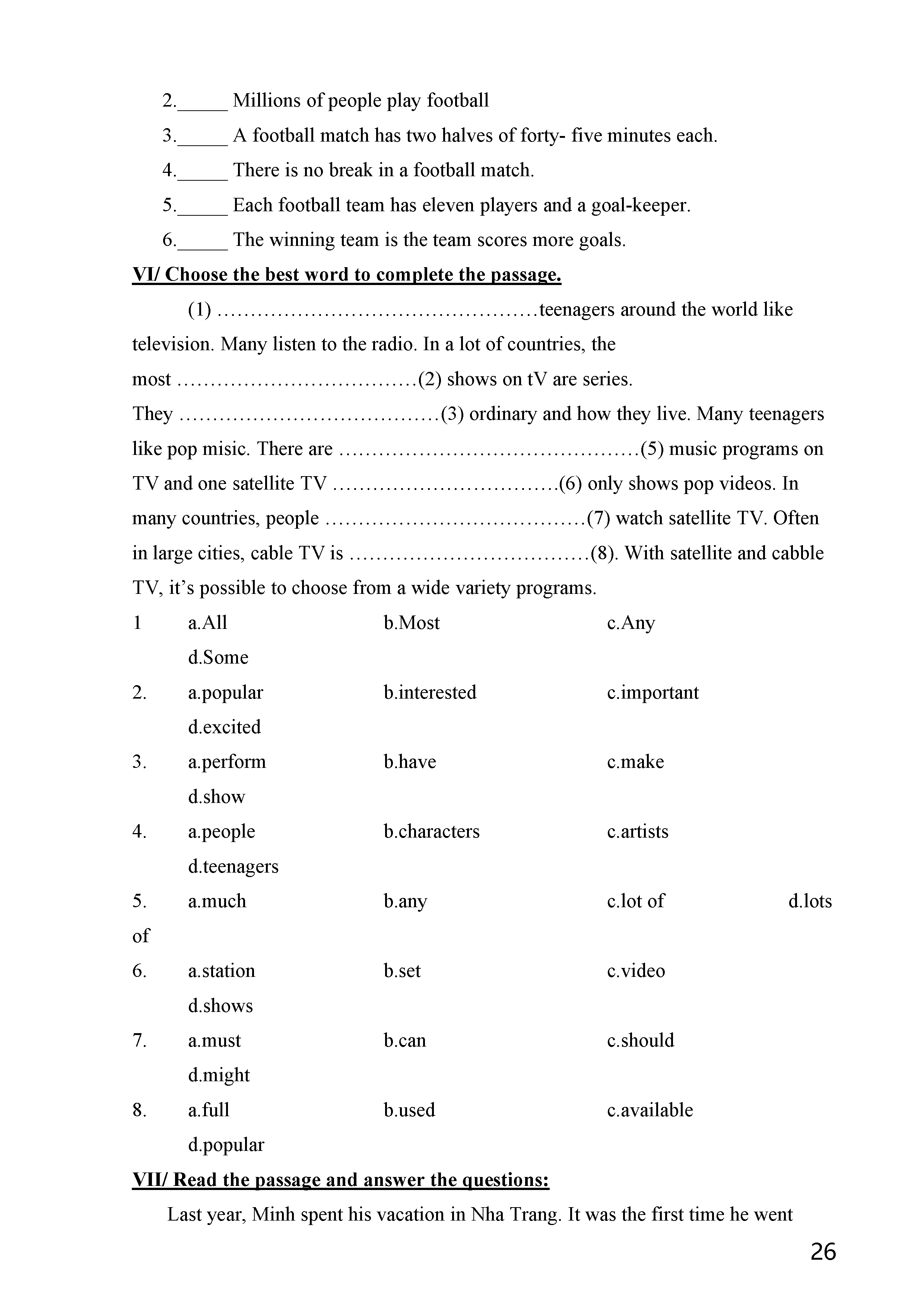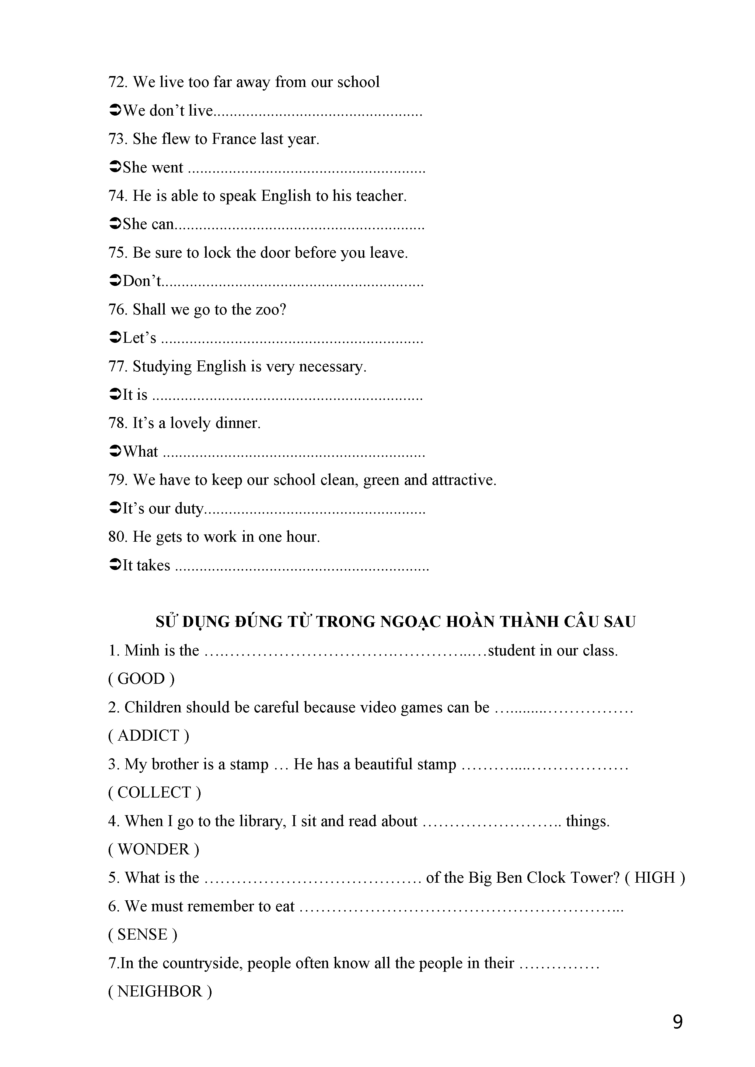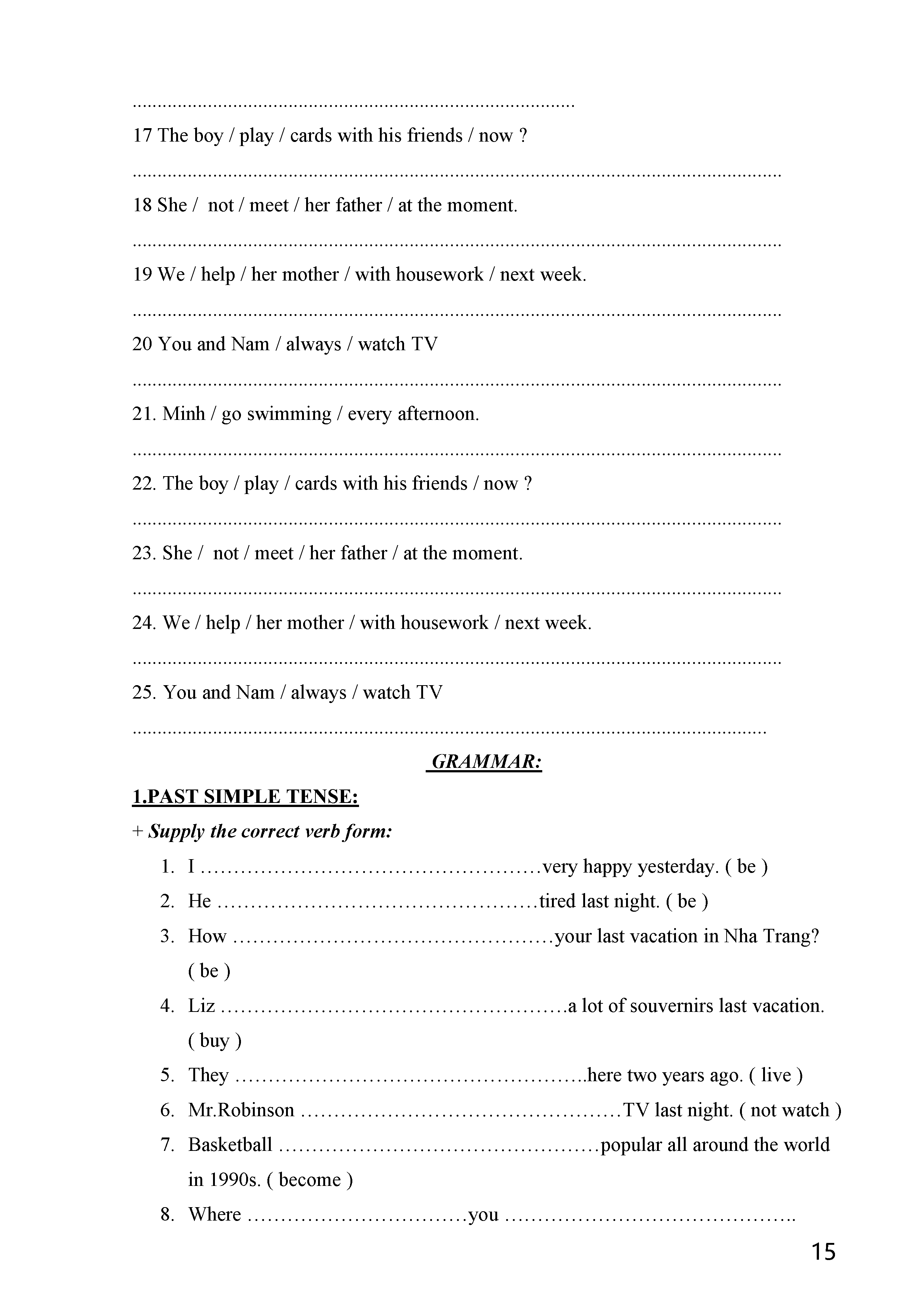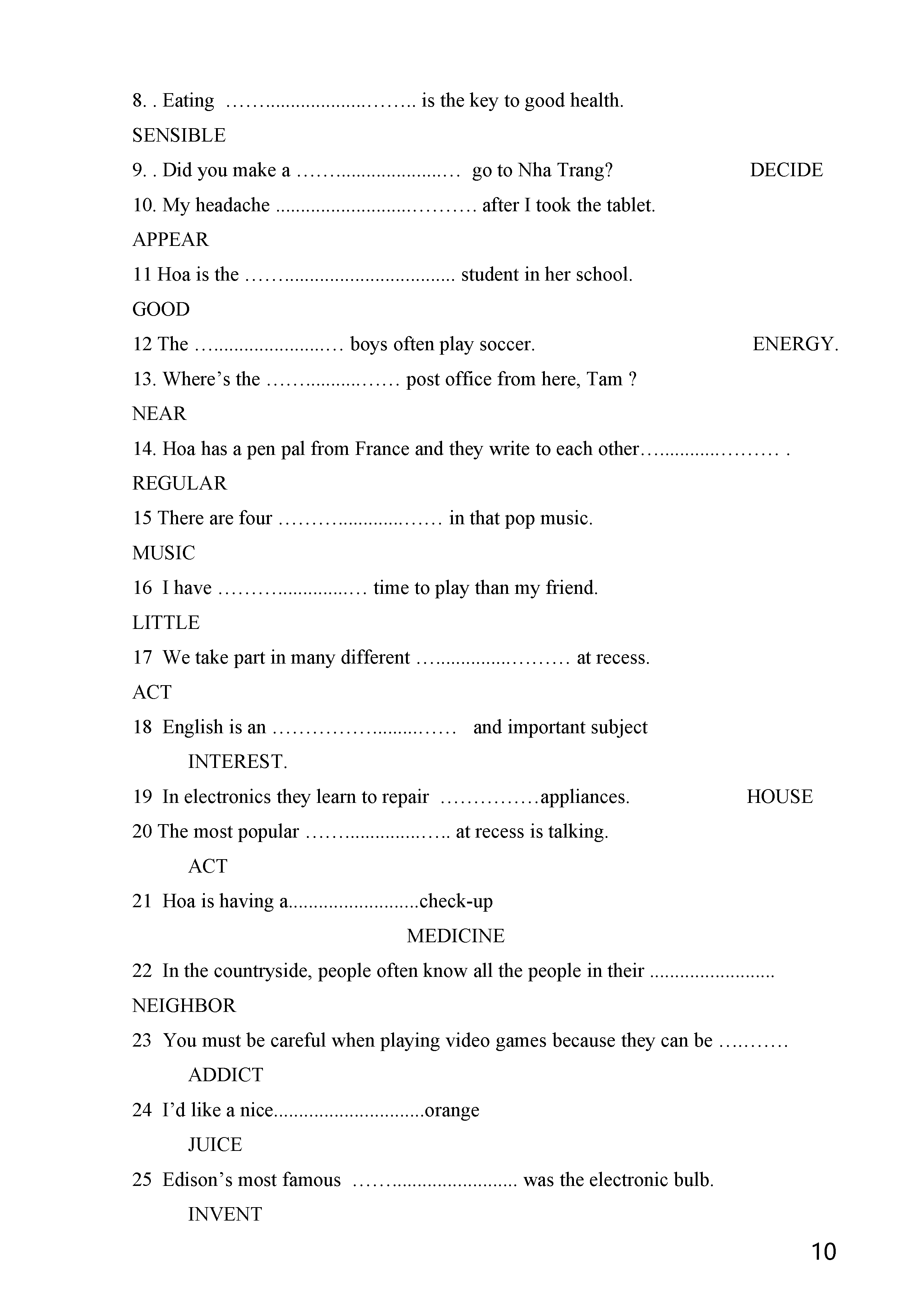 BÀI TẬP ÔN HÈ MÔN TIẾNG ANH DÀNH CHO HỌC SINH LỚP 8
