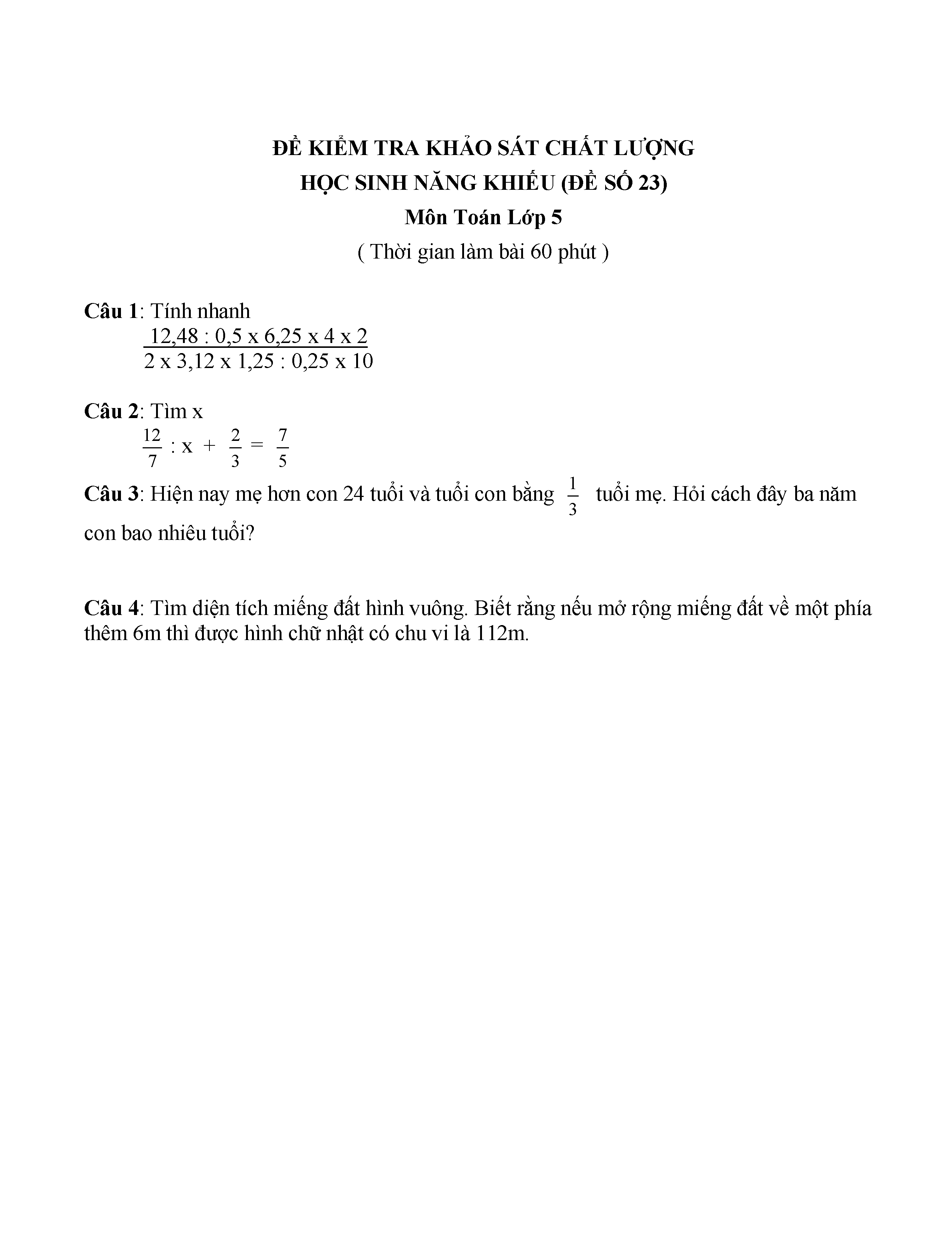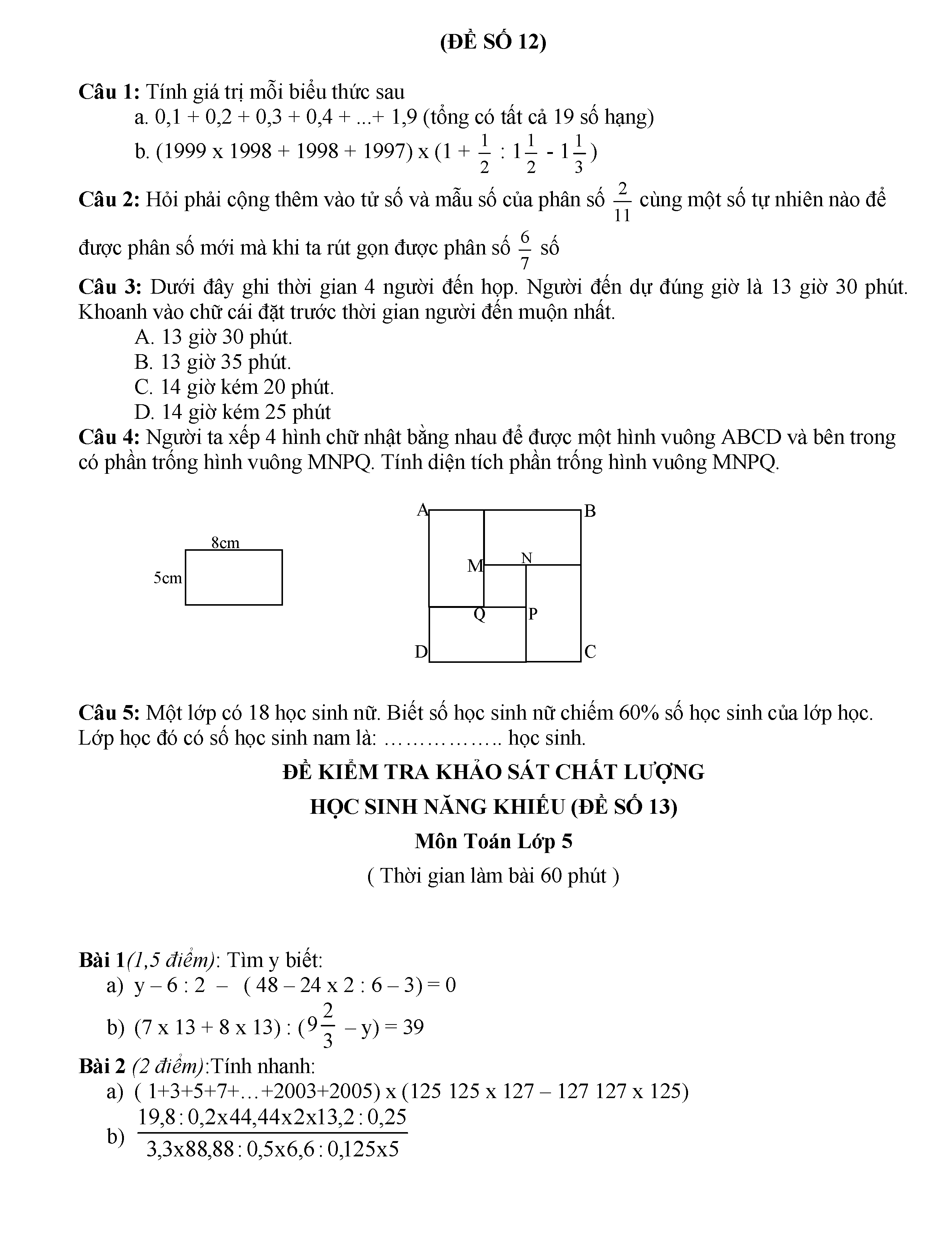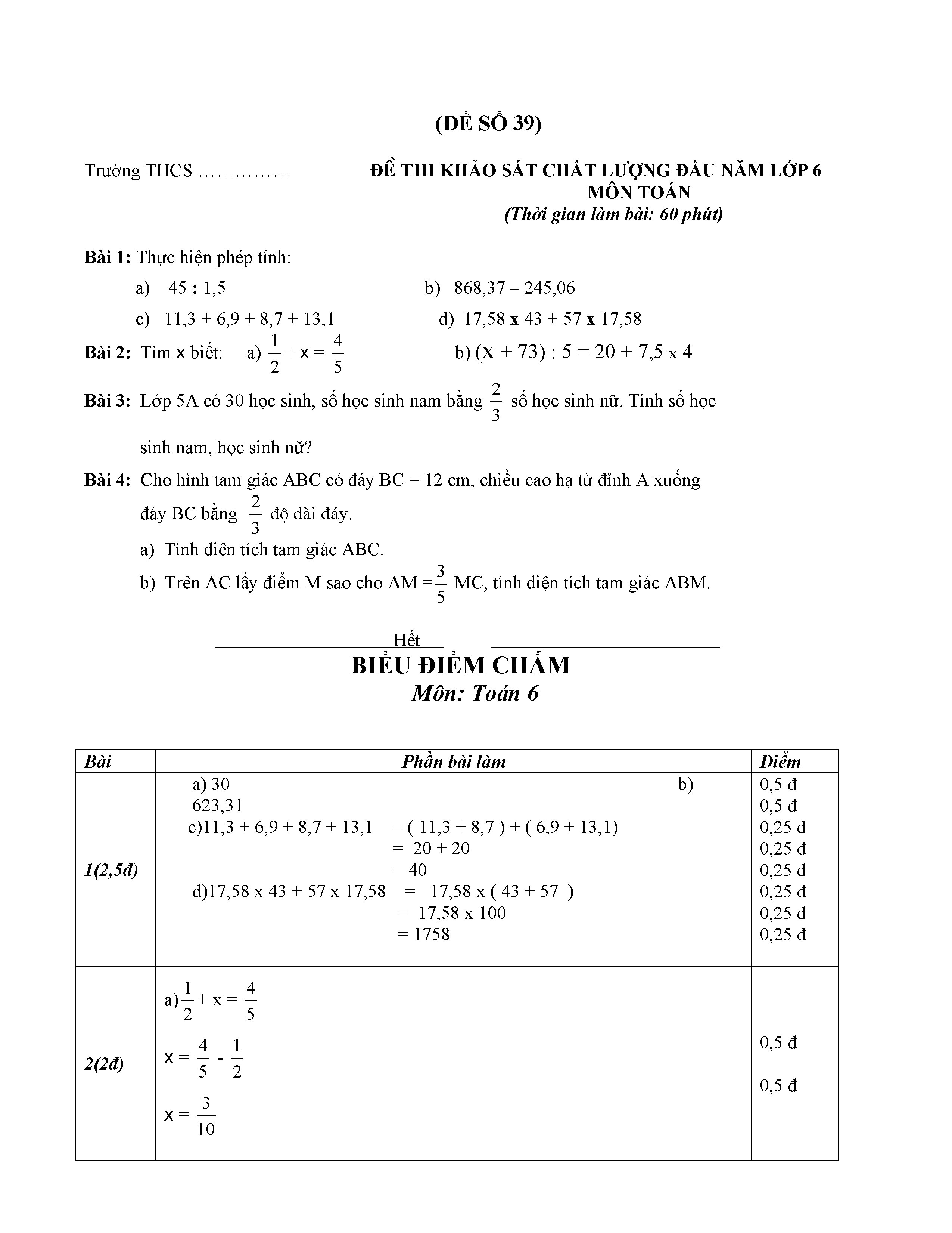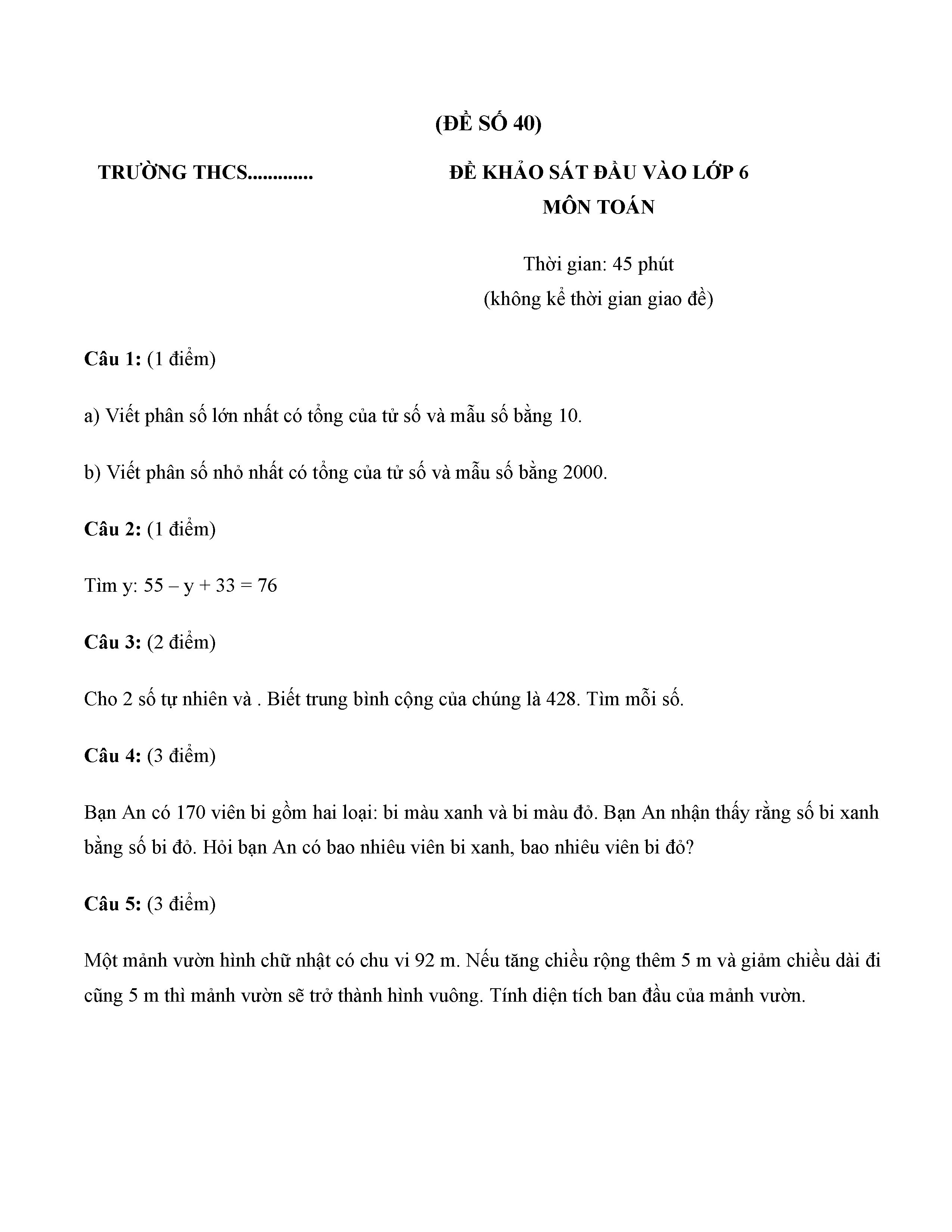 40 ĐỀ KIỂM TRA KHẢO SÁT CHẤT LƯỢNG ĐẦU NĂM LỚP 6 MÔN TOÁN