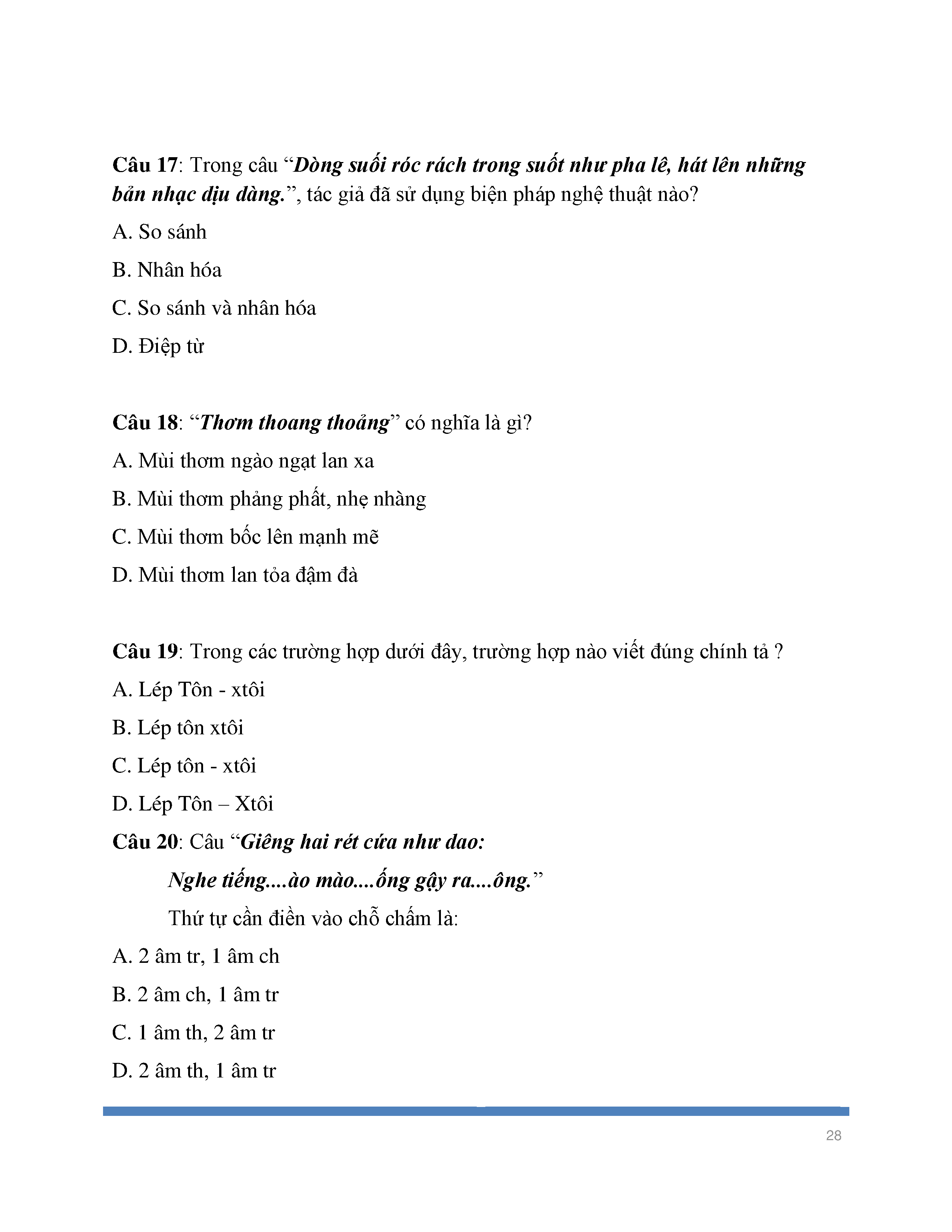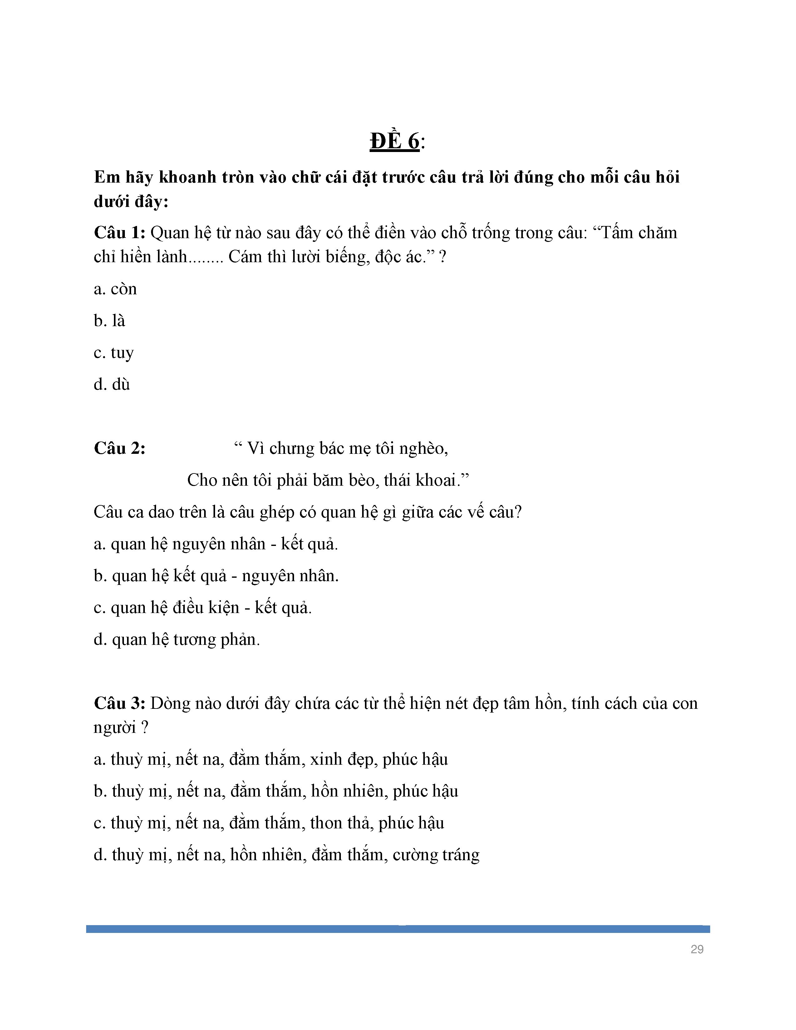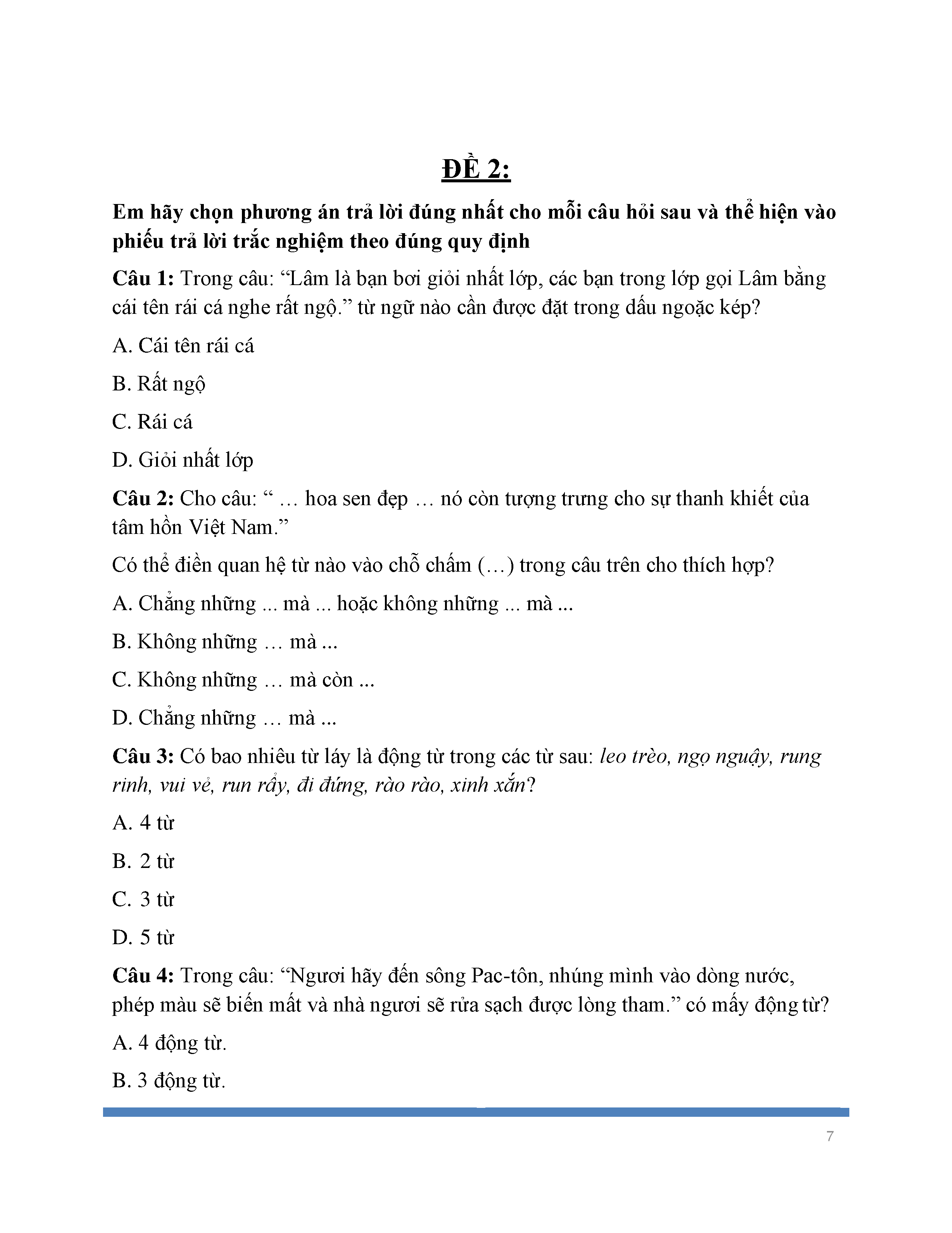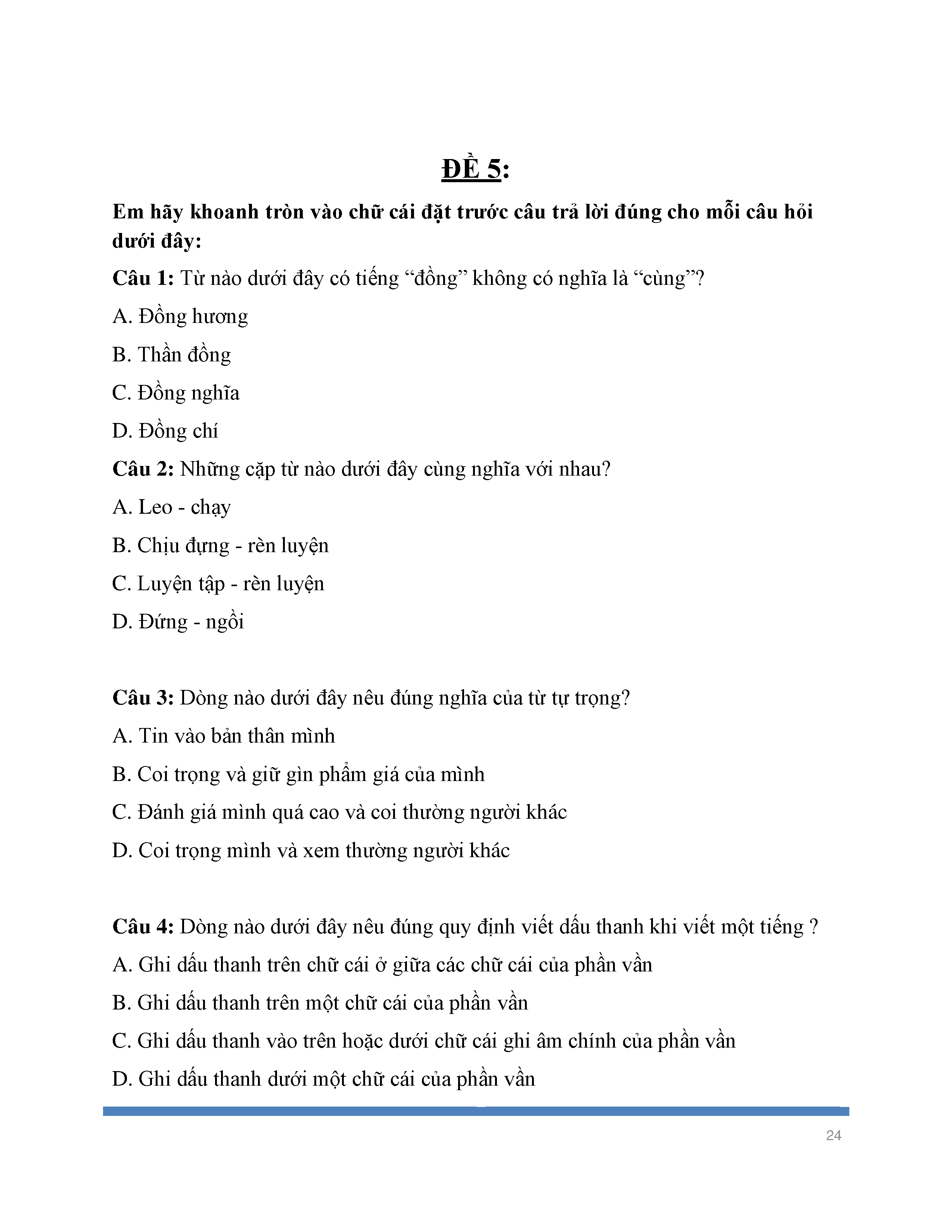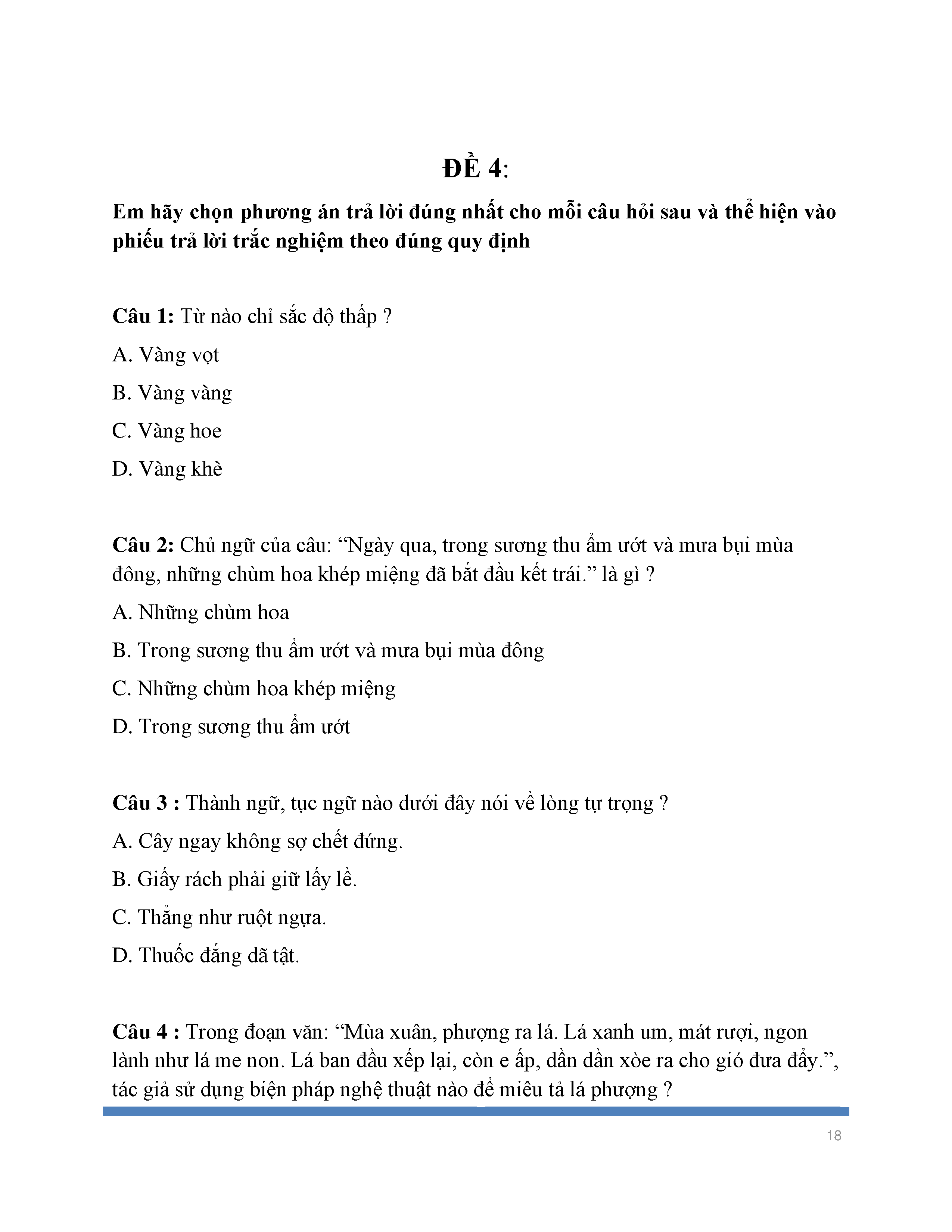 BỘ ĐỀ TRẮC NGHIỆM ÔN THI VÀO 6 MÔN TIẾNG VIỆT